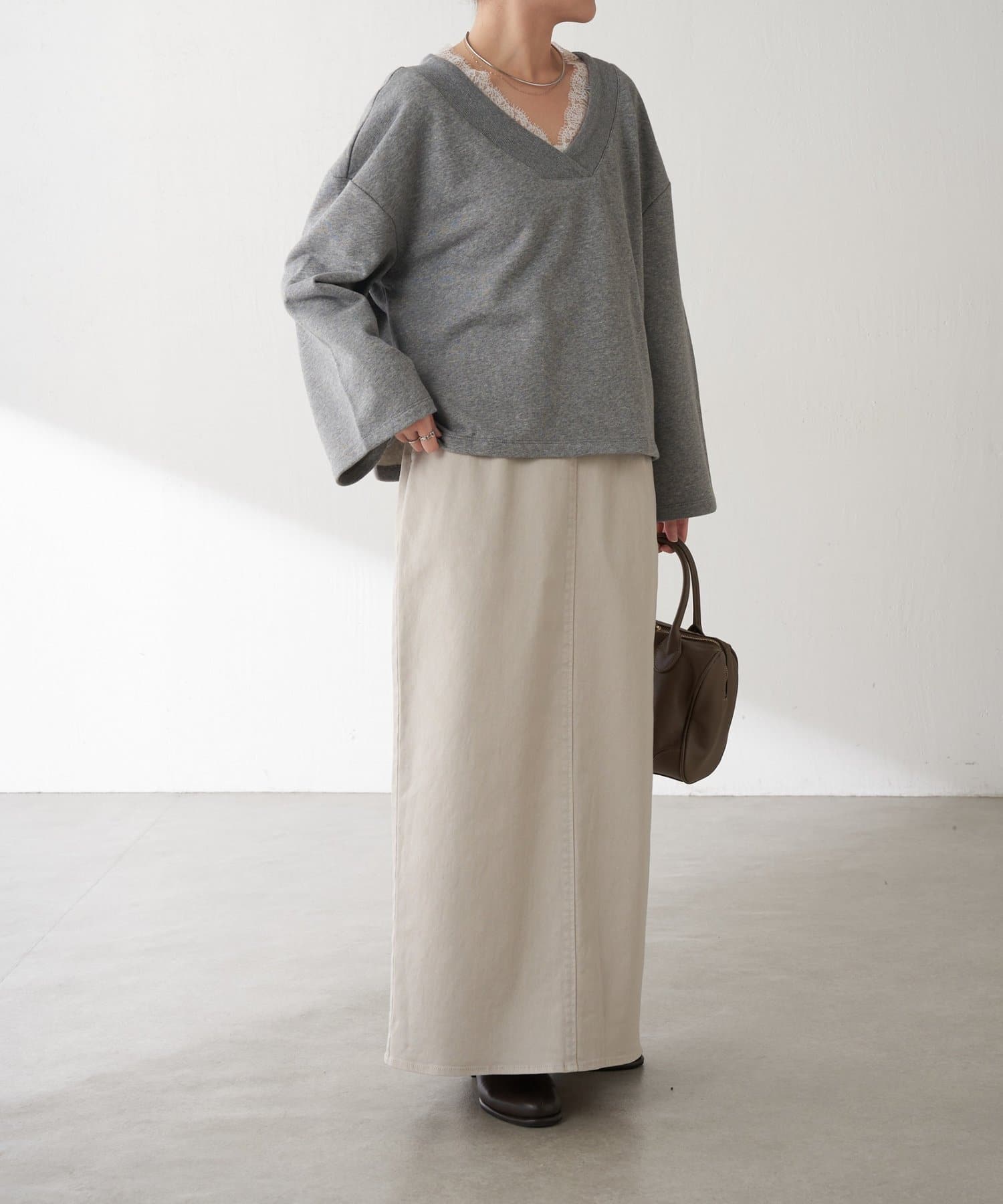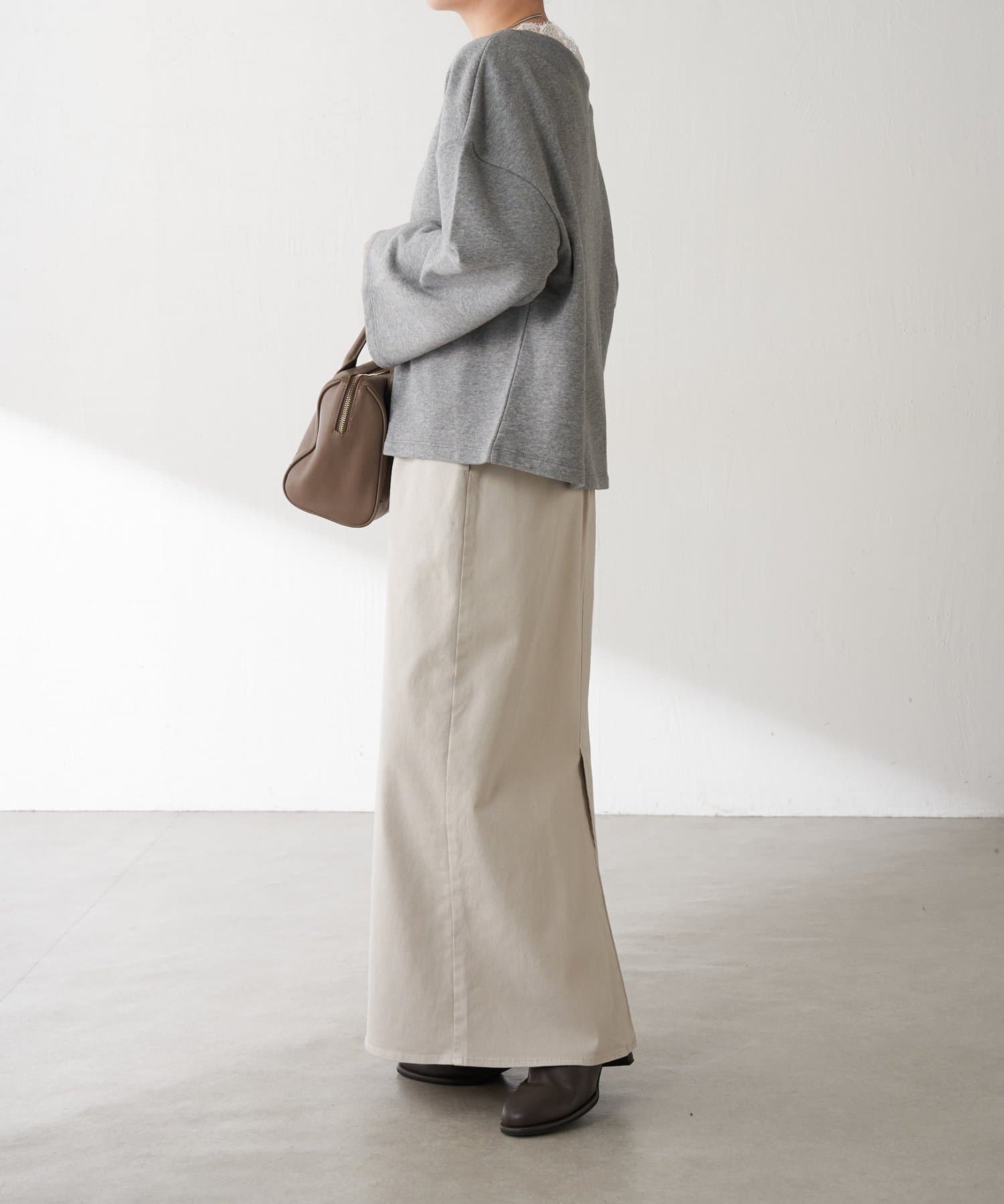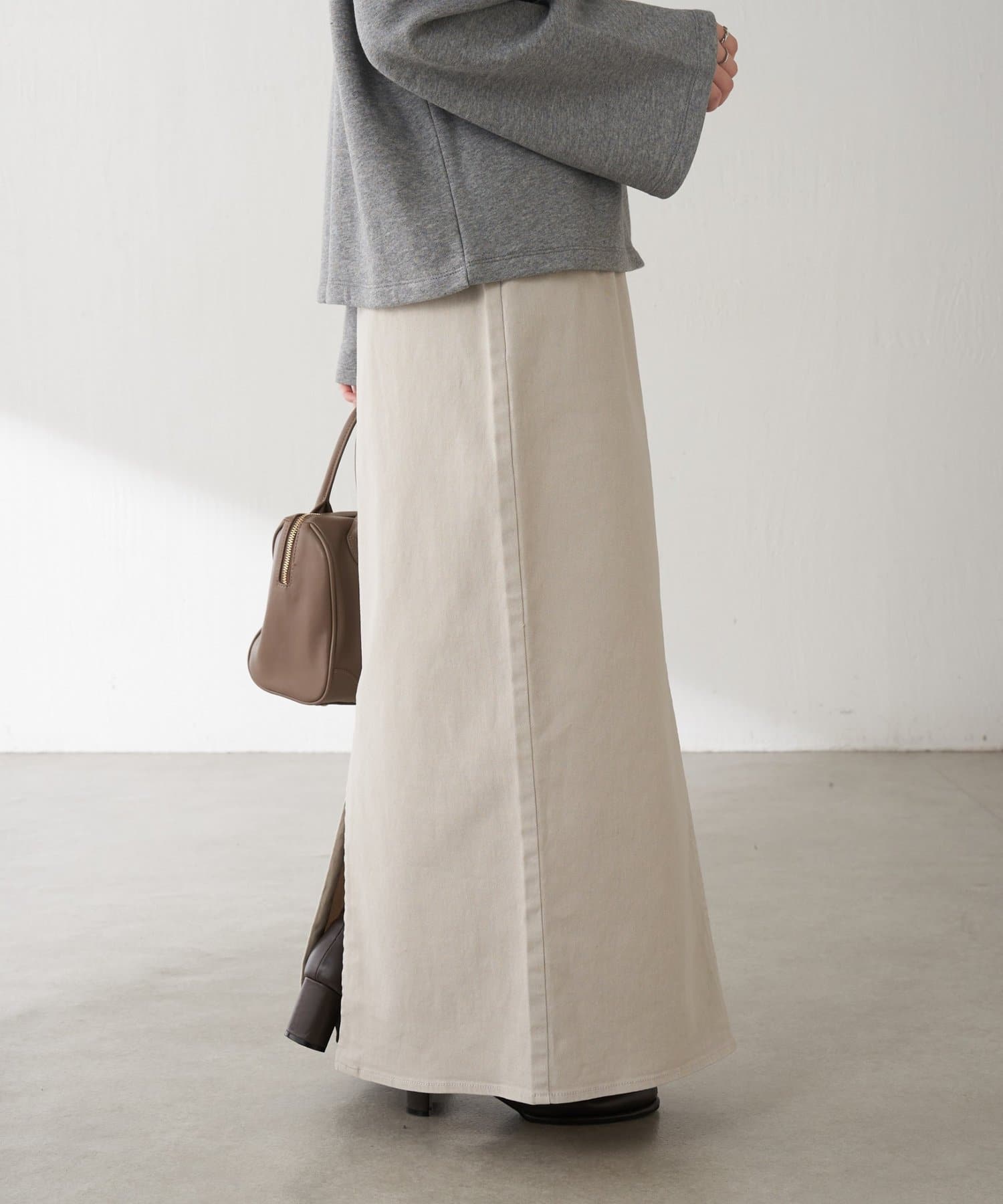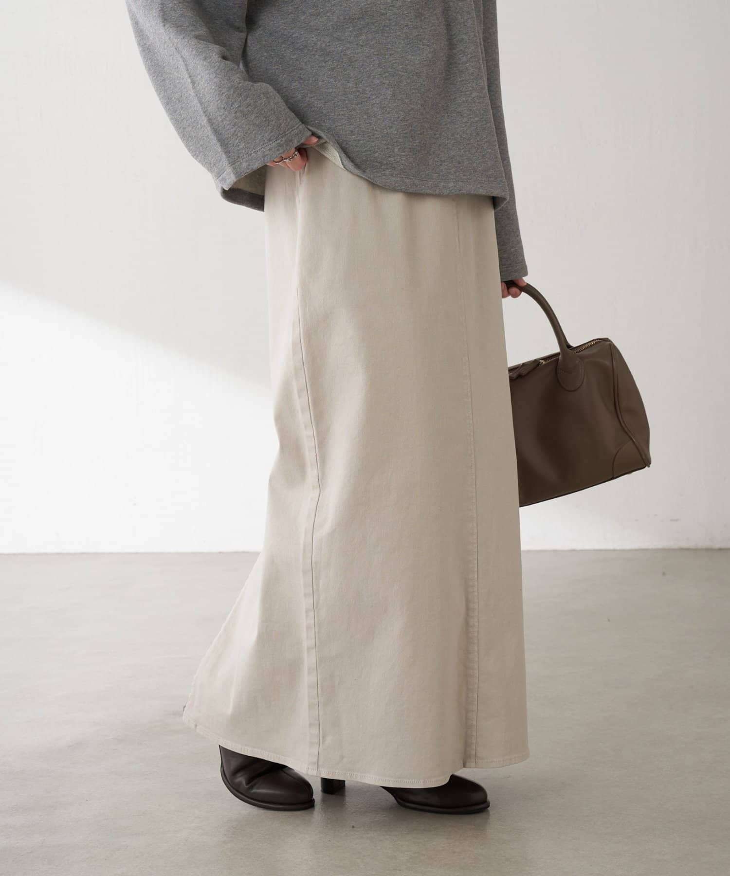 コンパクトでもオーバーサイズのトップスでもバランスのとりやすいシルエットです。
