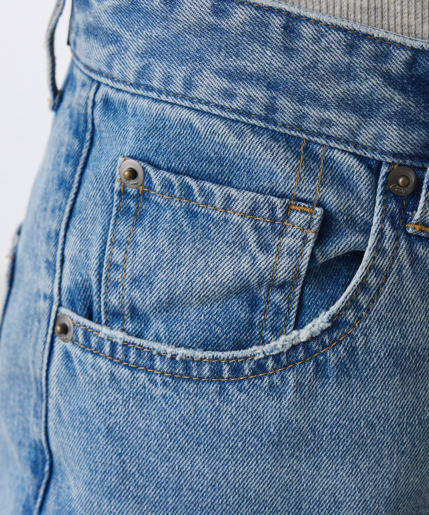 ・ブルーはヴィンテージ感のあるこすれ加工が脚のラインをすっきり見せてくれ、インディゴはセンタープレスで脚長効果がアップします◎