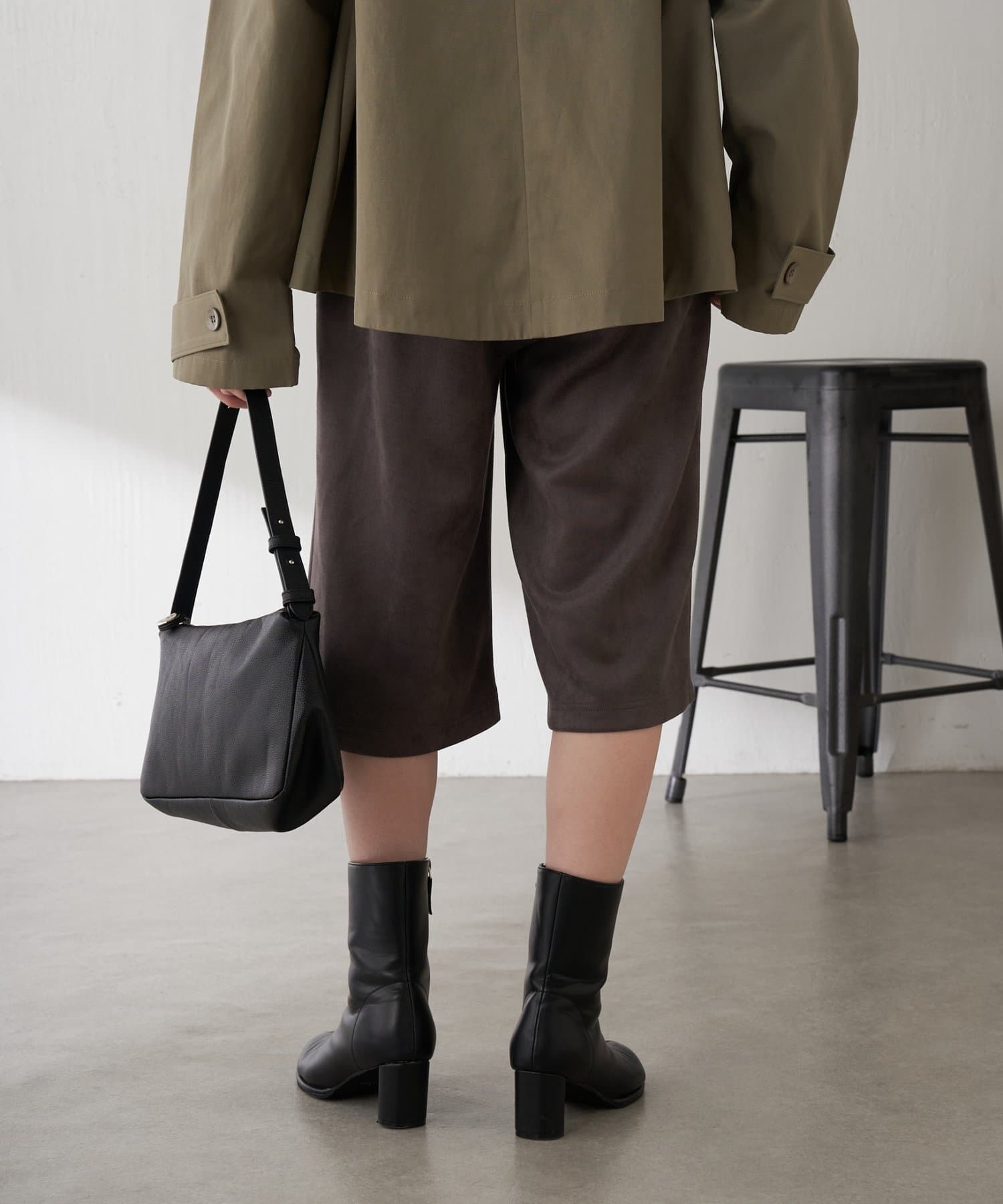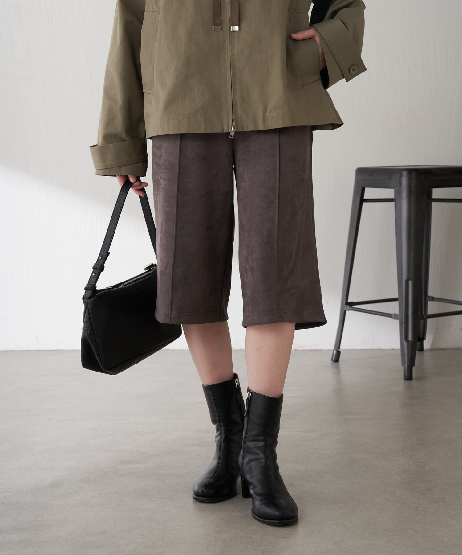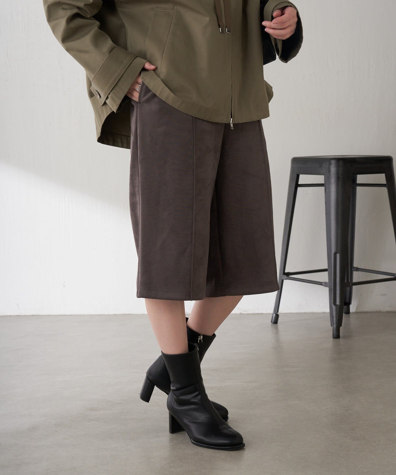 ・高見えするスエードライクな素材を使用した大人のハーフパンツ。