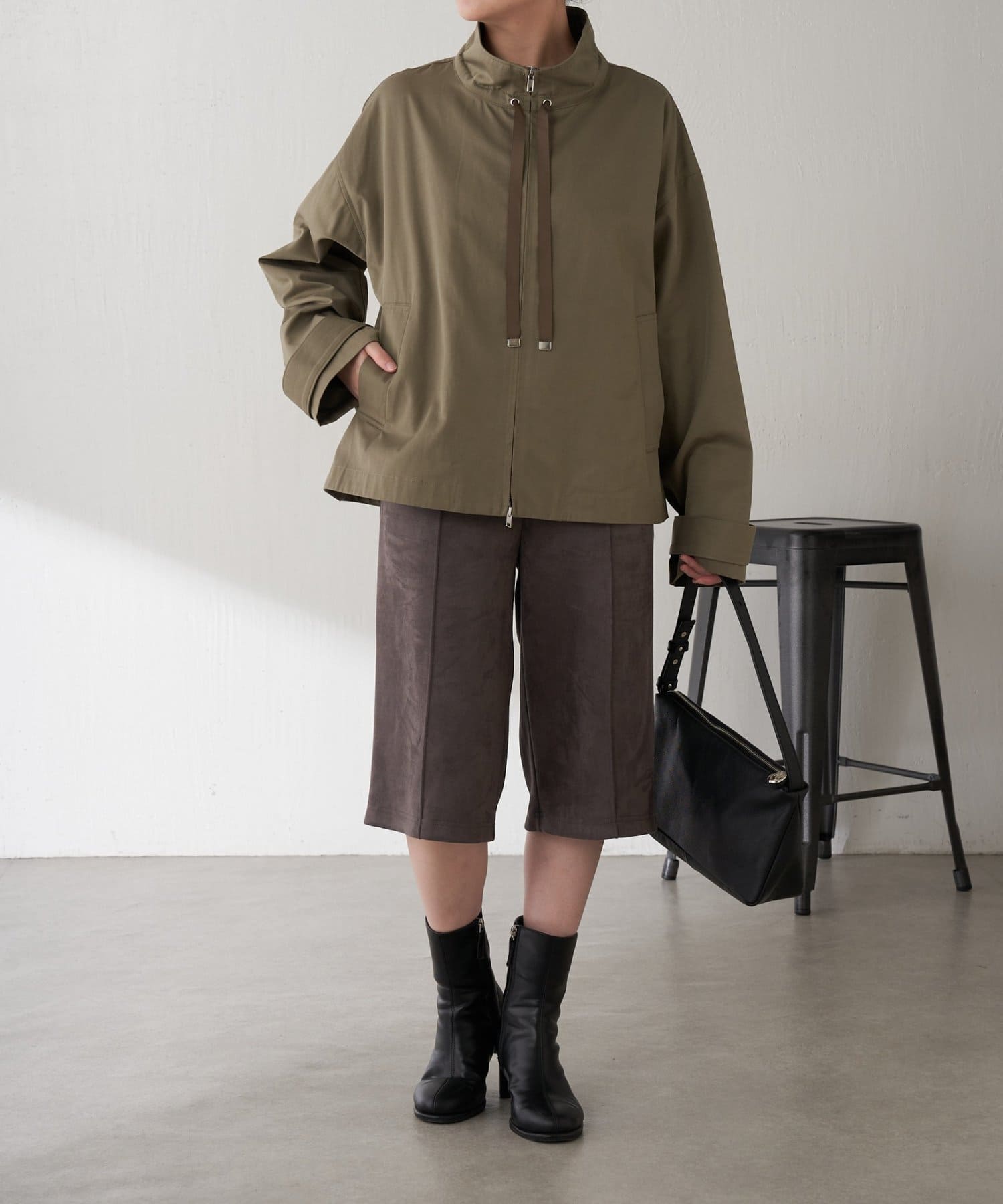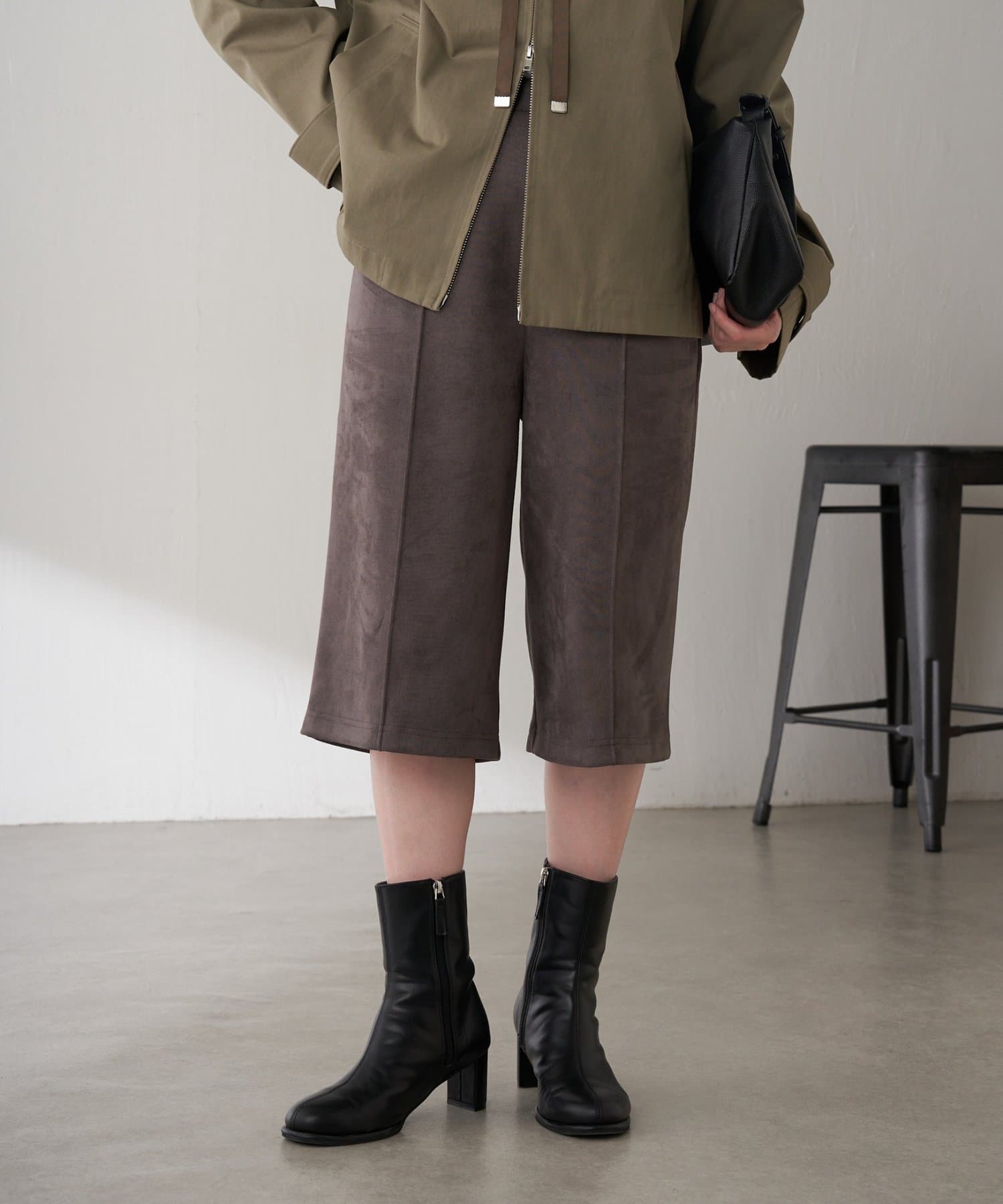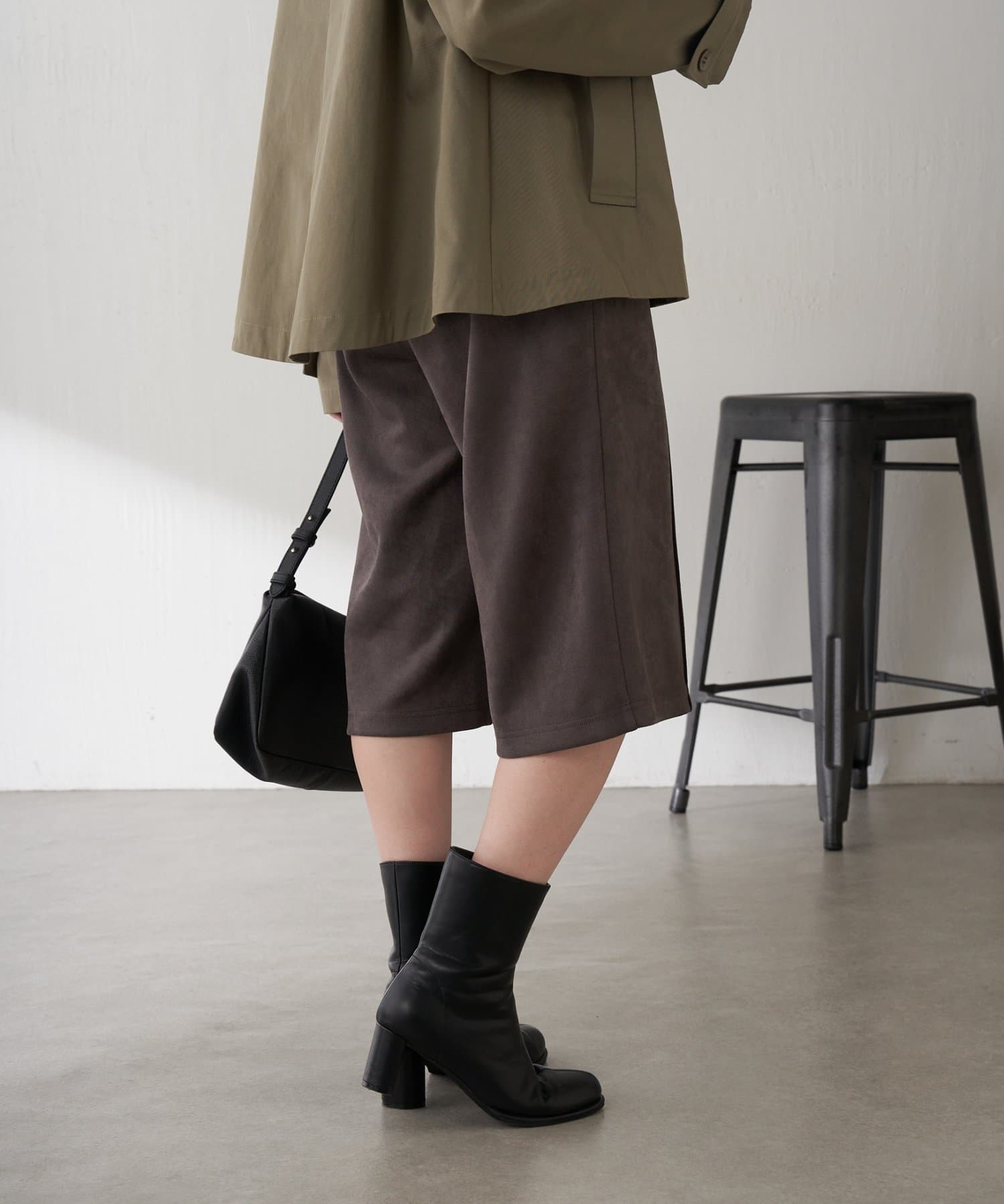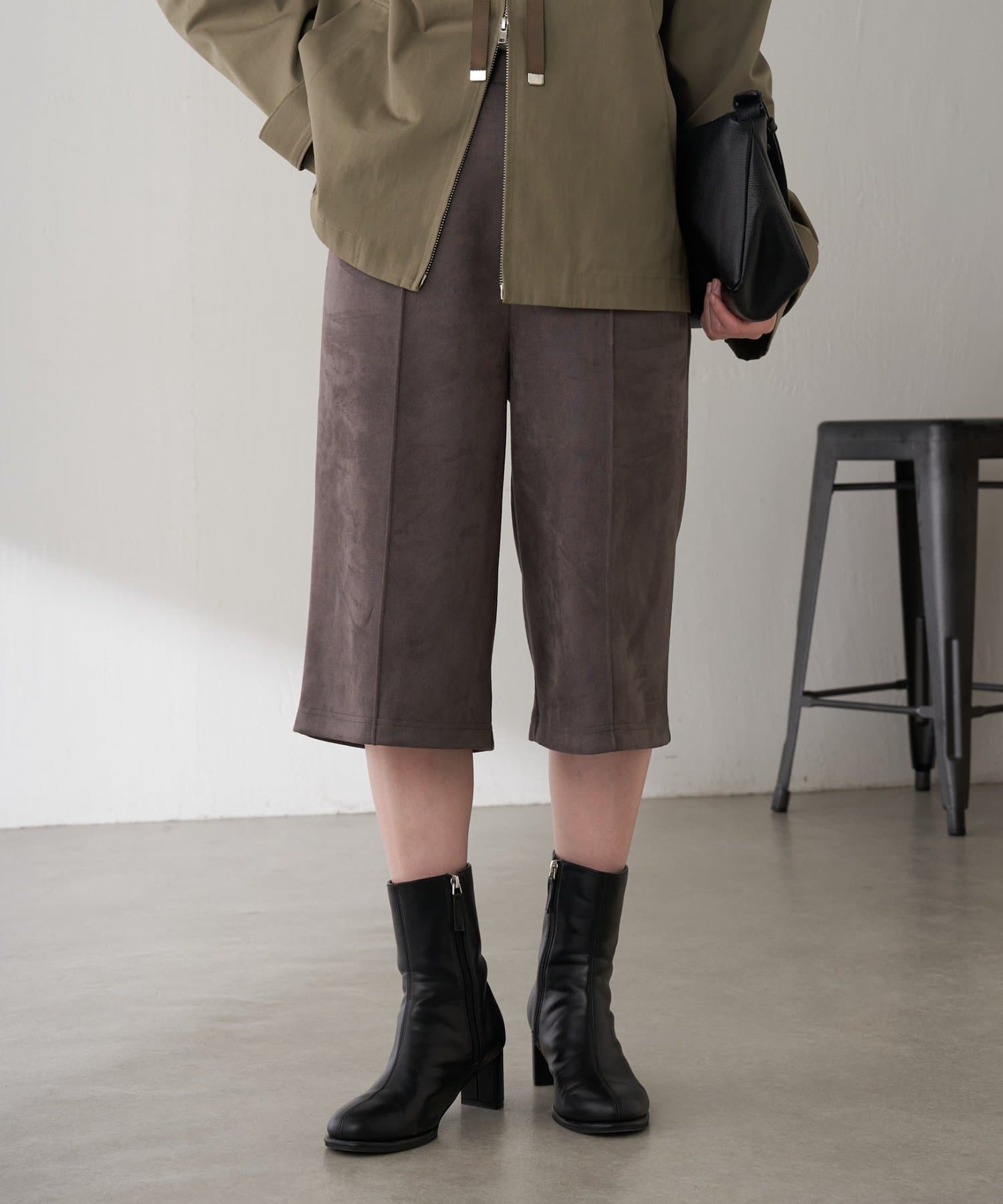 ・高見えするスエードライクな素材を使用した大人のハーフパンツ。