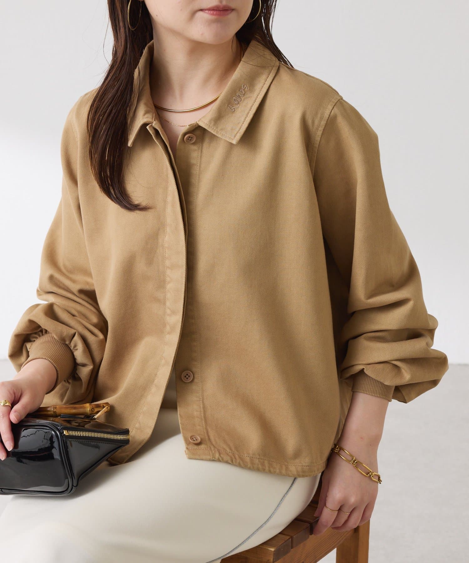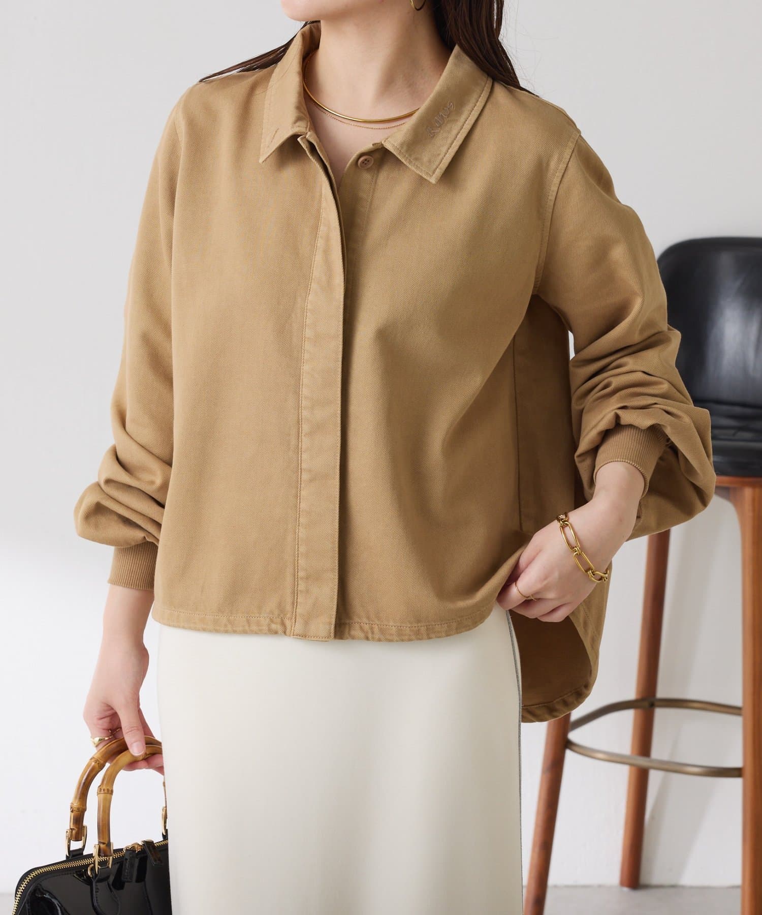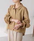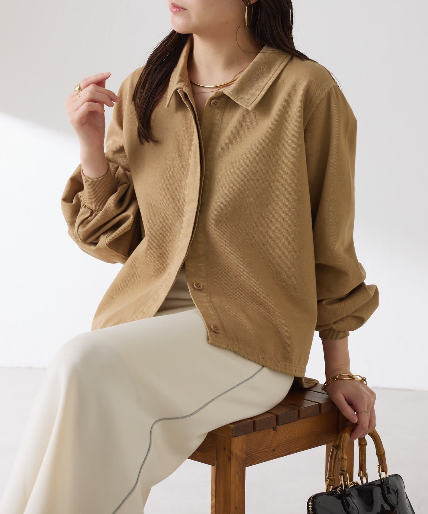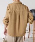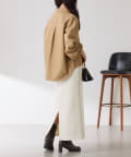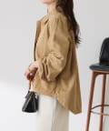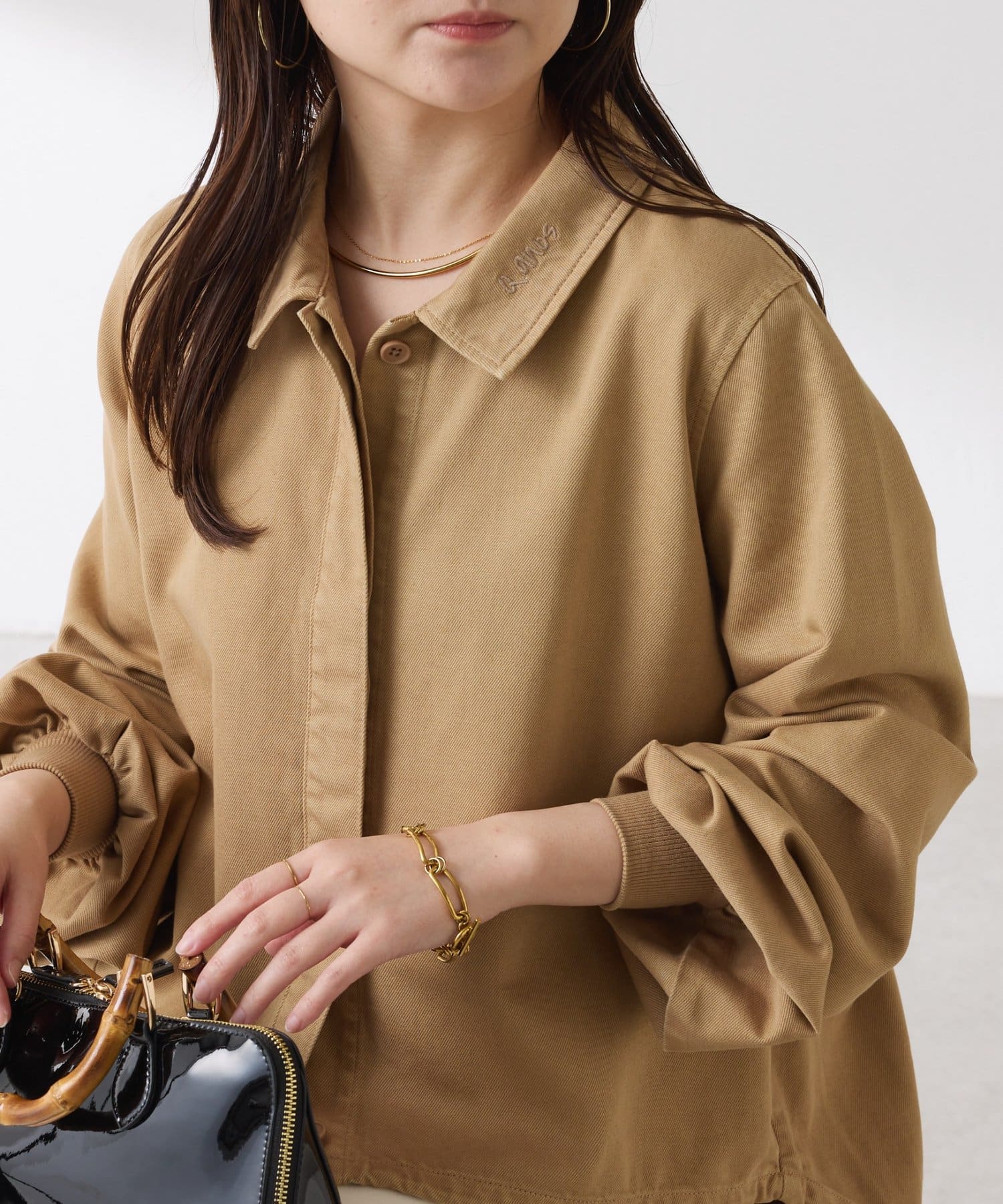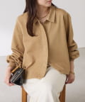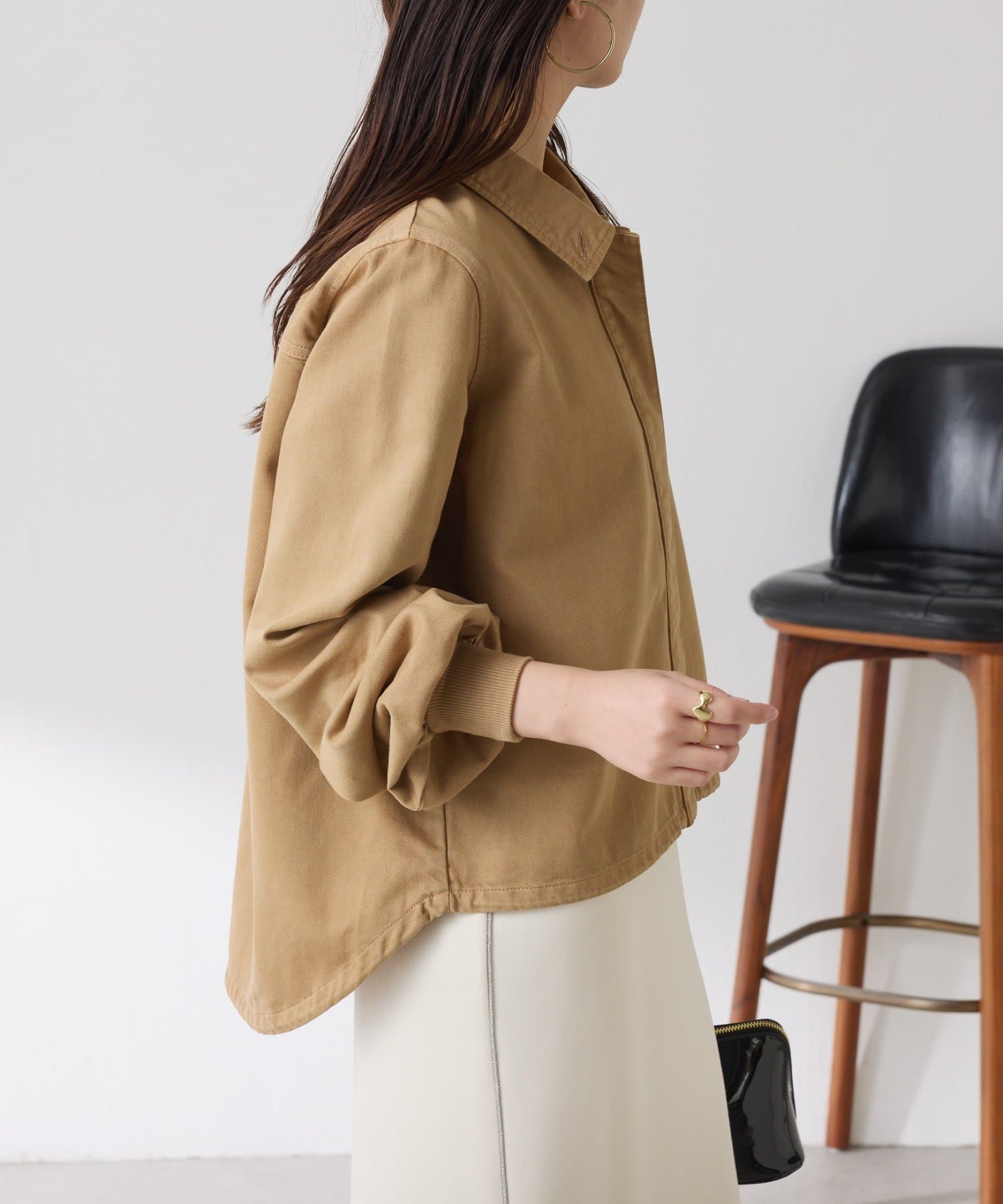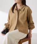 ・襟を立てても着用できます。スタンドカラーにするとブルゾンっぽい雰囲気に。下のボタンを開けて抜け感を出すのもおすすめです。