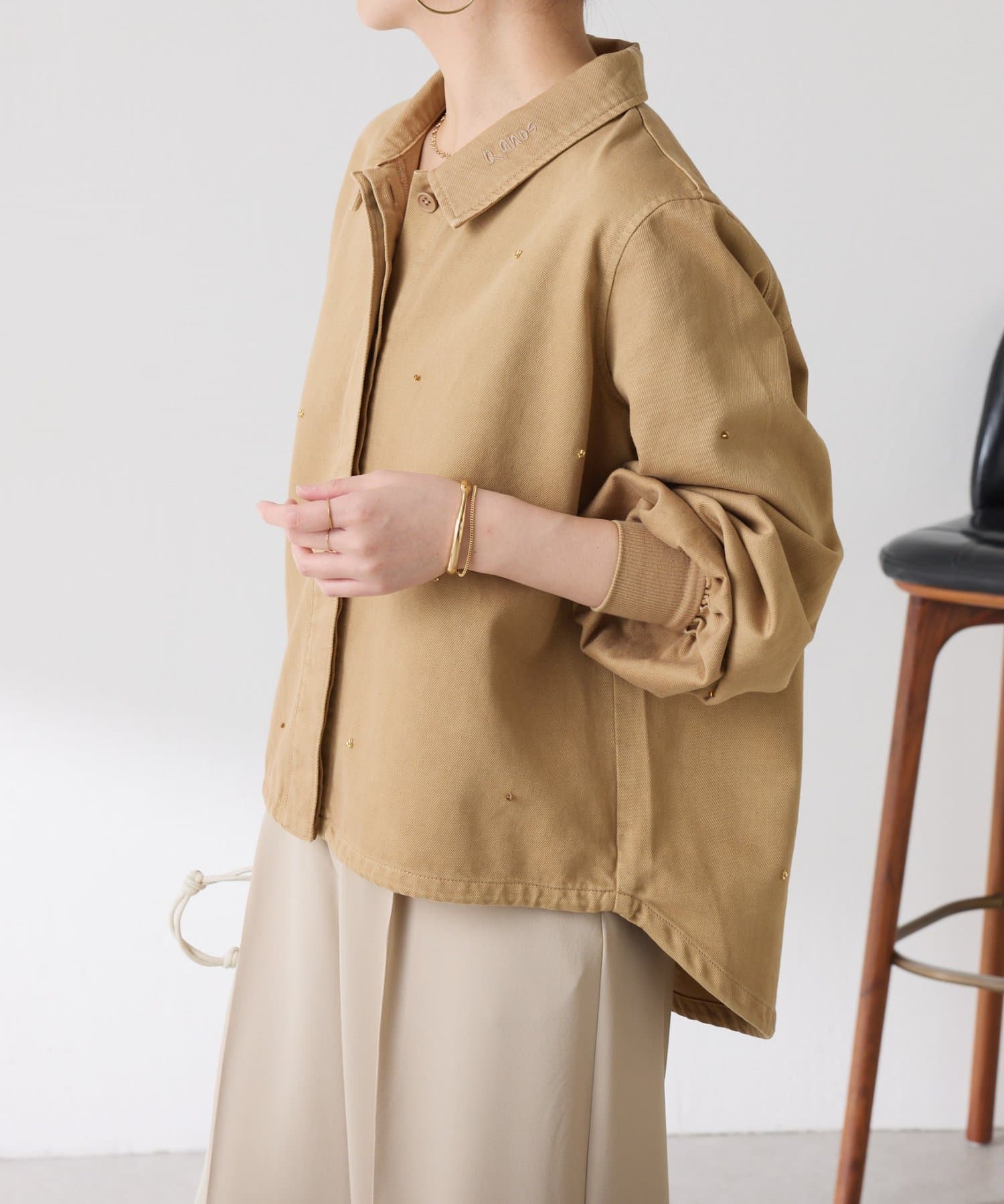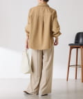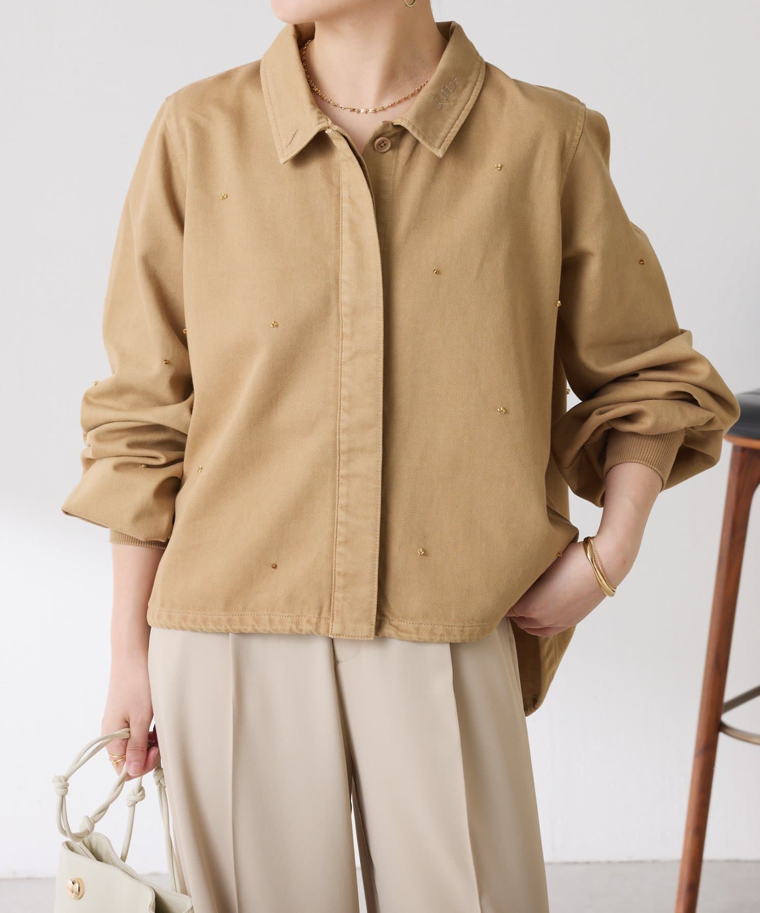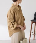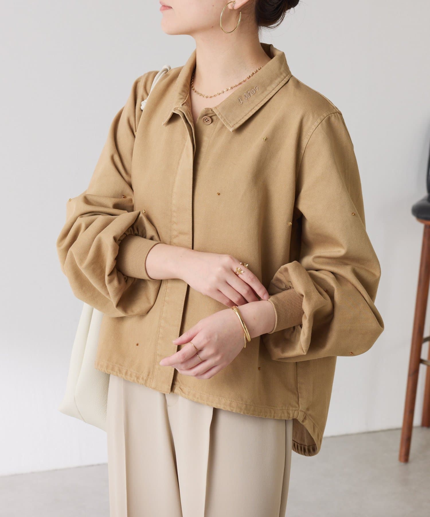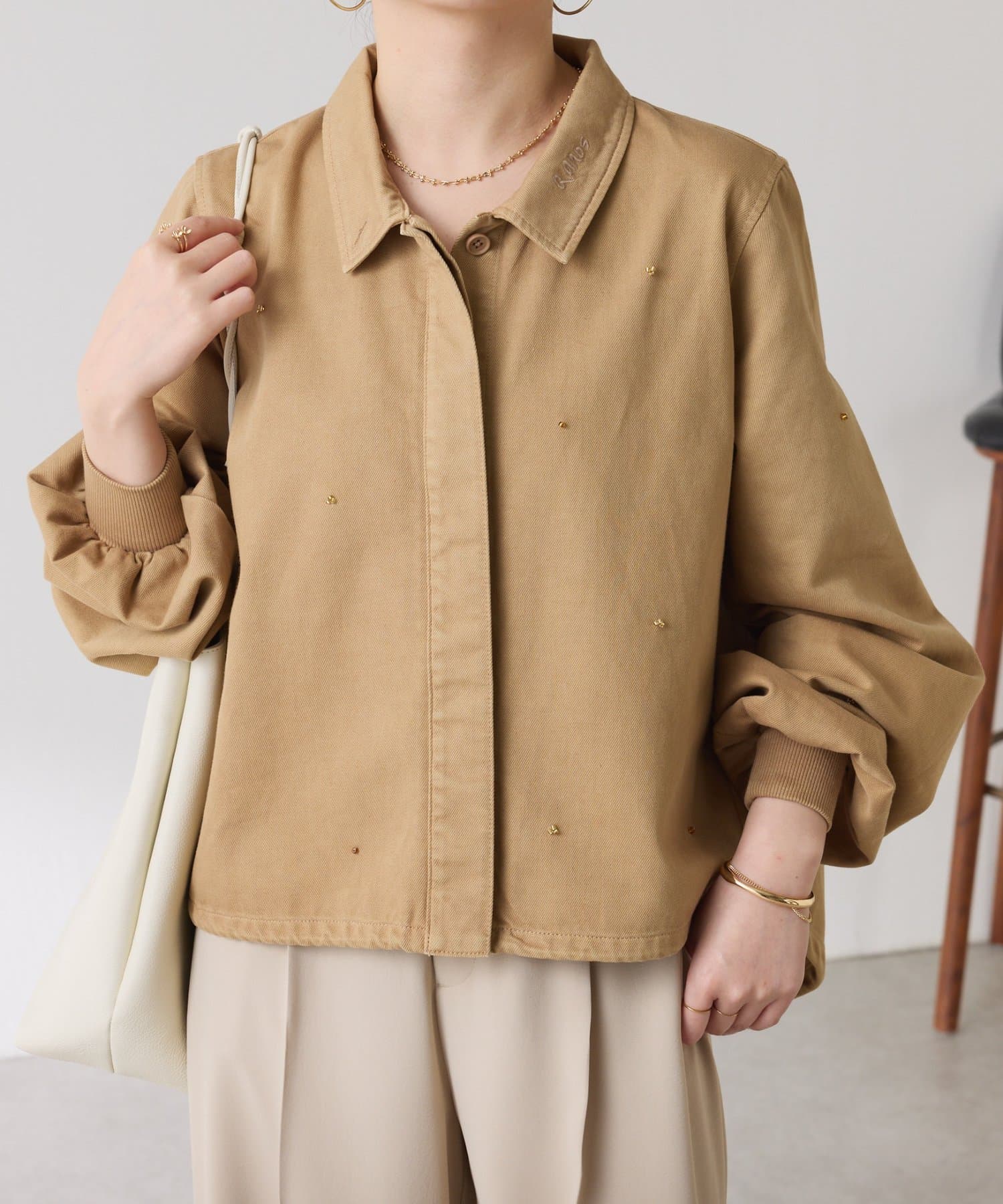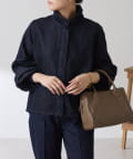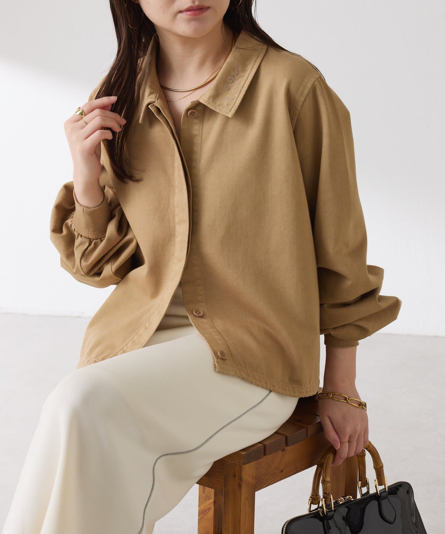 ・襟を立てても着用できます。スタンドカラーにするとブルゾンっぽい雰囲気に。下のボタンを開けて抜け感を出すのもおすすめです。