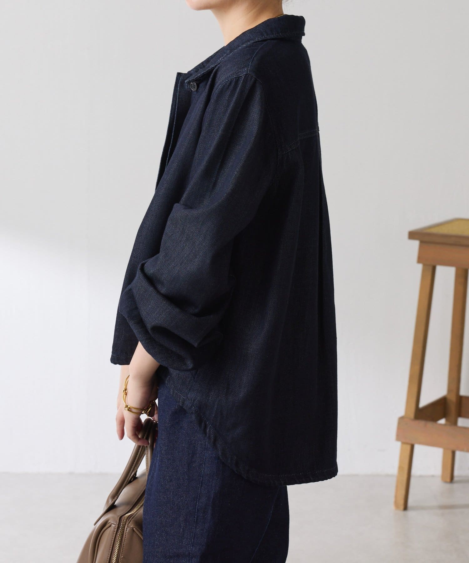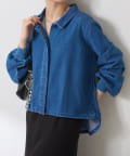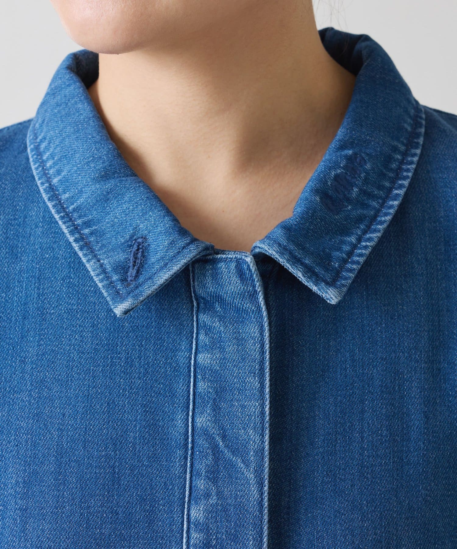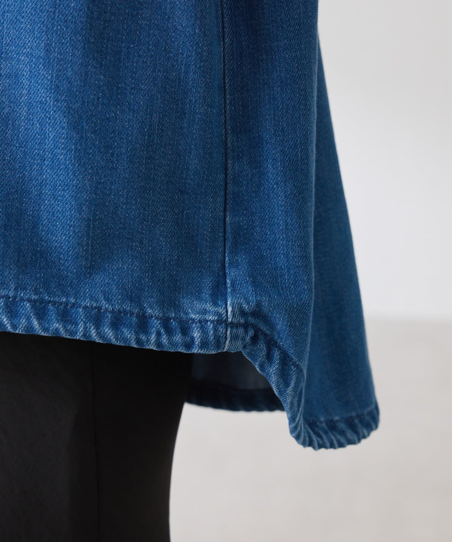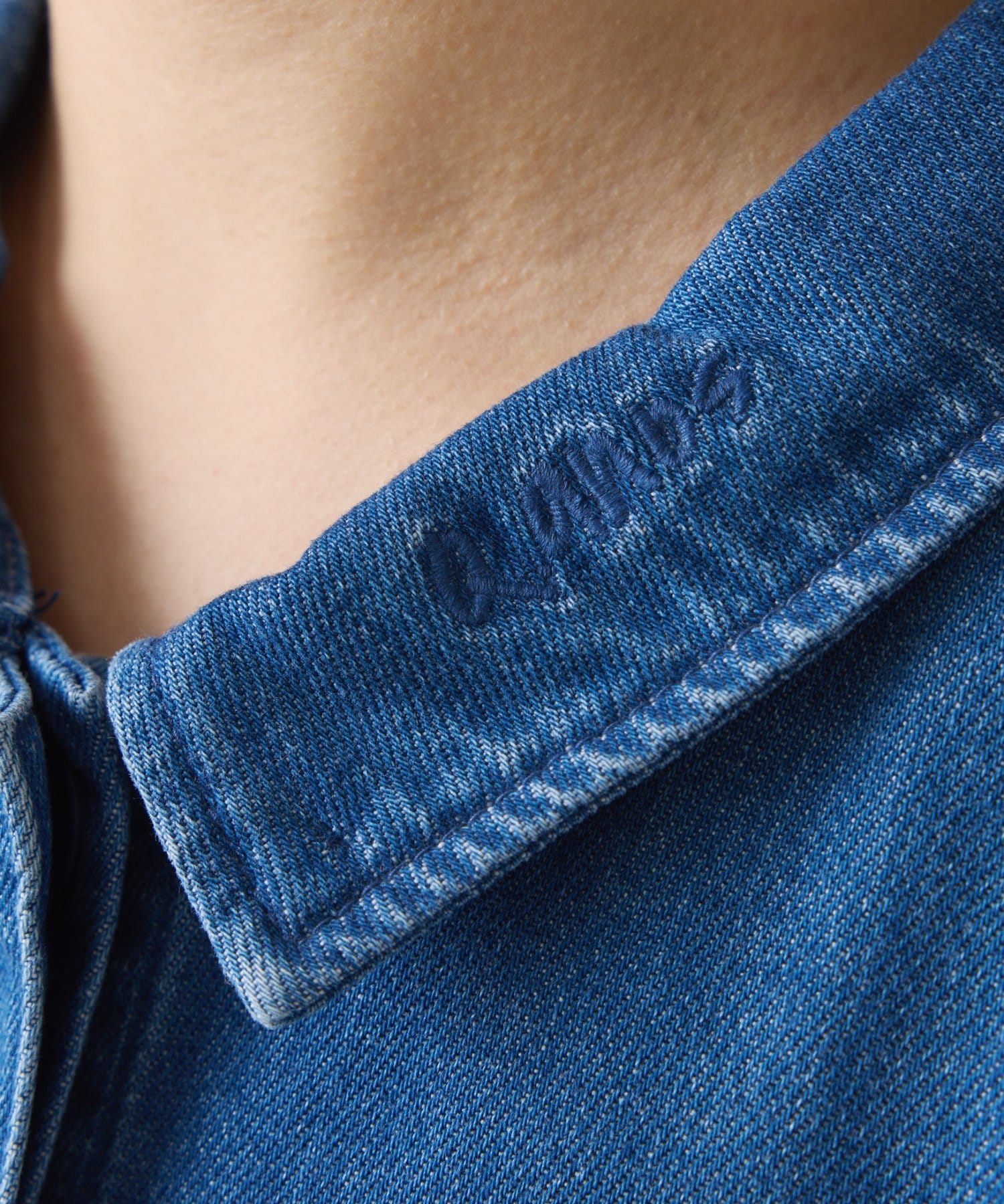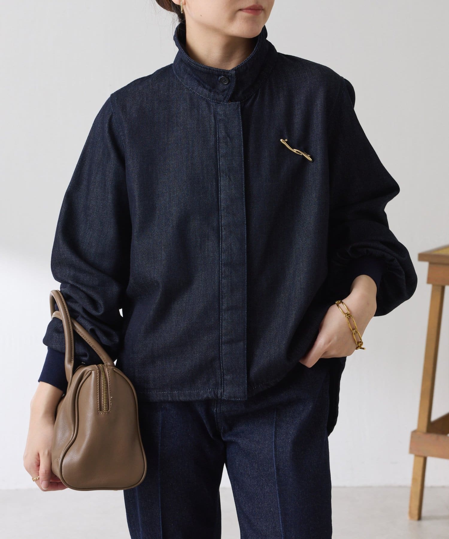 【アレンジを楽しめる】Q.anos ドロストスタンドカラーデニムシャツ