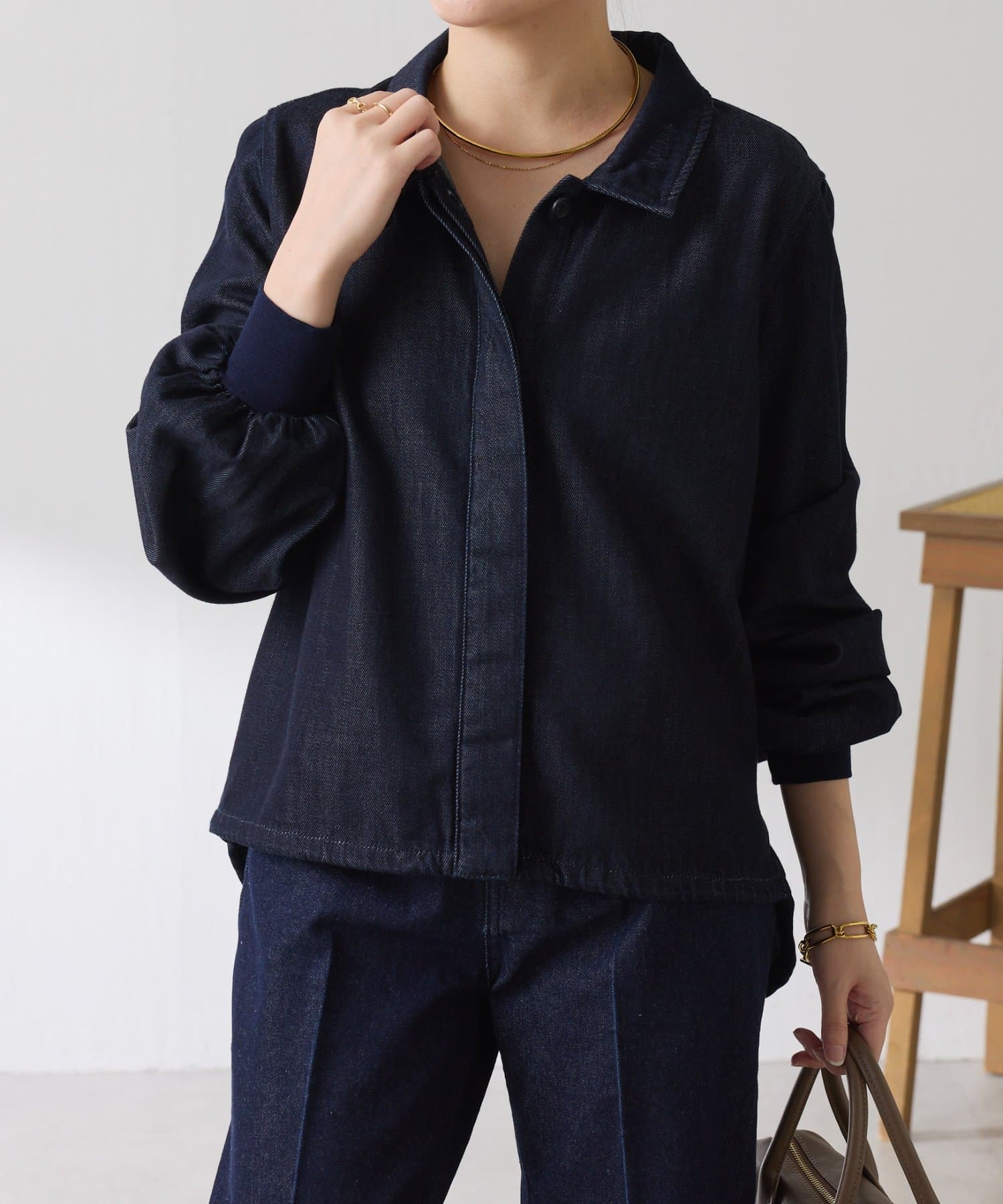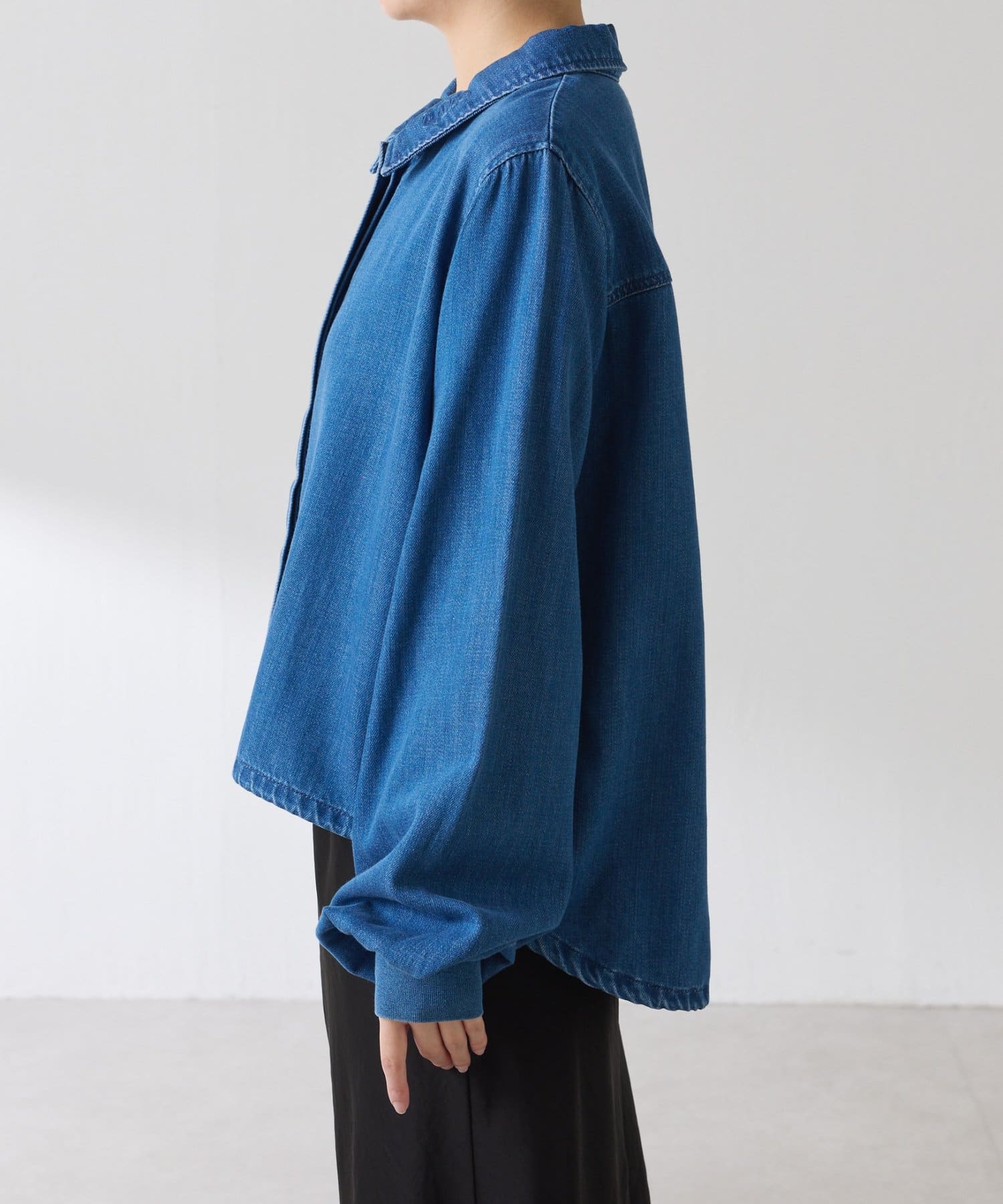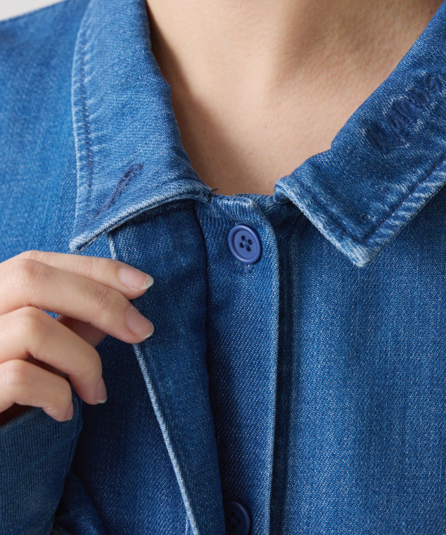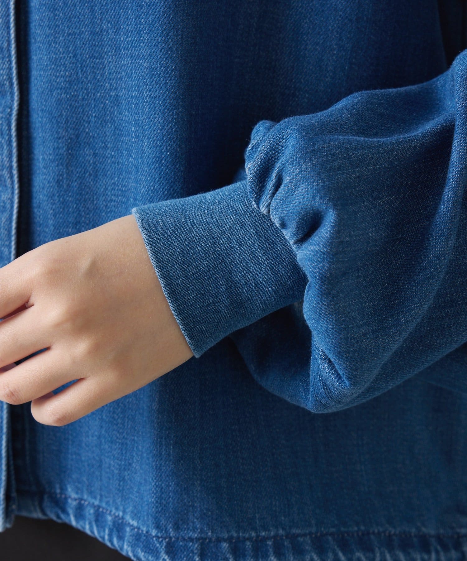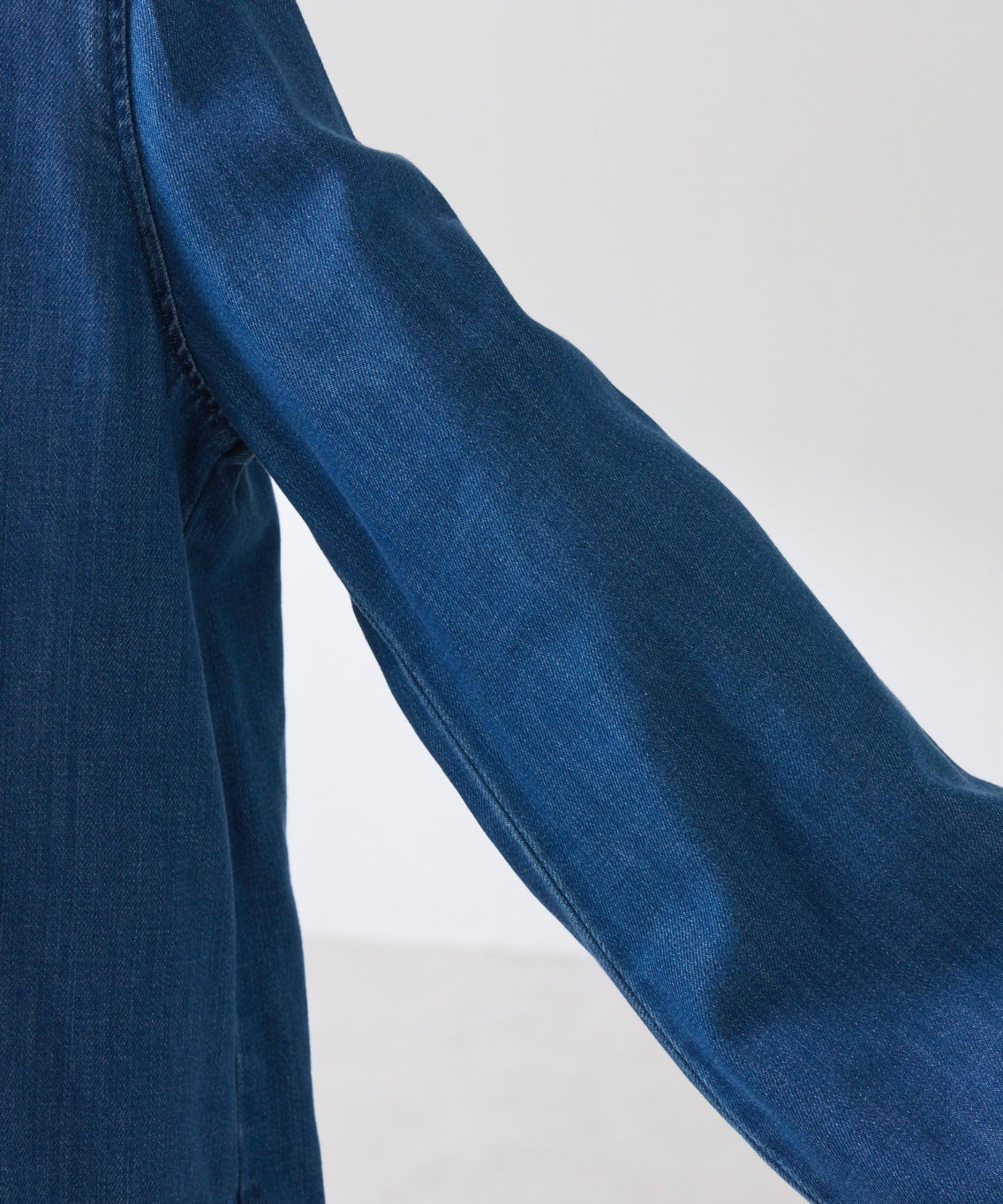 【アレンジを楽しめる】Q.anos ドロストスタンドカラーデニムシャツ