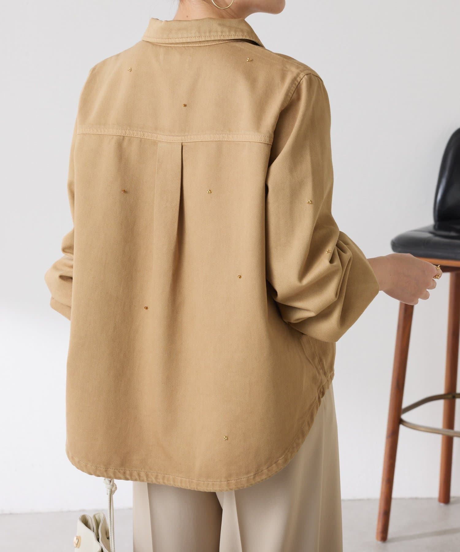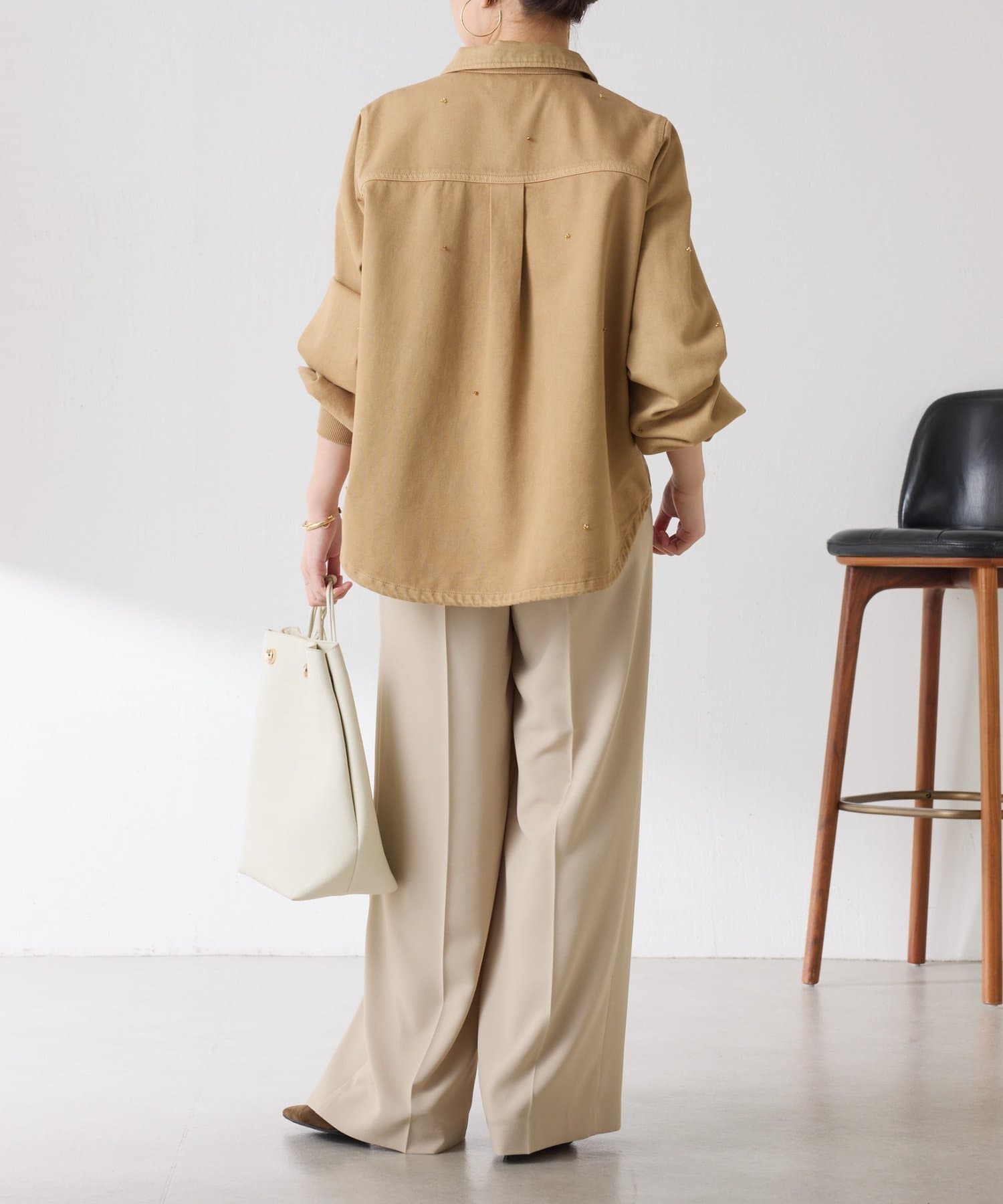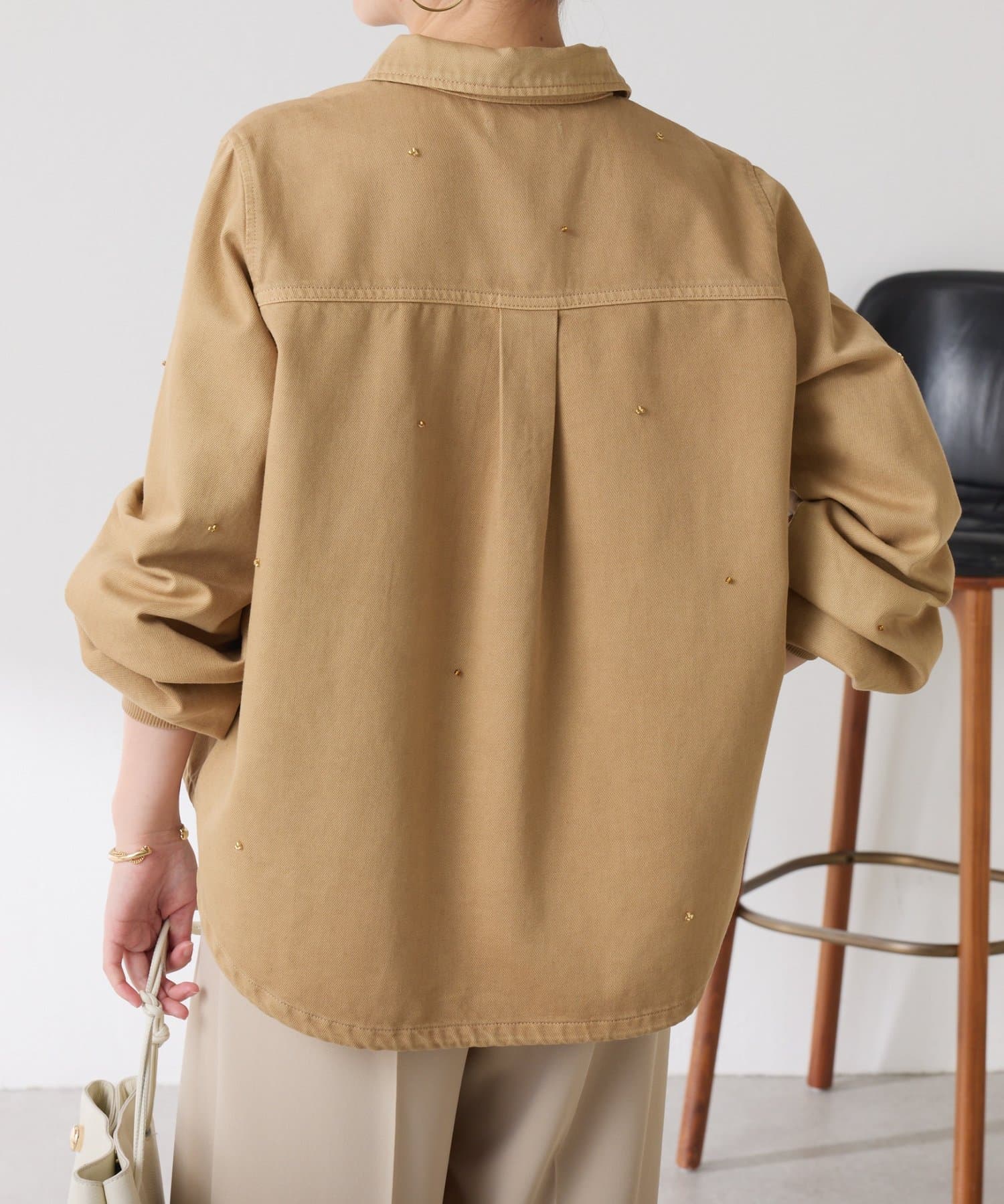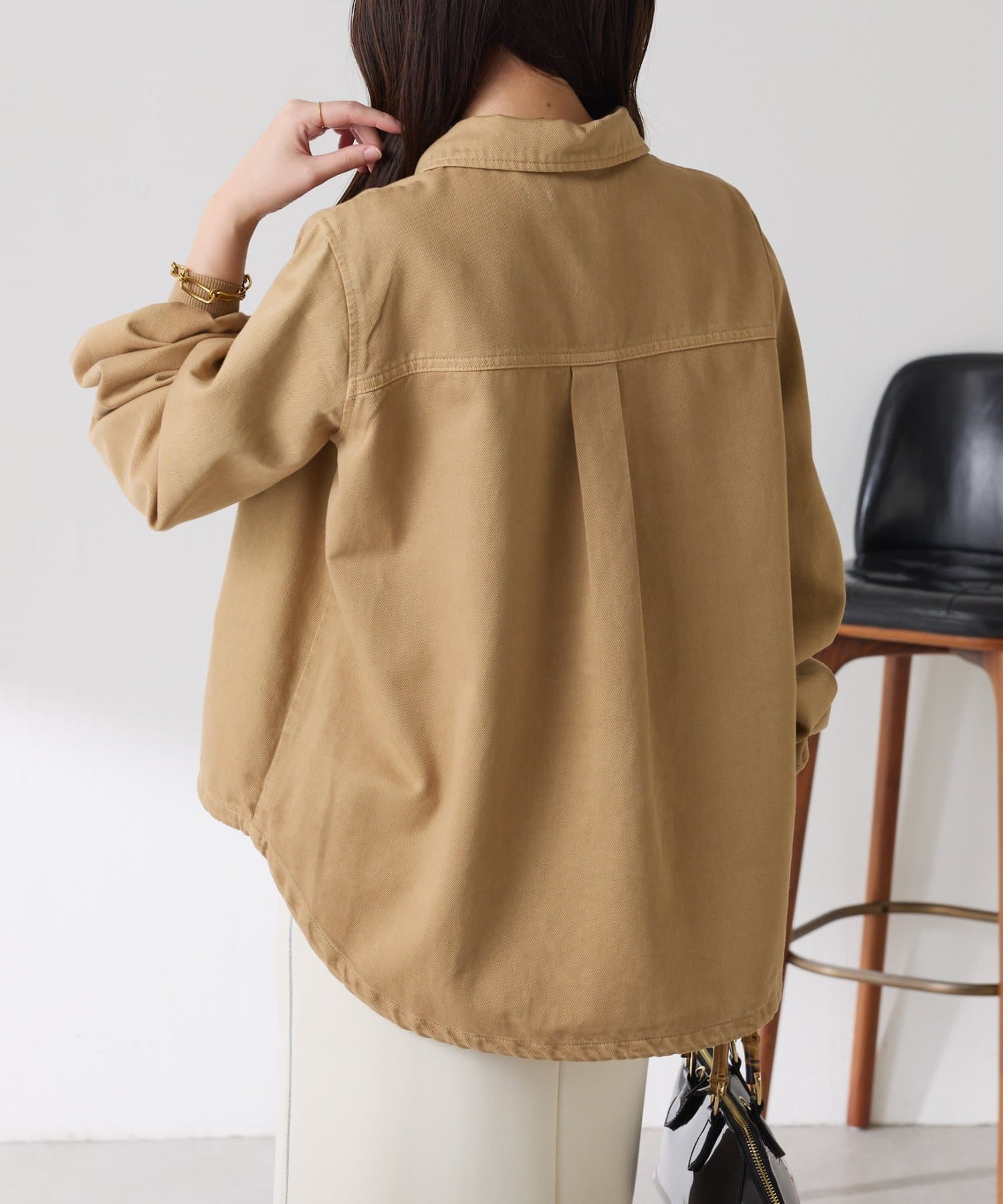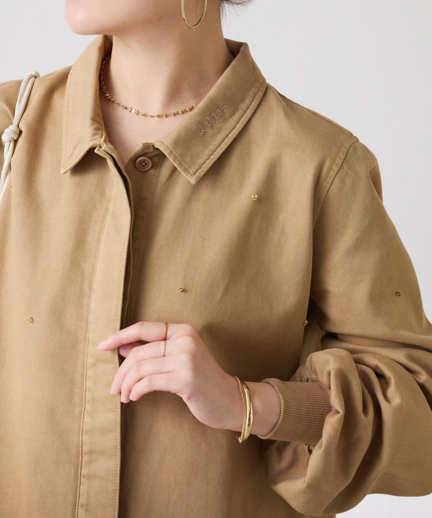 【アレンジを楽しめる】Q.anos ドロストスタンドカラーデニムシャツ