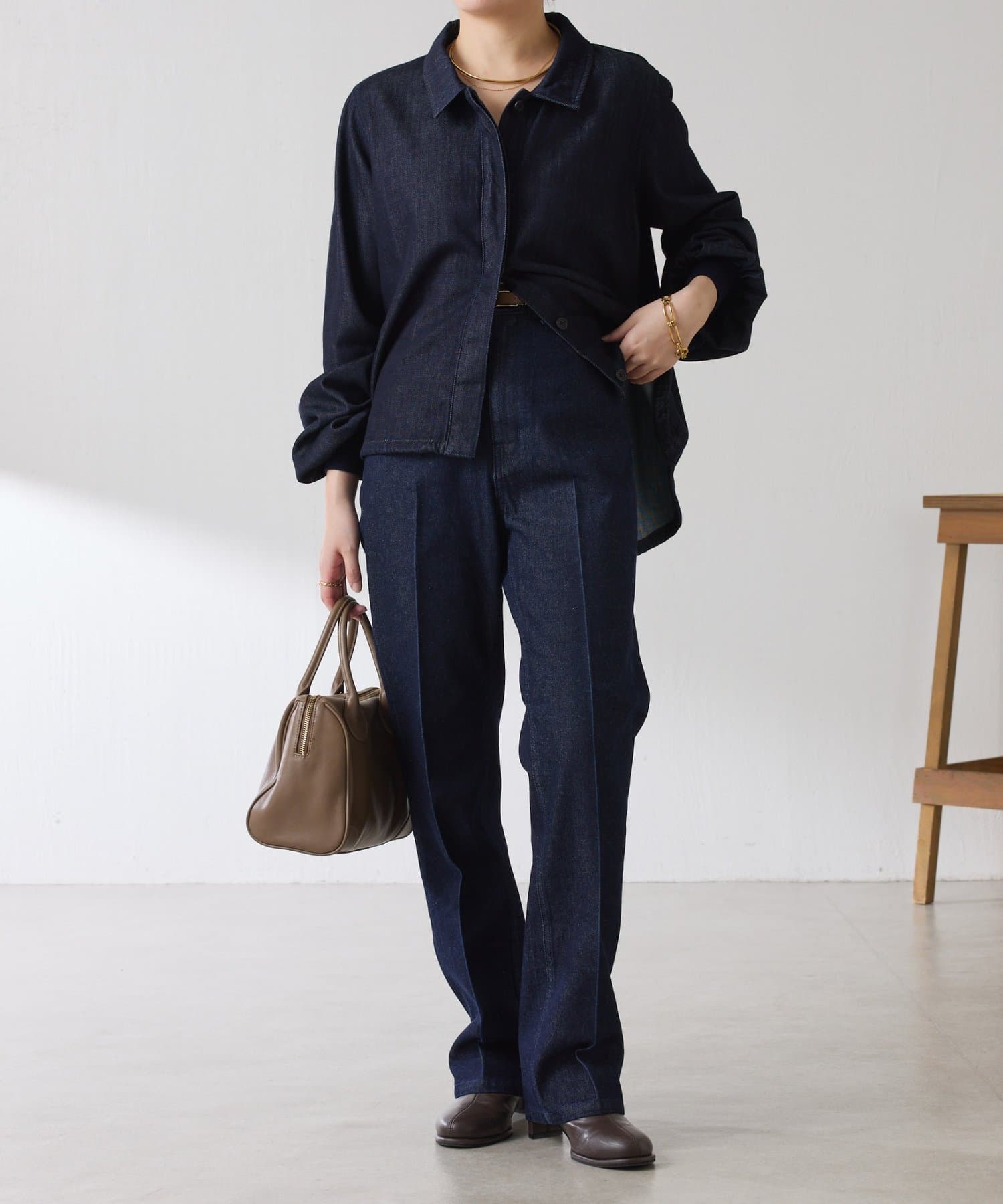 インディゴは同色の【Q.anos ストレートデニム CLQ5061103A0002】とセットアップとして着るのもおすすめです。