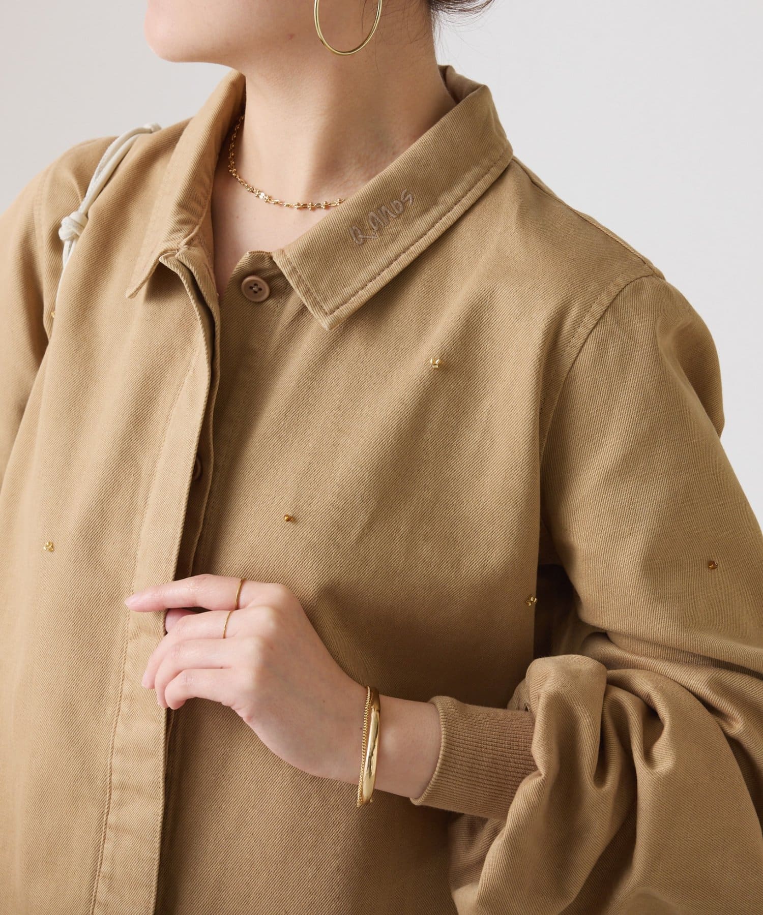 ・襟には“Q.anos”のロゴが刺繍されており顔周りに華やかさをプラスしました。