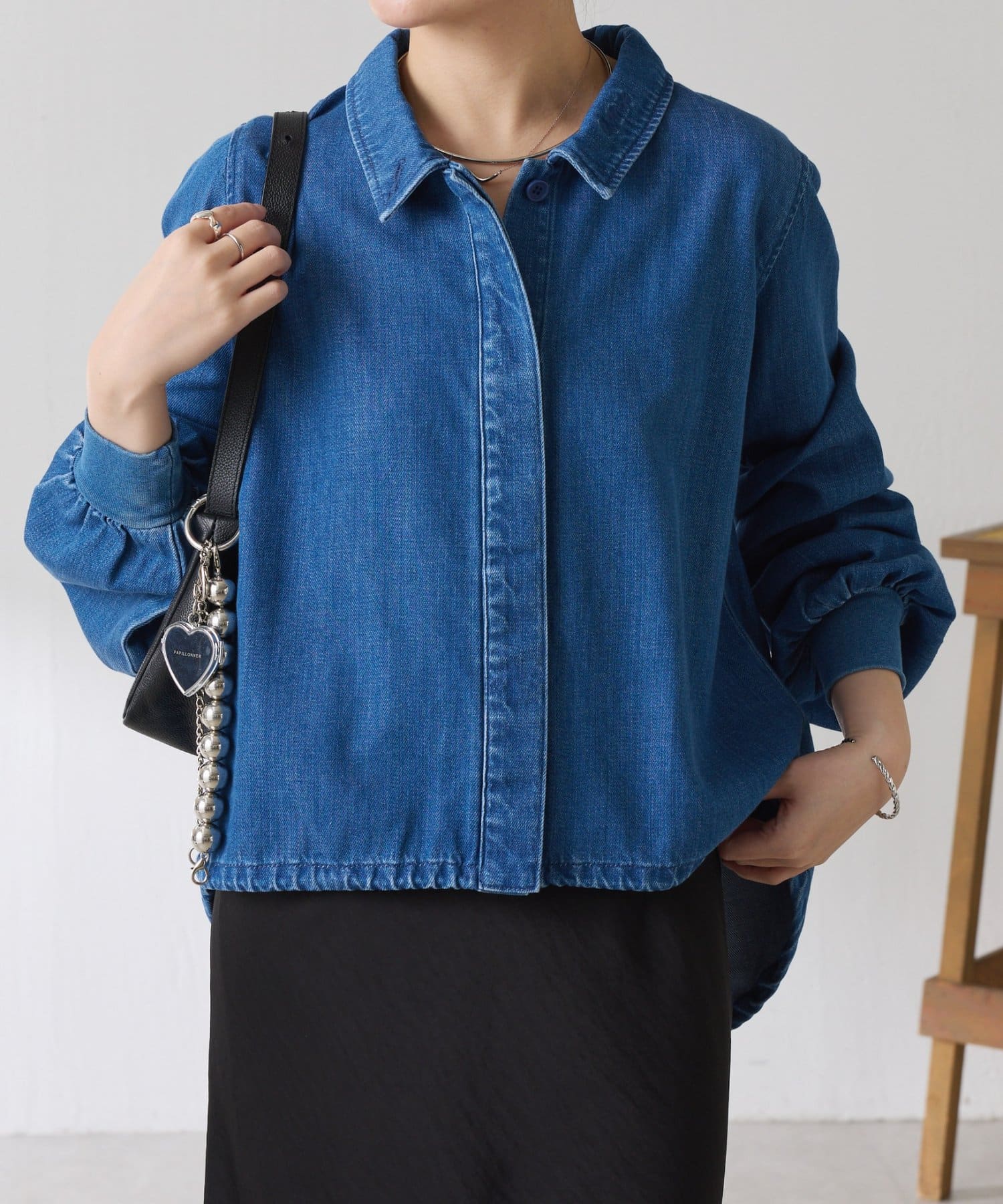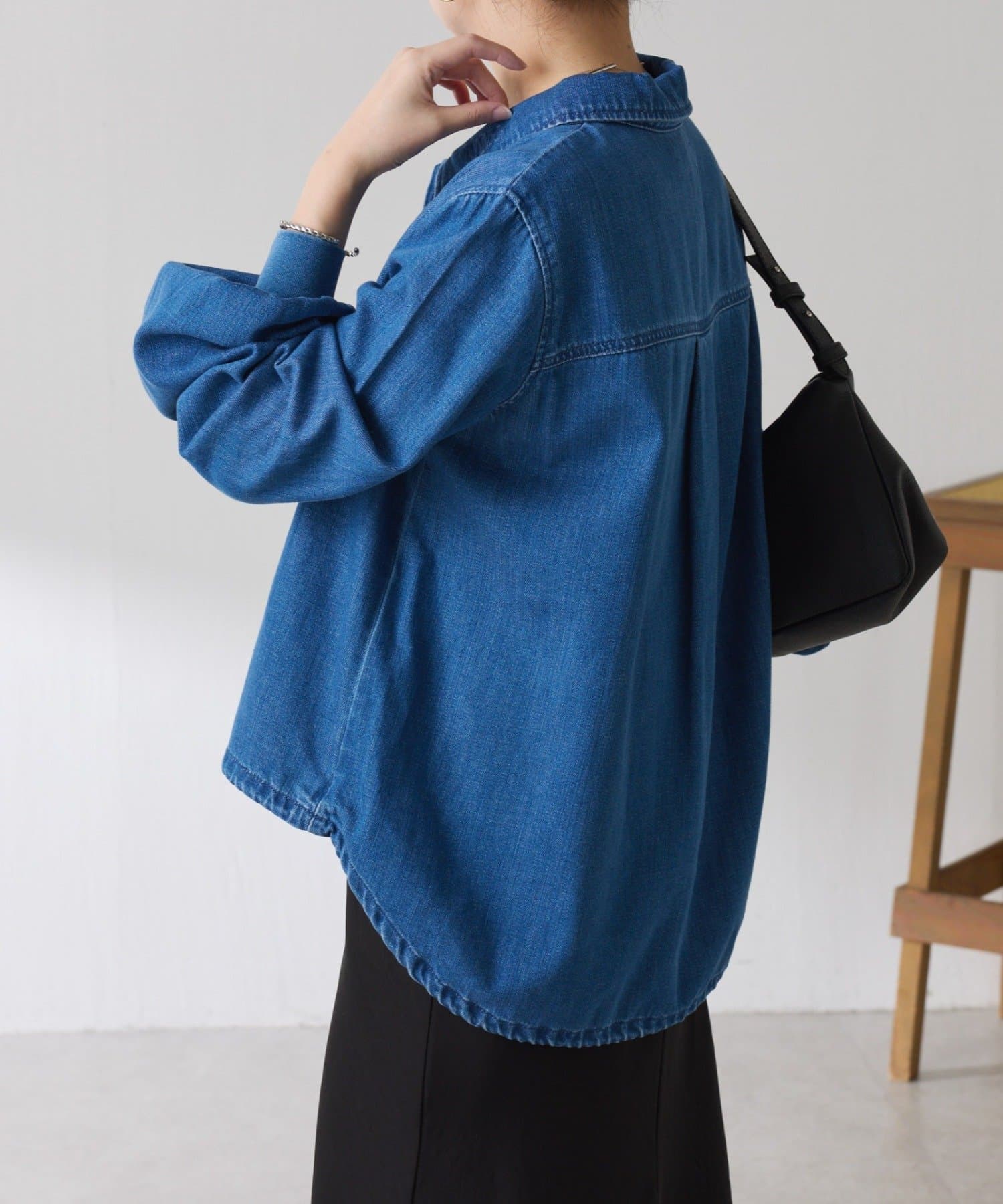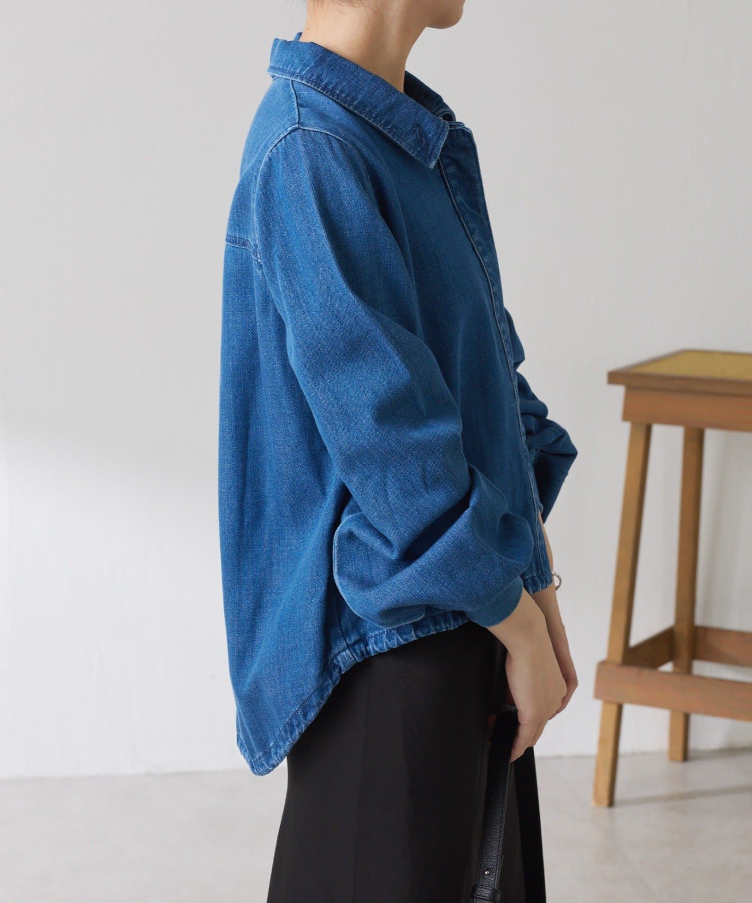 着方をアレンジできるドロスト付きデニムシャツ