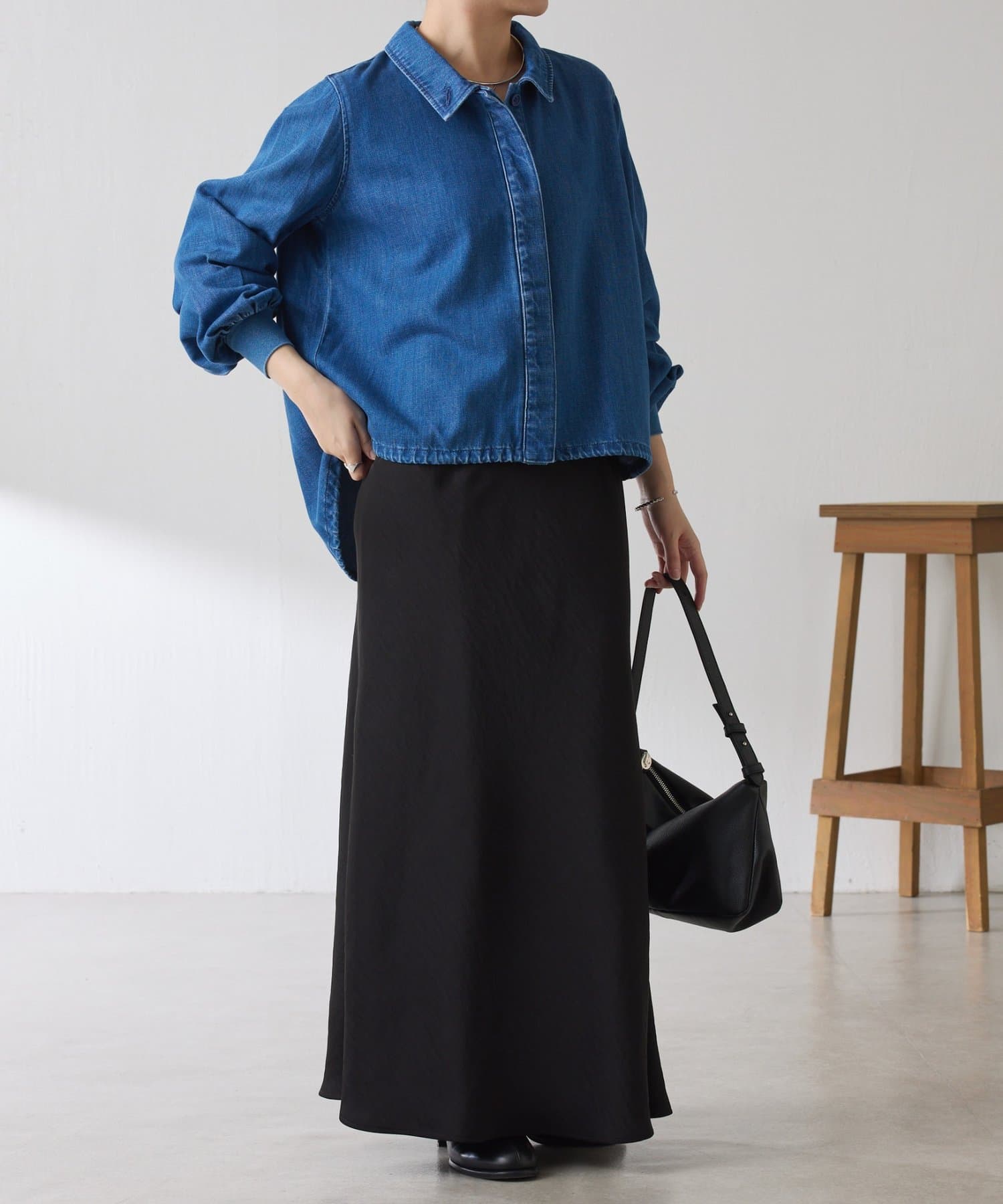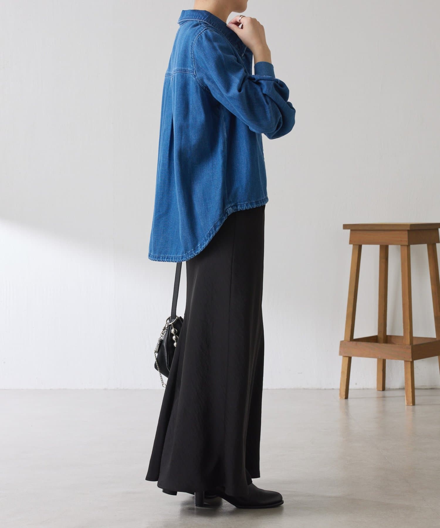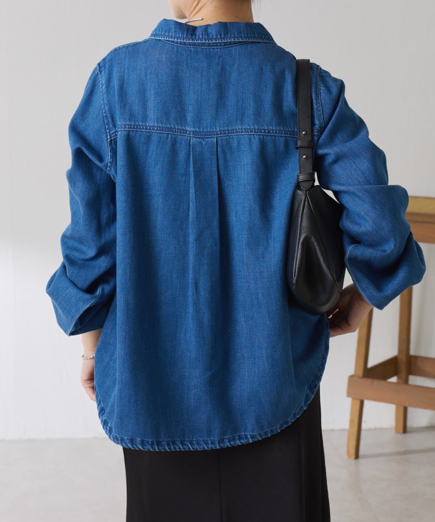 着方をアレンジできるドロスト付きデニムシャツ
