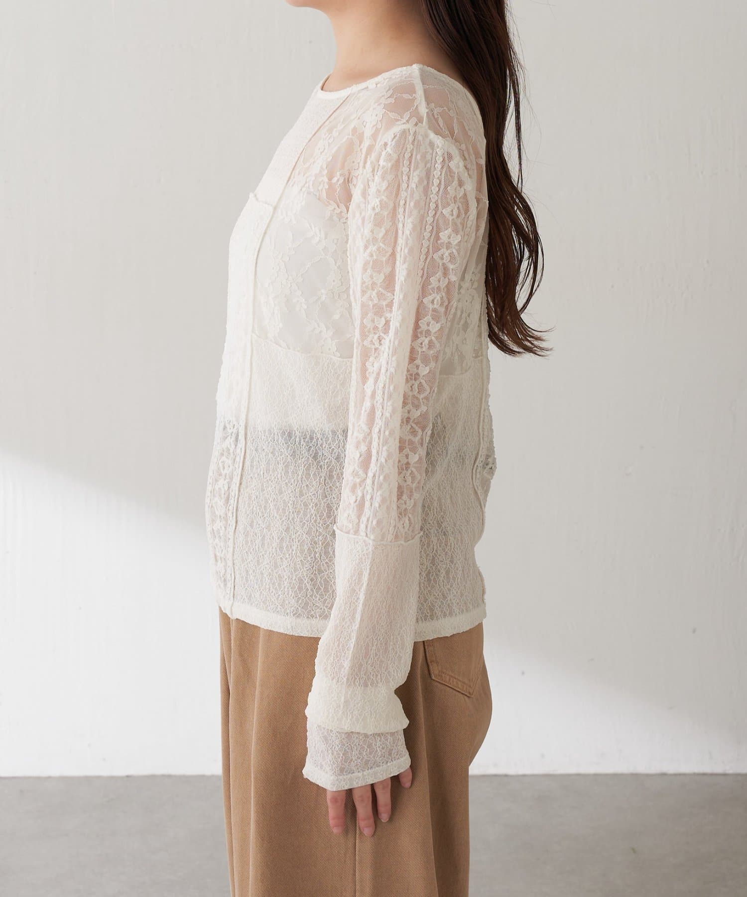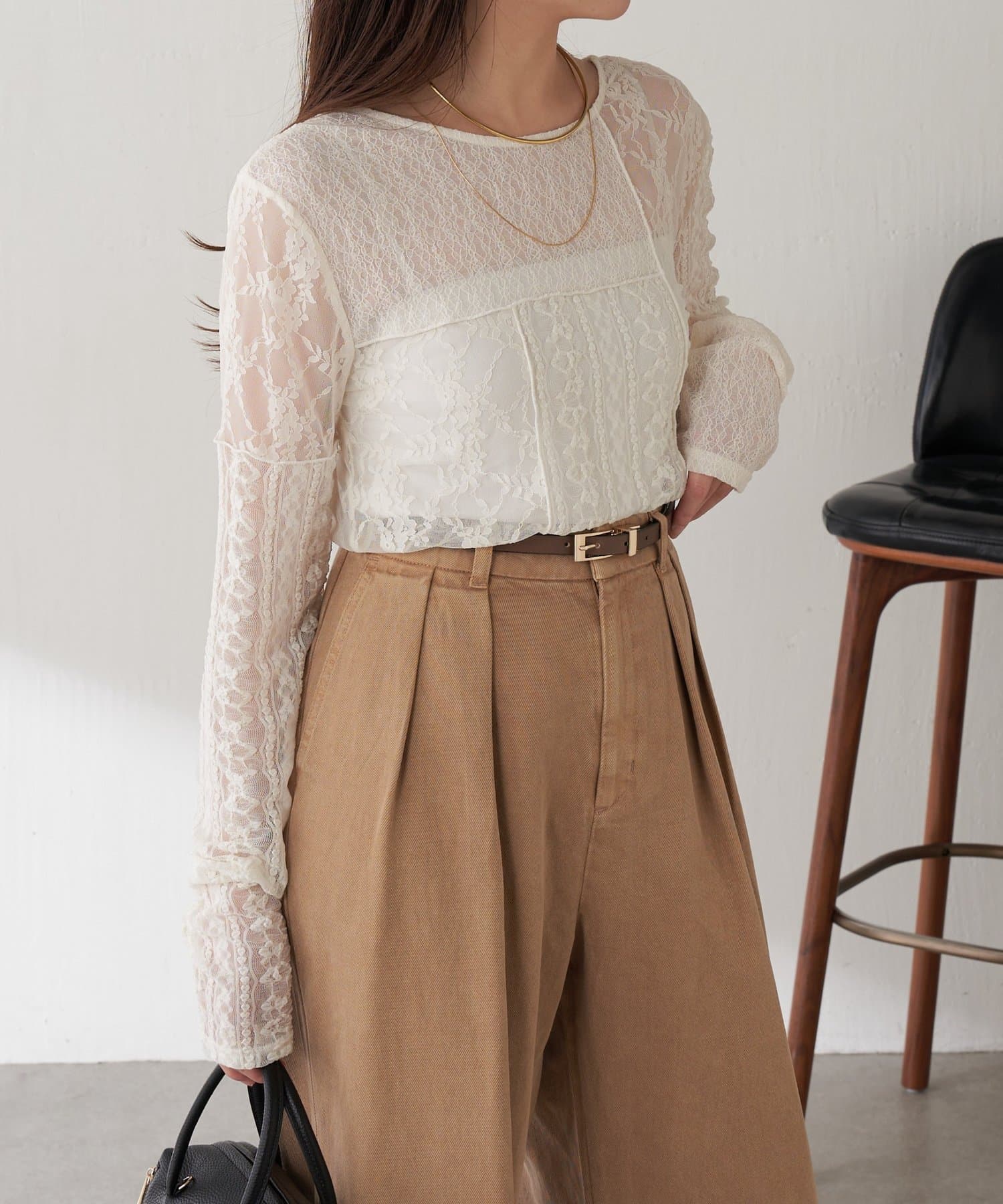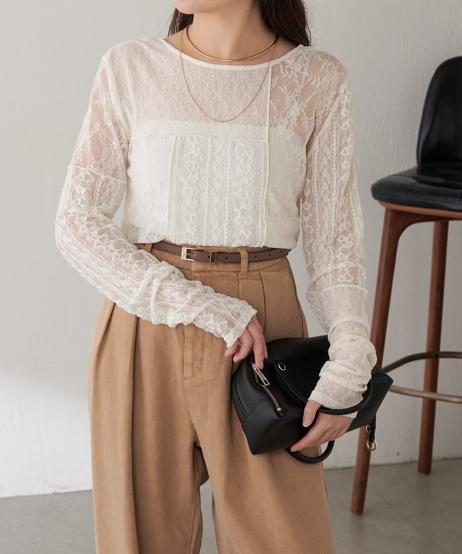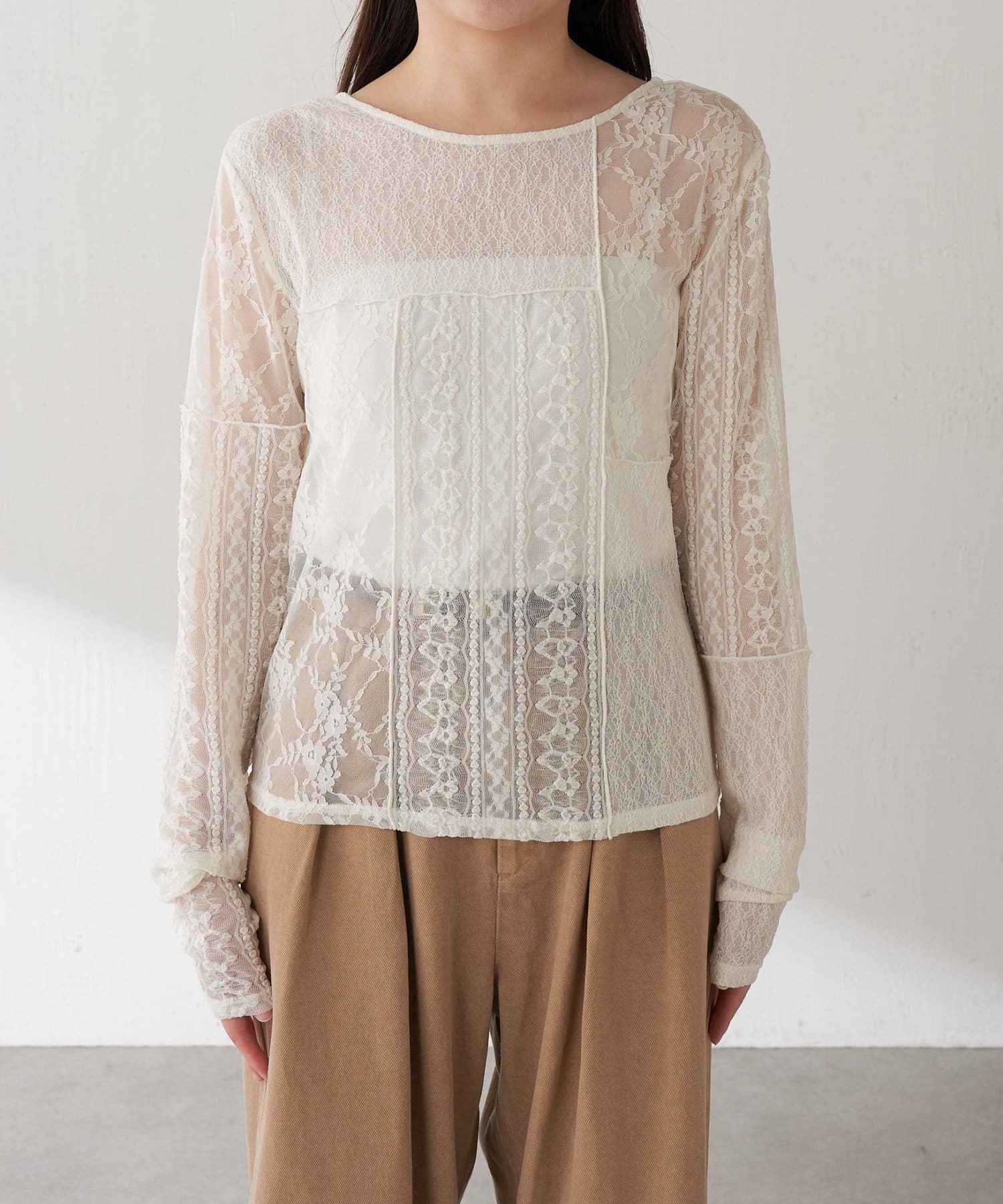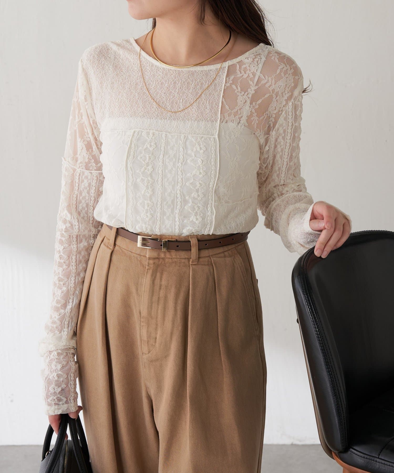 ・異なる柄のレースをパッチワーク状に配置したワンランク上のレースロンT。