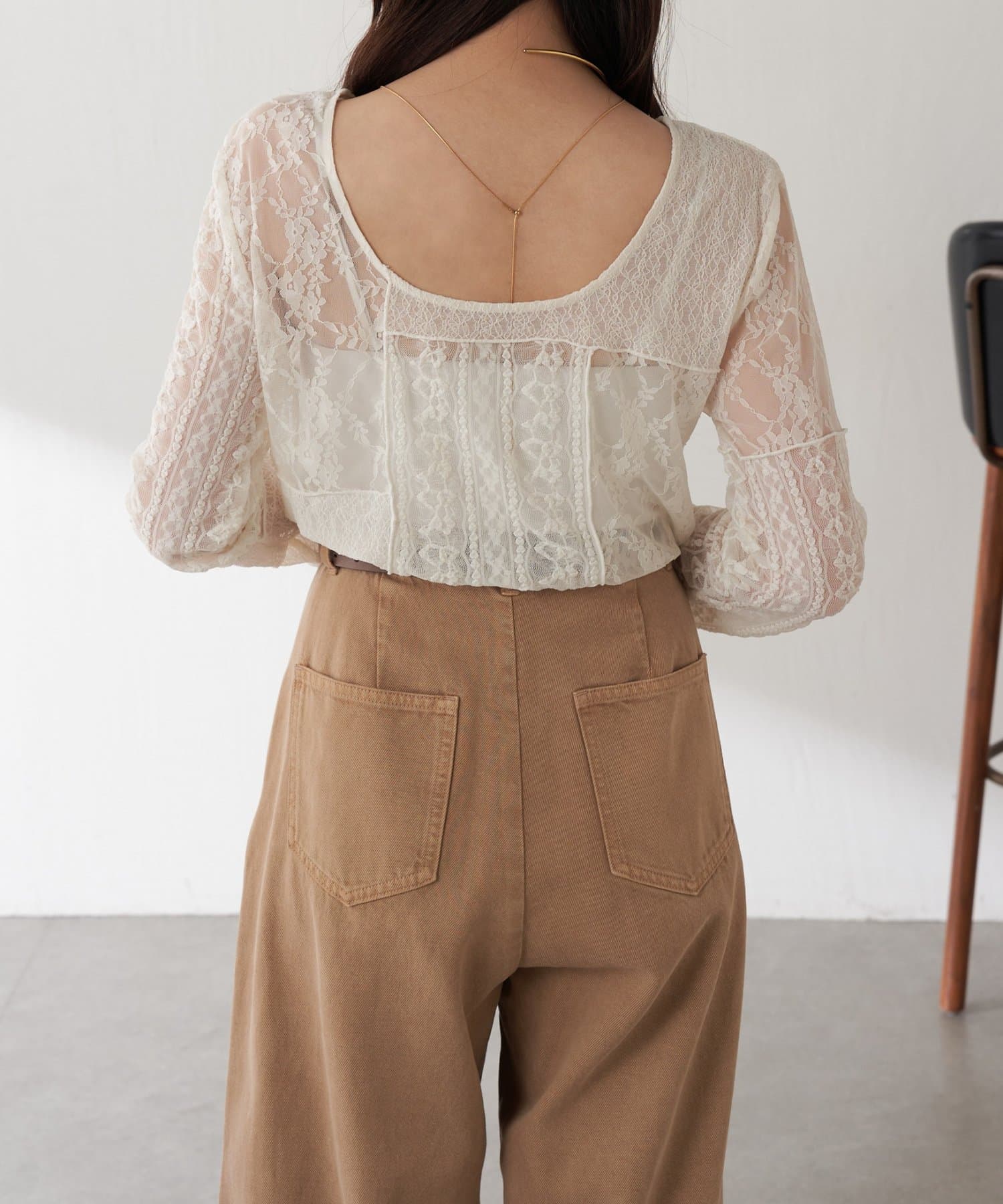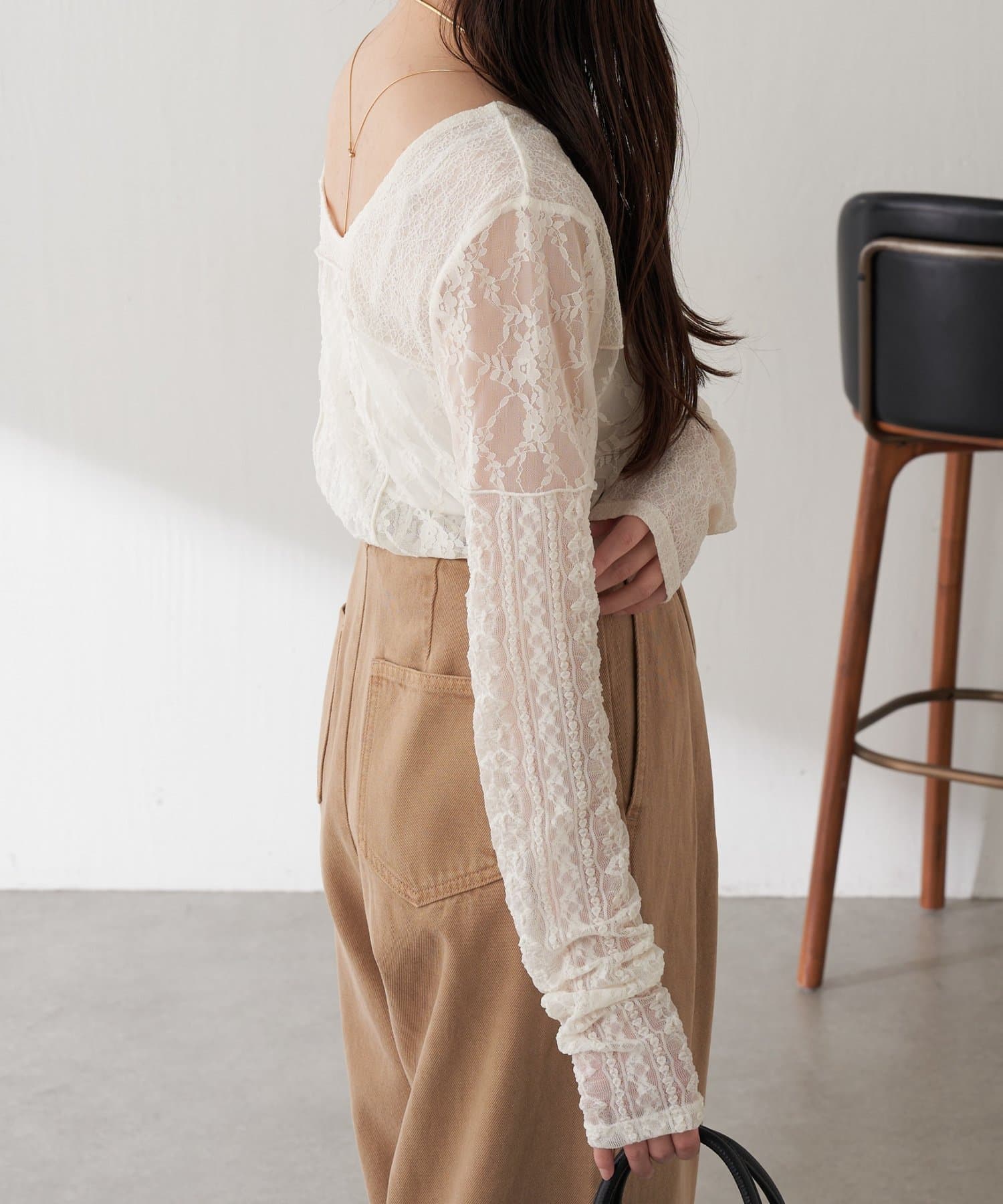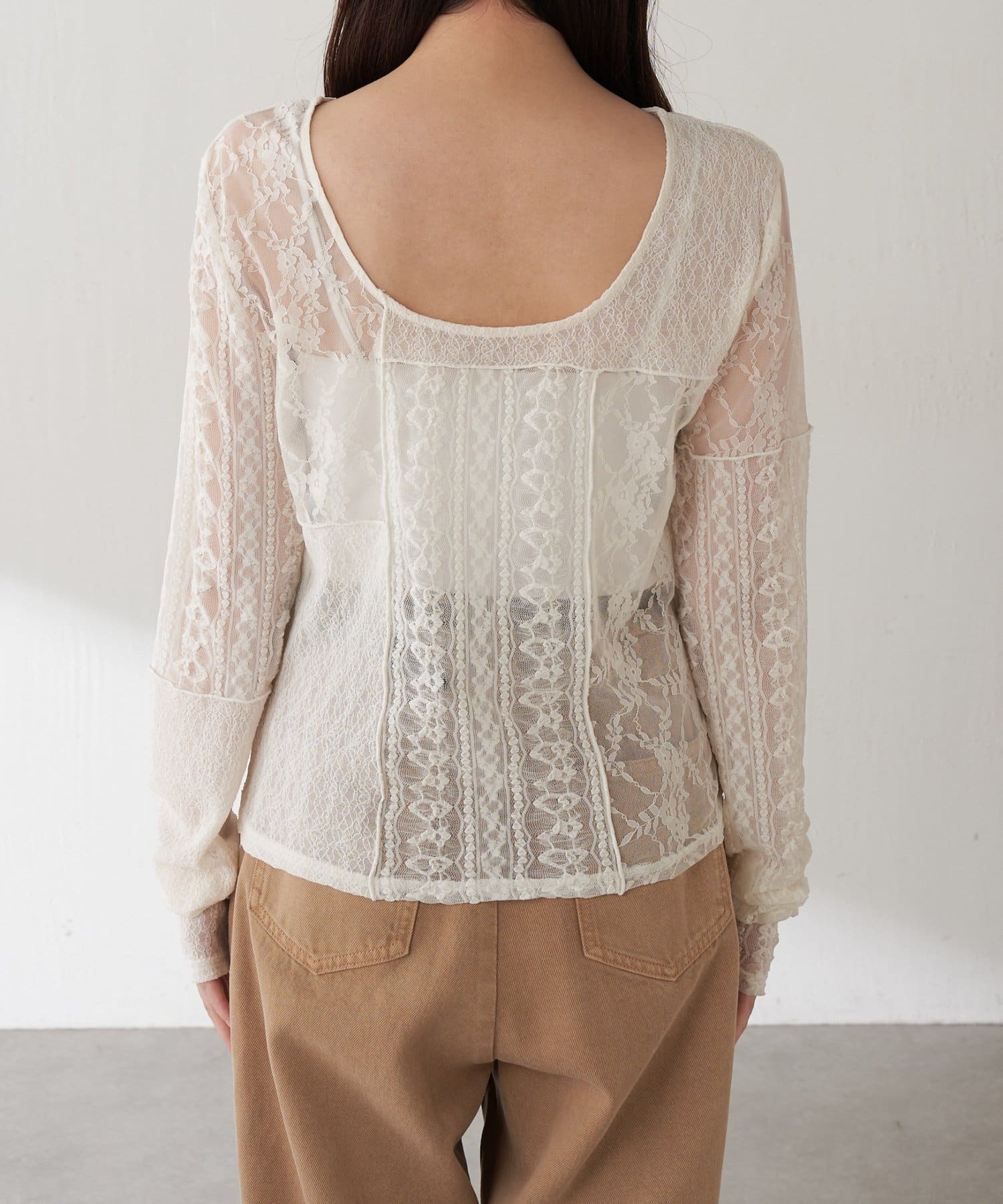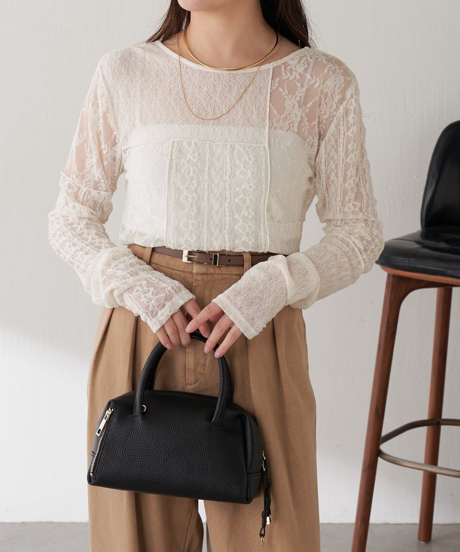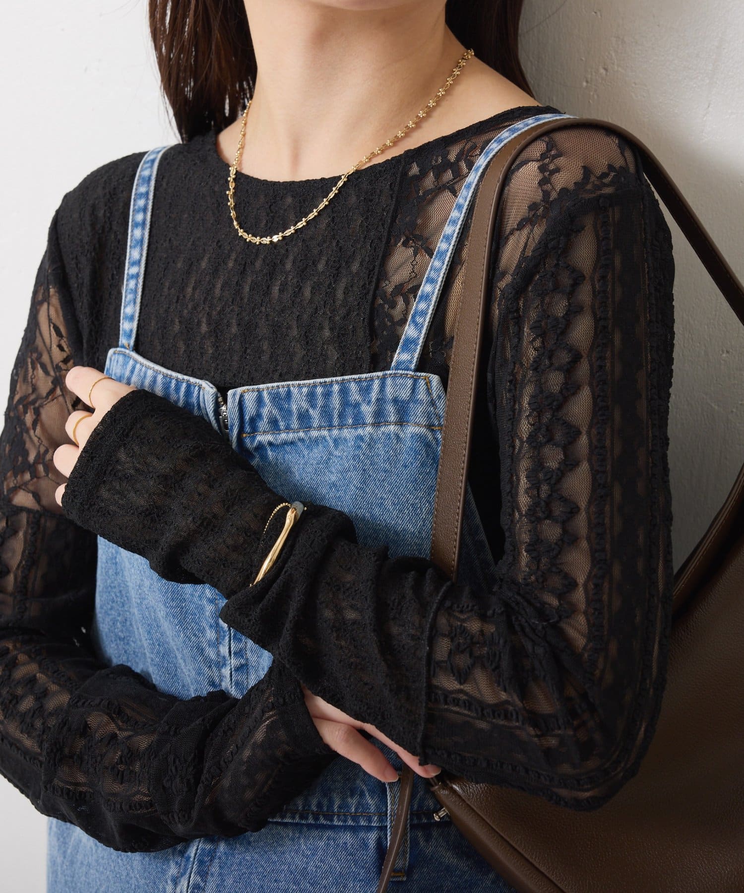 ・異なる柄のレースをパッチワーク状に配置したワンランク上のレースロンT。