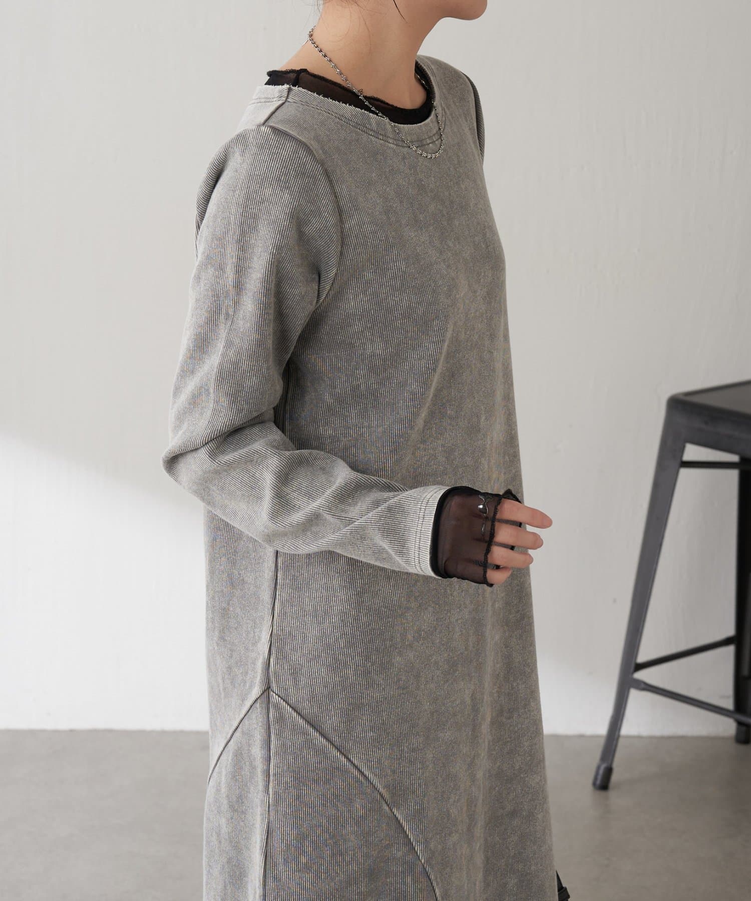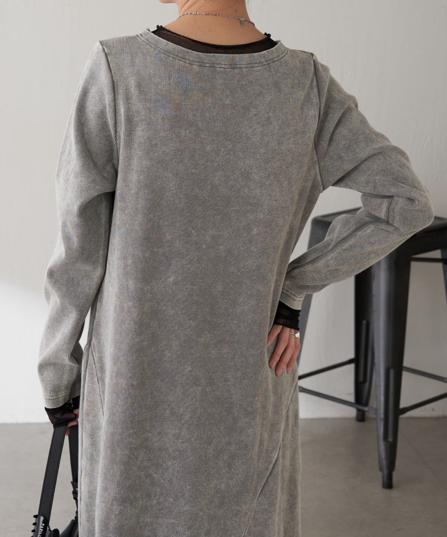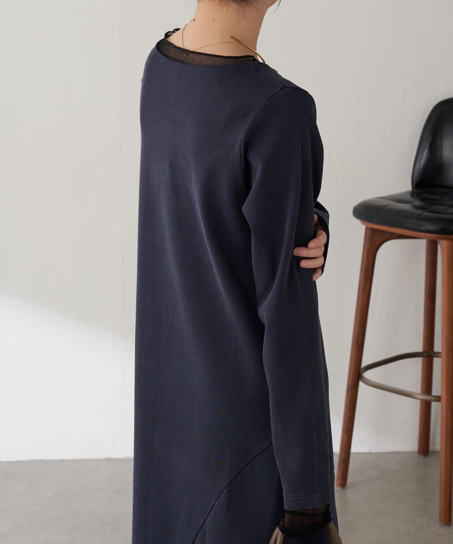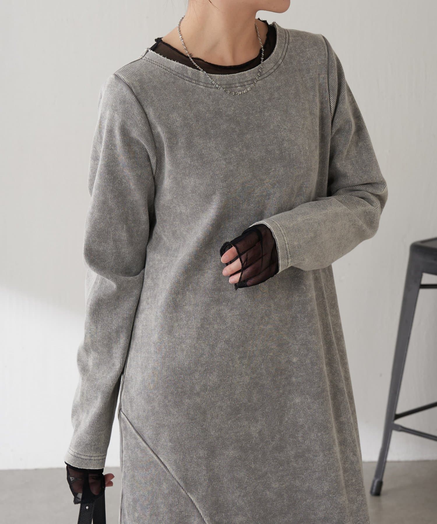 ・袖口と襟にチュールがレイヤードしているようなデザインで1枚でも気映える楽ちんワンピース。
