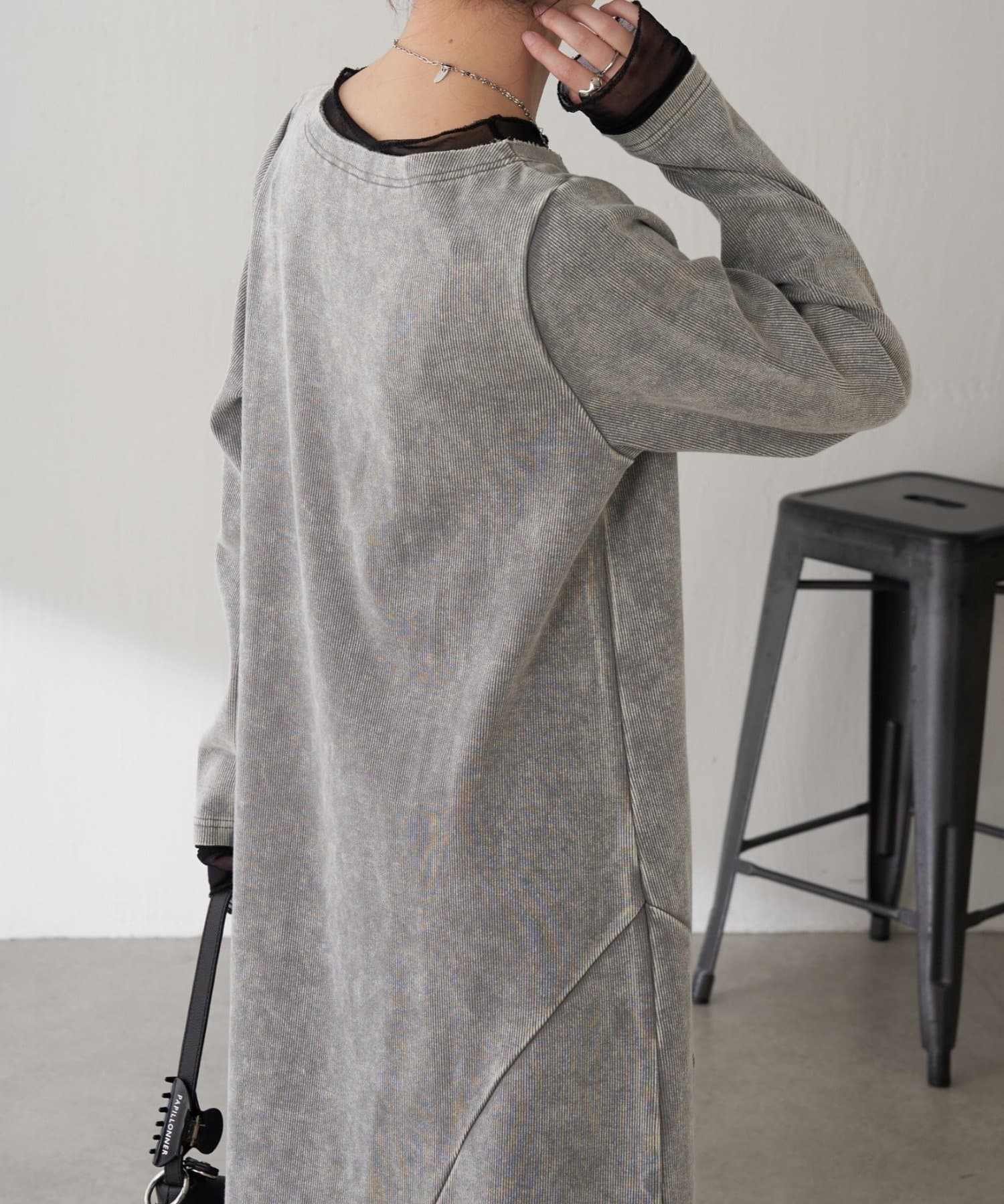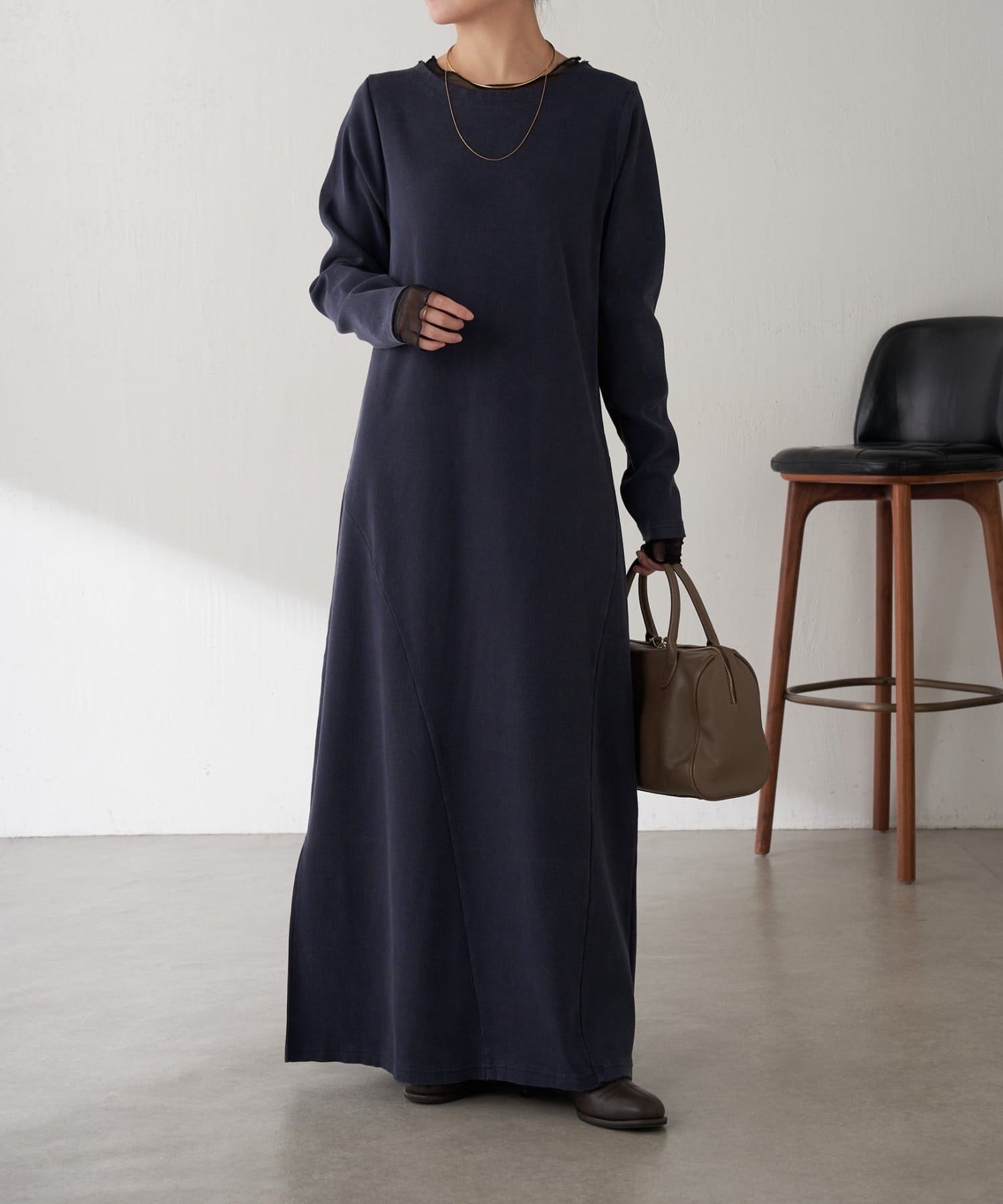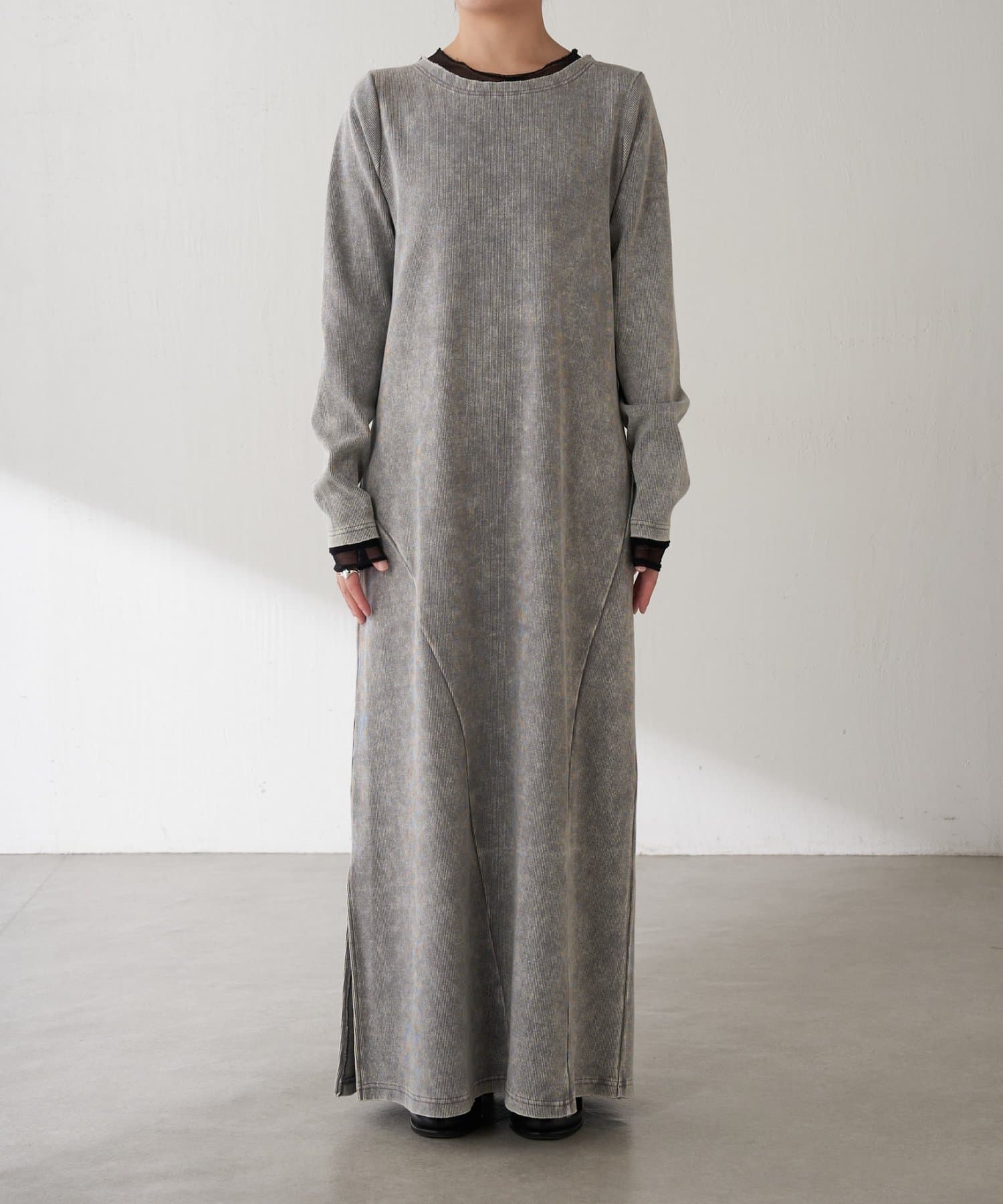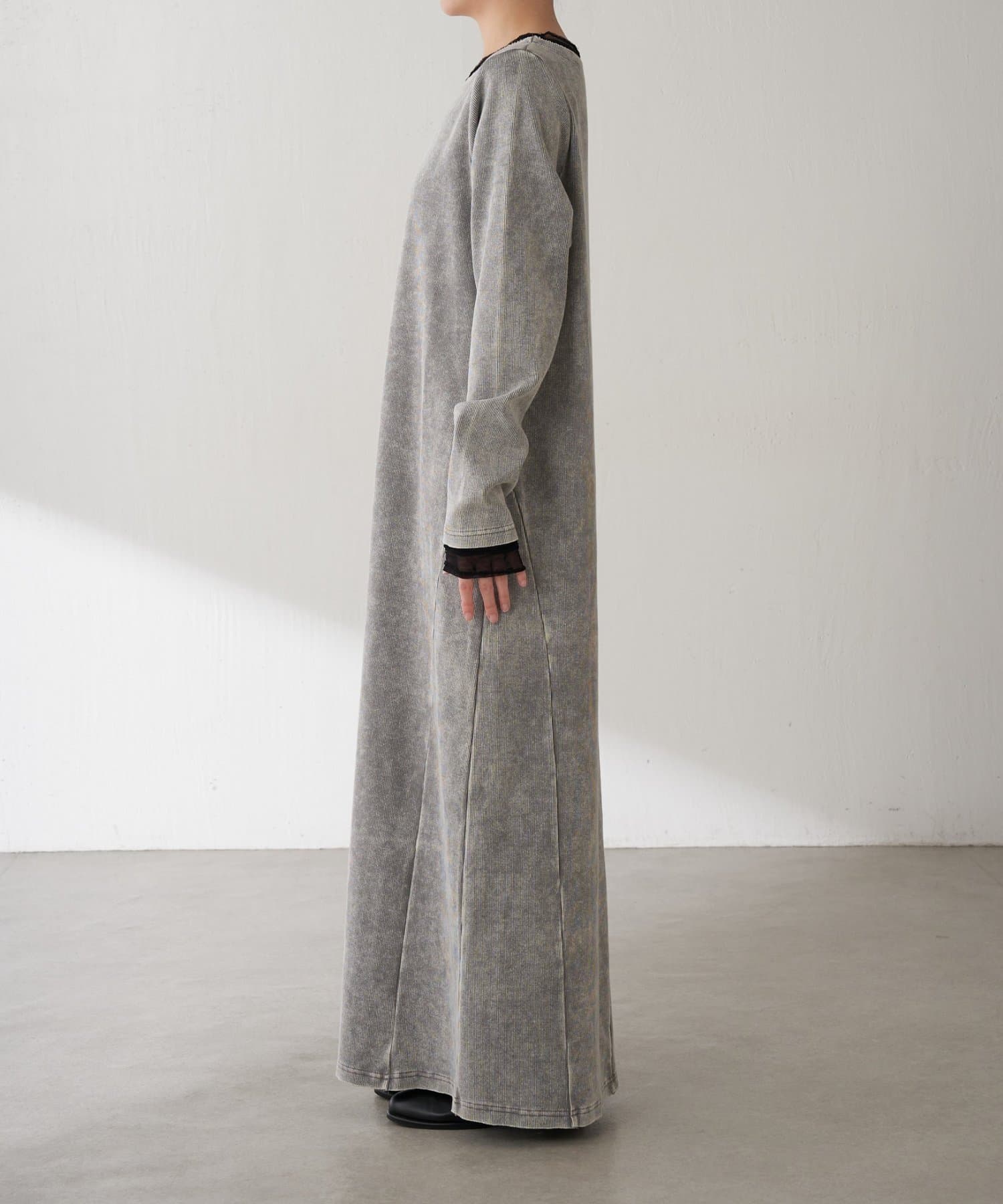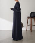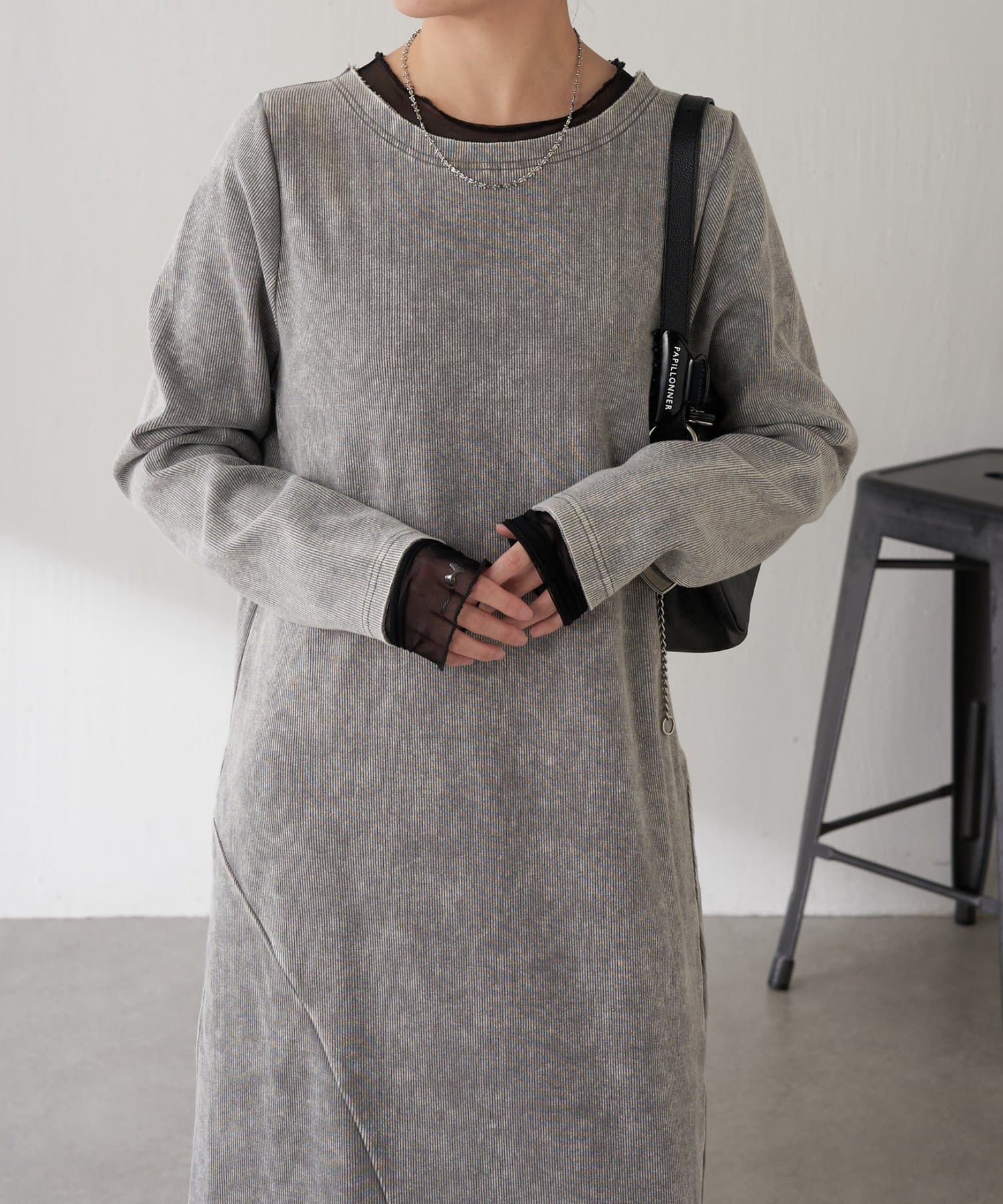 ・袖口と襟にチュールがレイヤードしているようなデザインで1枚でも気映える楽ちんワンピース。