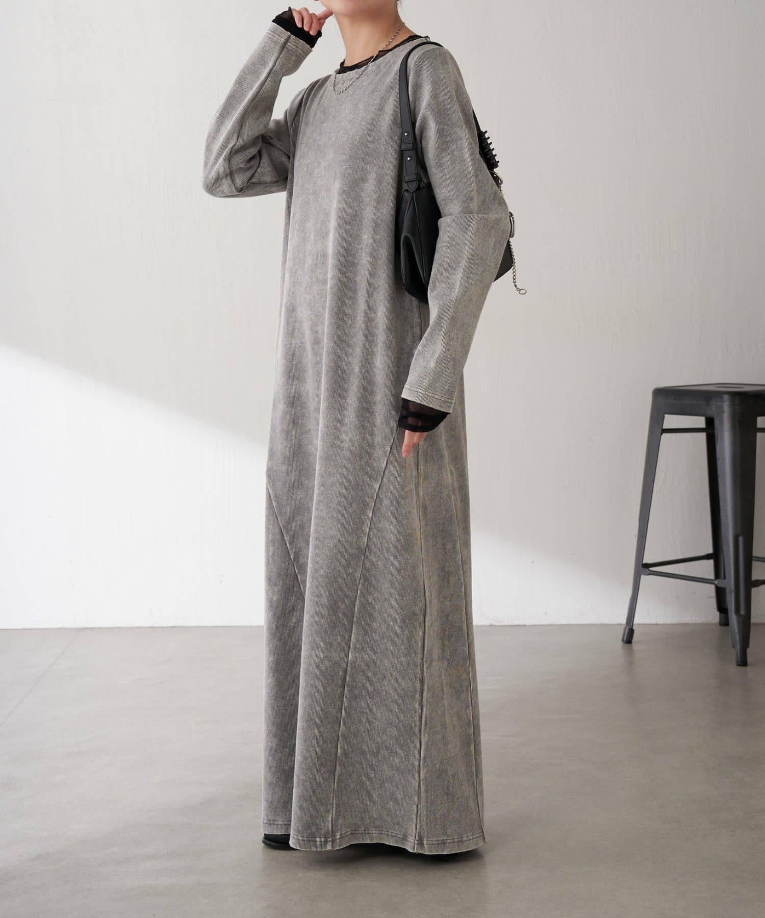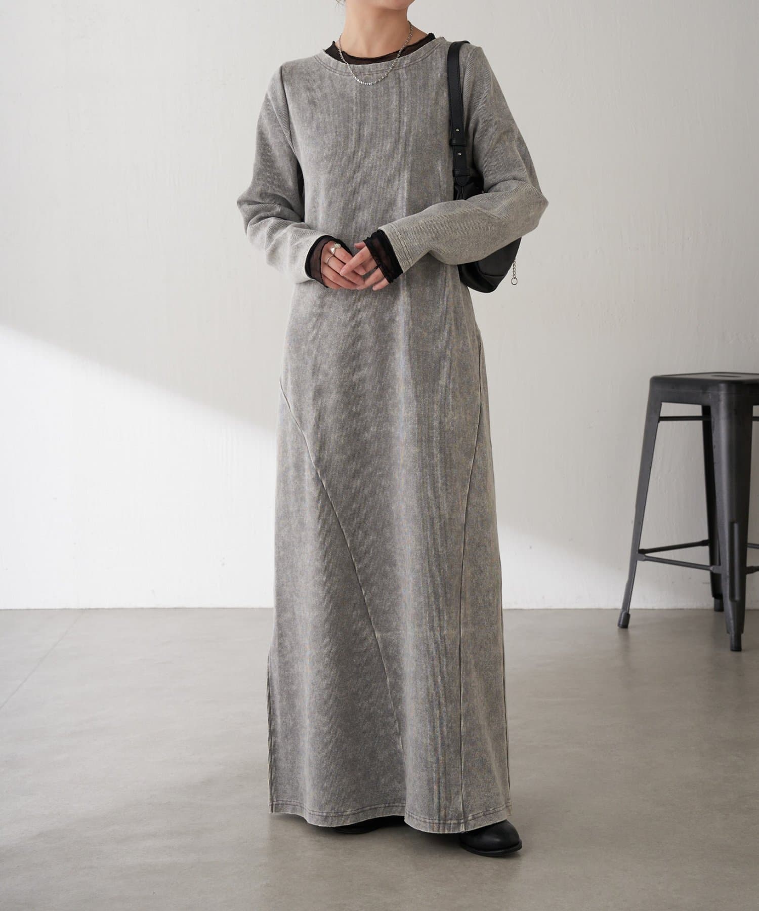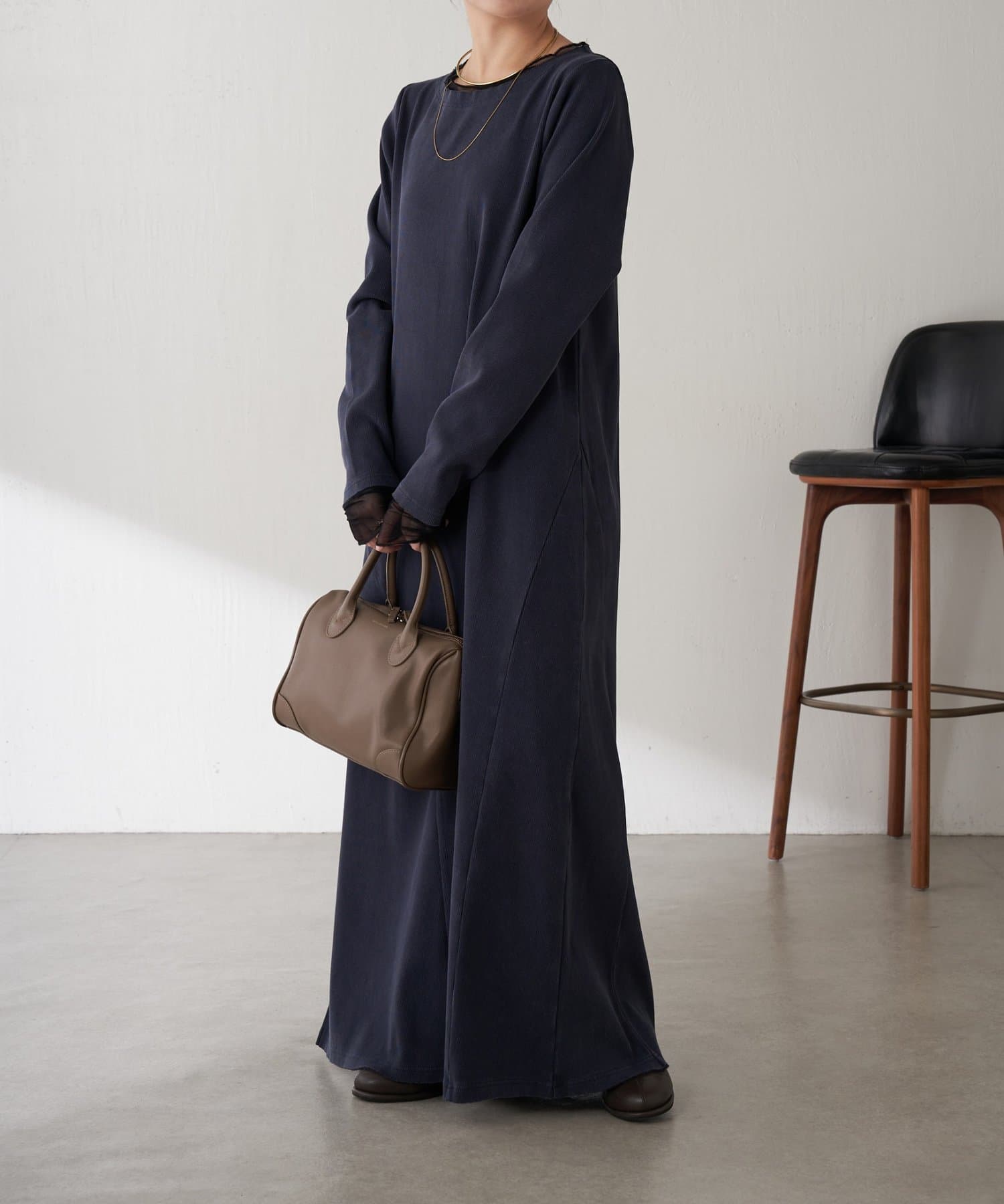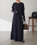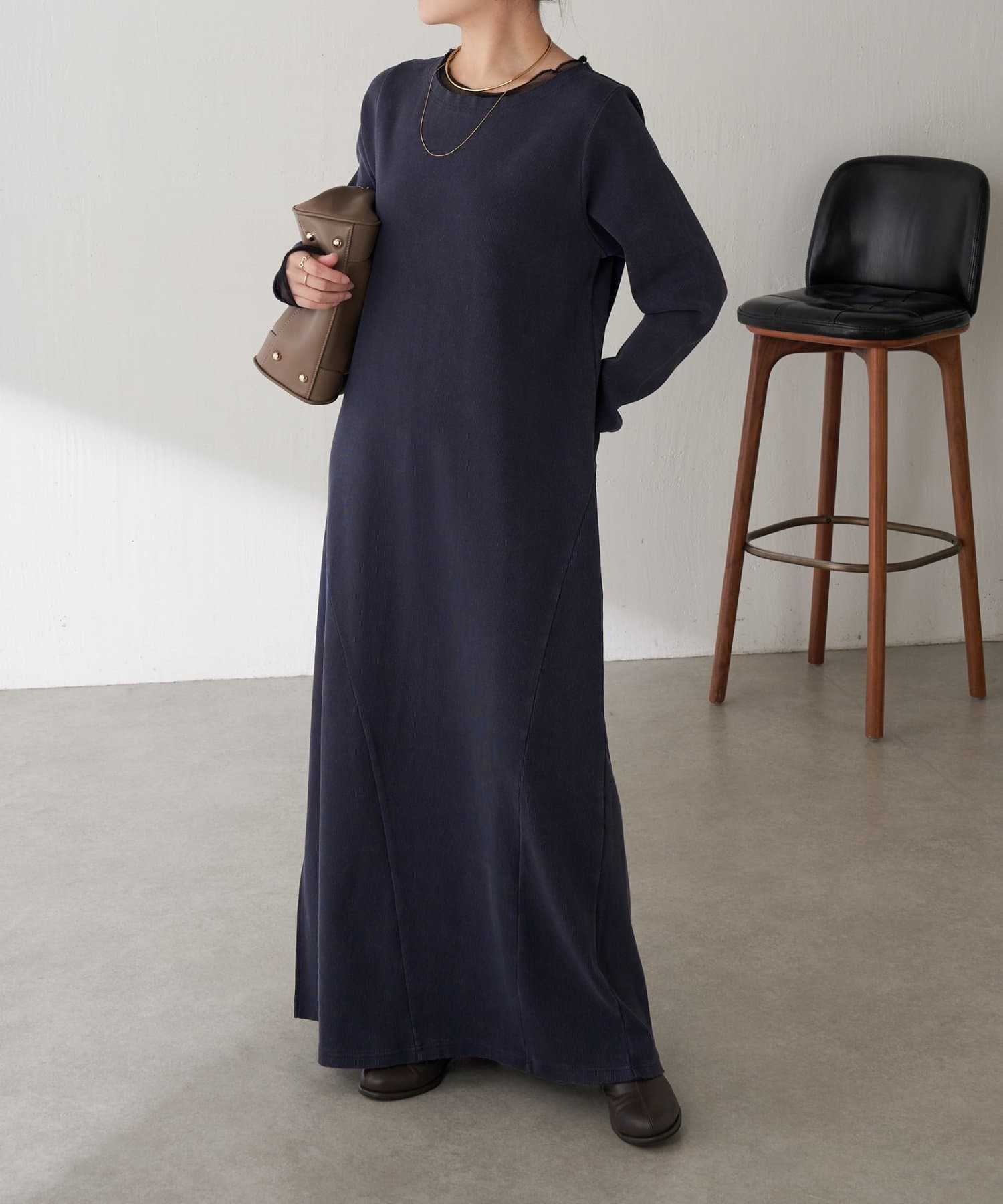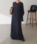 ・袖口と襟にチュールがレイヤードしているようなデザインで1枚でも気映える楽ちんワンピース。