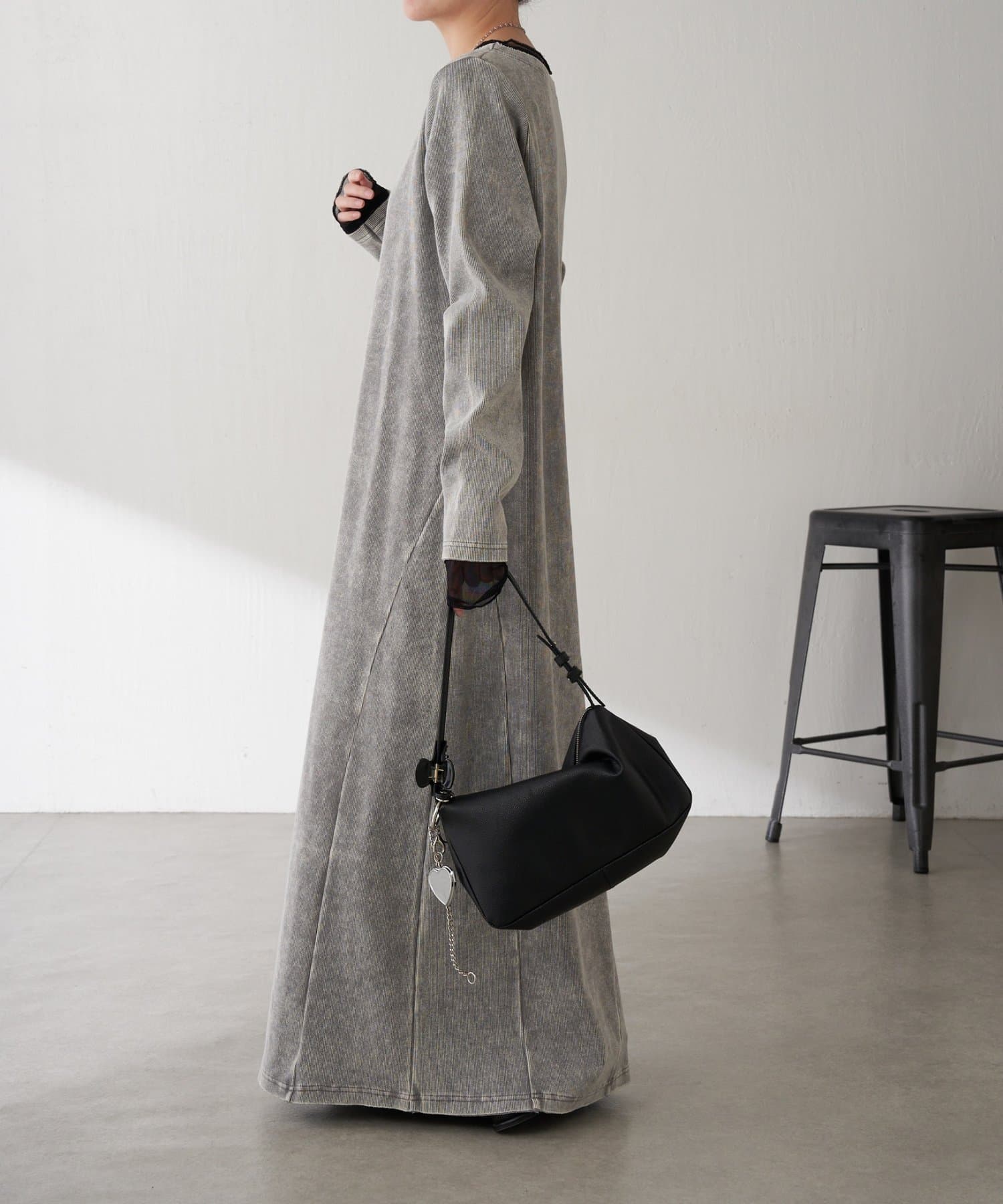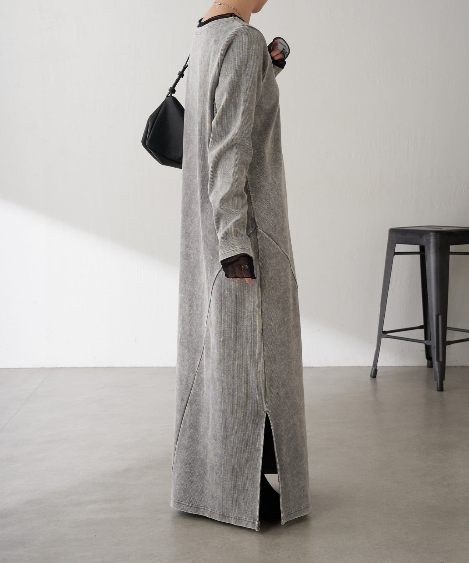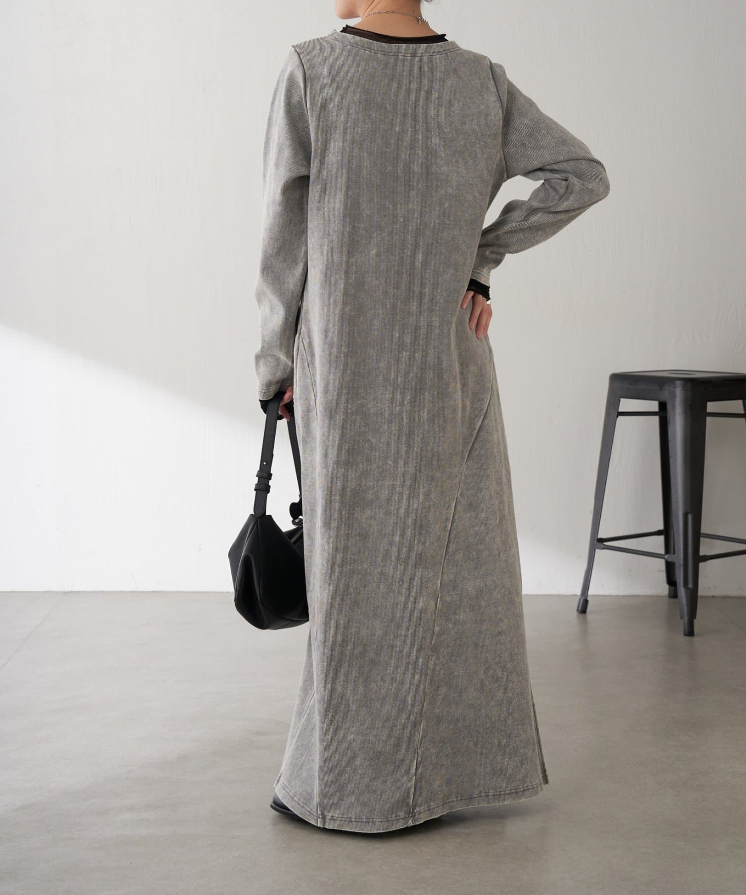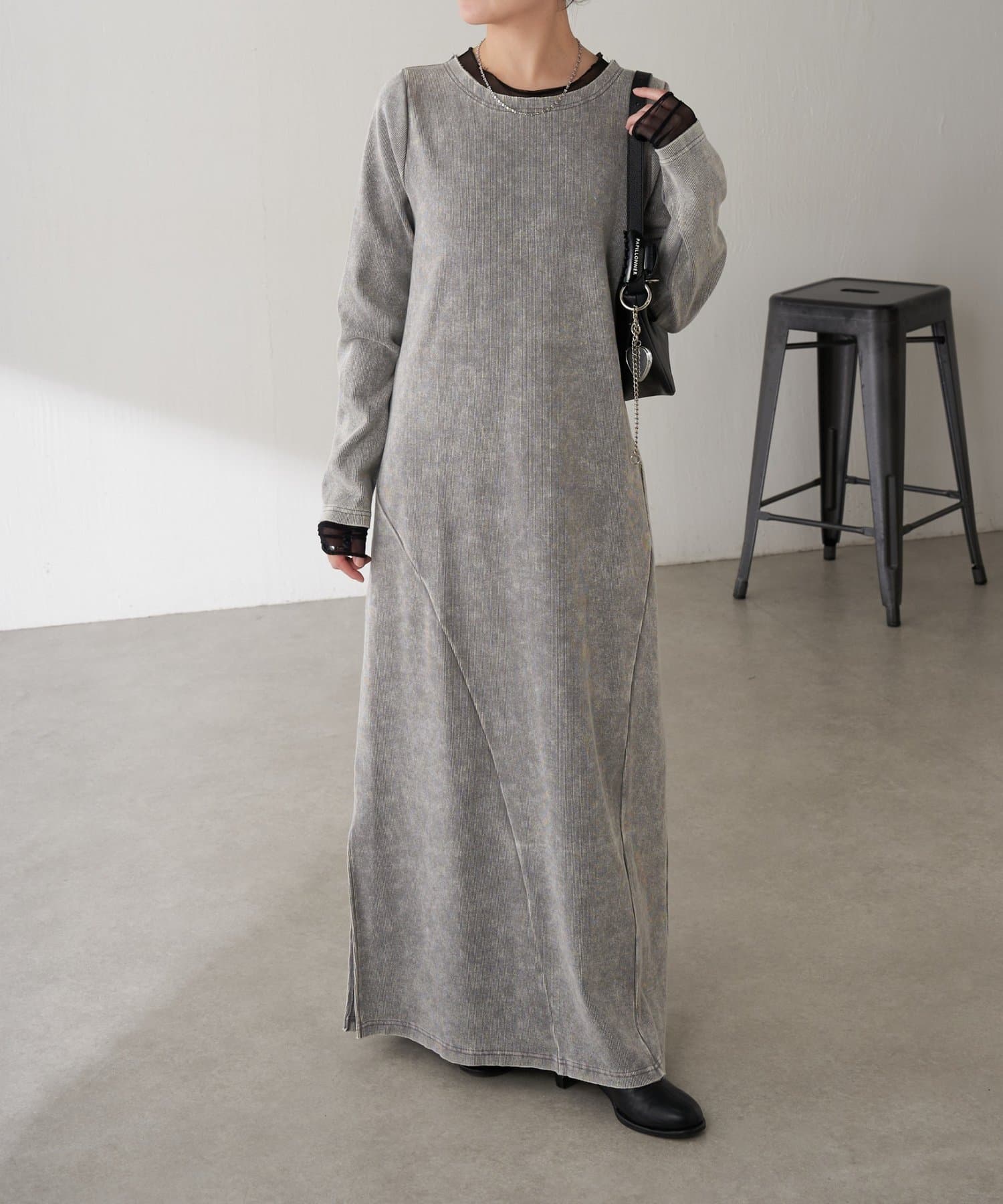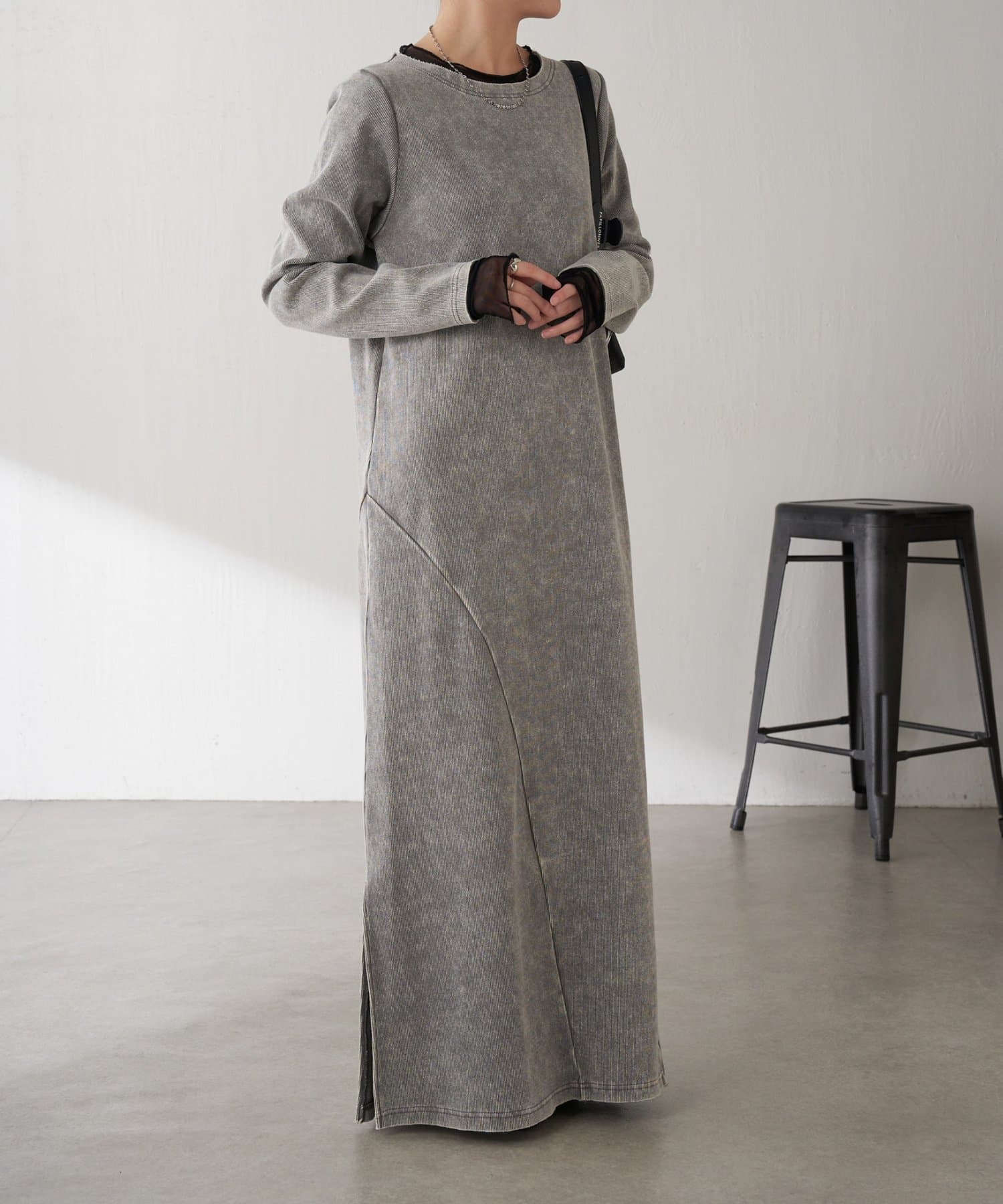 ・袖口と襟にチュールがレイヤードしているようなデザインで1枚でも気映える楽ちんワンピース。