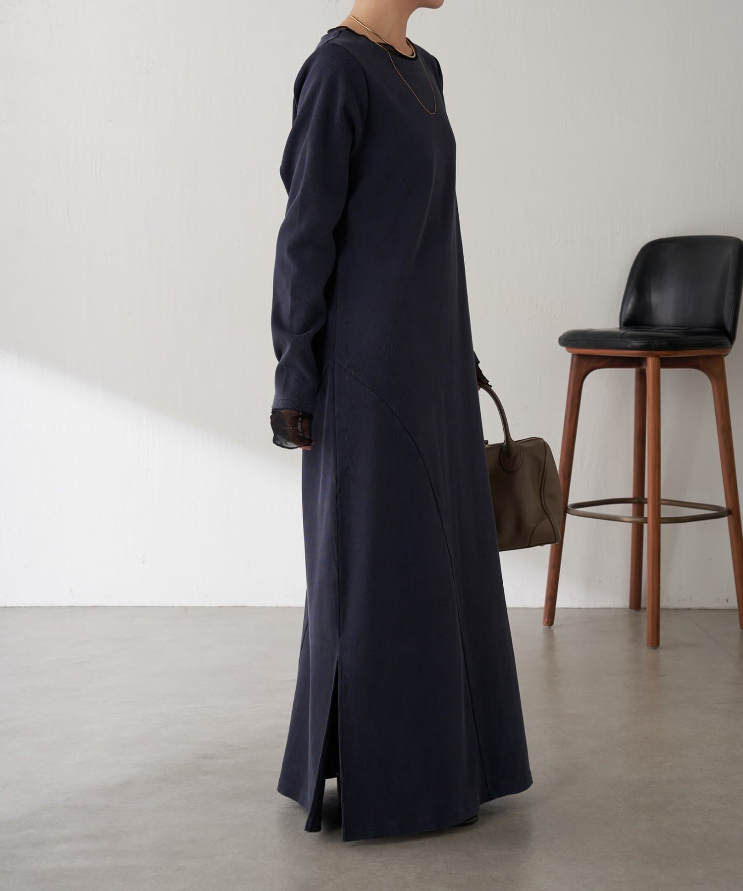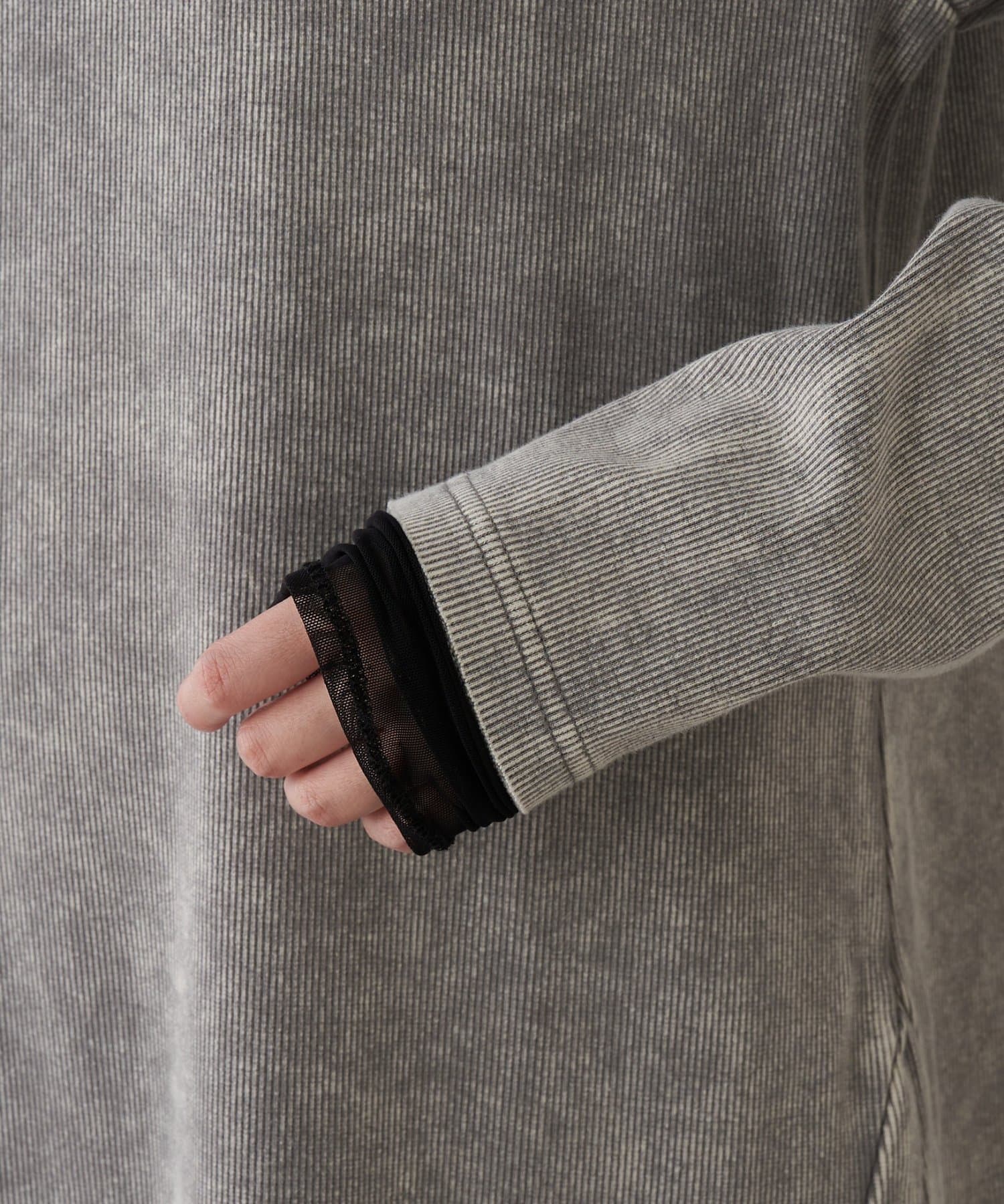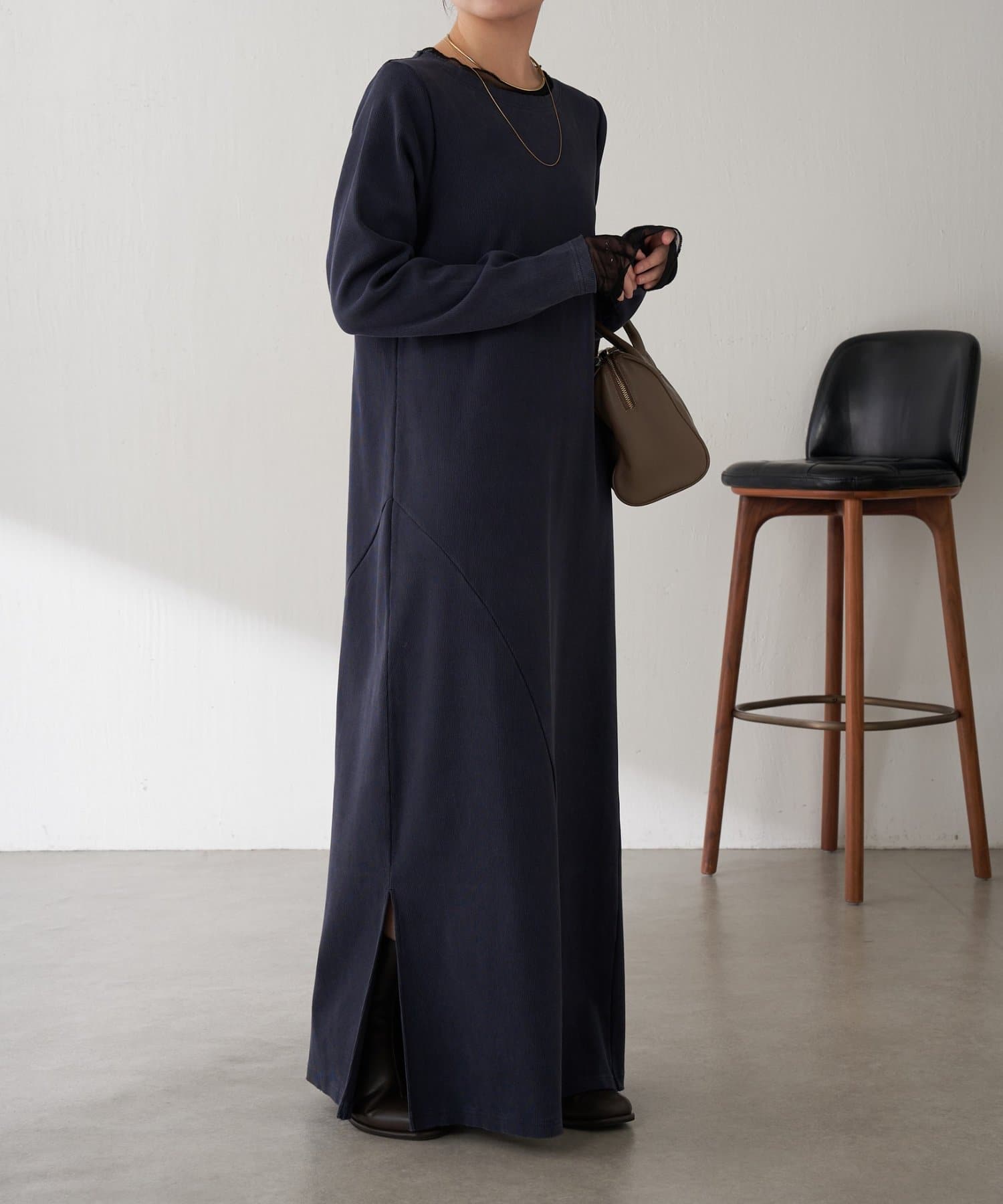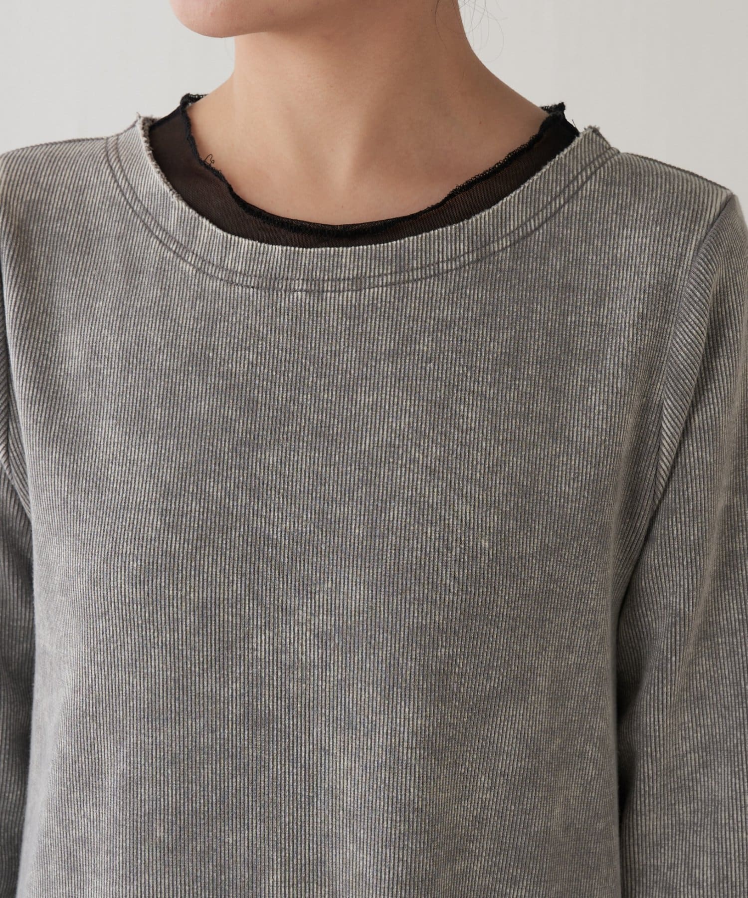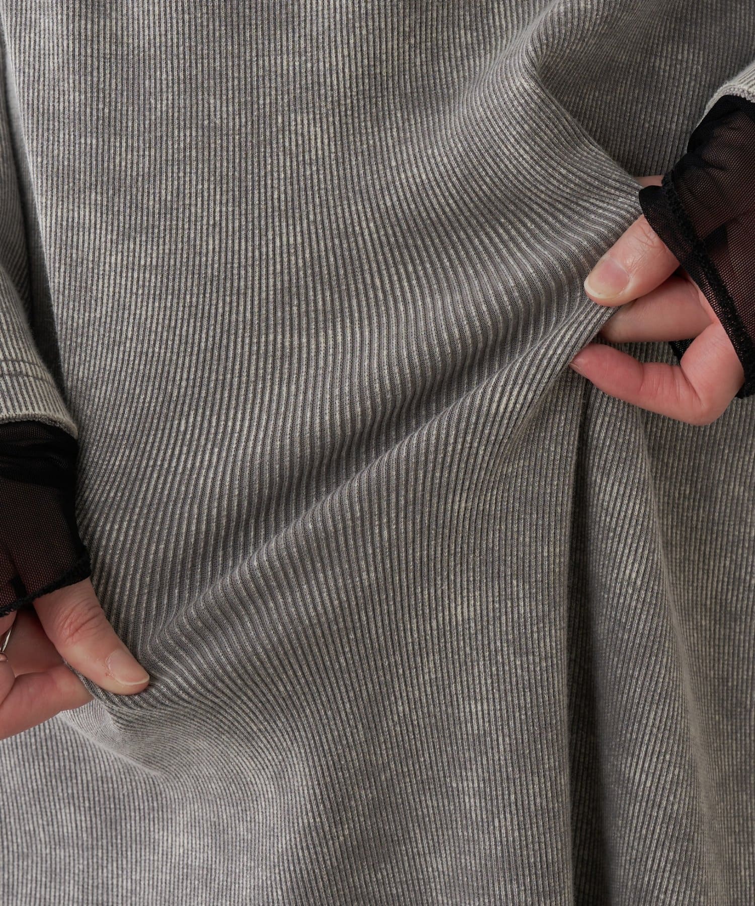 ・凹凸のあるリブ生地で身体のラインを拾いすぎず、伸縮性があって楽チンなのも嬉しいポイント◎