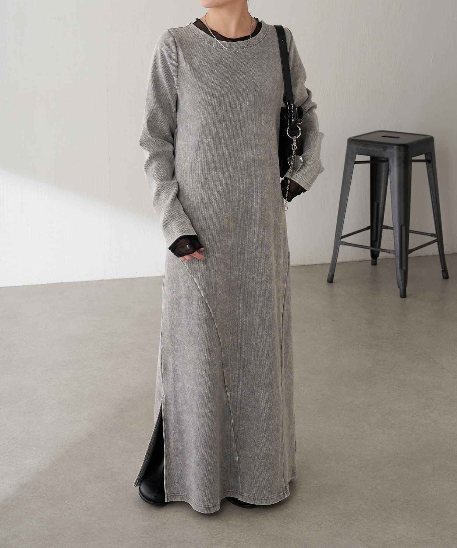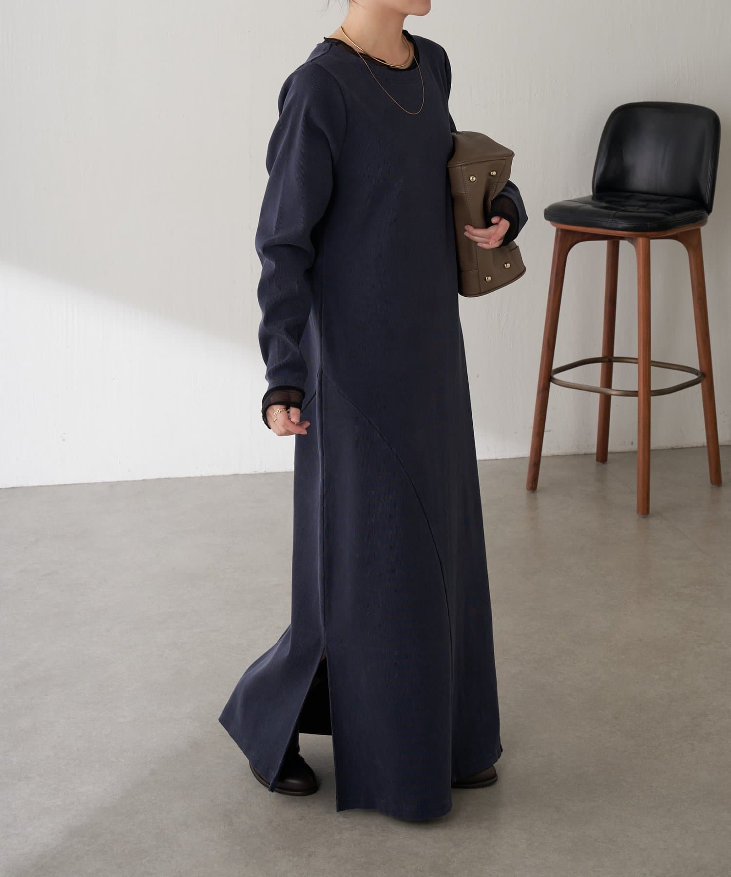 ・カジュアル見えする生地ですが、女性らしいAラインや裾のスリットが抜け感をプラスします。