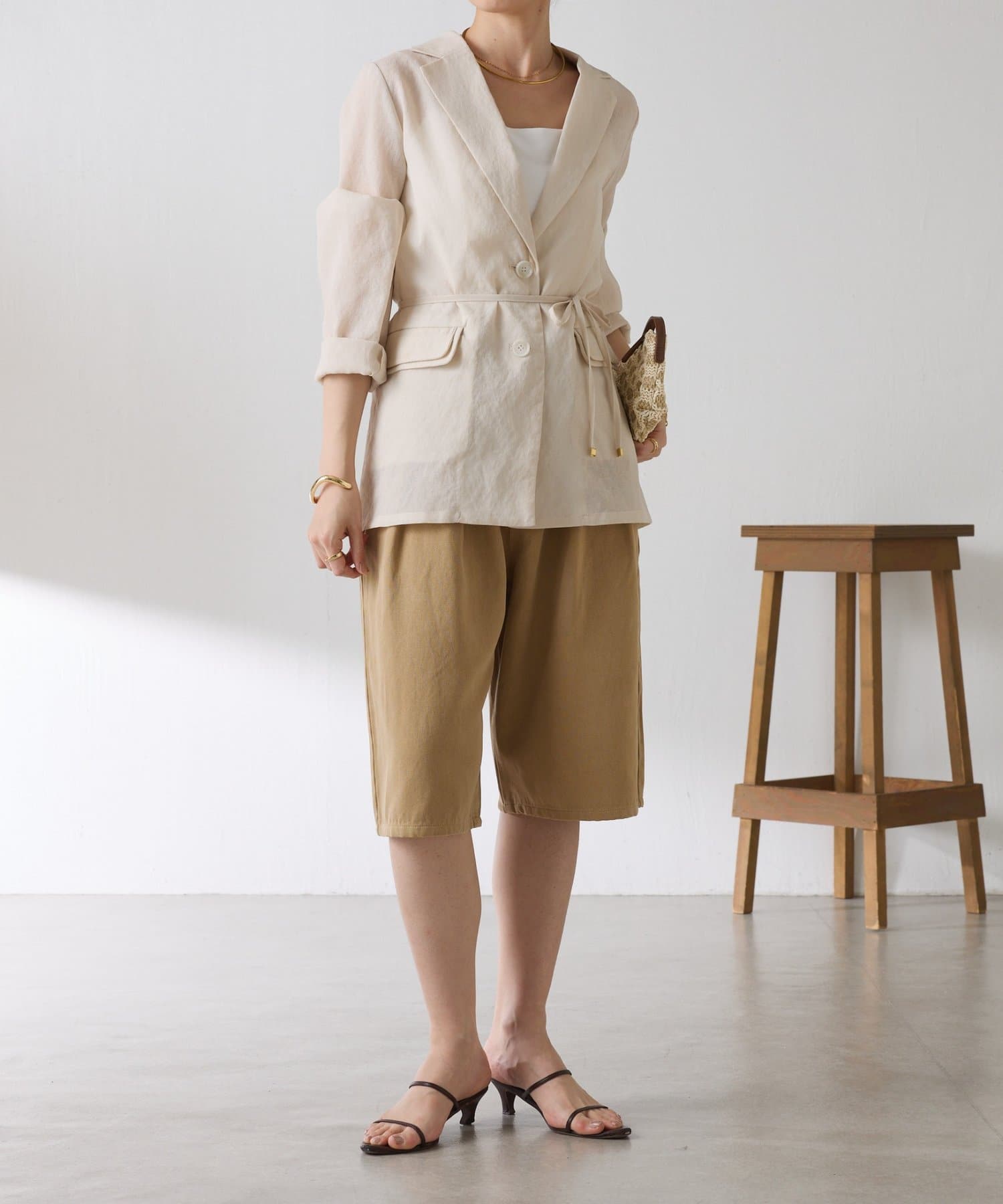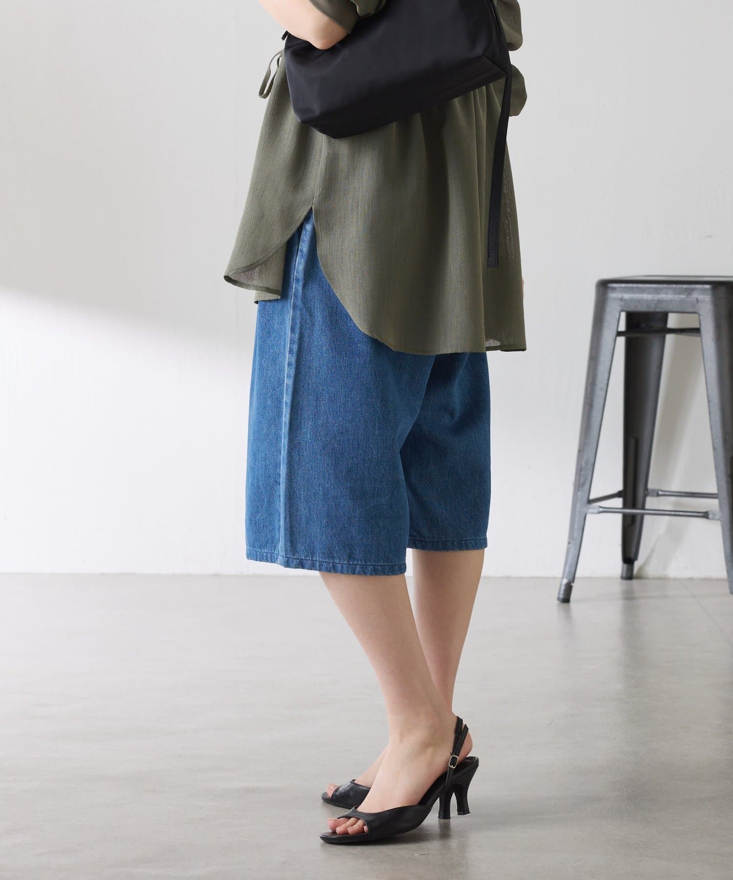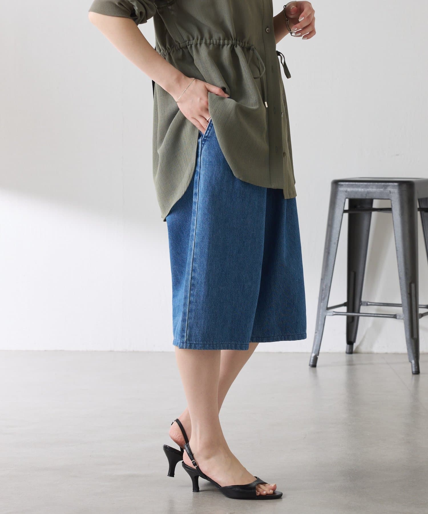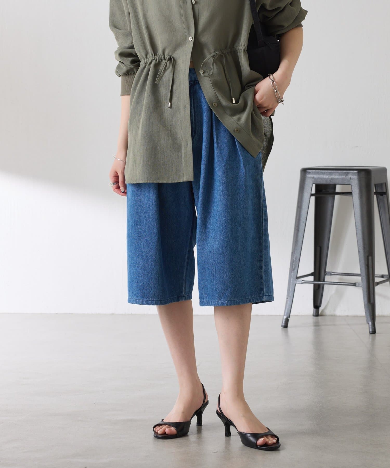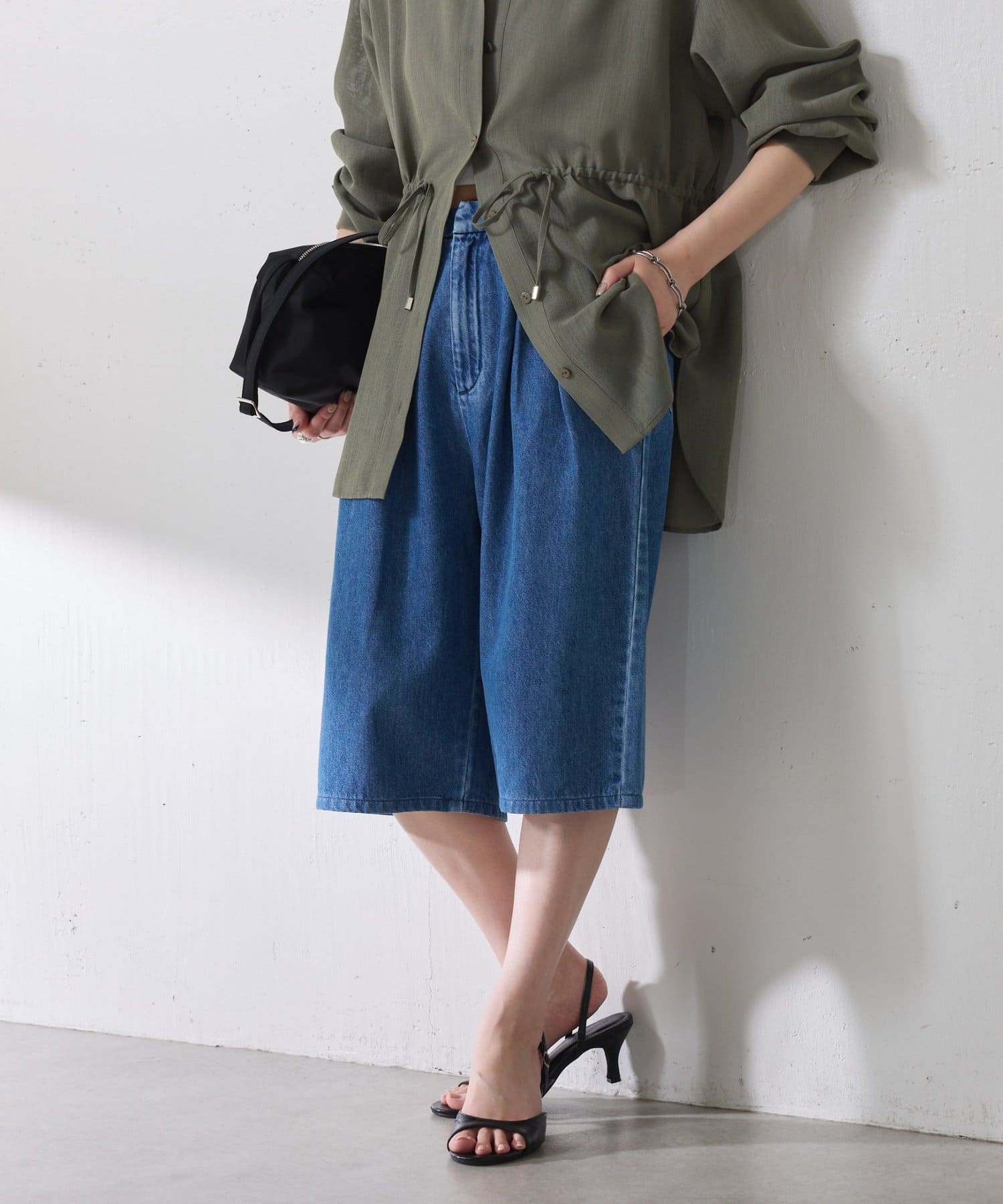 ・人気の【Q.anosチャームタックデニムパンツ CLQ5061103A0001】のデザインを落とし込んだハーフデニム。