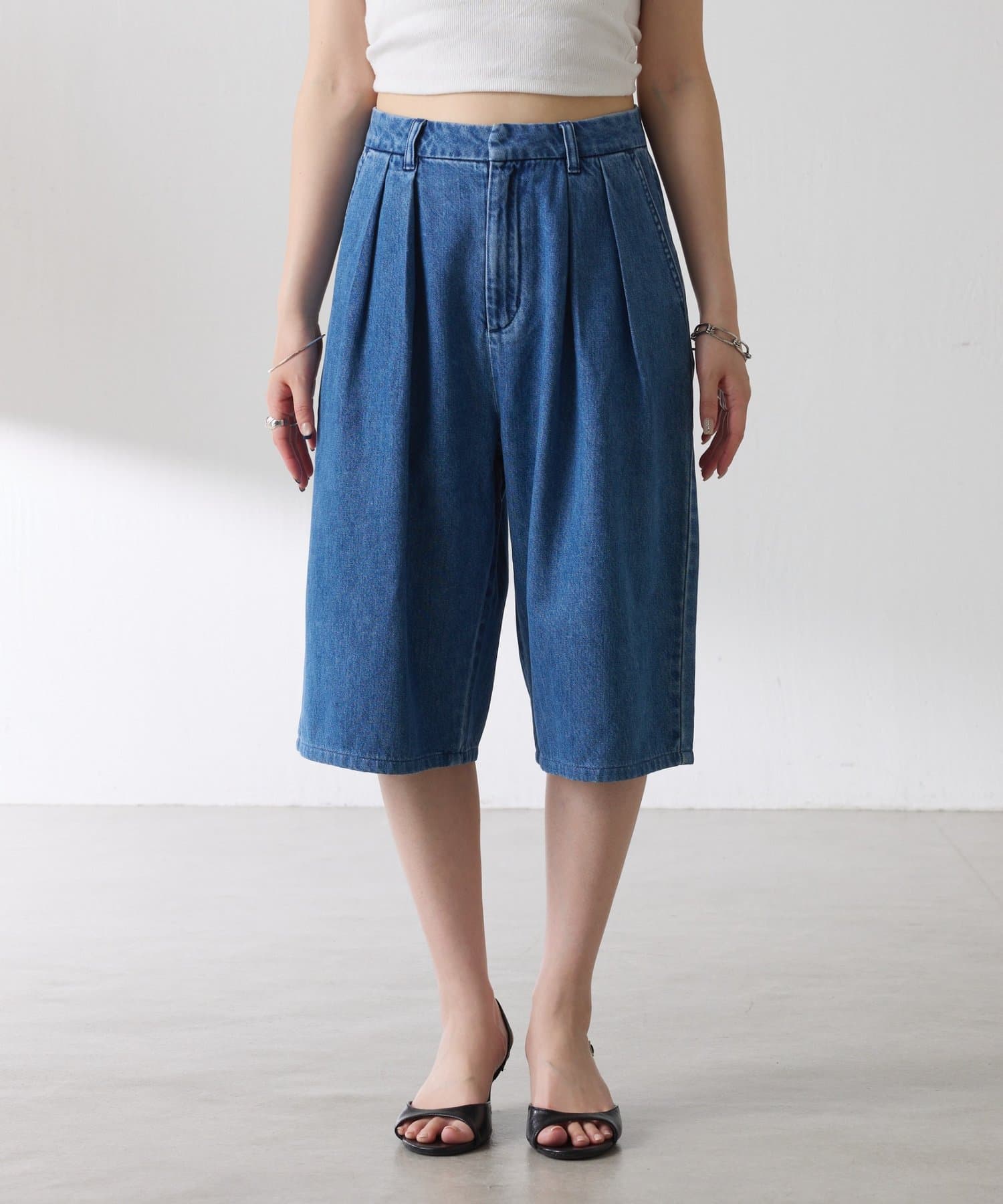 TOP > COLLAGE GALLARDAGALANTE > レディース > パンツ > デニムパンツ > 【人気デザイン】Q.anos タックハーフデニムパンツ