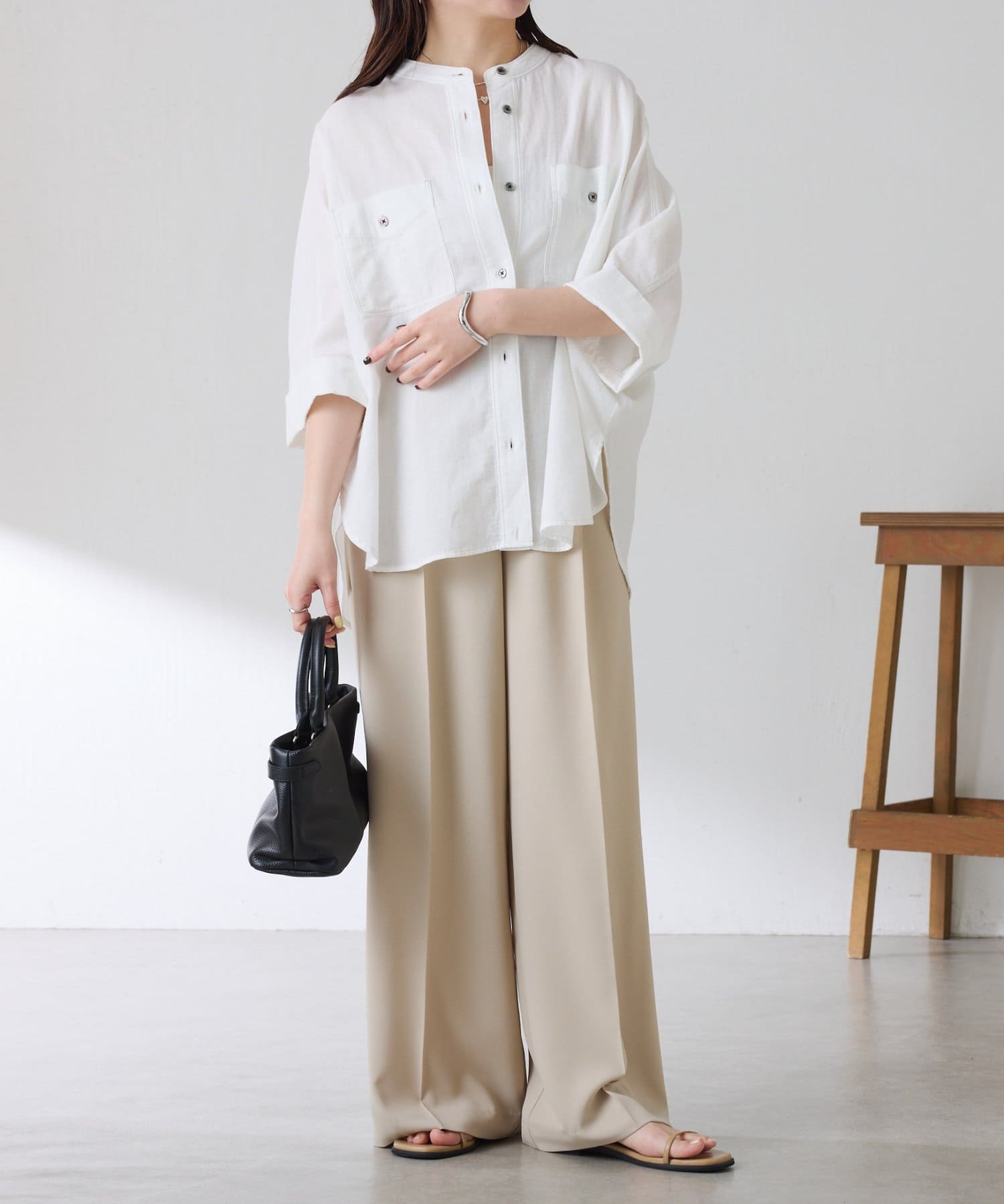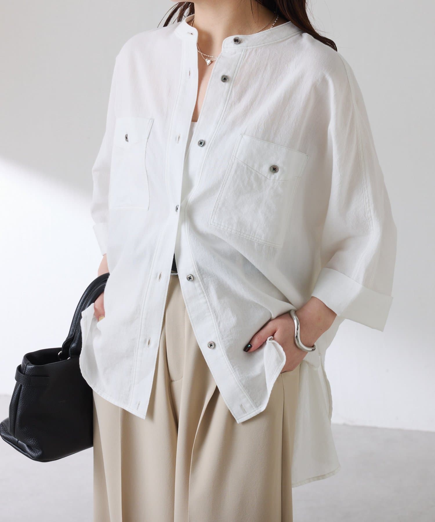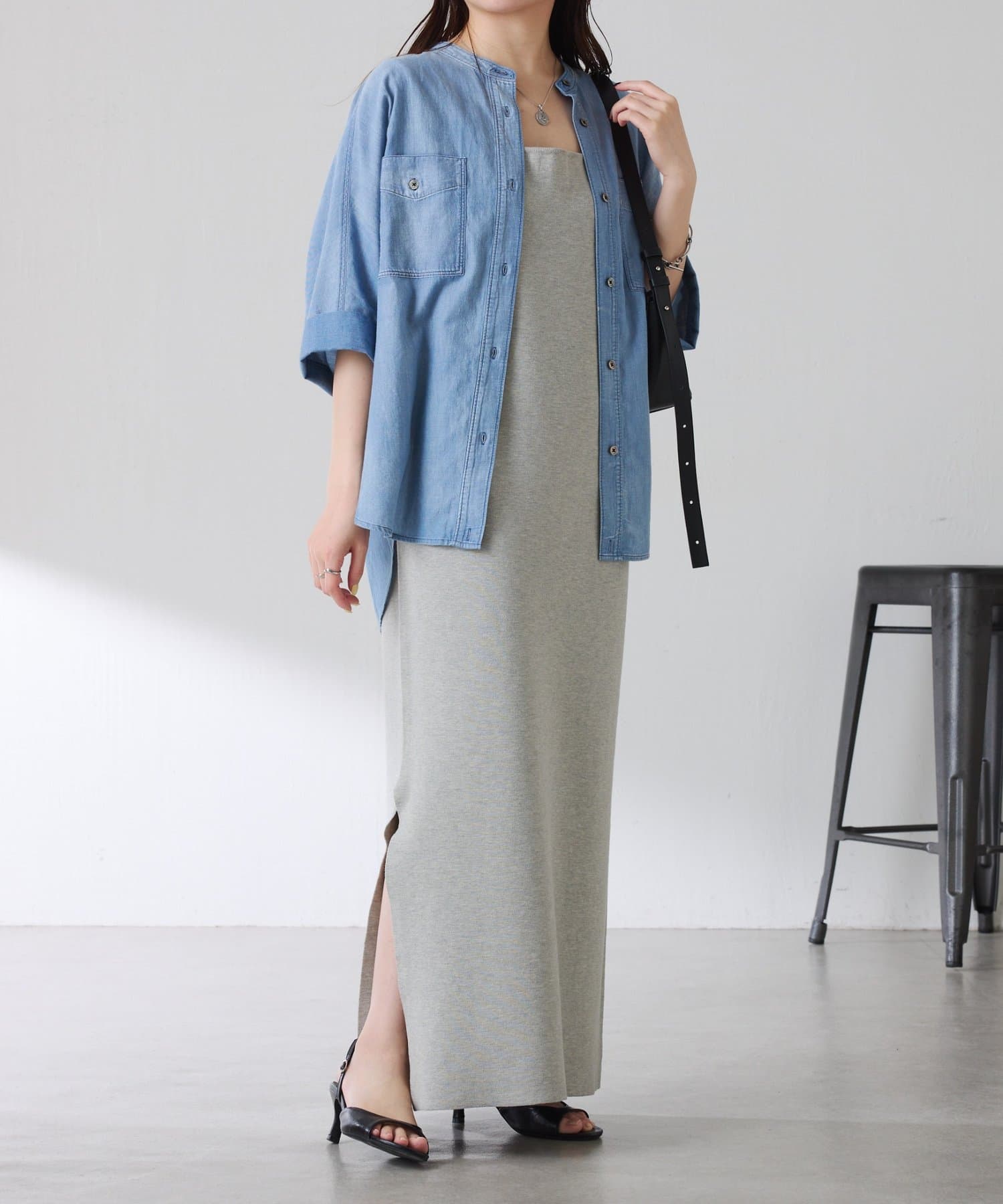 ボタンを閉めて丈を変えて着ればスタイルアップが叶います◎丈を短くしてキャミワンピースに羽織ればバランス良く決まります。