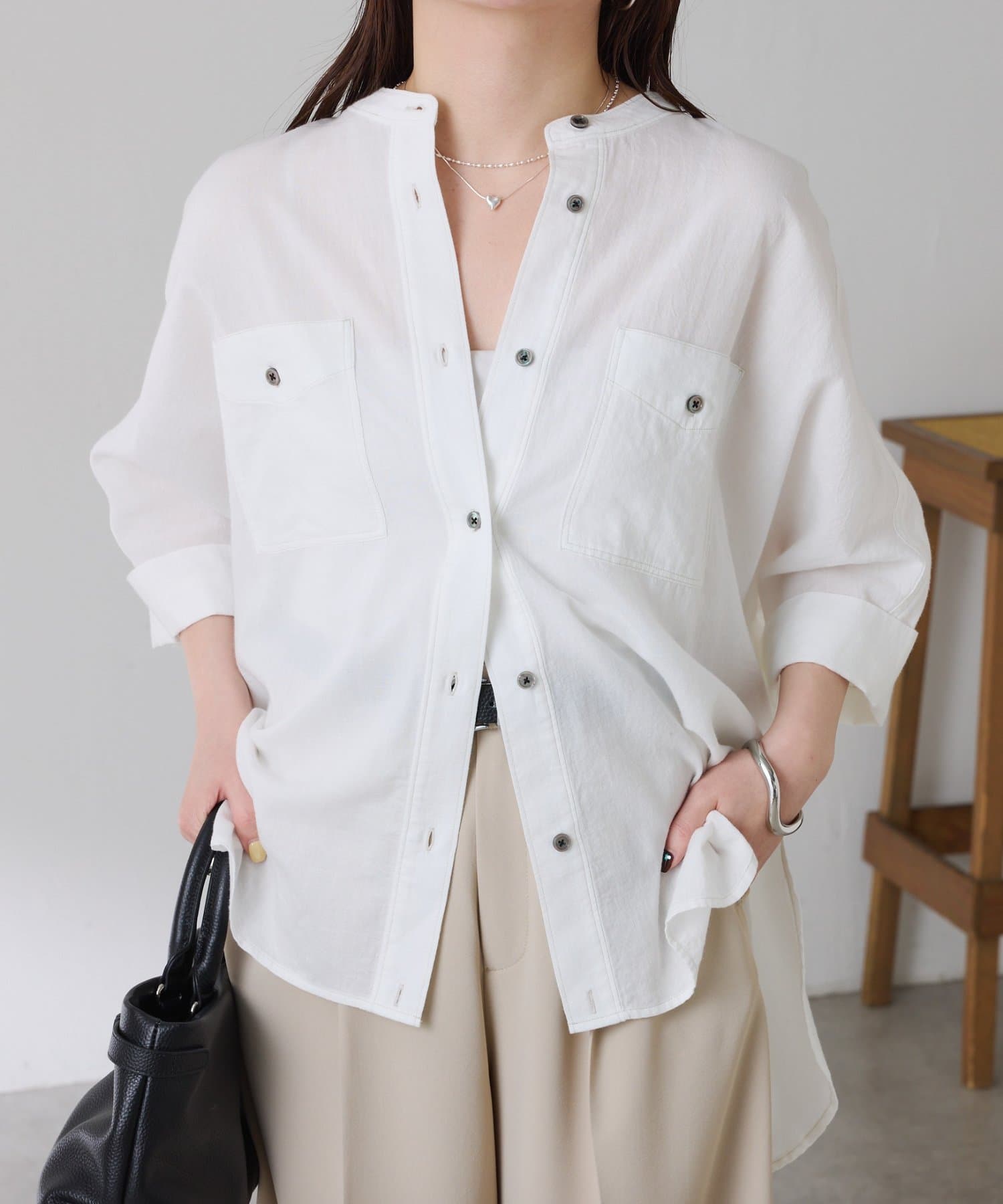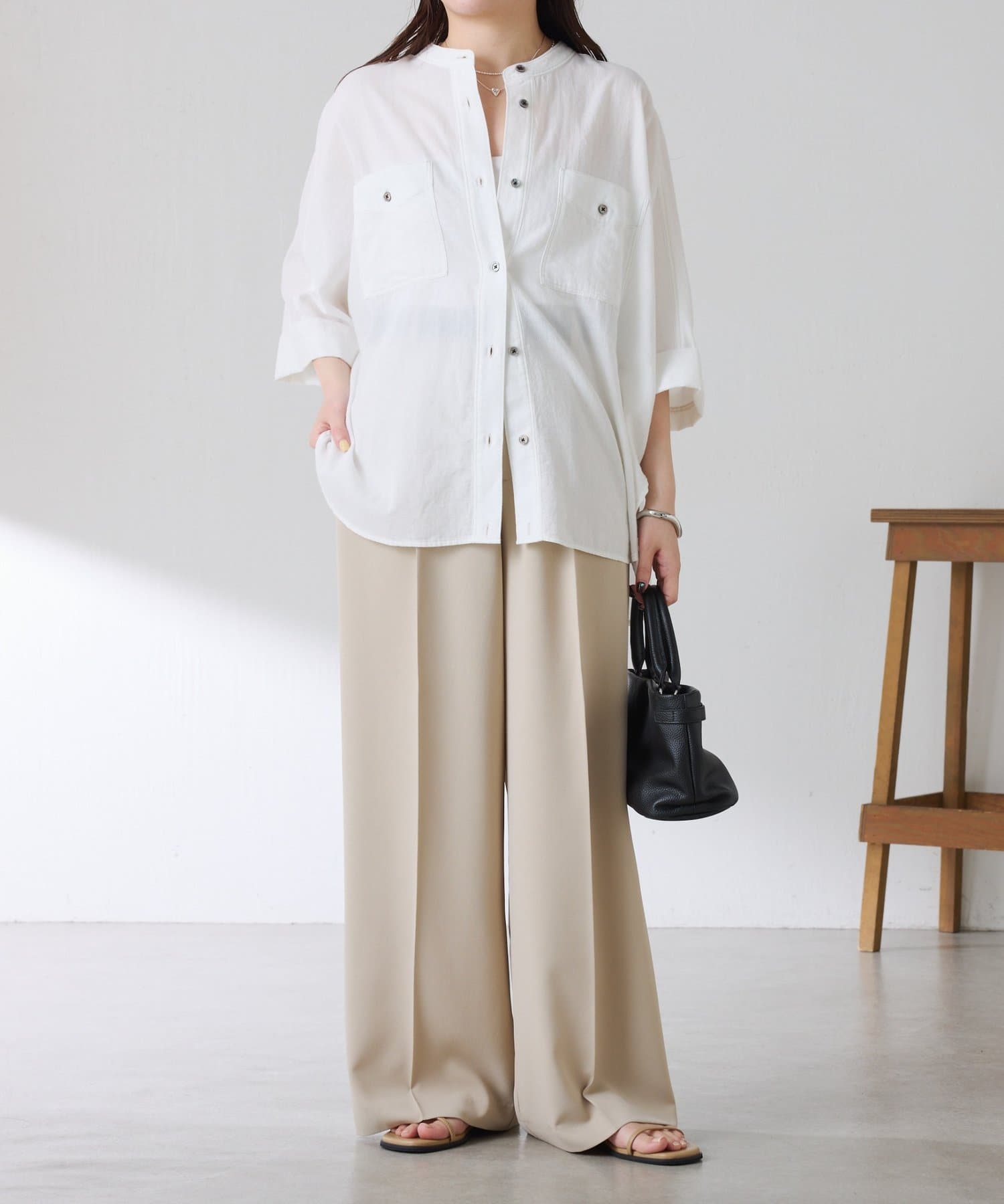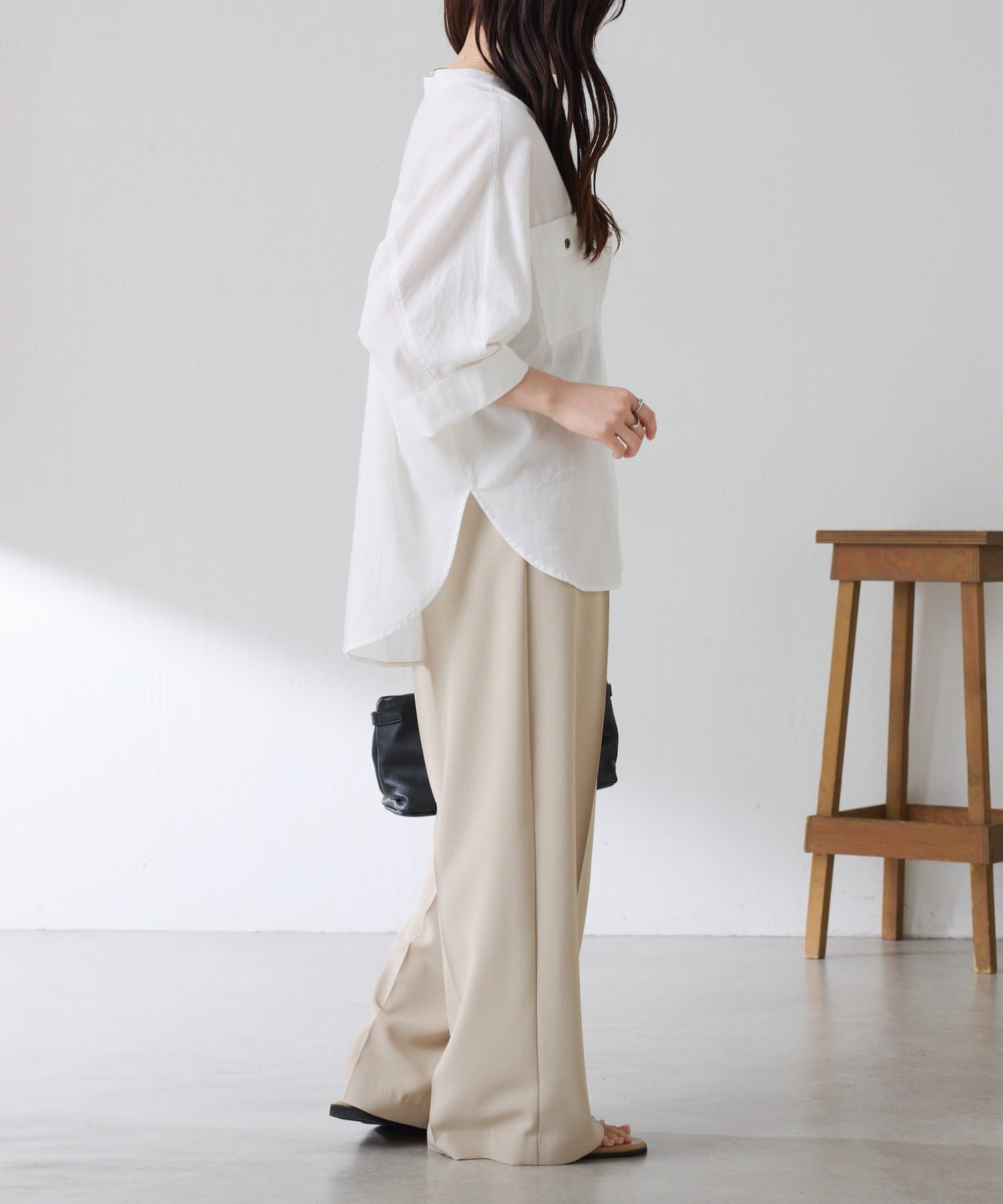 ボタンを閉めて丈を変えて着ればスタイルアップが叶います◎丈を短くしてキャミワンピースに羽織ればバランス良く決まります。