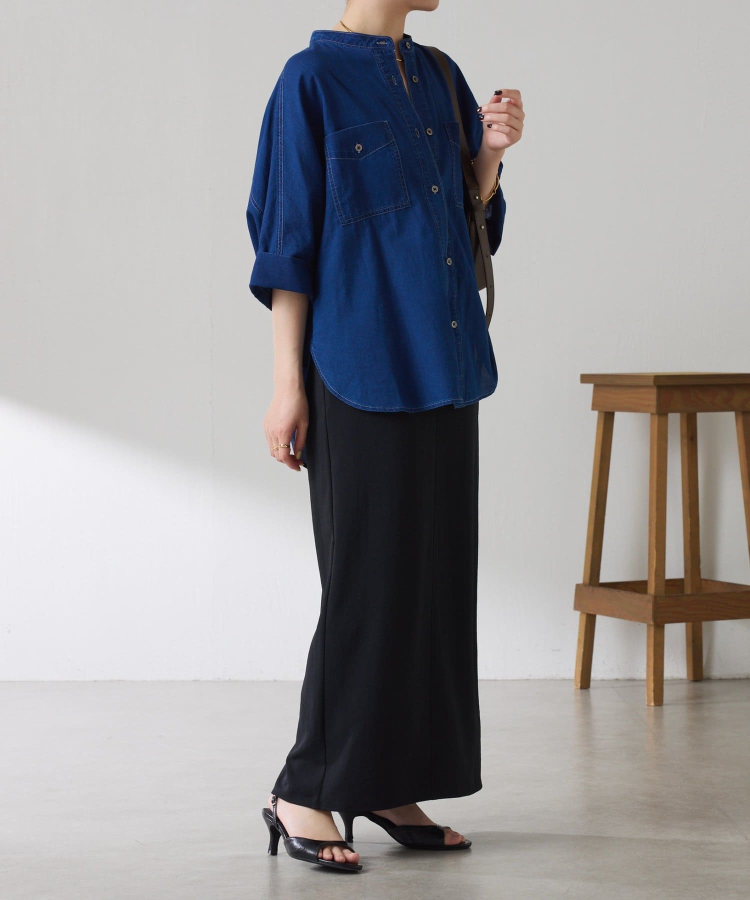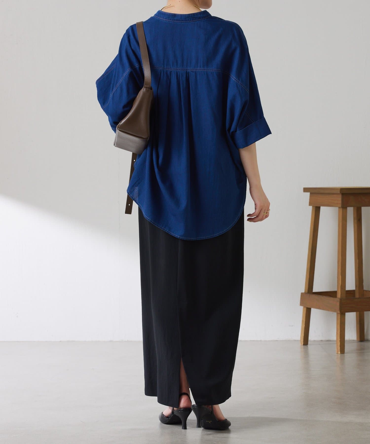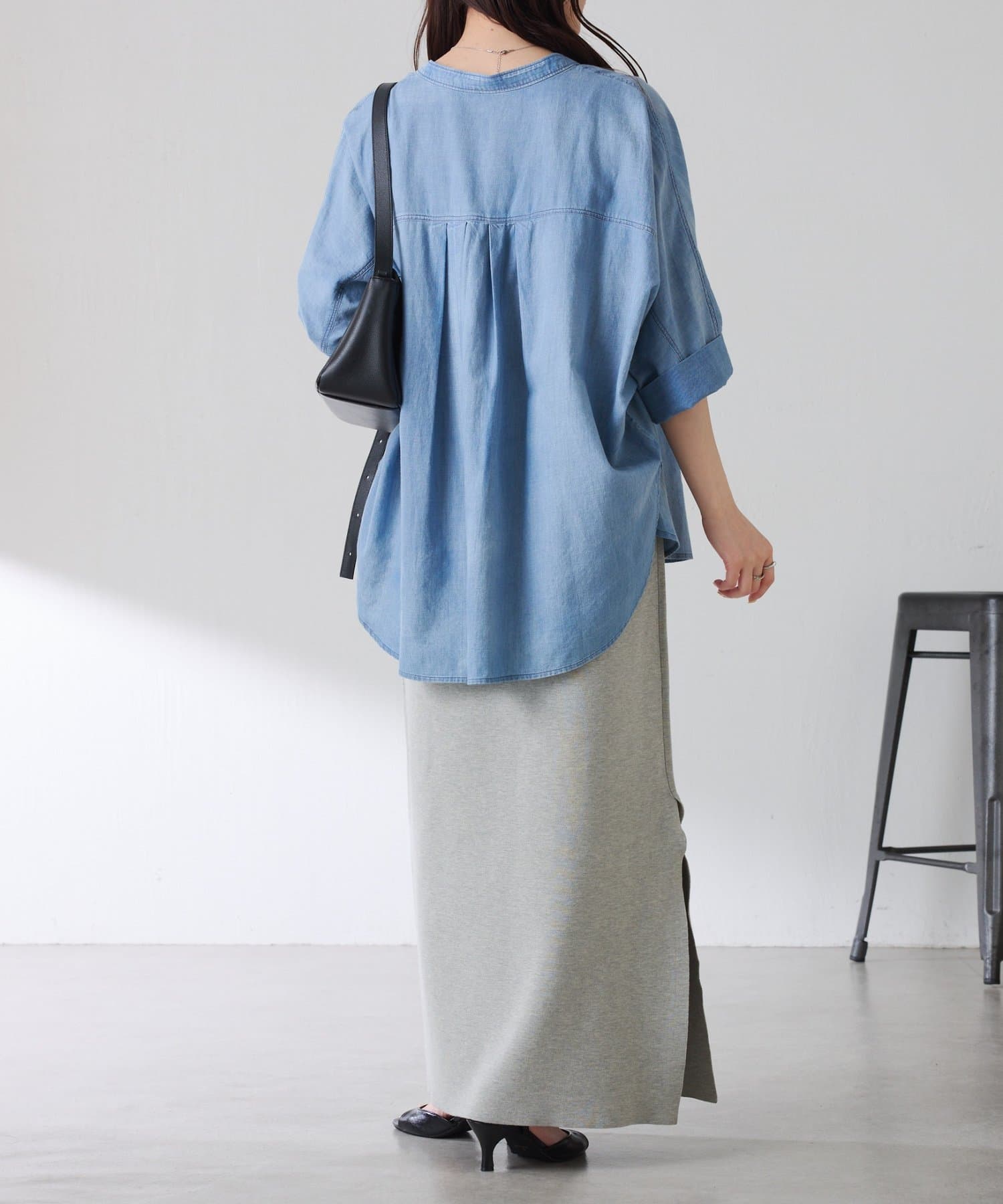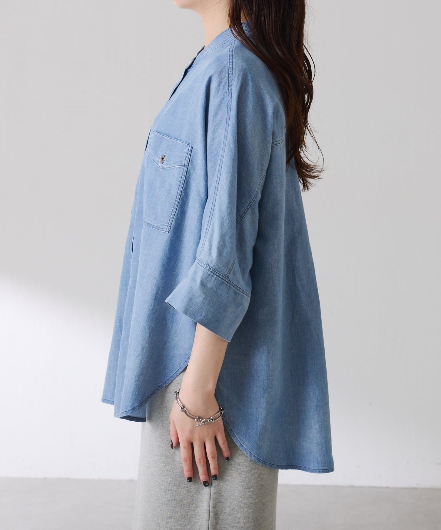 TOP > COLLAGE GALLARDAGALANTE > レディース > トップス > シャツ/ブラウス(ボタン) > 【丈を変えられる】Q.anosライトデニムドルマンシャツ