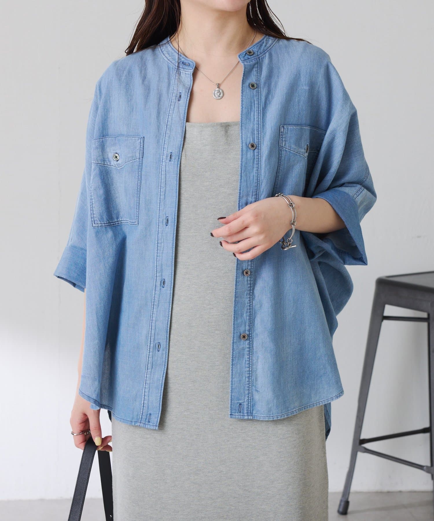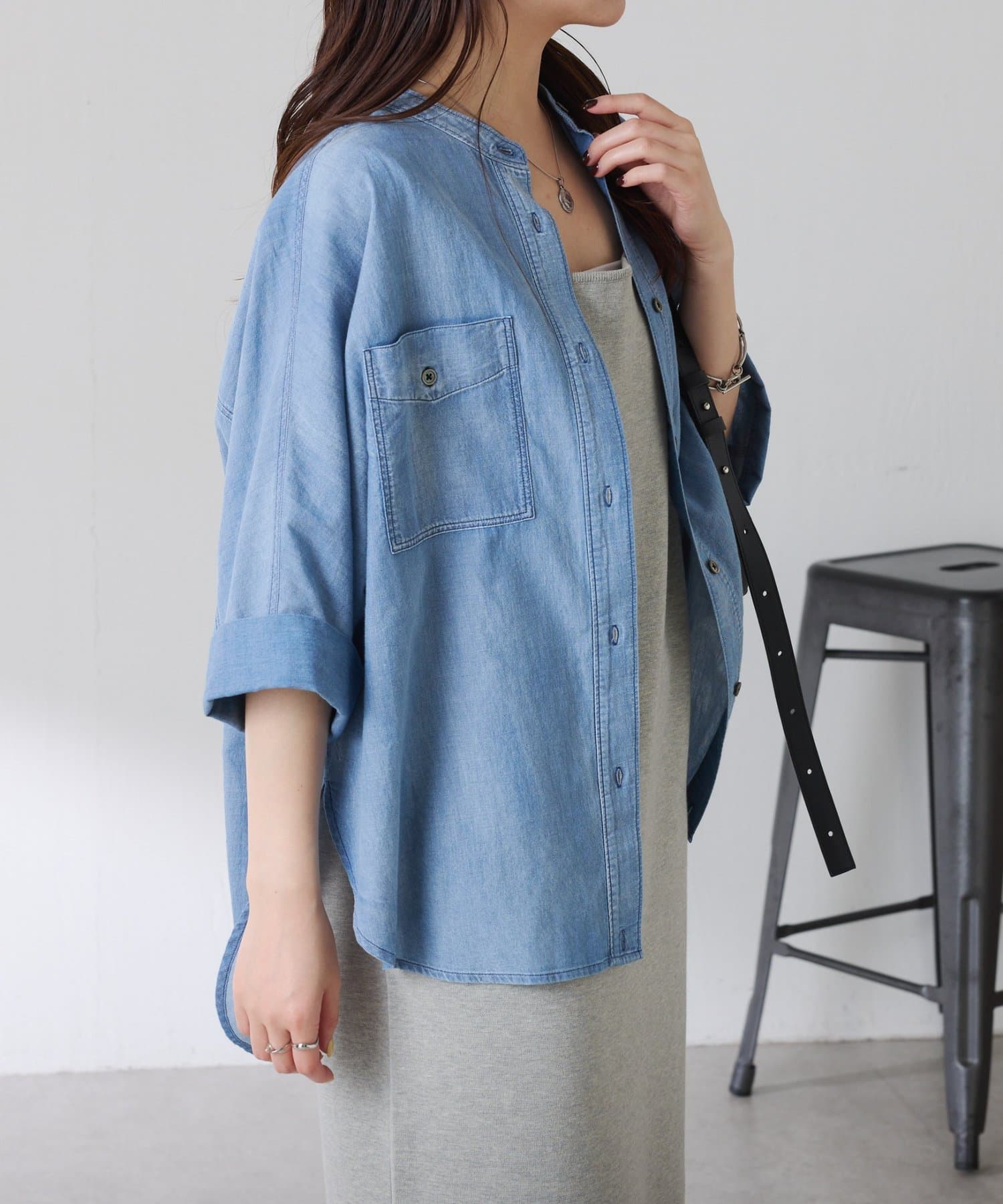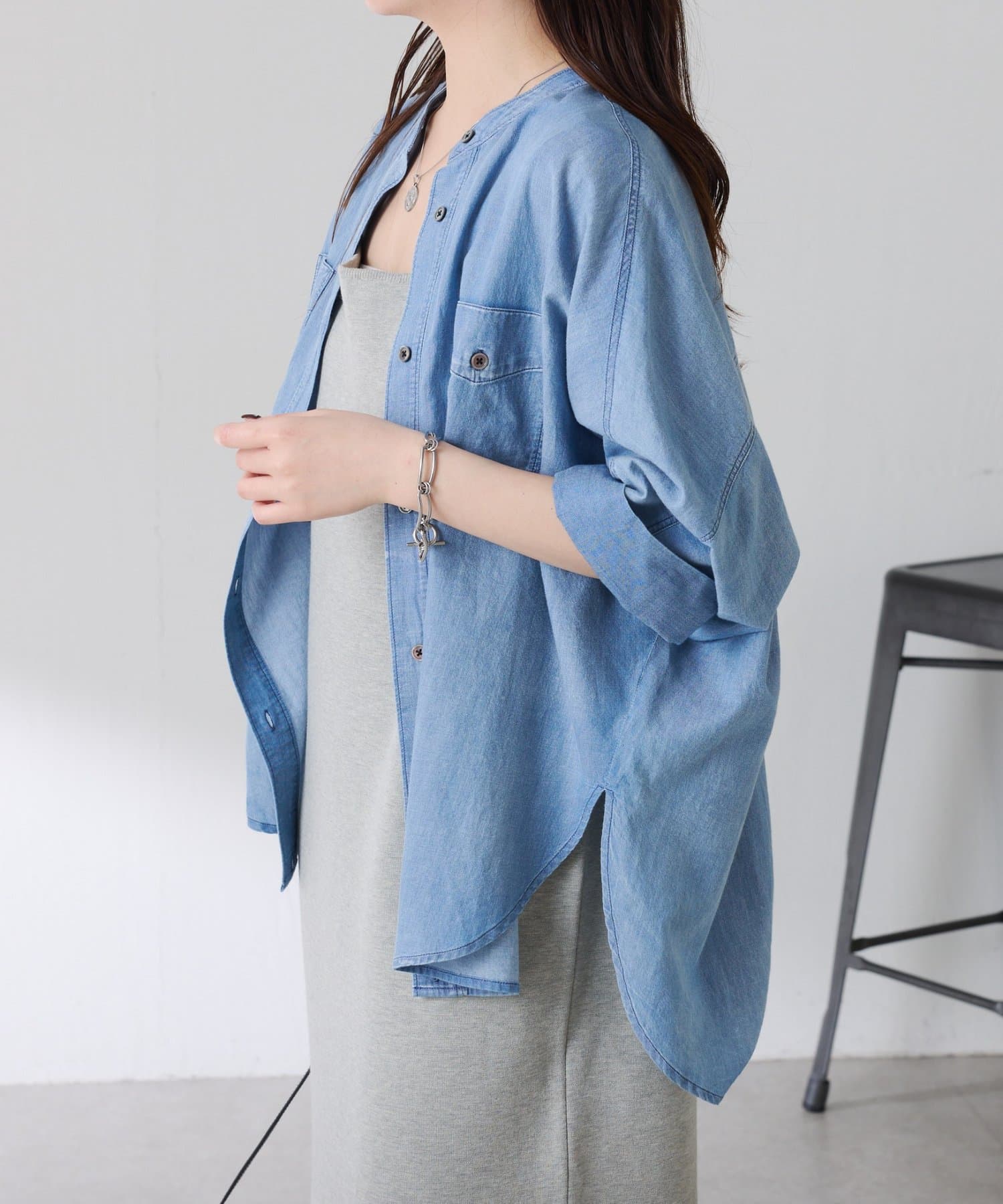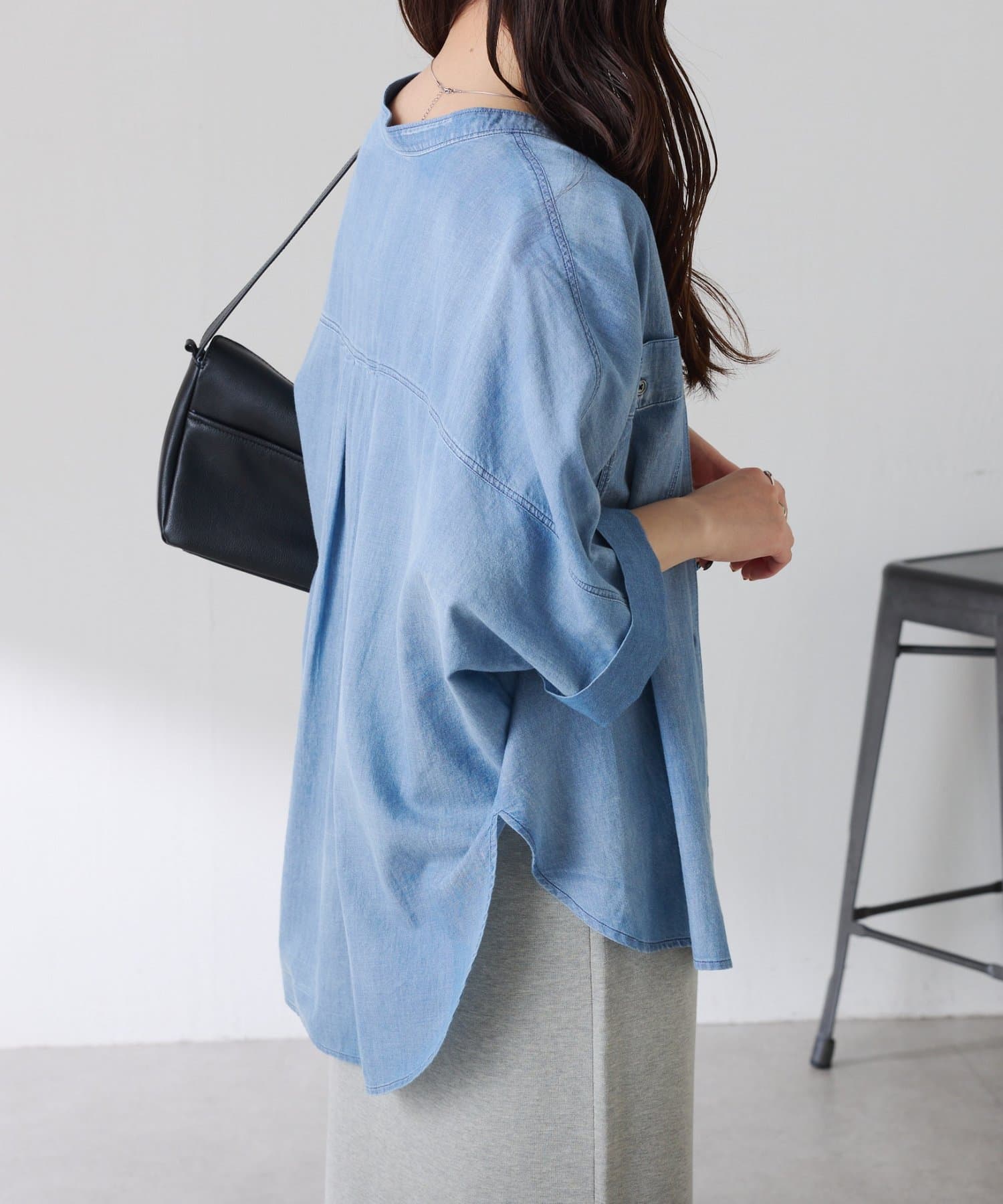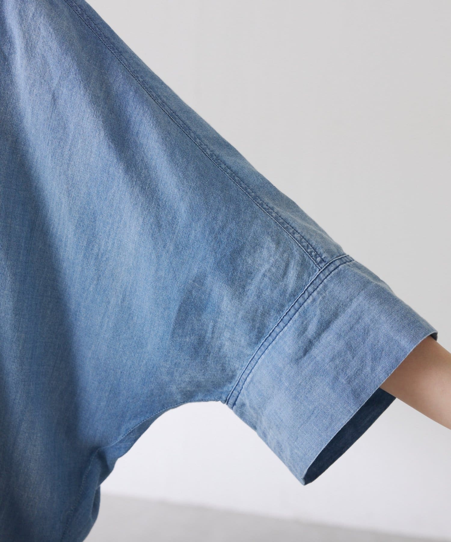 【丈を変えられる】Q.anosライトデニムドルマンシャツ
