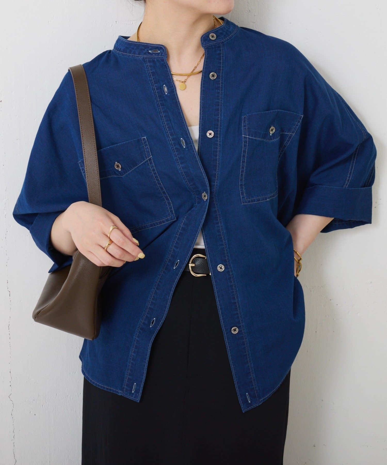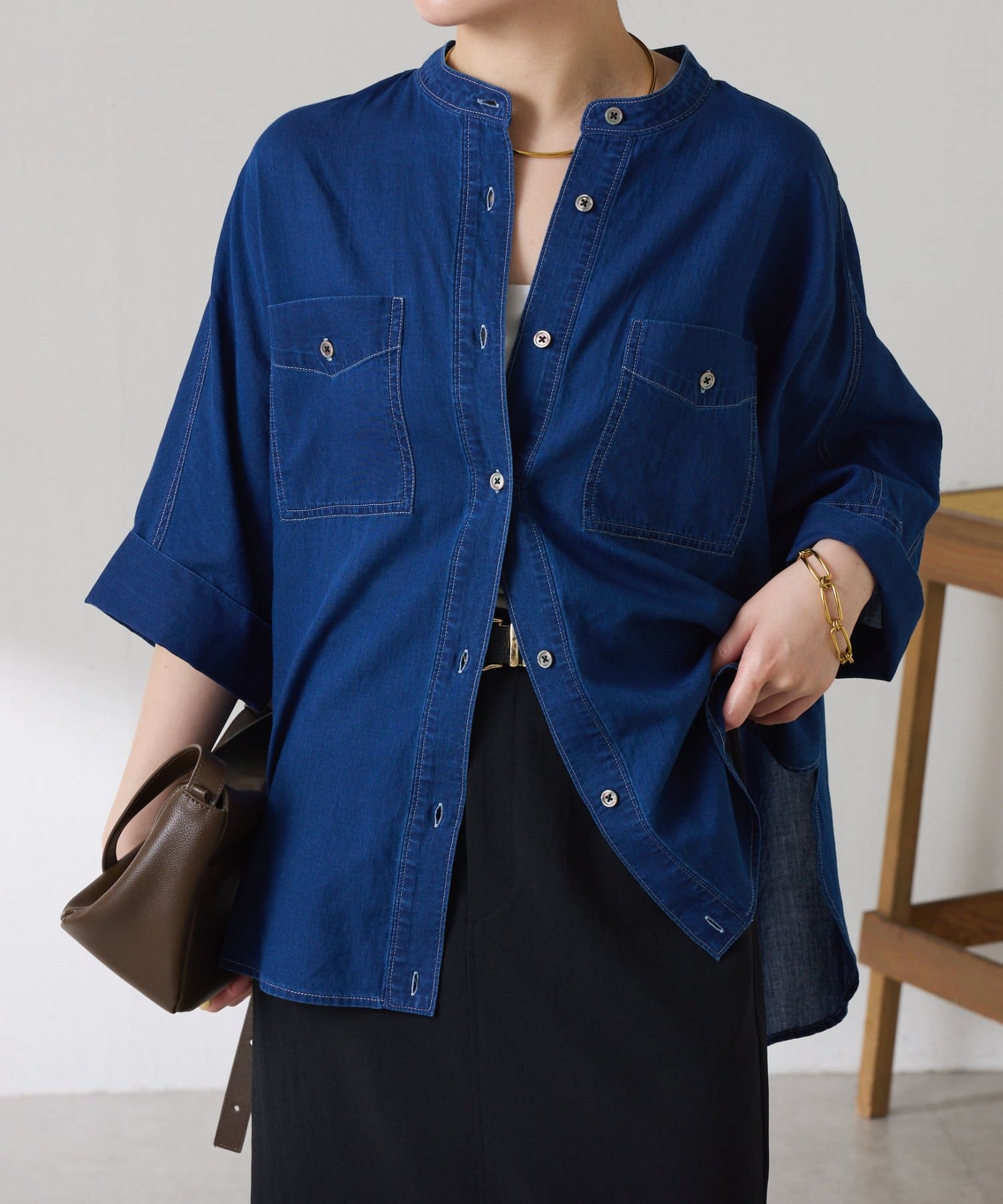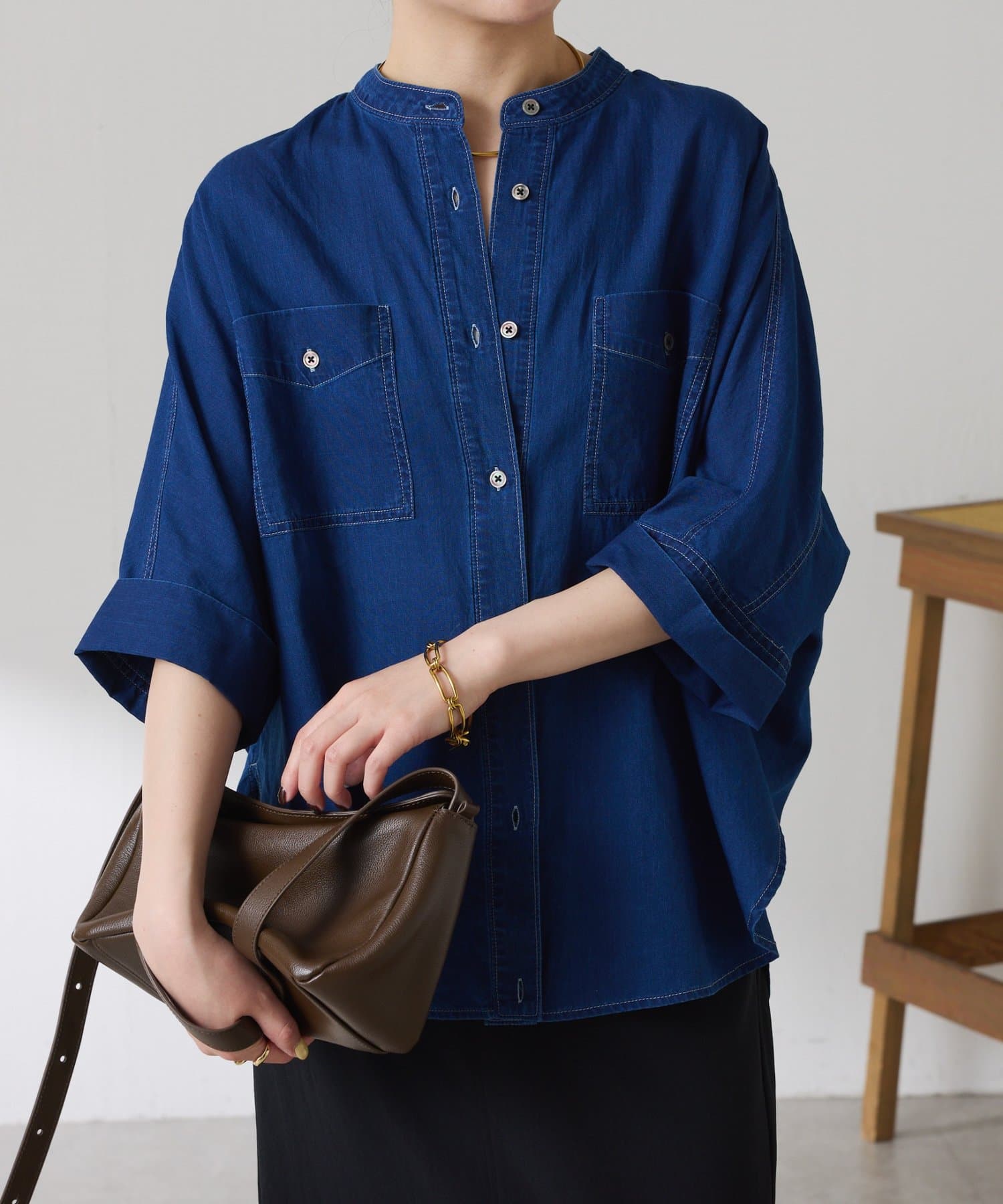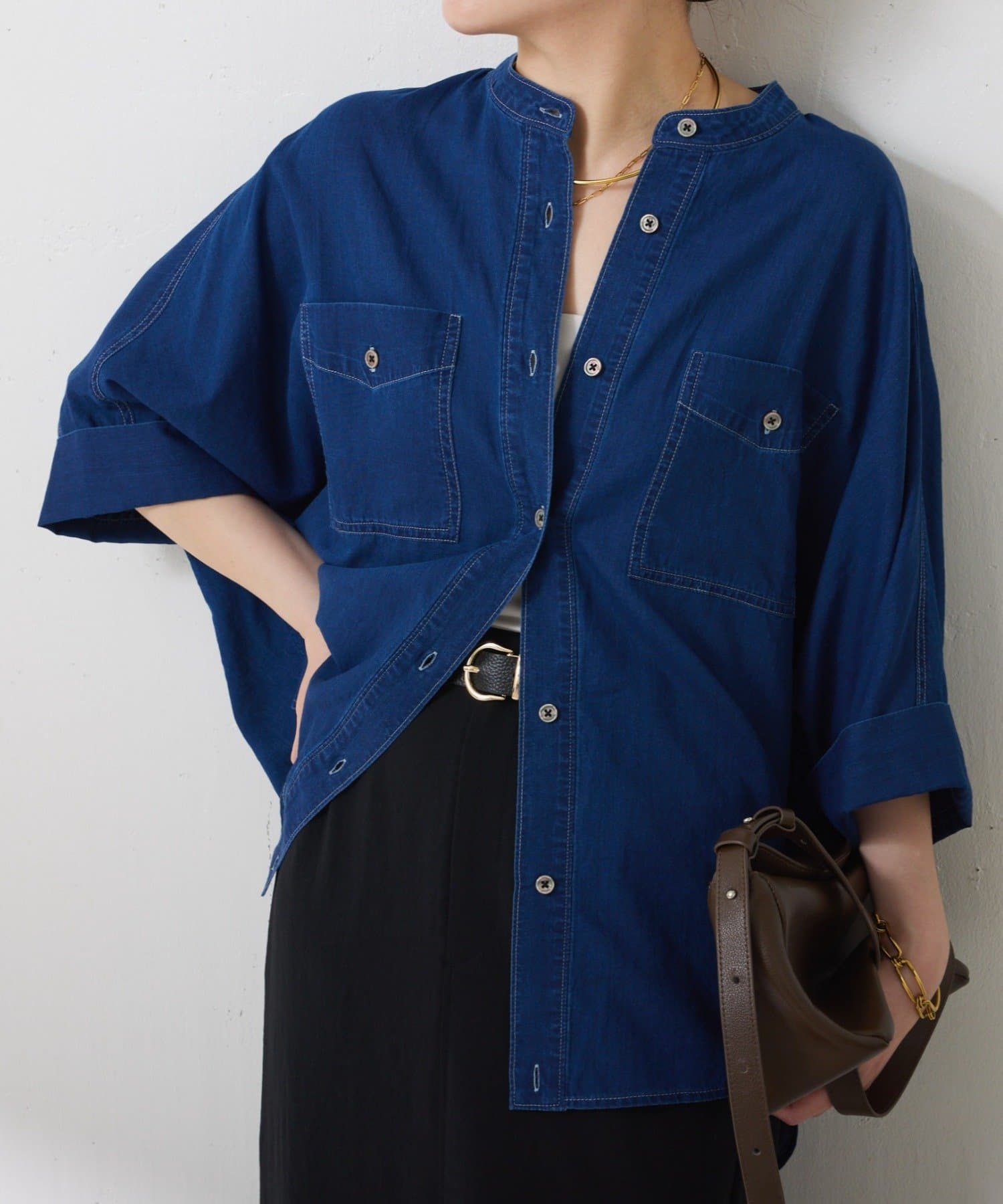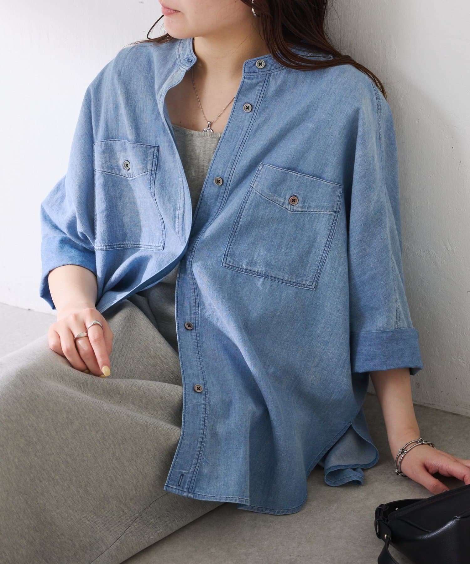 【丈を変えられる】Q.anosライトデニムドルマンシャツ