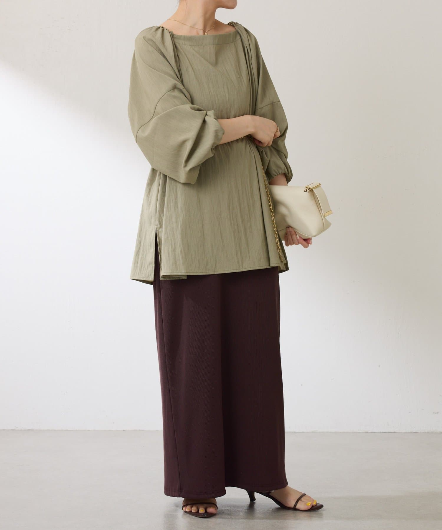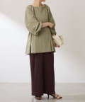 ワイドパンツやセミフレアパンツと合わせで甘すぎない大人コーデもおすすめです。