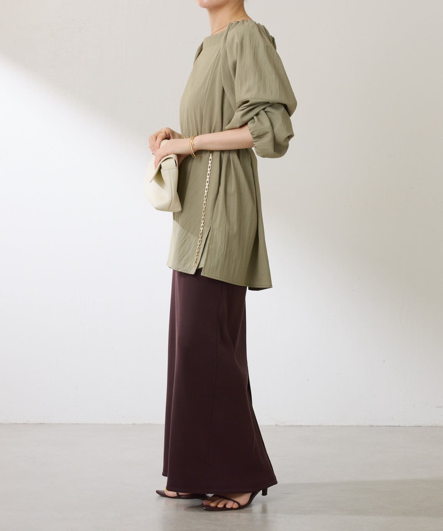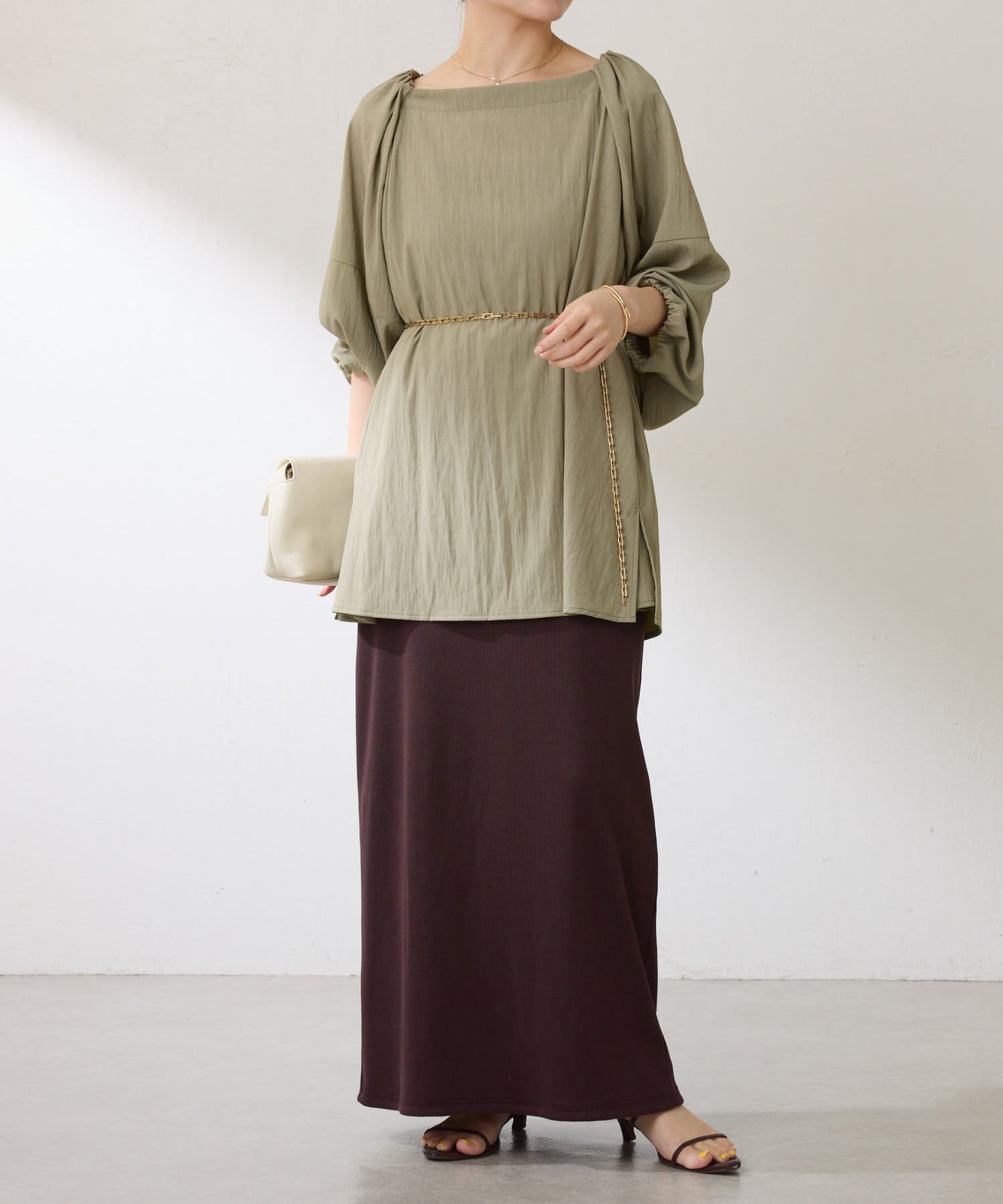 きれいめスカートと合わせればよそゆきコーデが完成します。