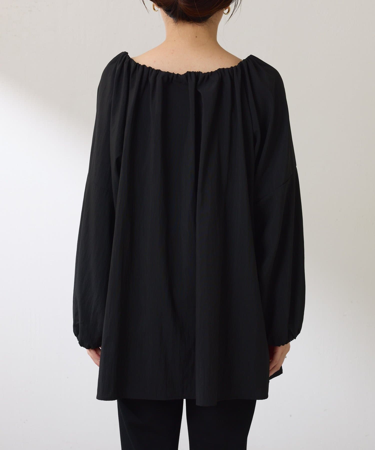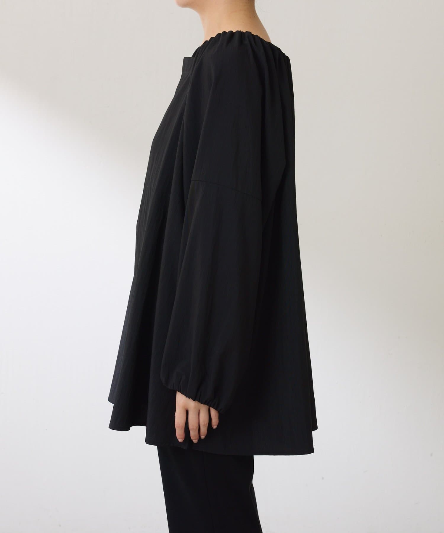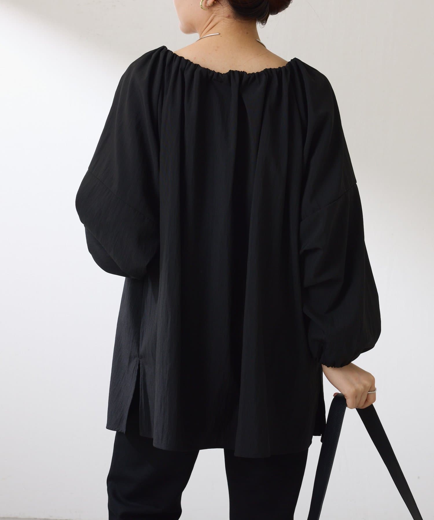 ・襟と袖先にはギャザーが入っており、ふんわりとした立体感で着映えするブラウス