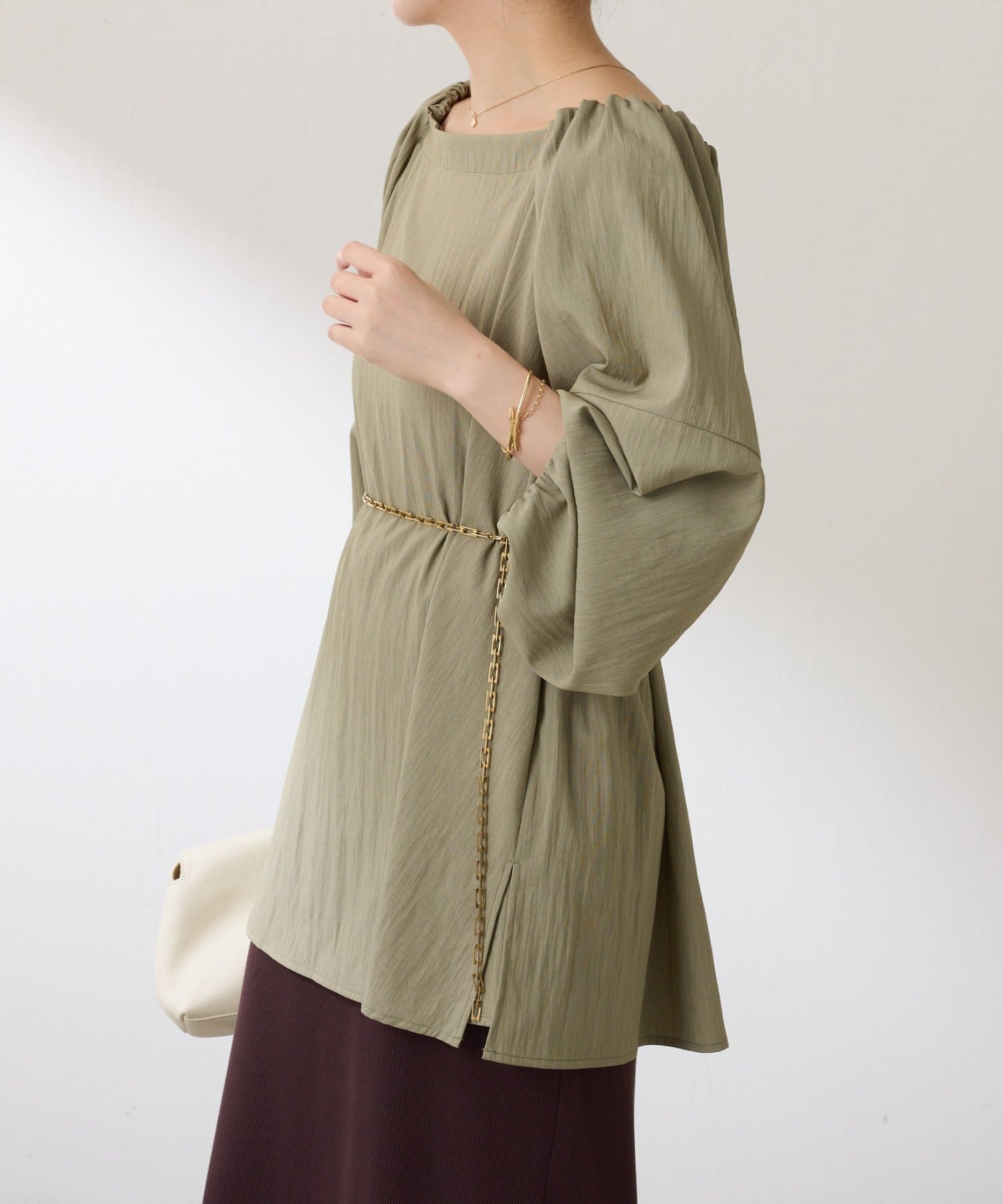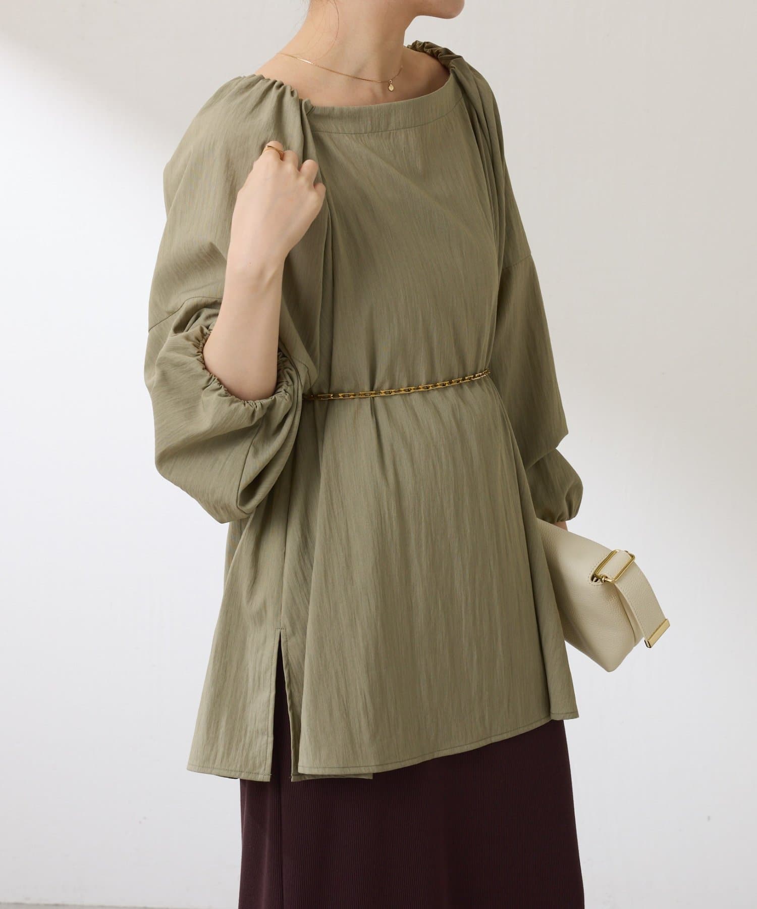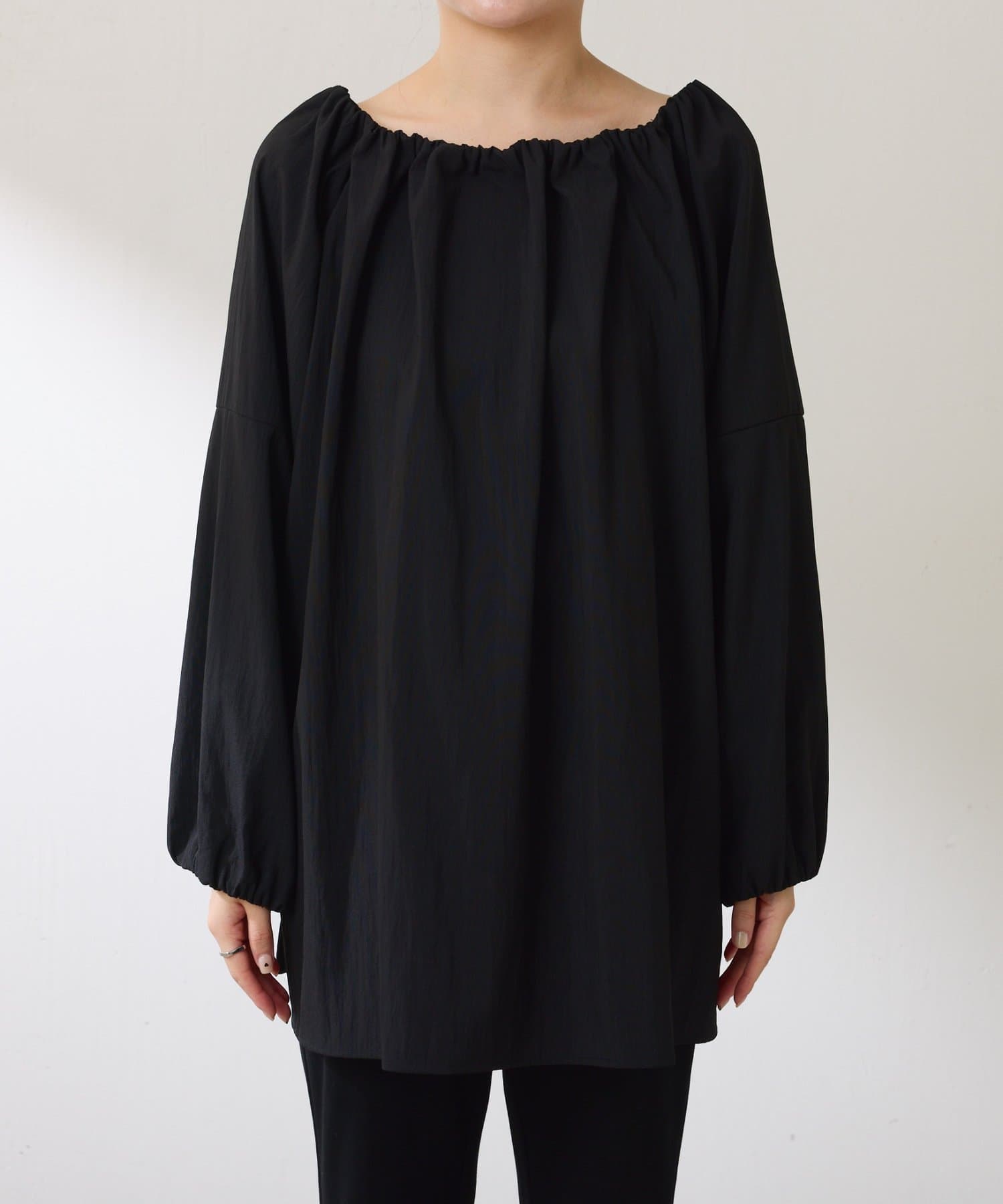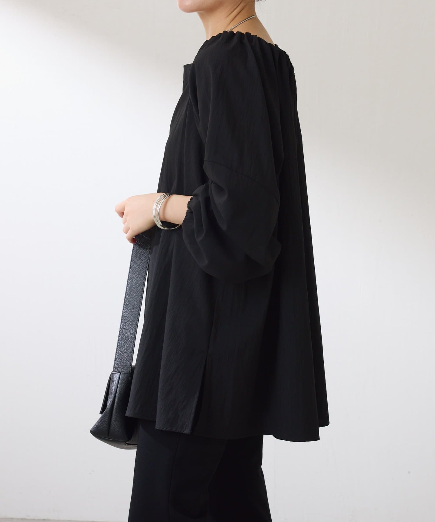 ・襟と袖先にはギャザーが入っており、ふんわりとした立体感で着映えするブラウス