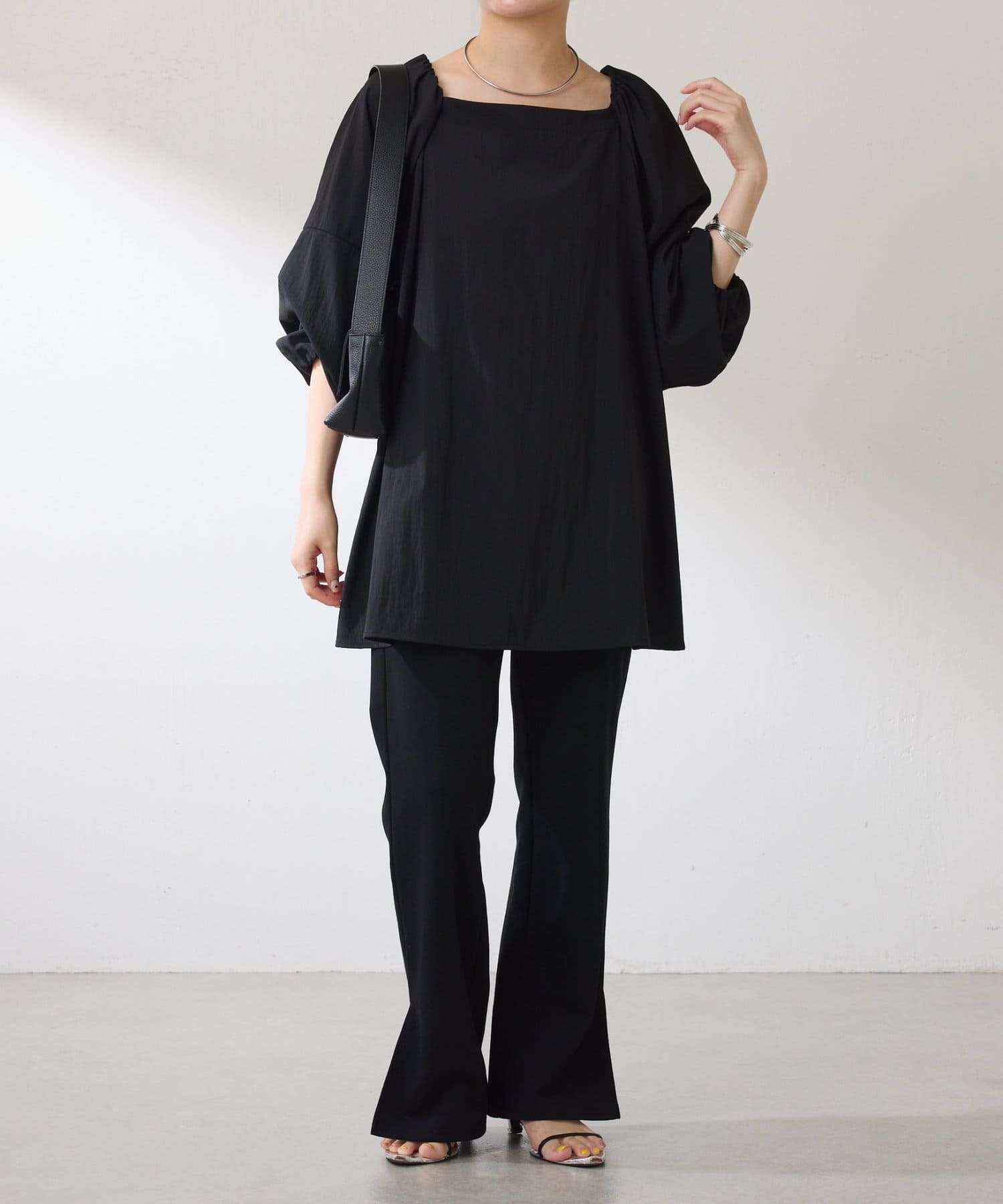 ・スクエアネックとギャザーの前後2WAYで着られます