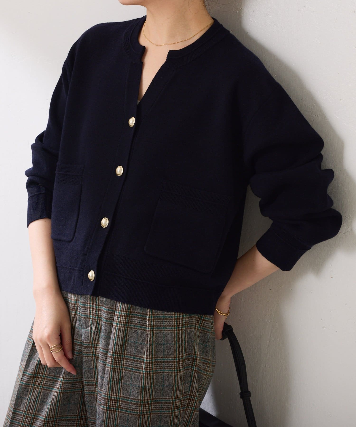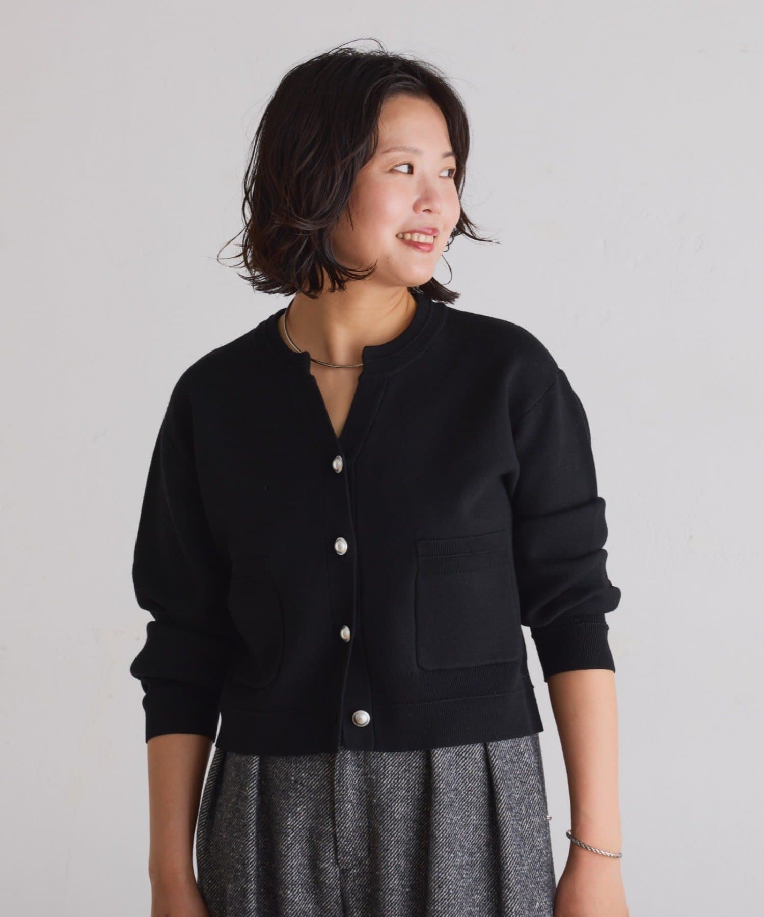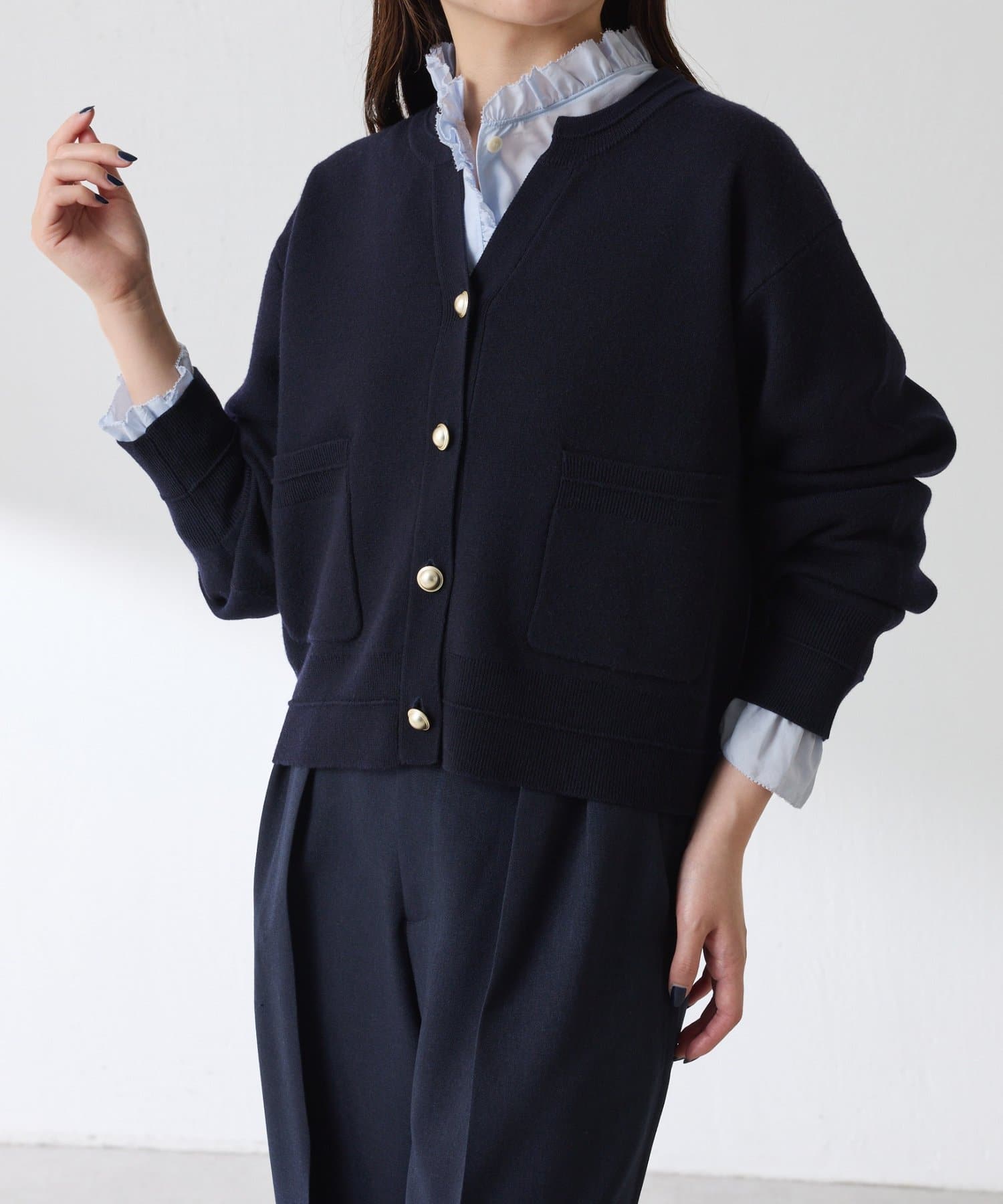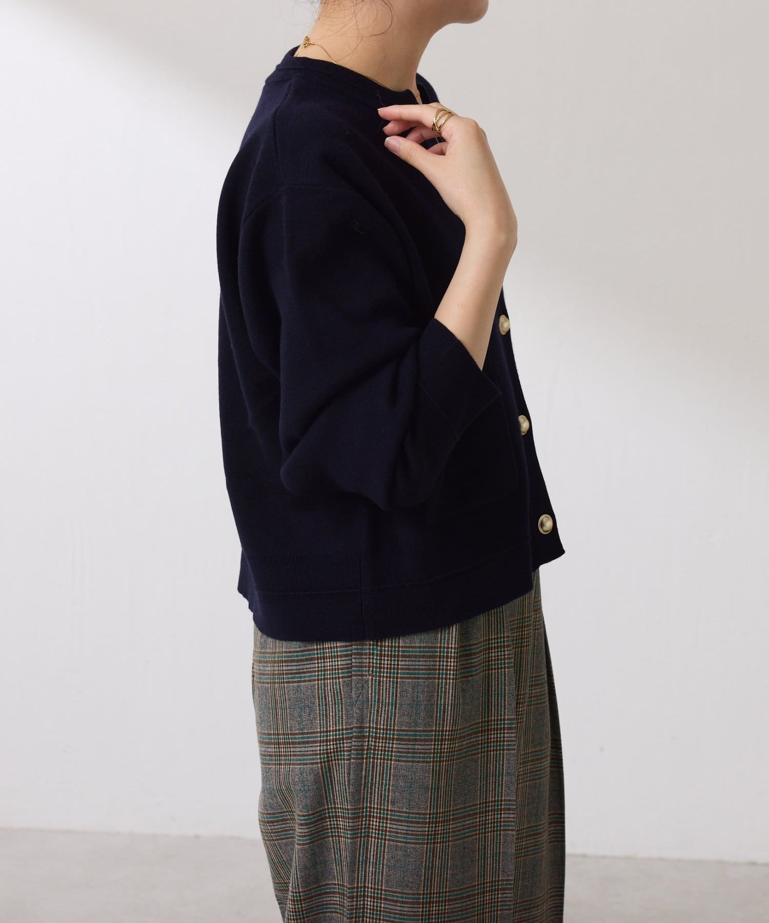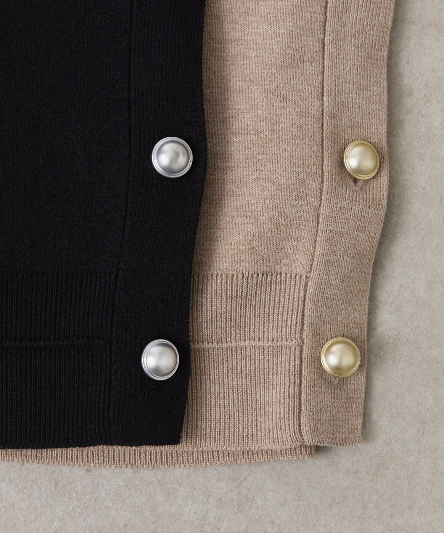 ・ボタンはニットのカラーごとに変えています。どのボタンもマットなお色が上品な印象です。