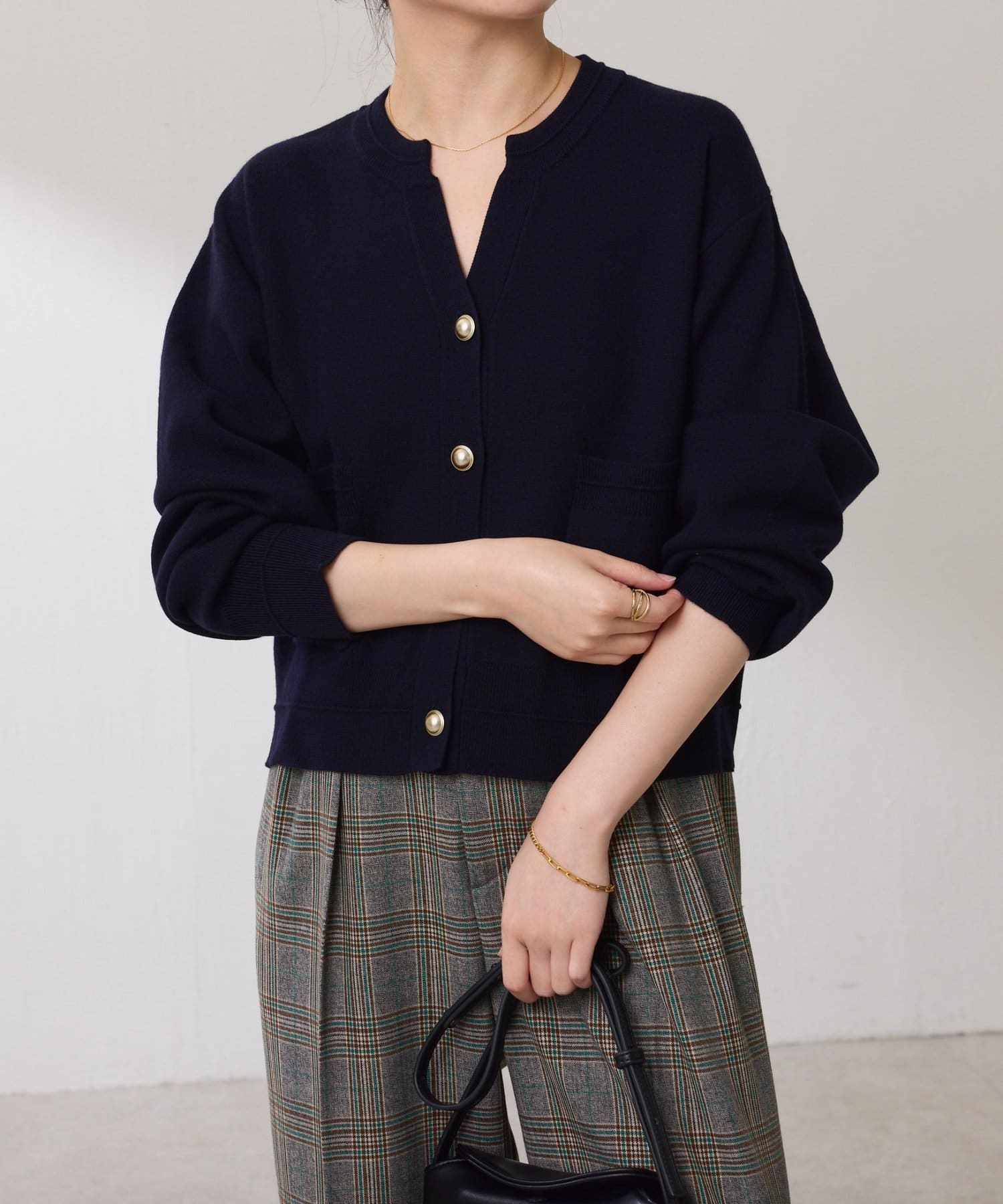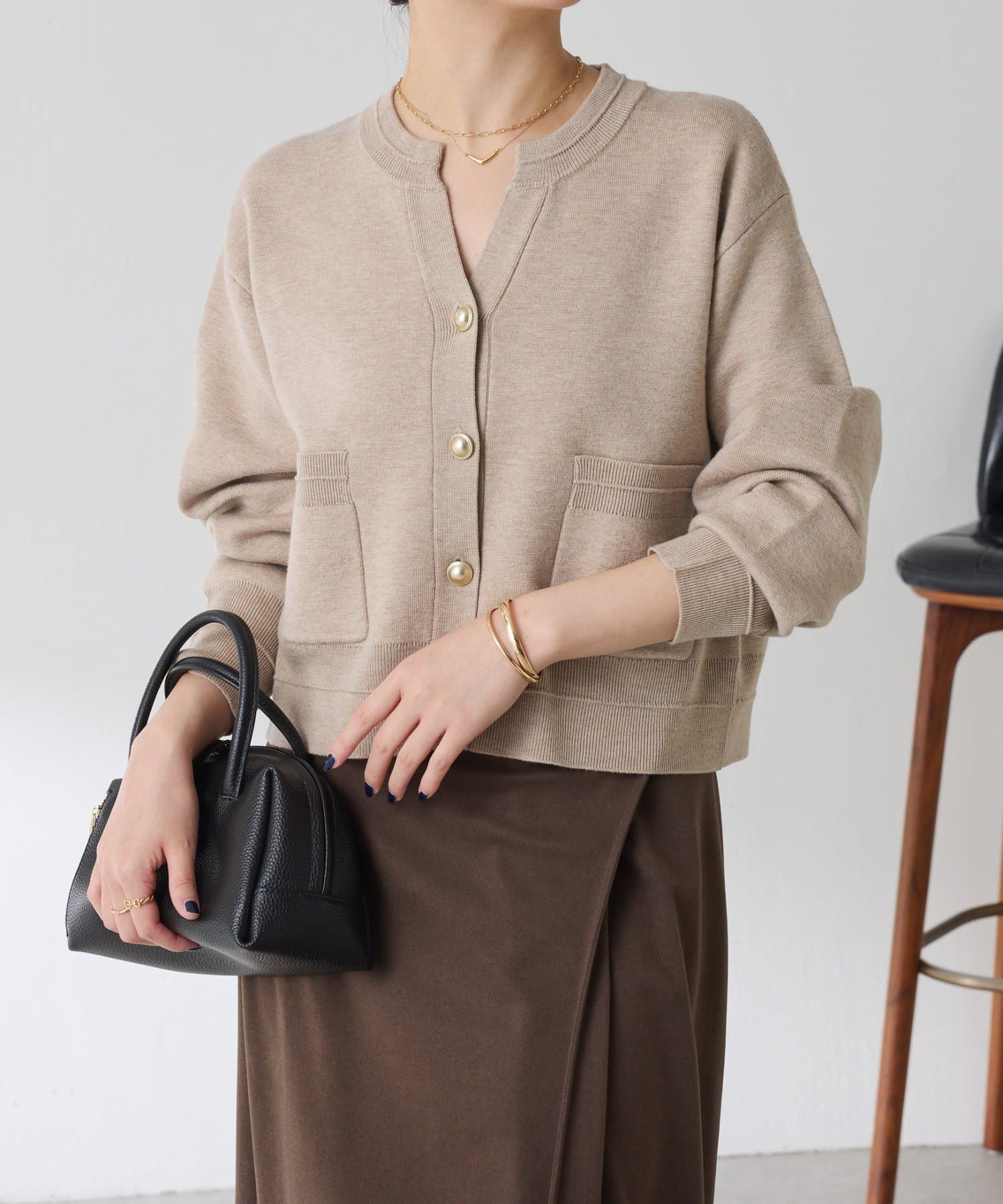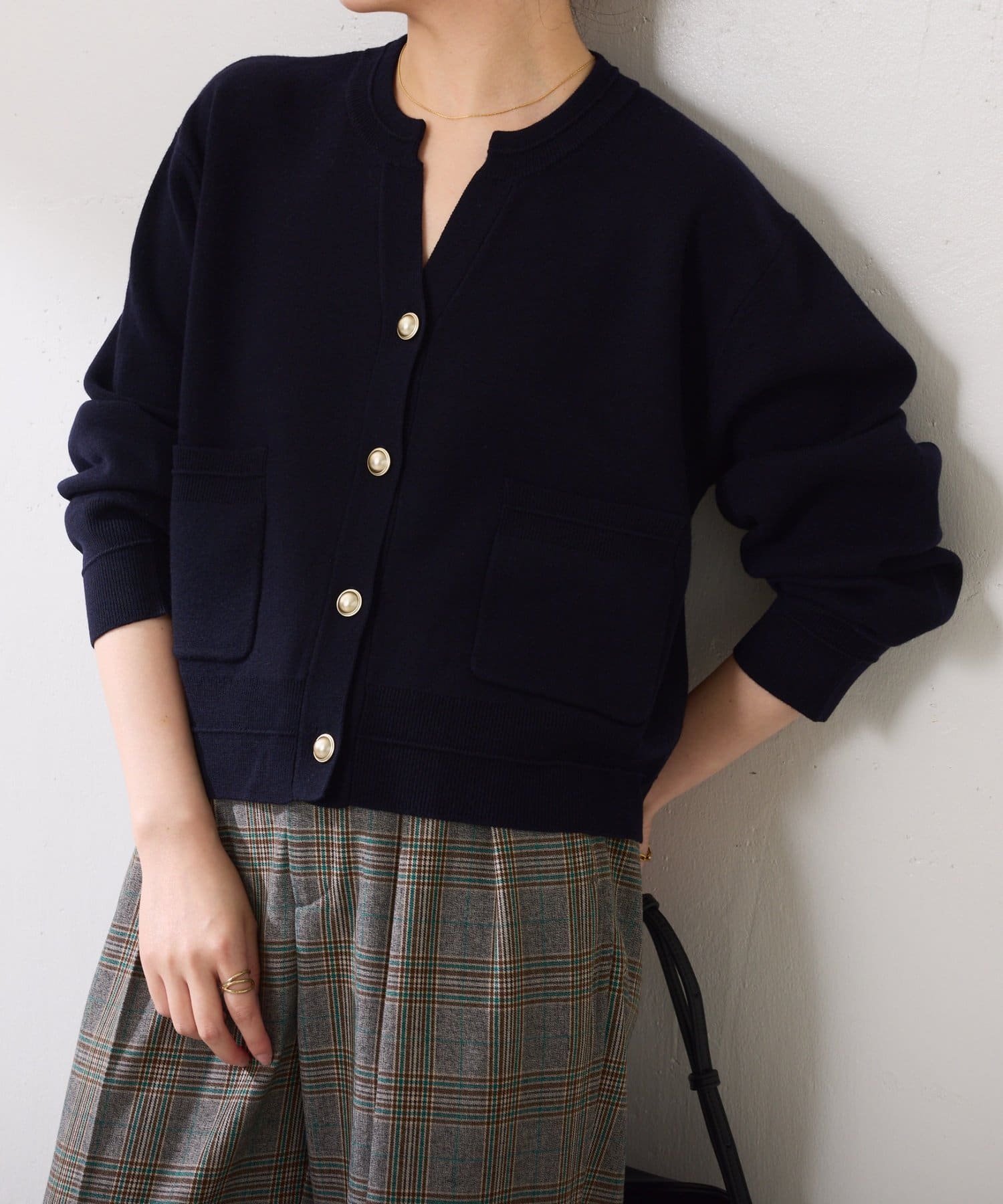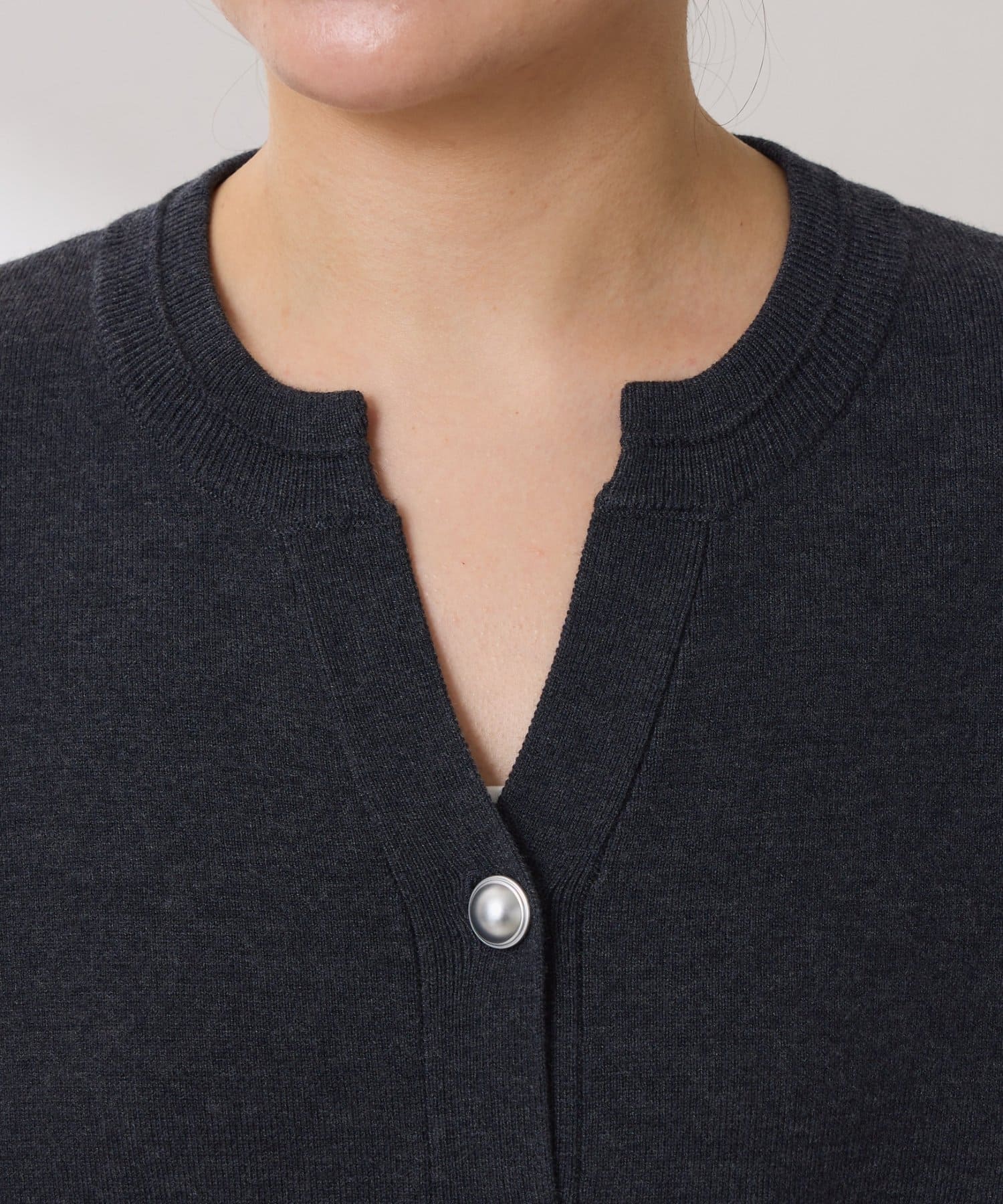 ・ボタンはニットのカラーごとに変えています。どのボタンもマットなお色が上品な印象です。