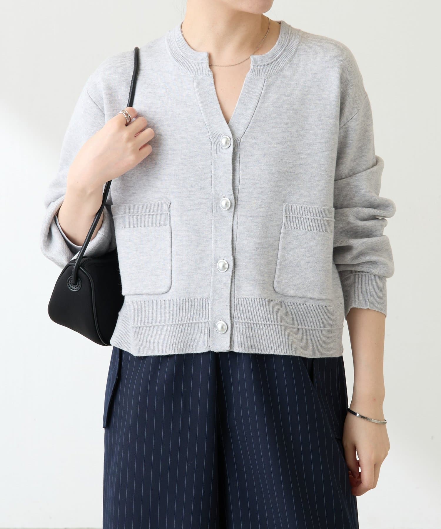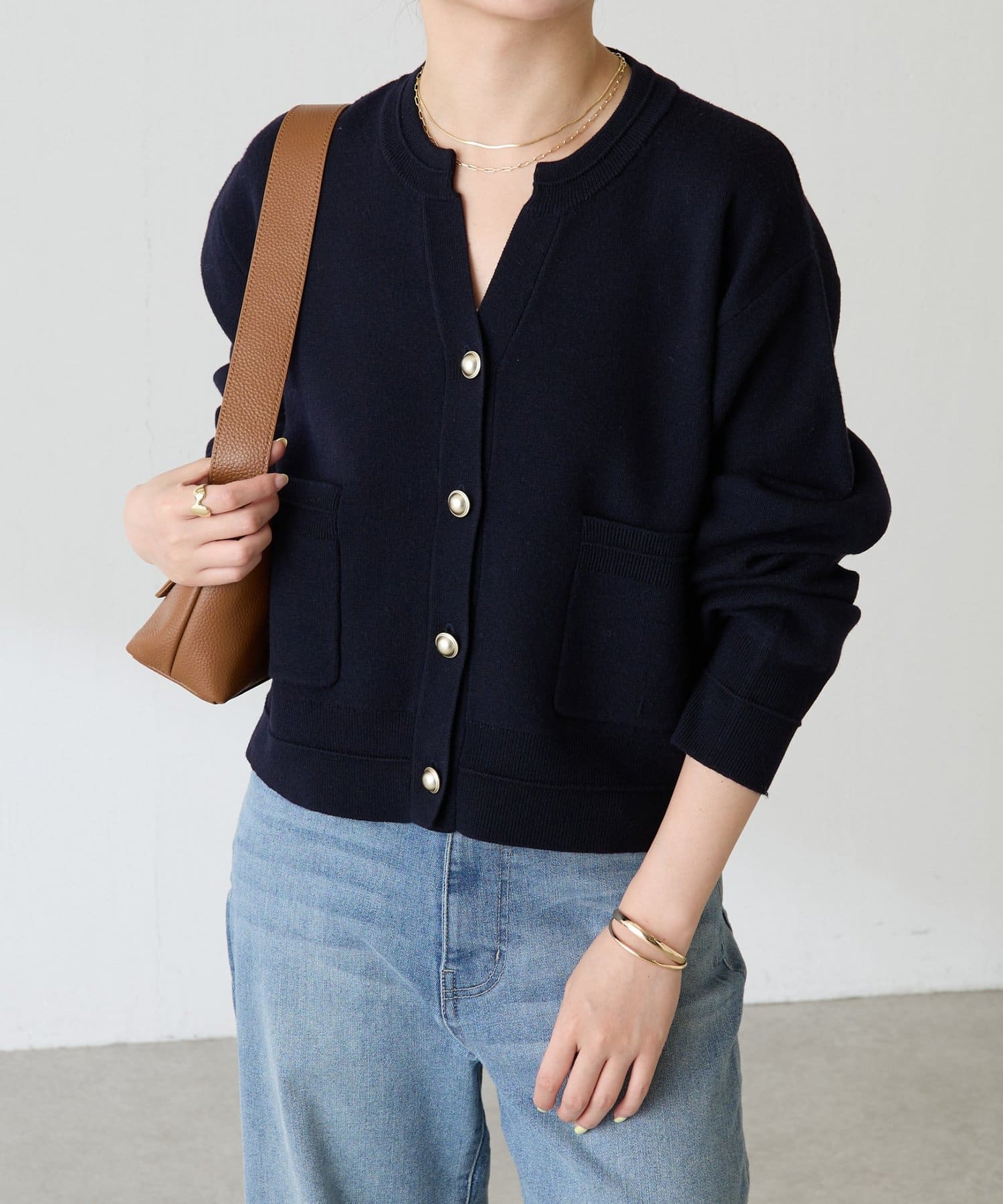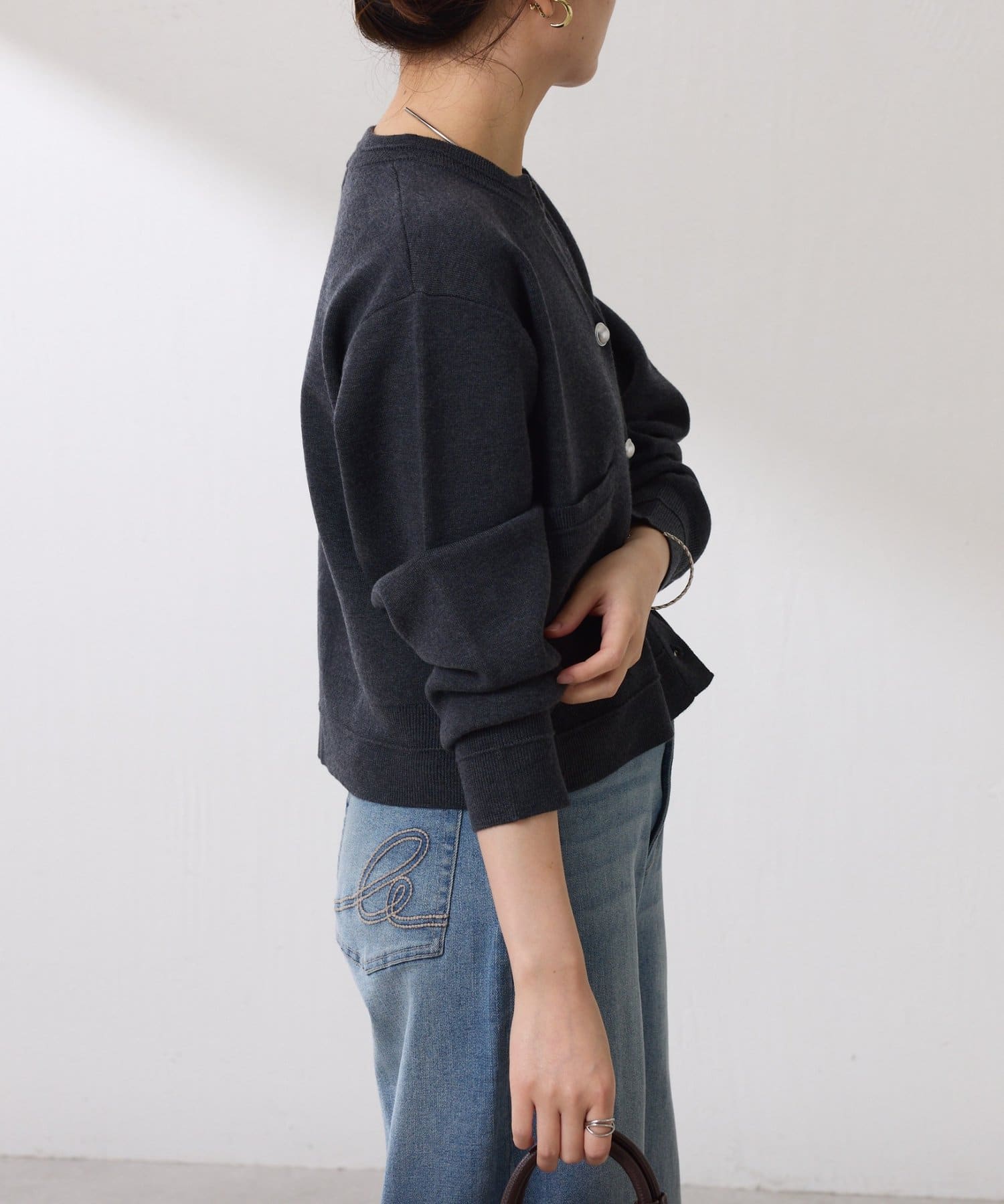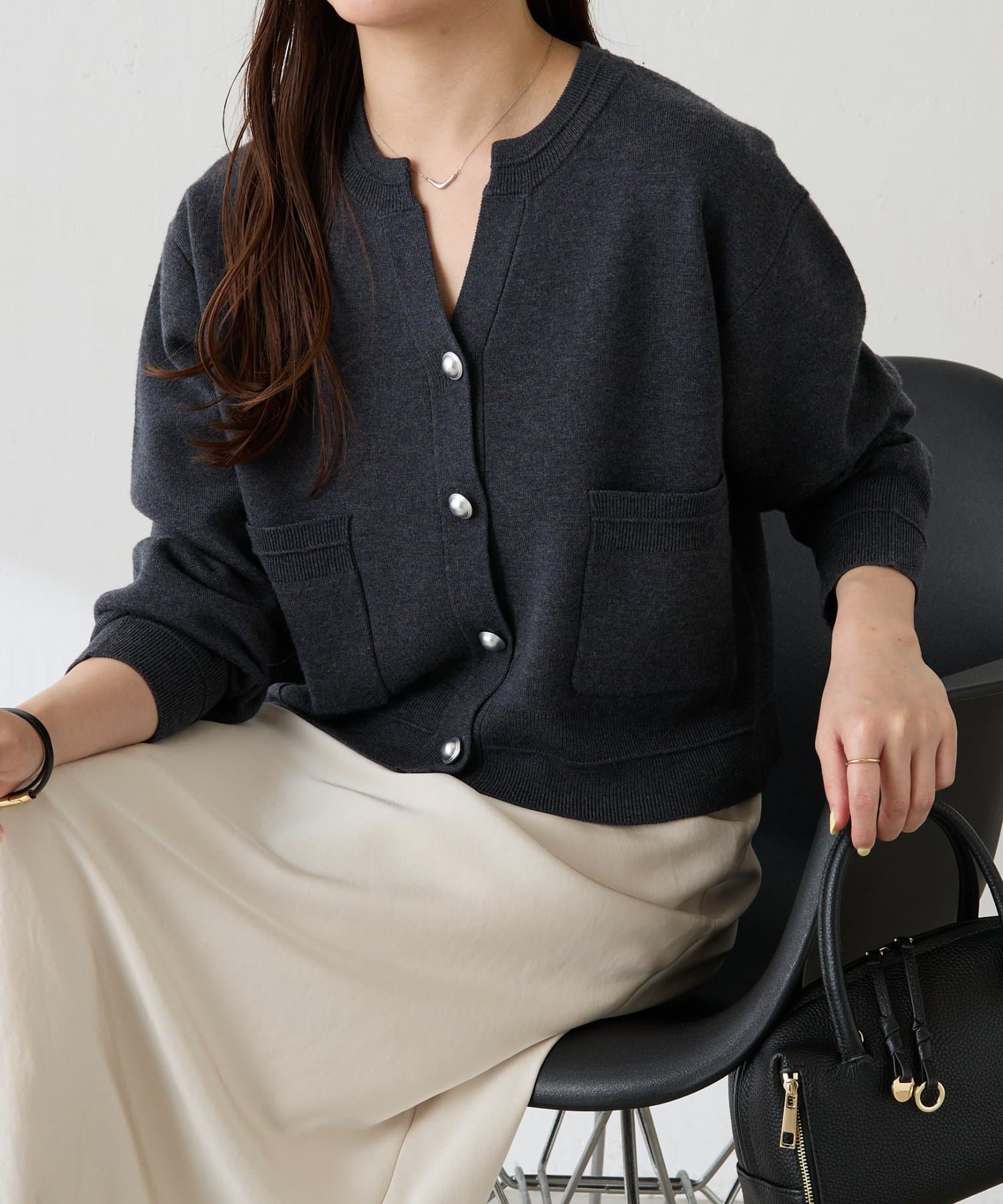 ・ボタンはニットのカラーごとに変えています。どのボタンもマットなお色が上品な印象です。