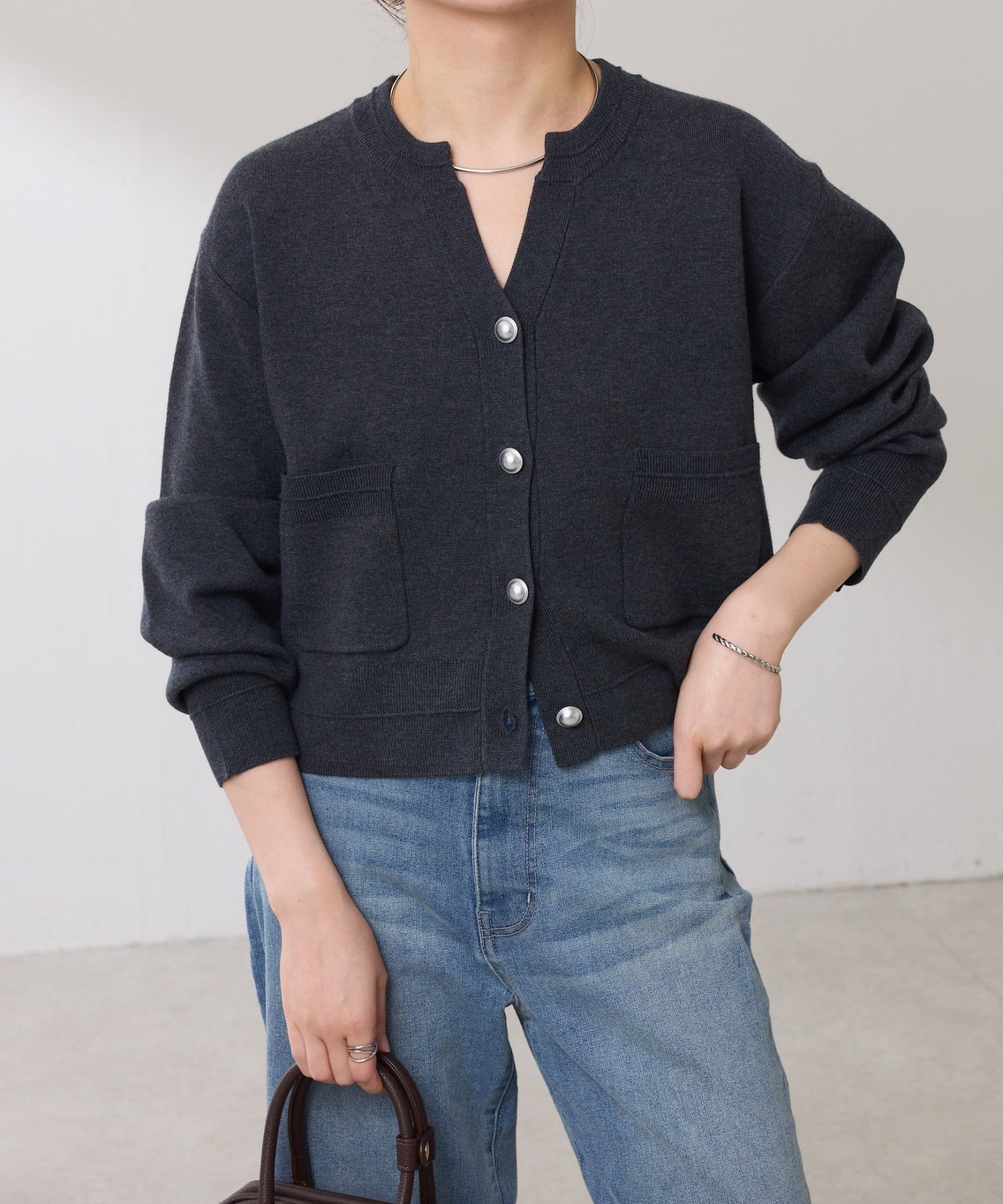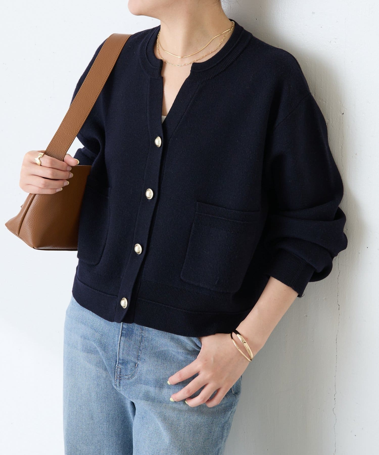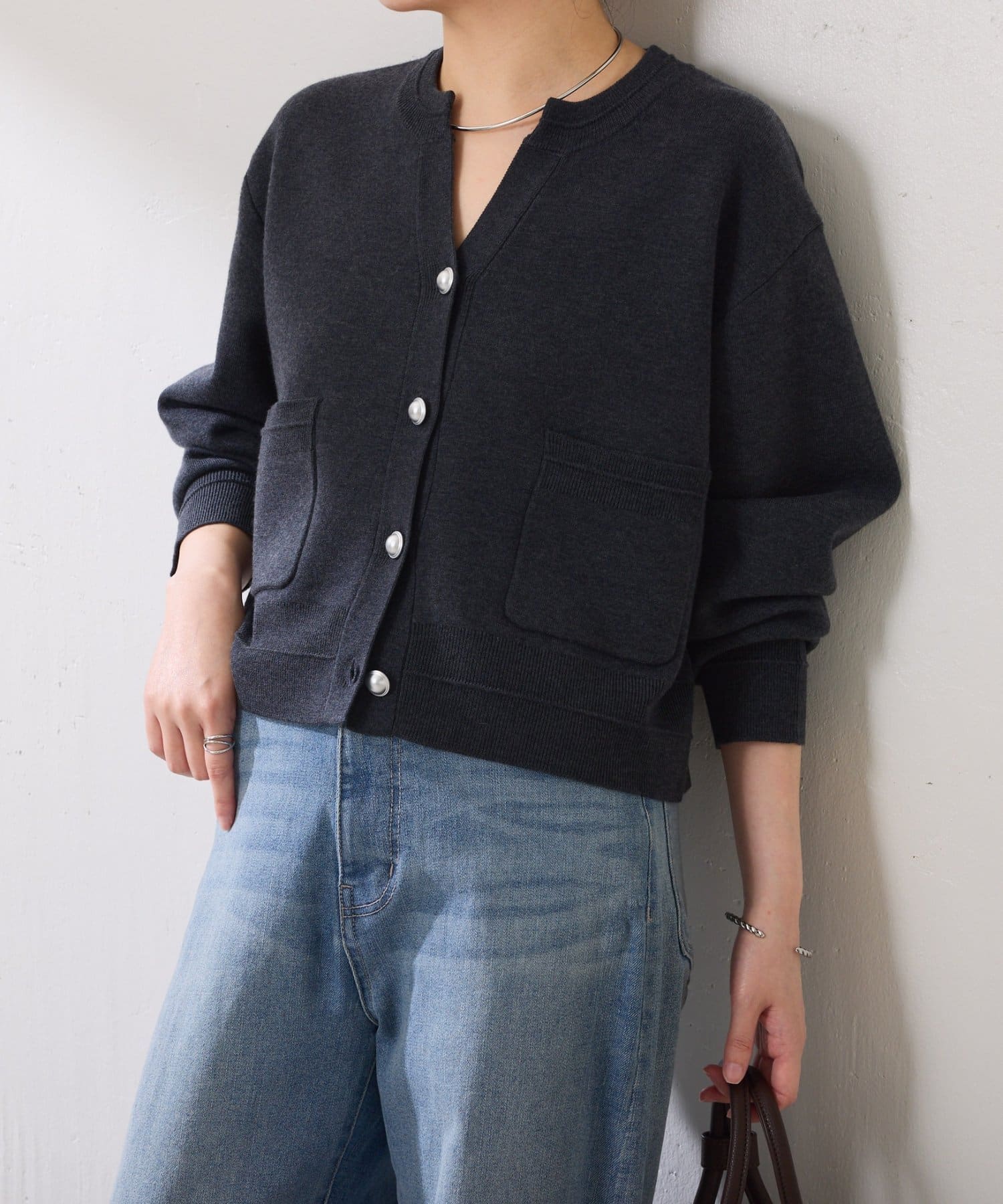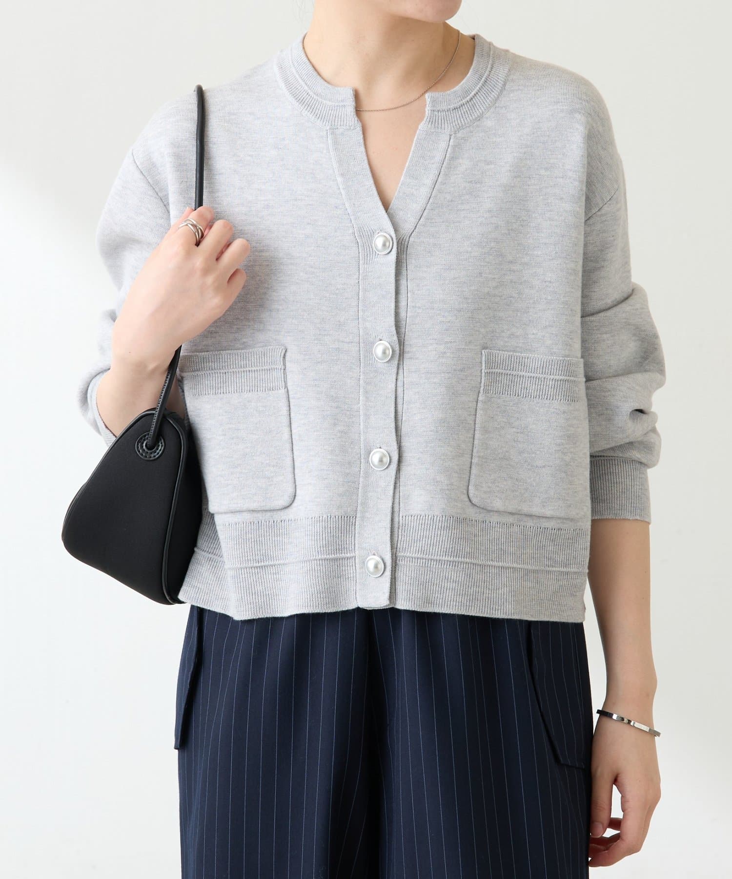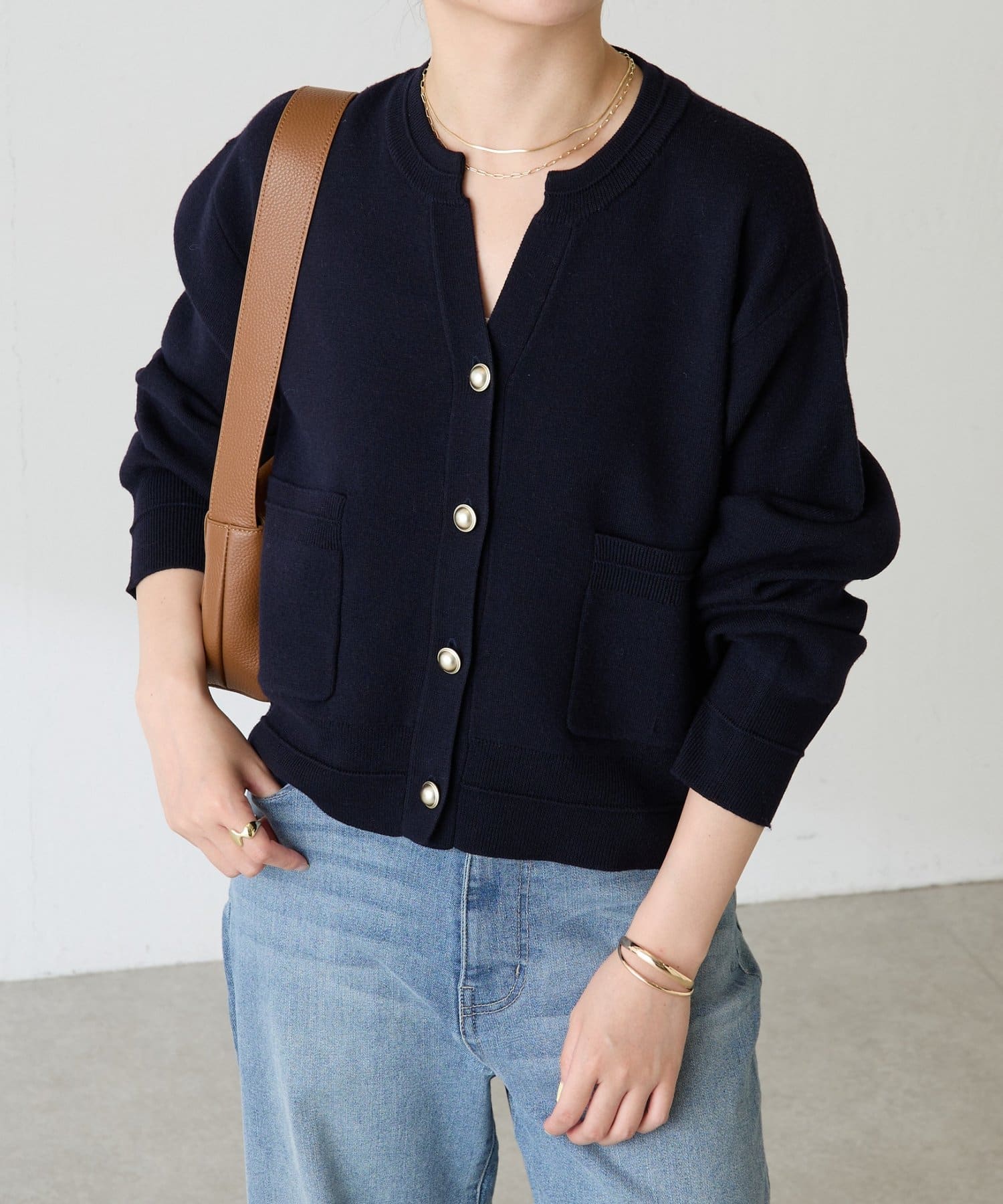 ・ボタンはニットのカラーごとに変えています。どのボタンもマットなお色が上品な印象です。