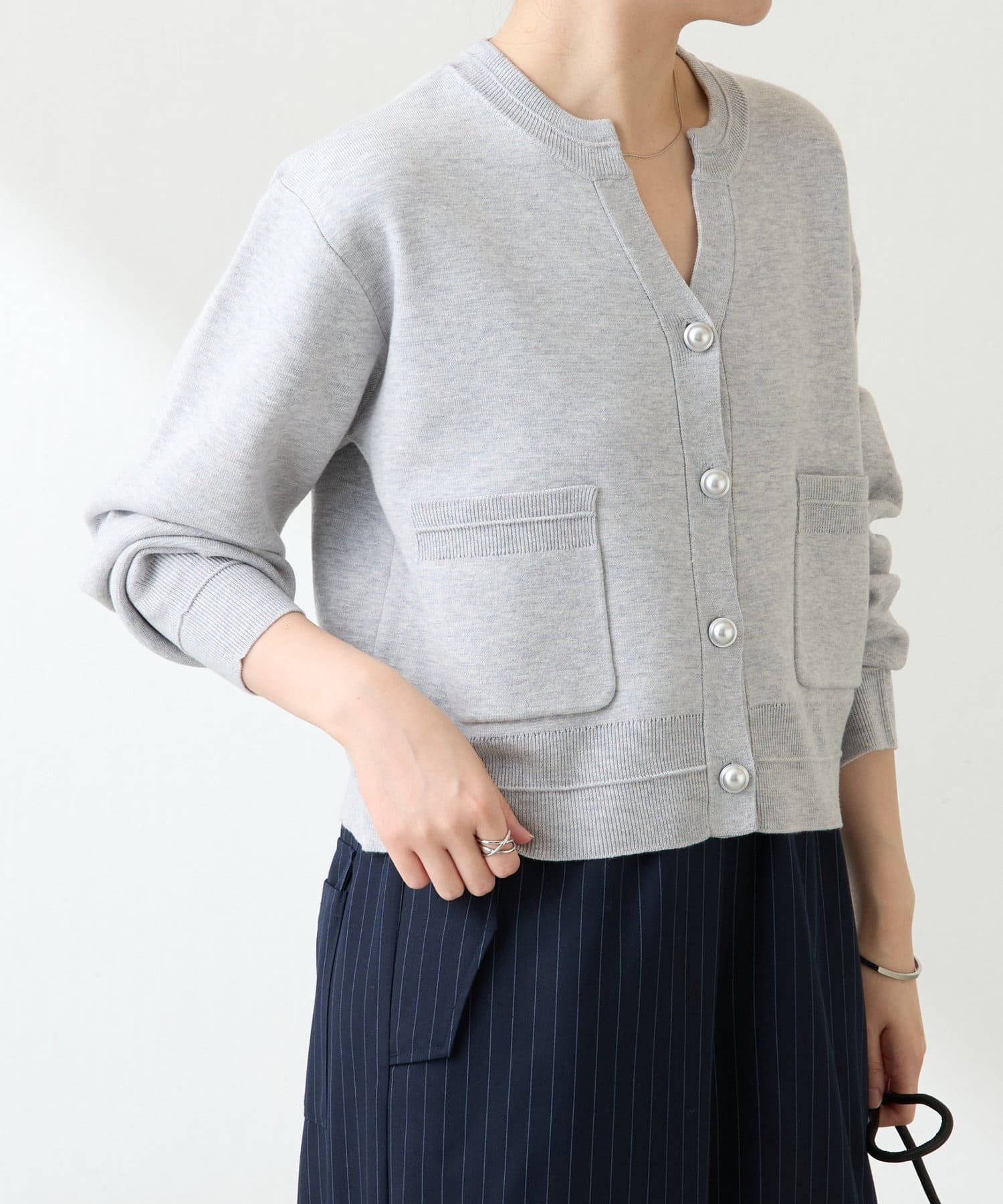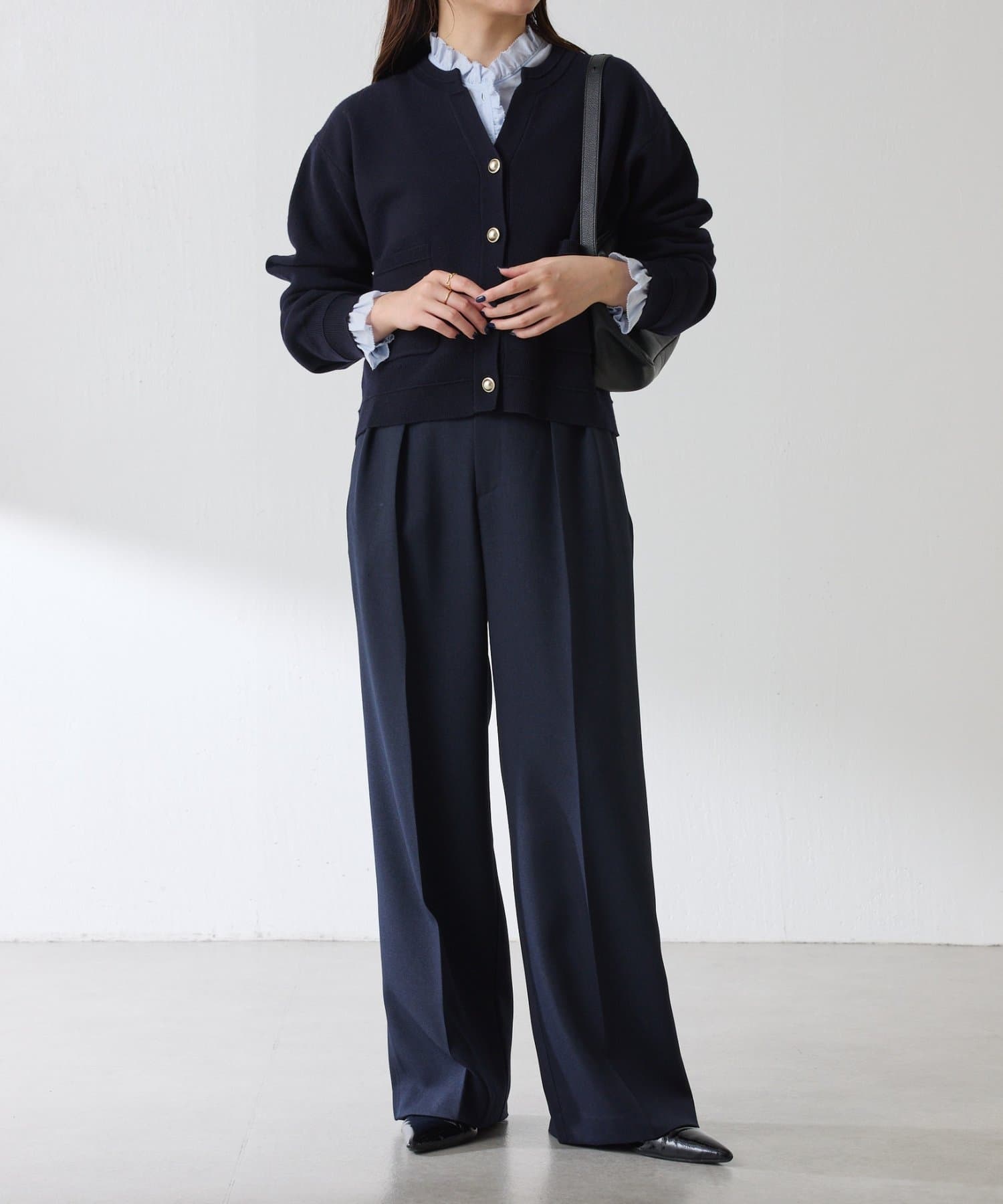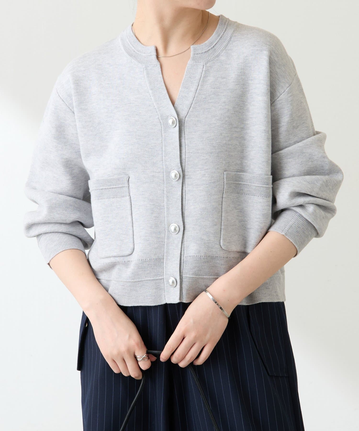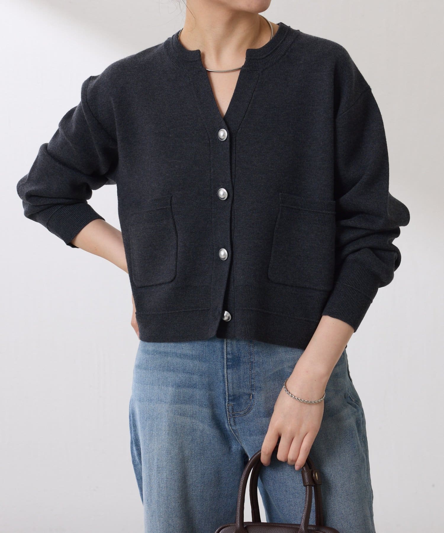 ・ボタンはニットのカラーごとに変えています。どのボタンもマットなお色が上品な印象です。