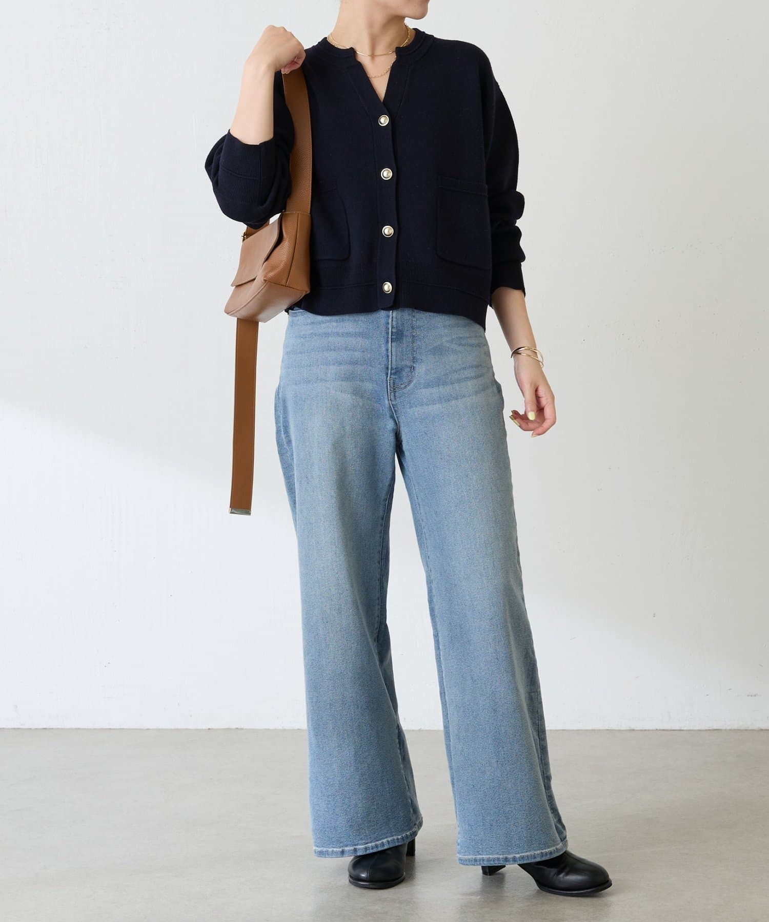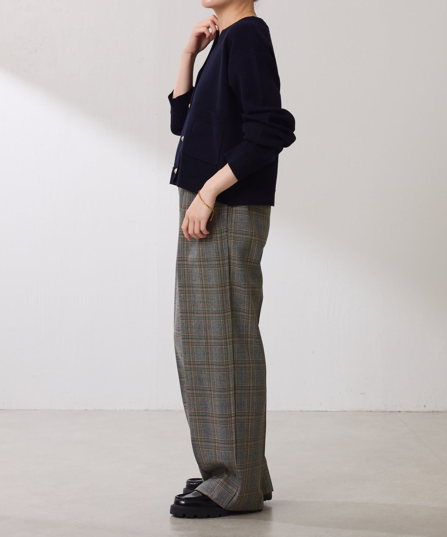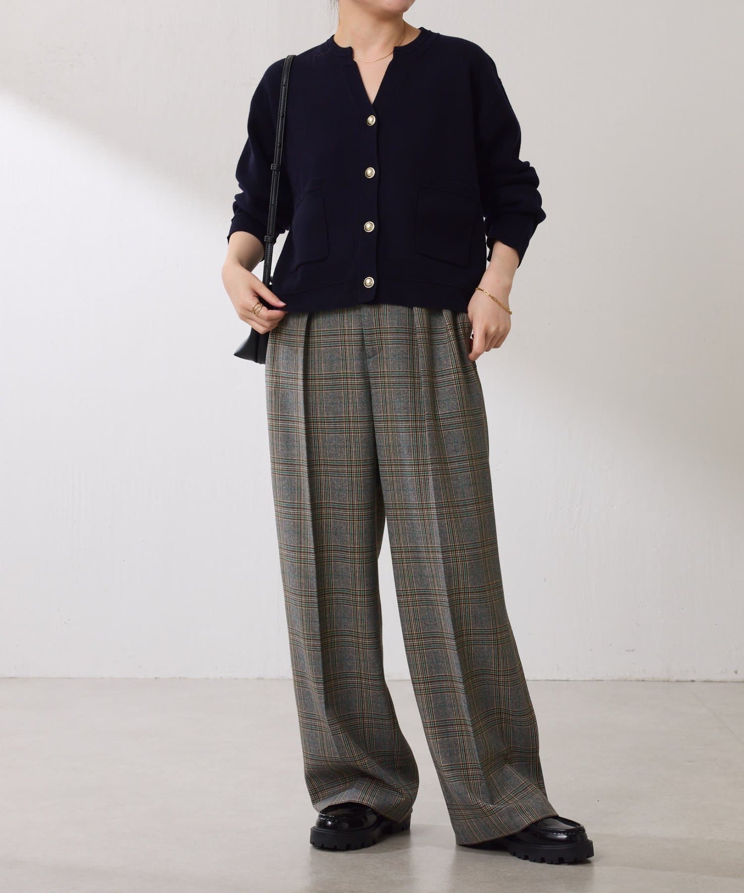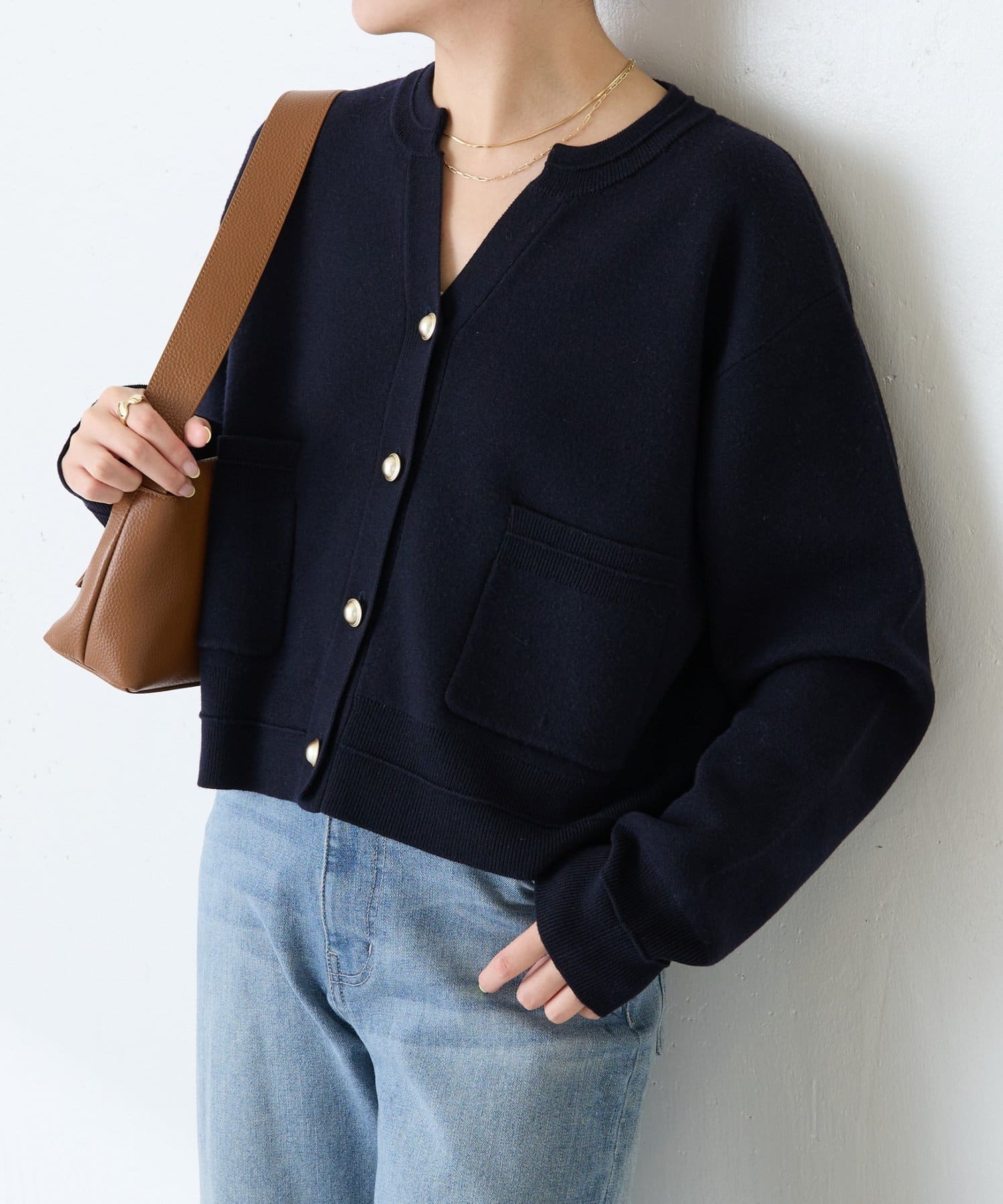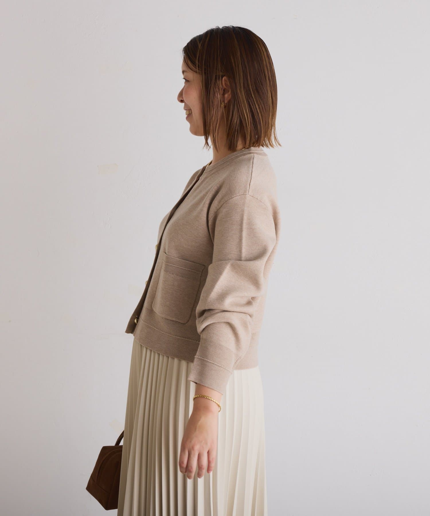 ・ボタンはニットのカラーごとに変えています。どのボタンもマットなお色が上品な印象です。