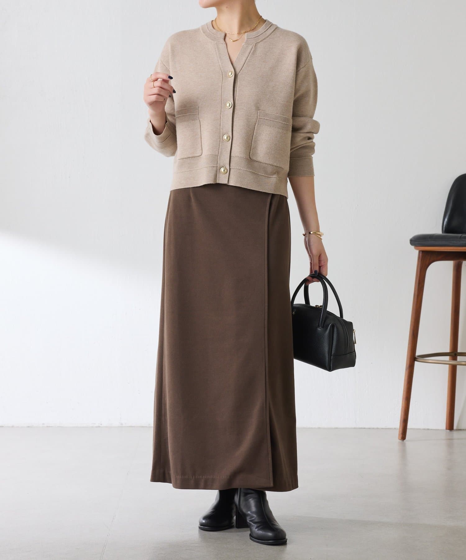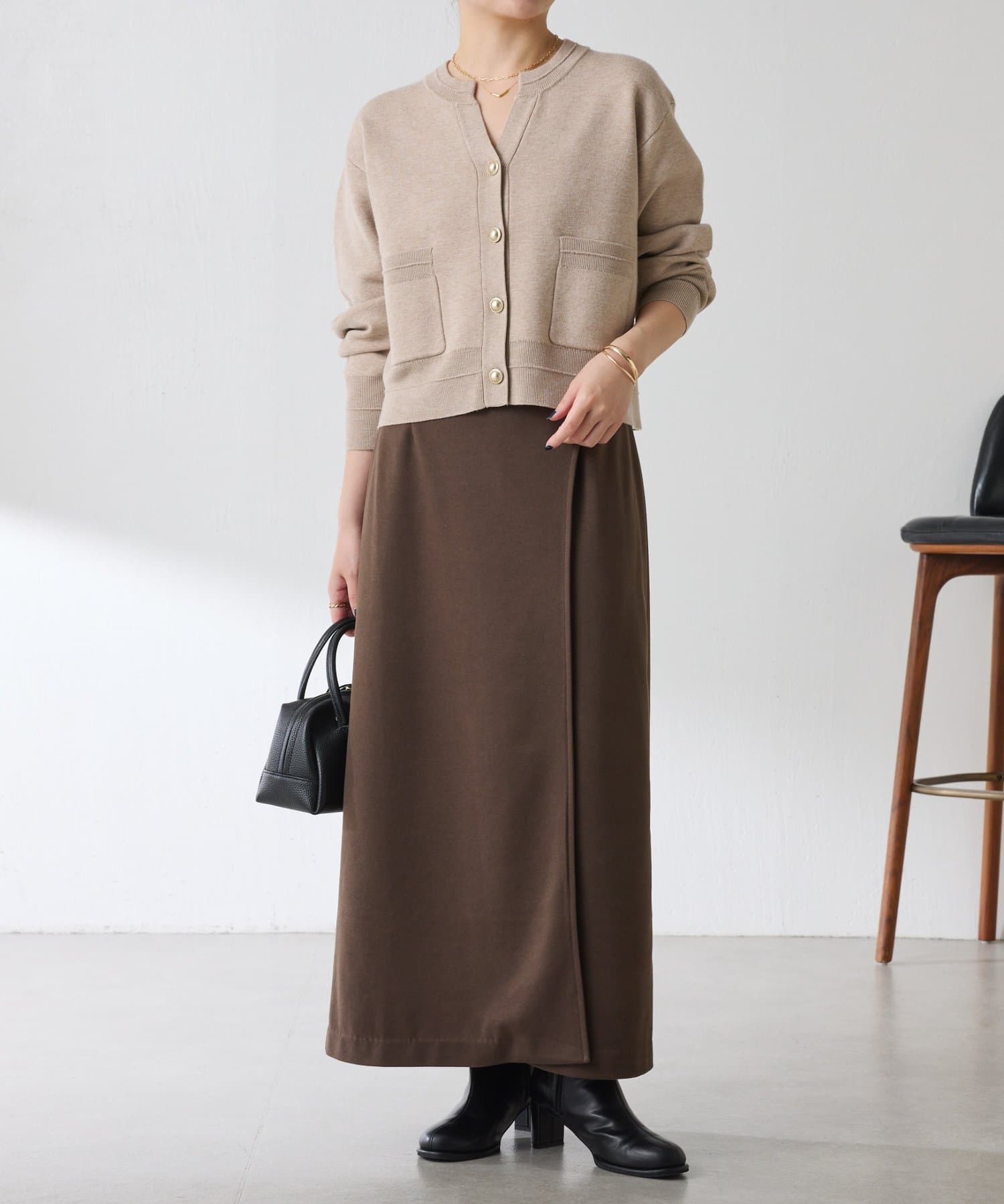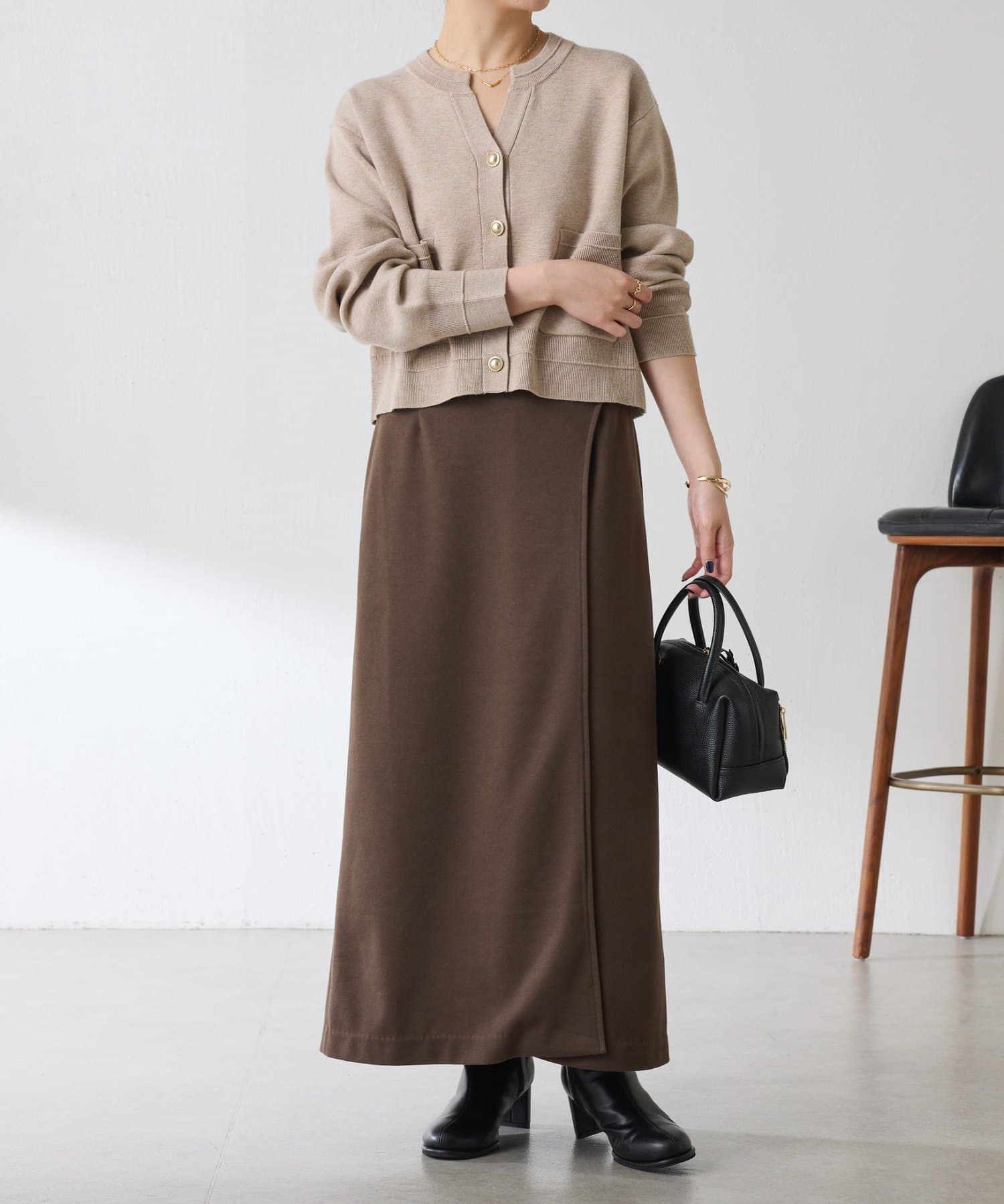 ・目の詰まったハイゲージ編みは、きちんと感があるのできれいめにも使えます◎