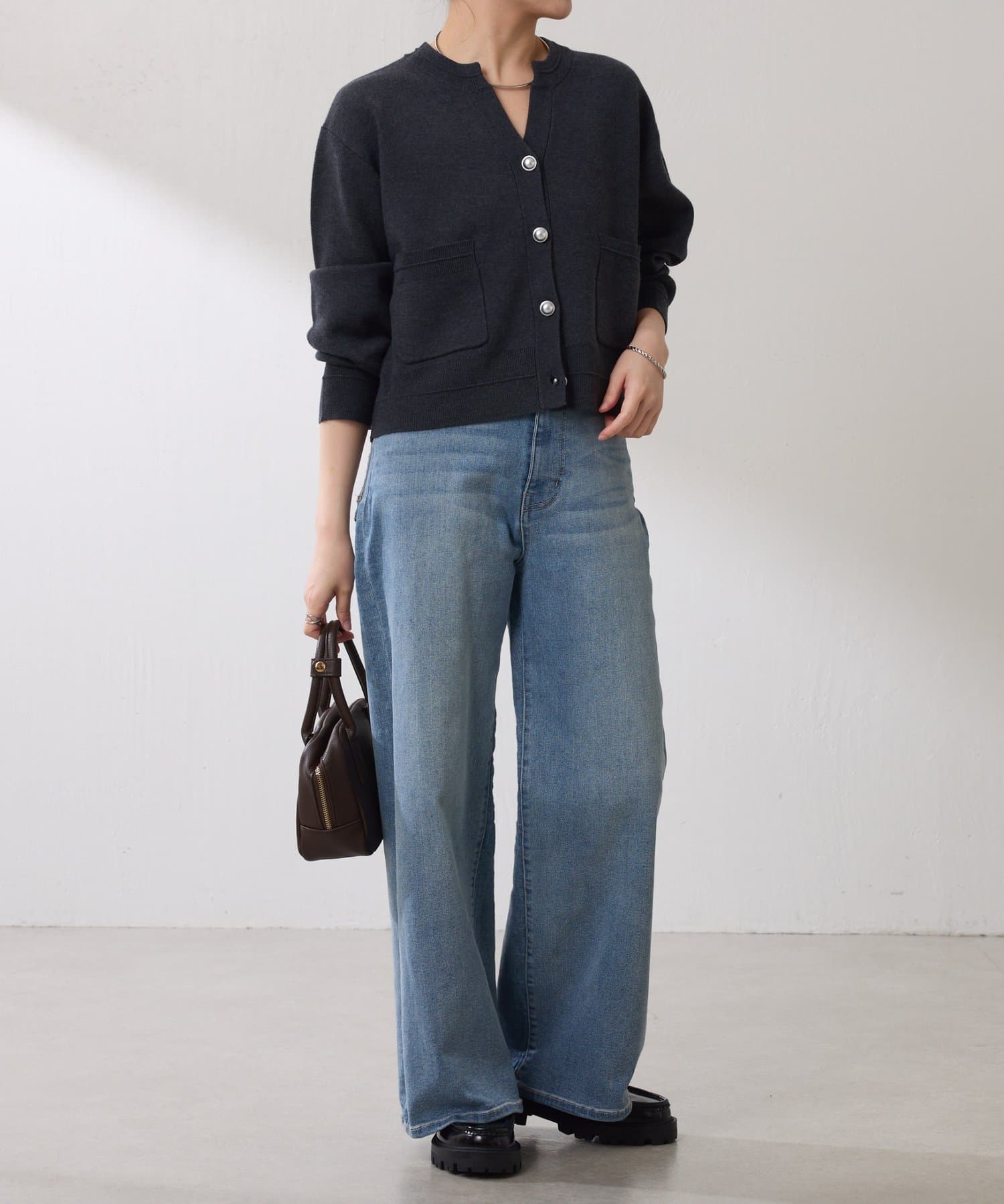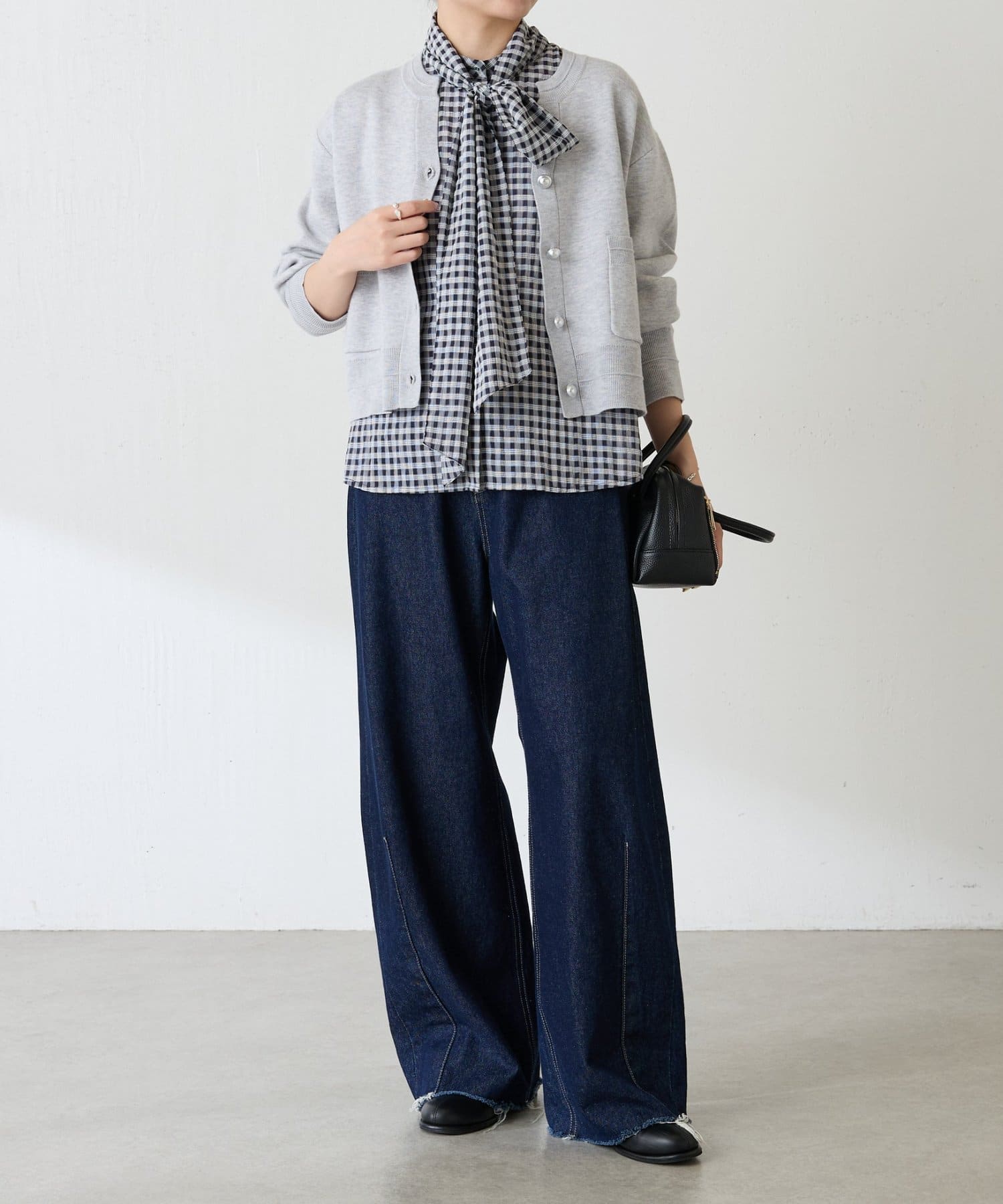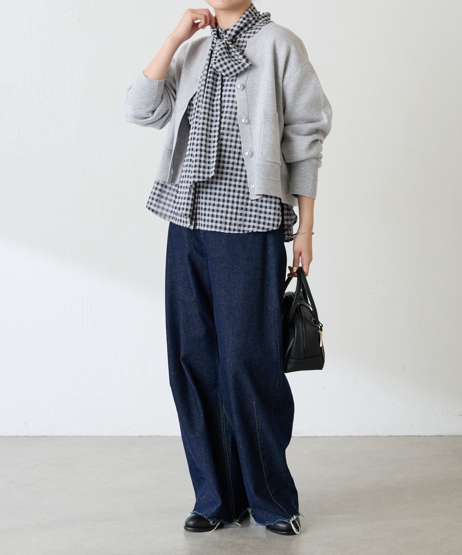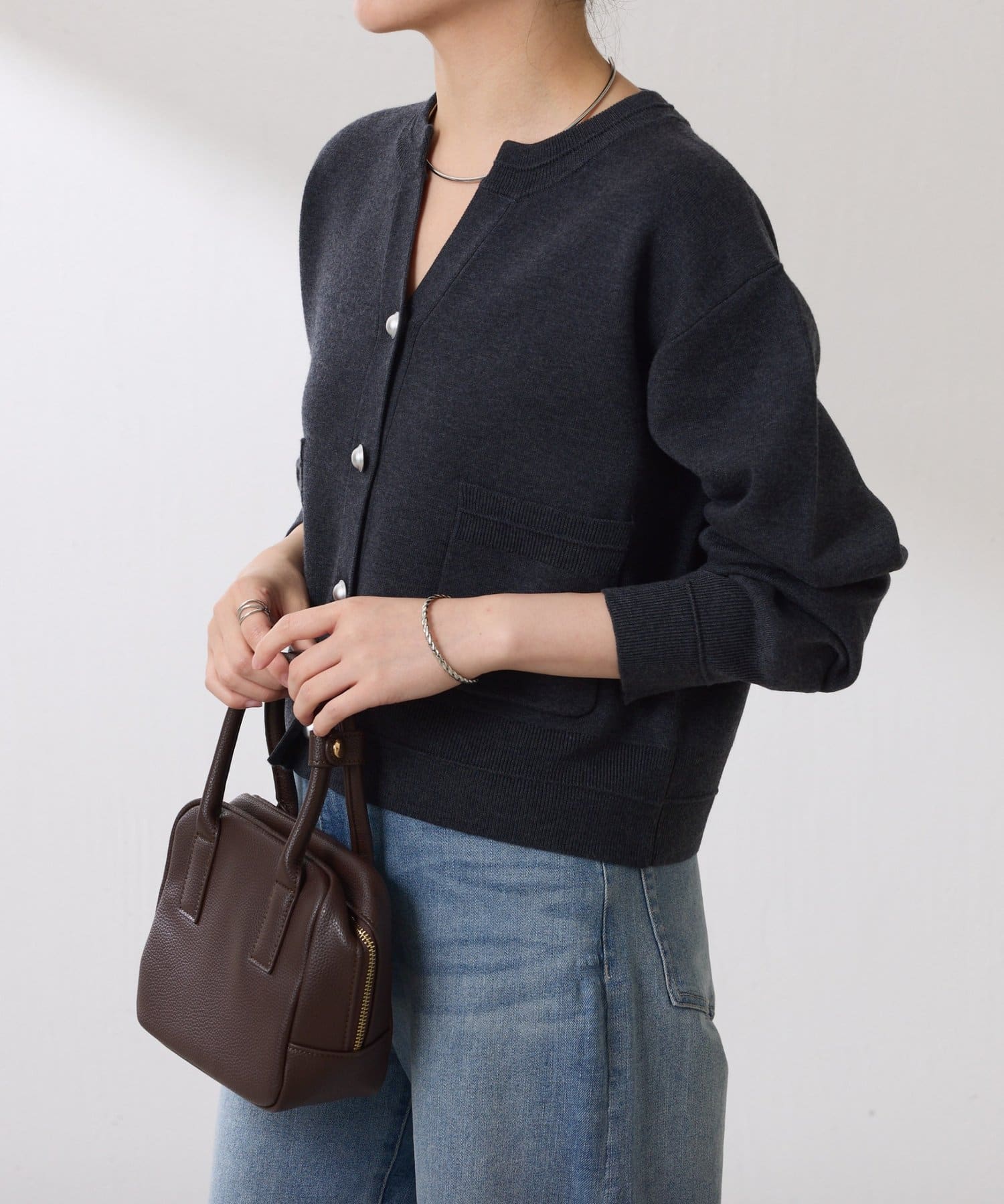 ・目の詰まったハイゲージ編みは、きちんと感があるのできれいめにも使えます◎