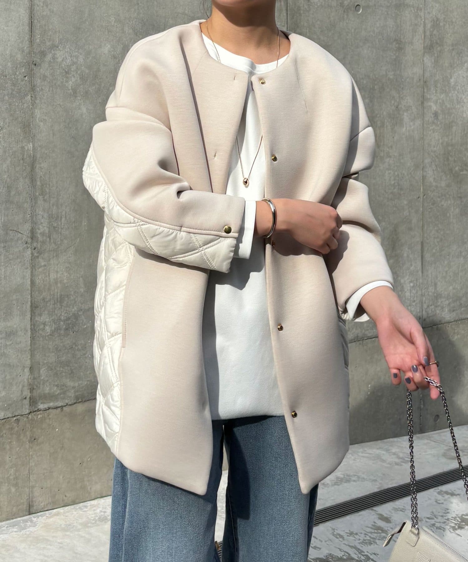 ・キルティングの切替デザインを施し、後ろ姿まで抜かりのないアウター