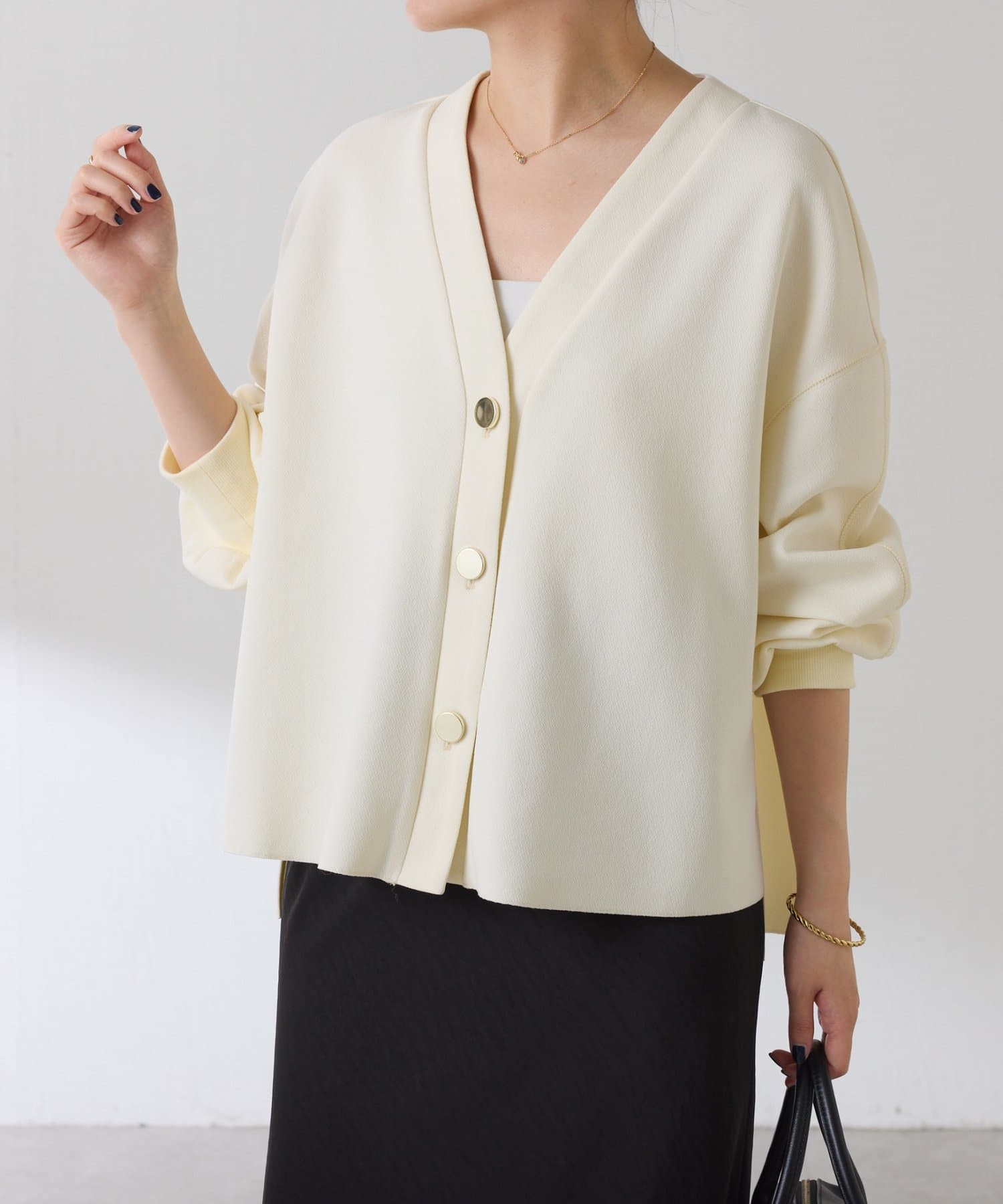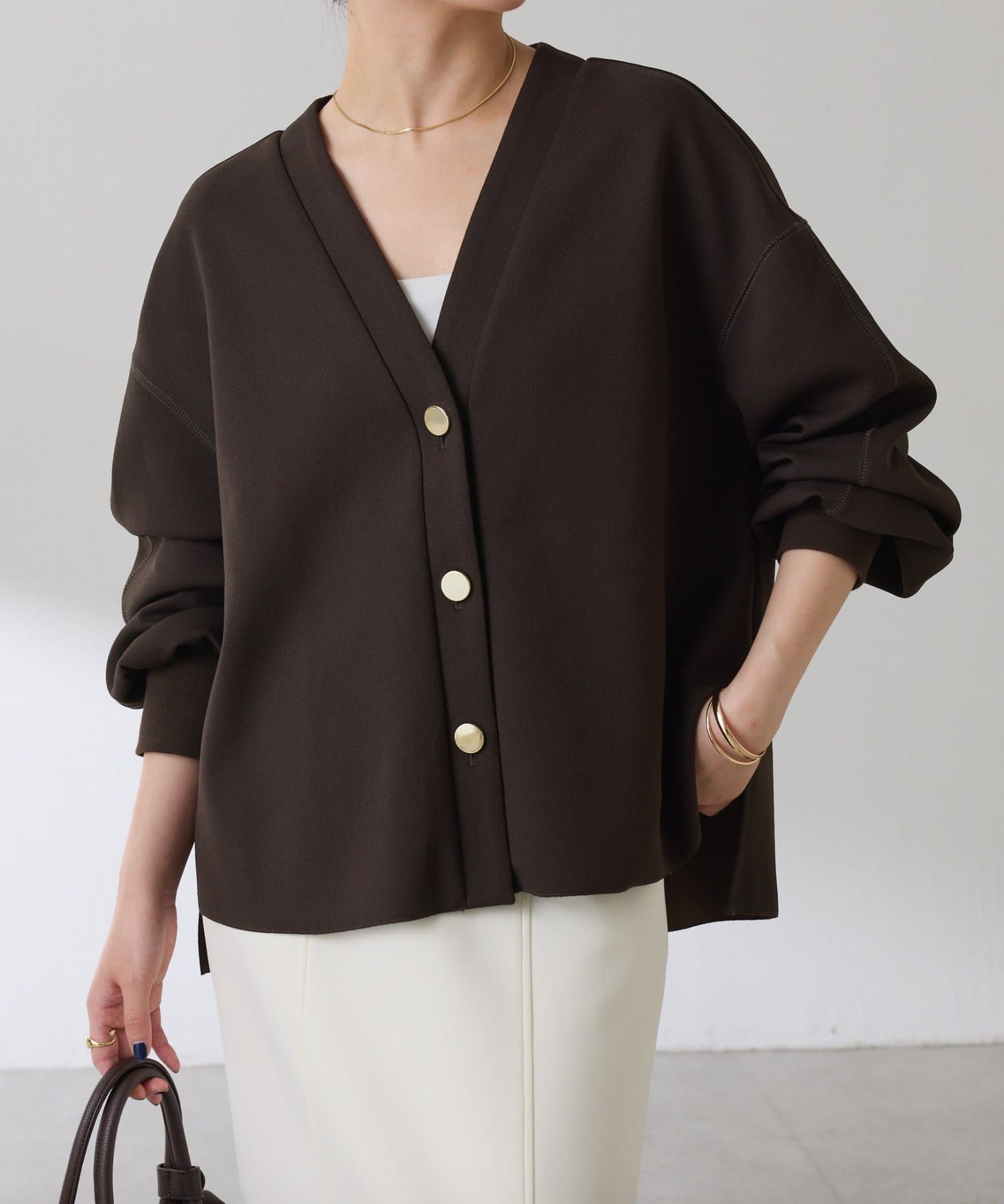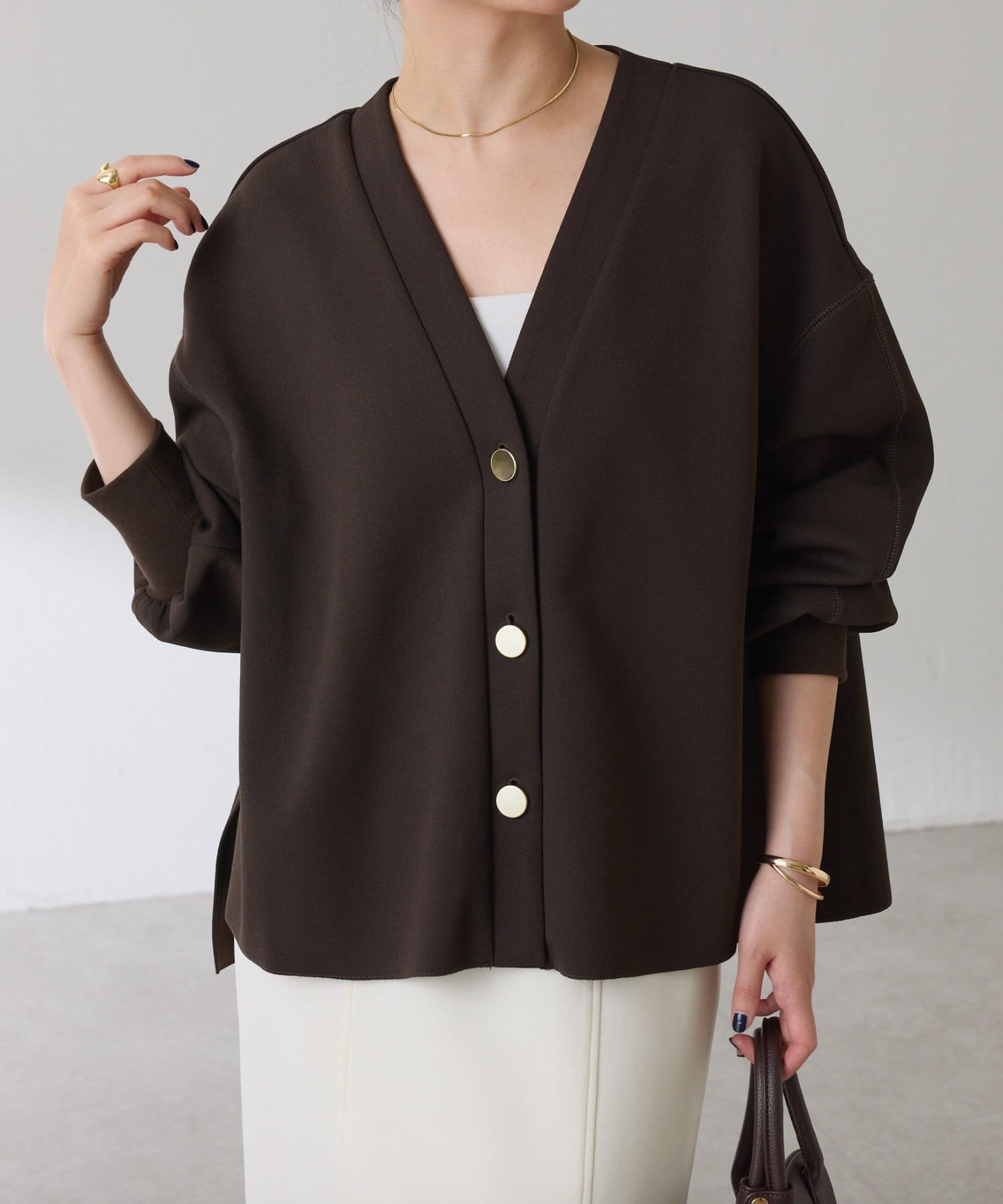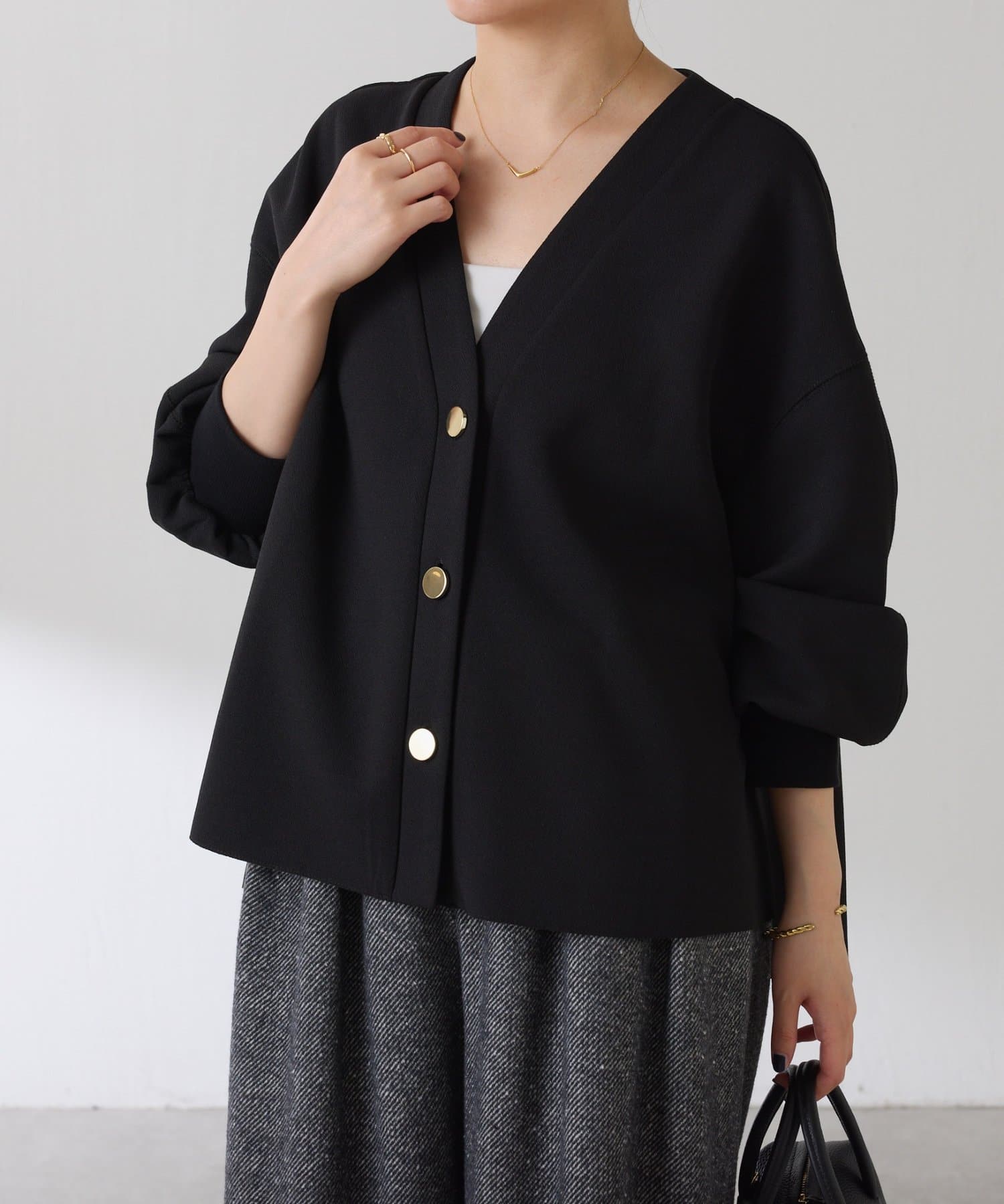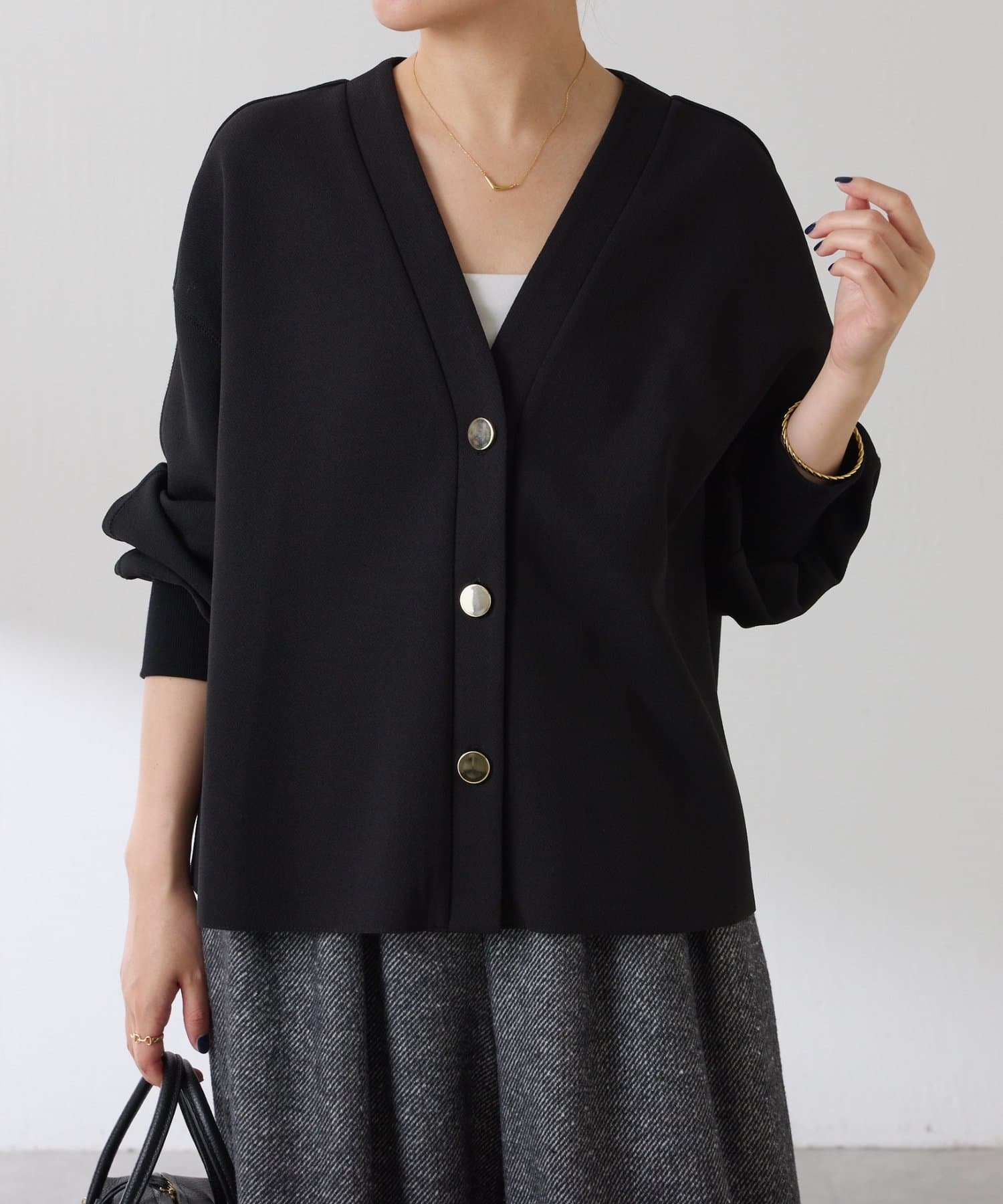 【追加予約決定!/体型カバー】メタル釦ジョーゼットカーディガン