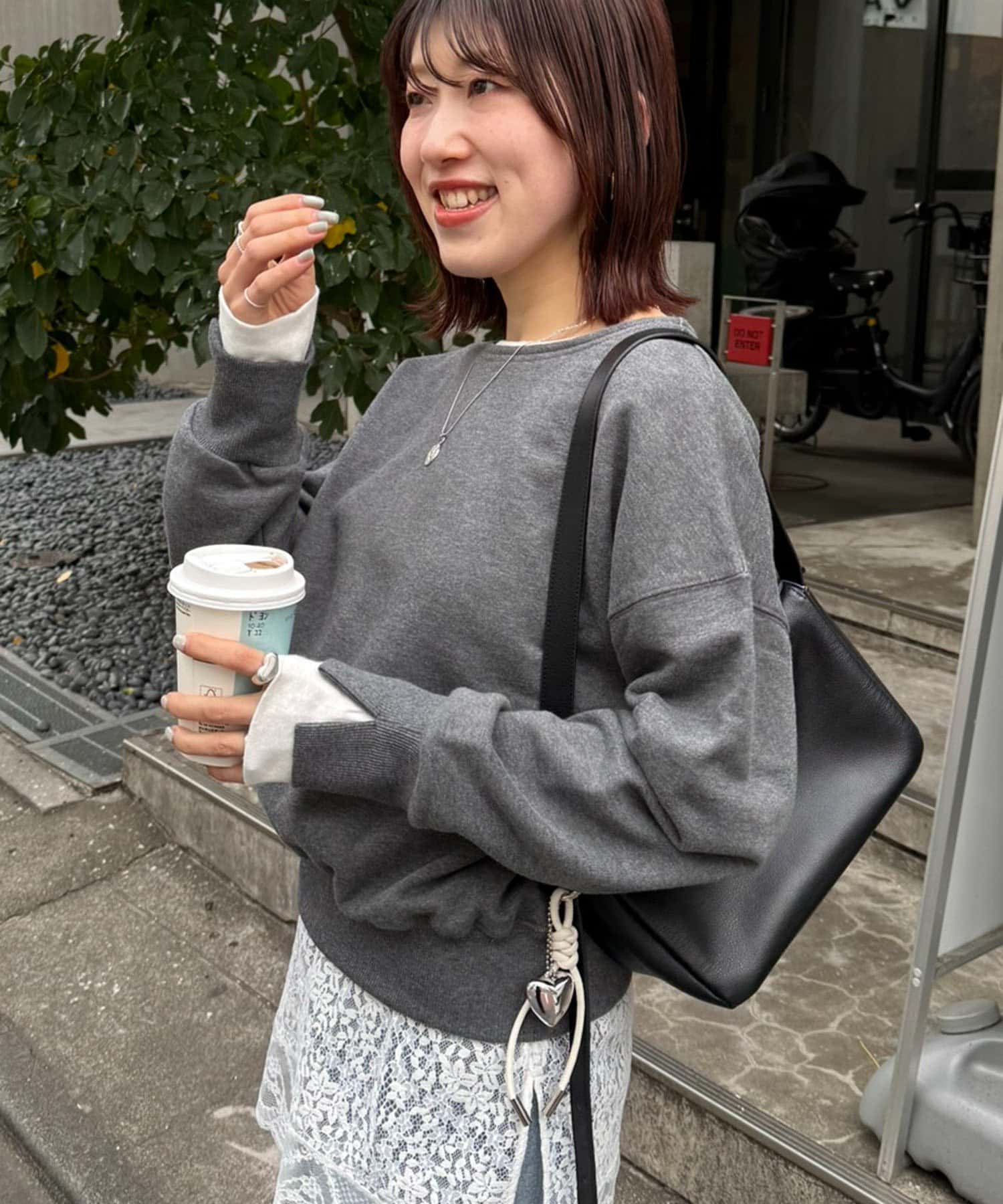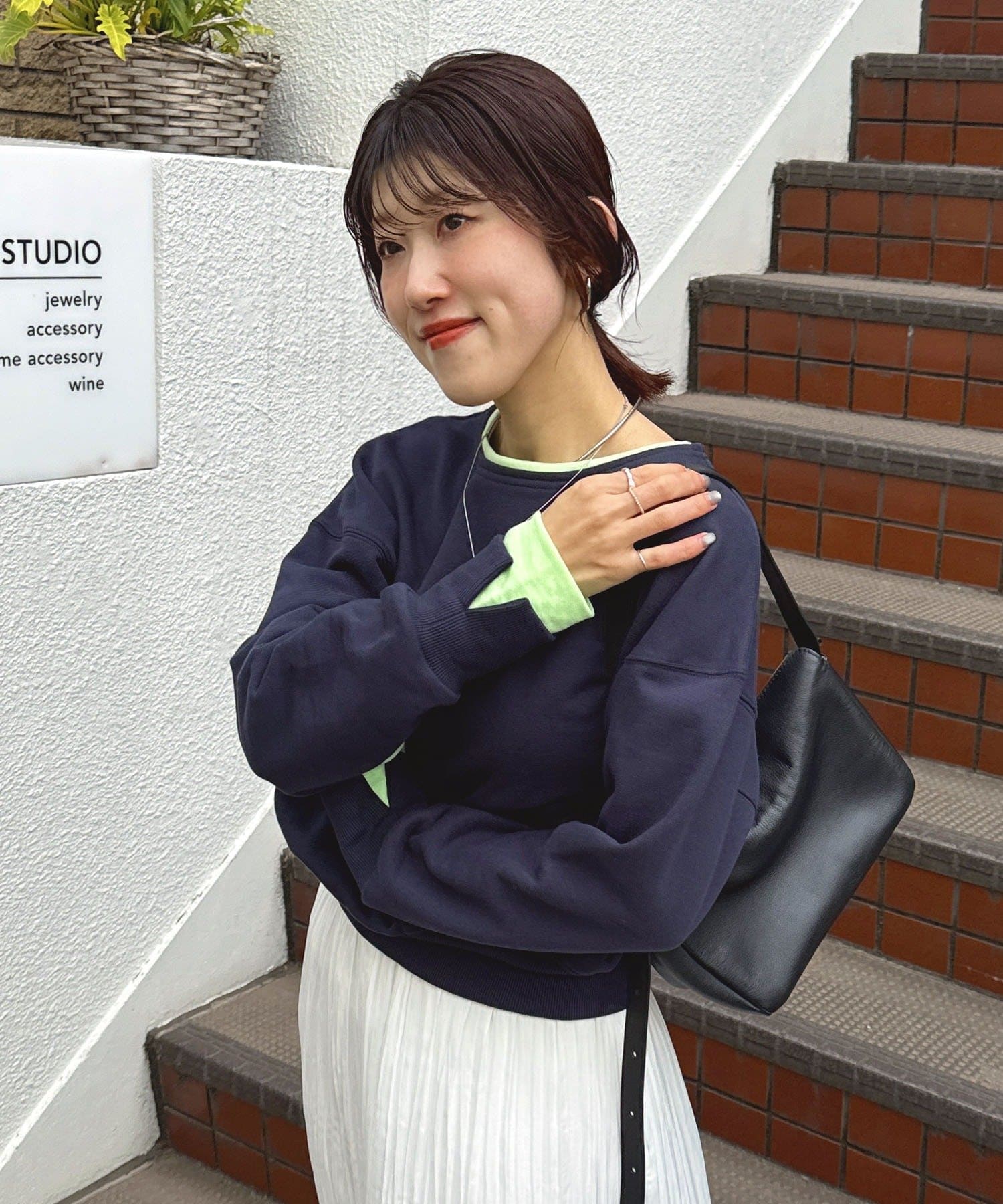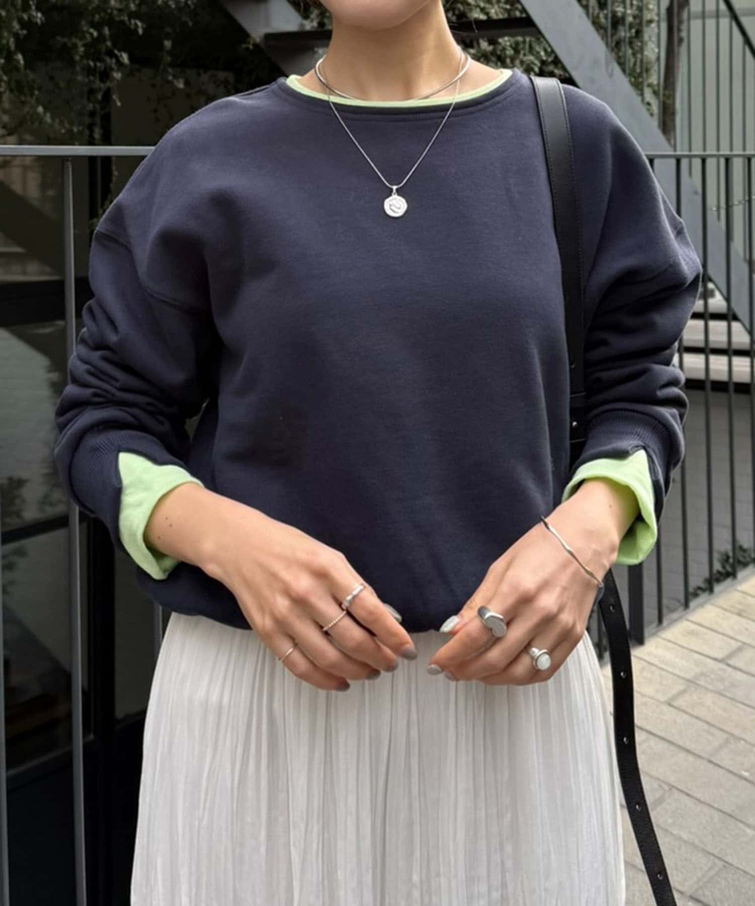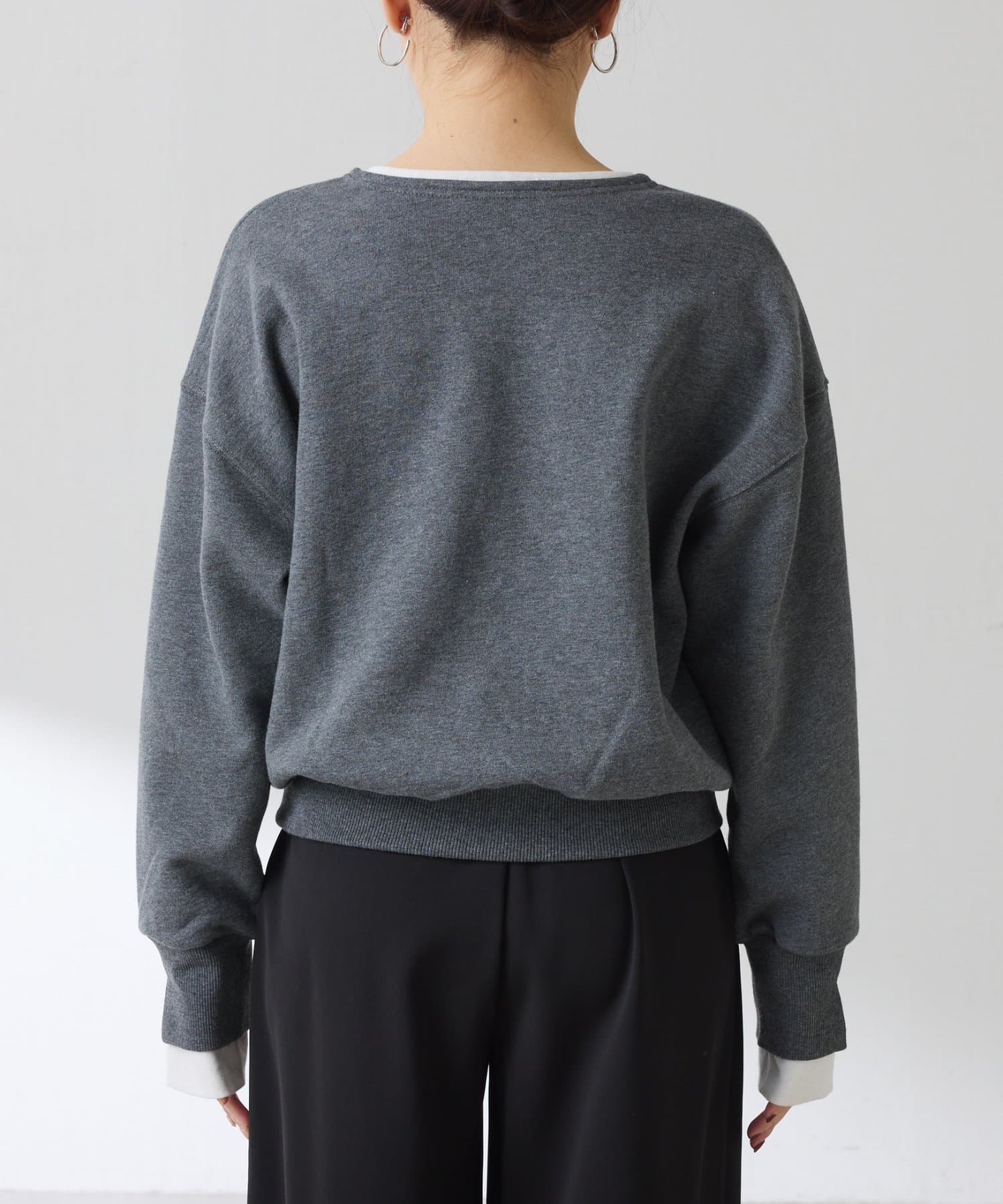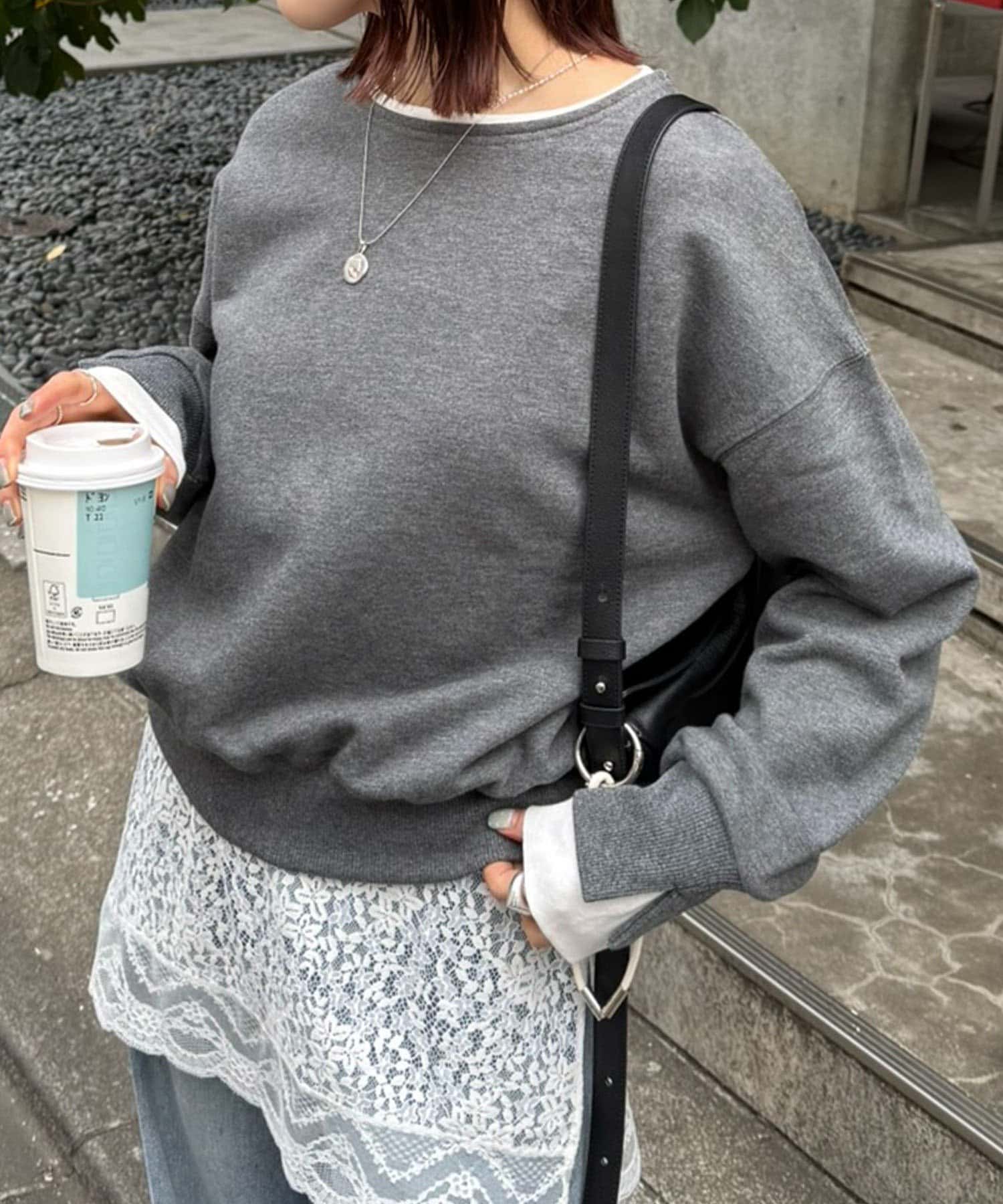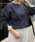 ・ベーシックなスウェット感は残しつつ、首元を少し広めに作って抜け感を出しました◎