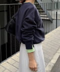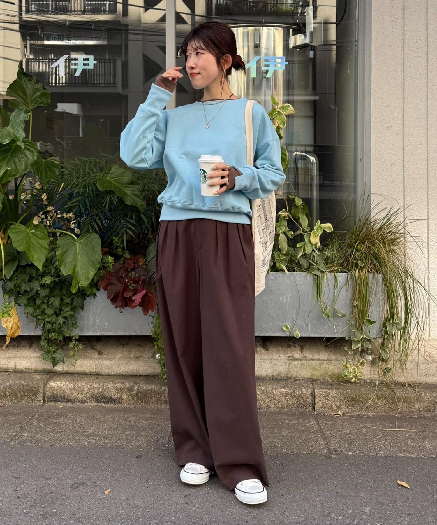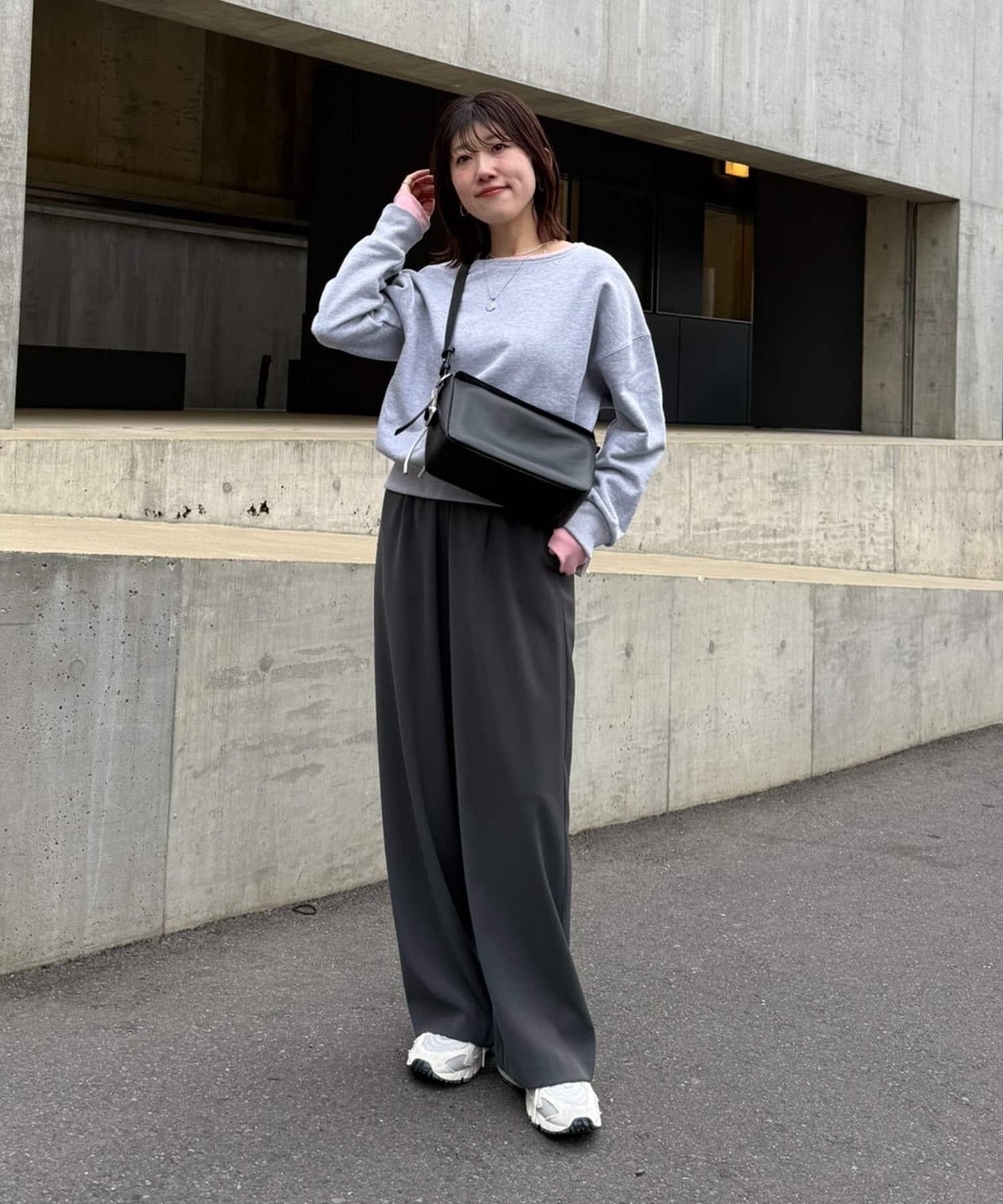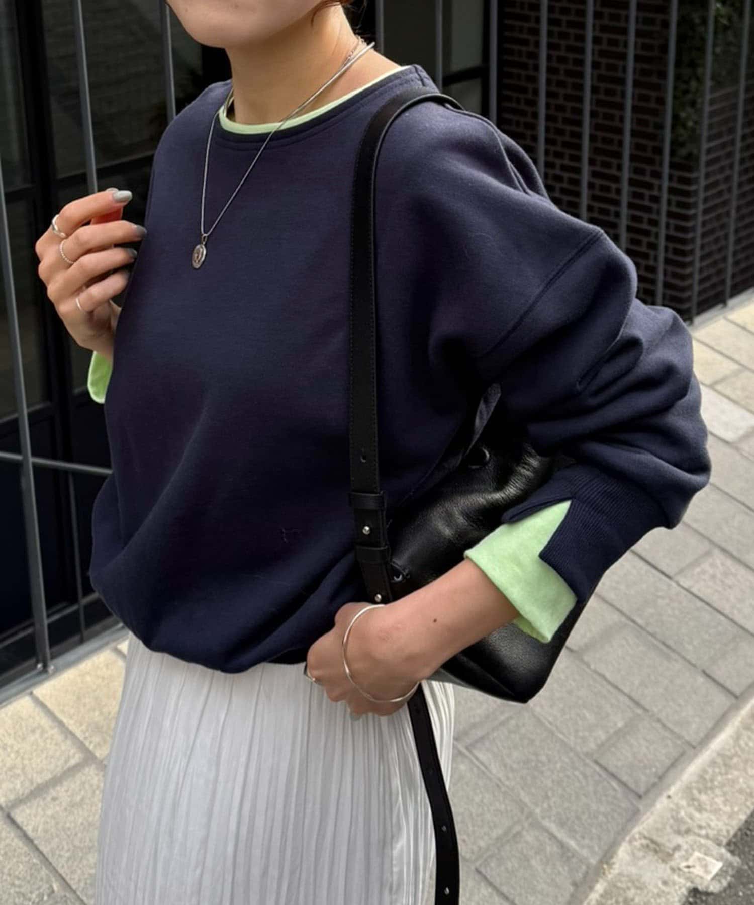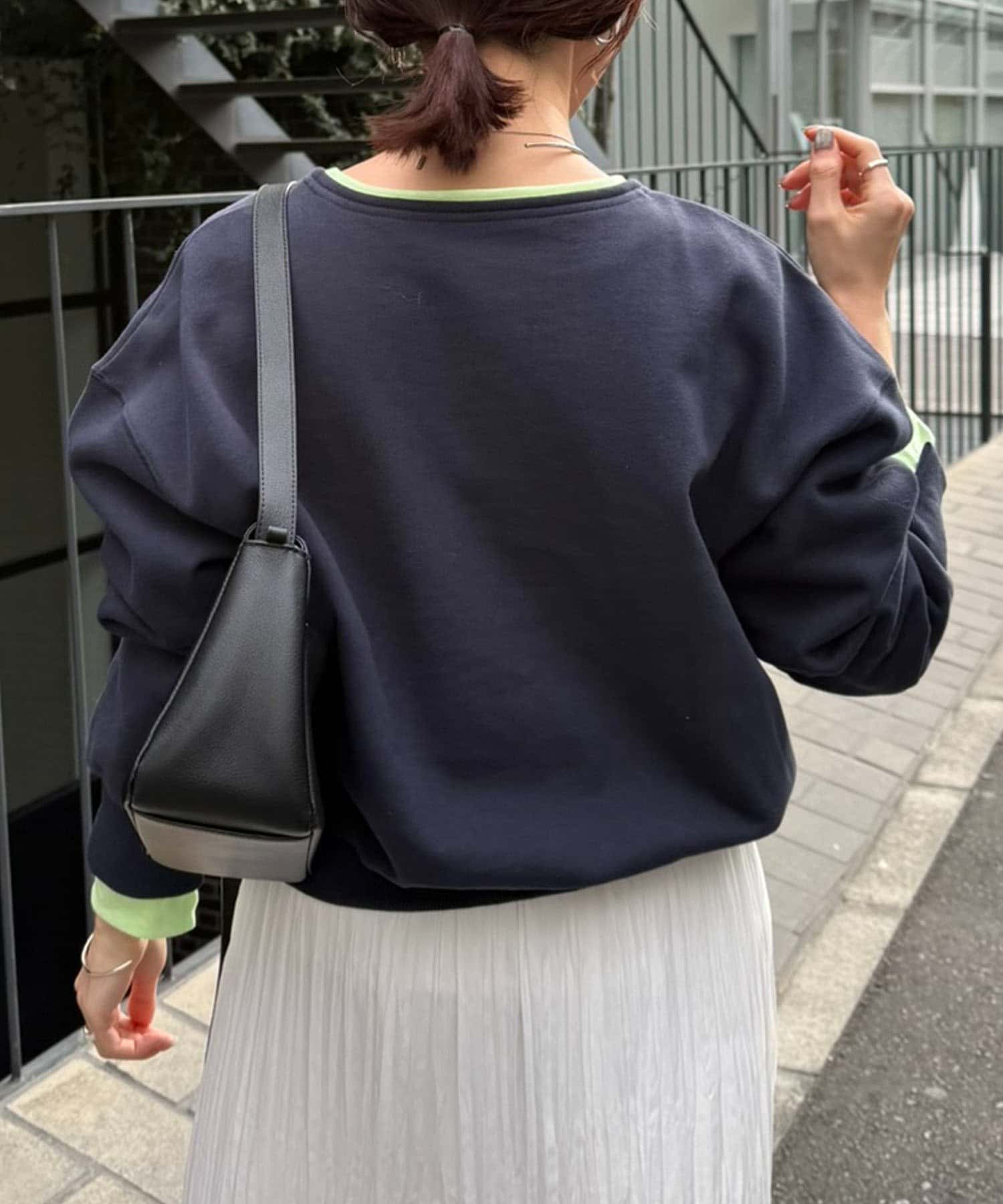 ・ベーシックなスウェット感は残しつつ、首元を少し広めに作って抜け感を出しました◎