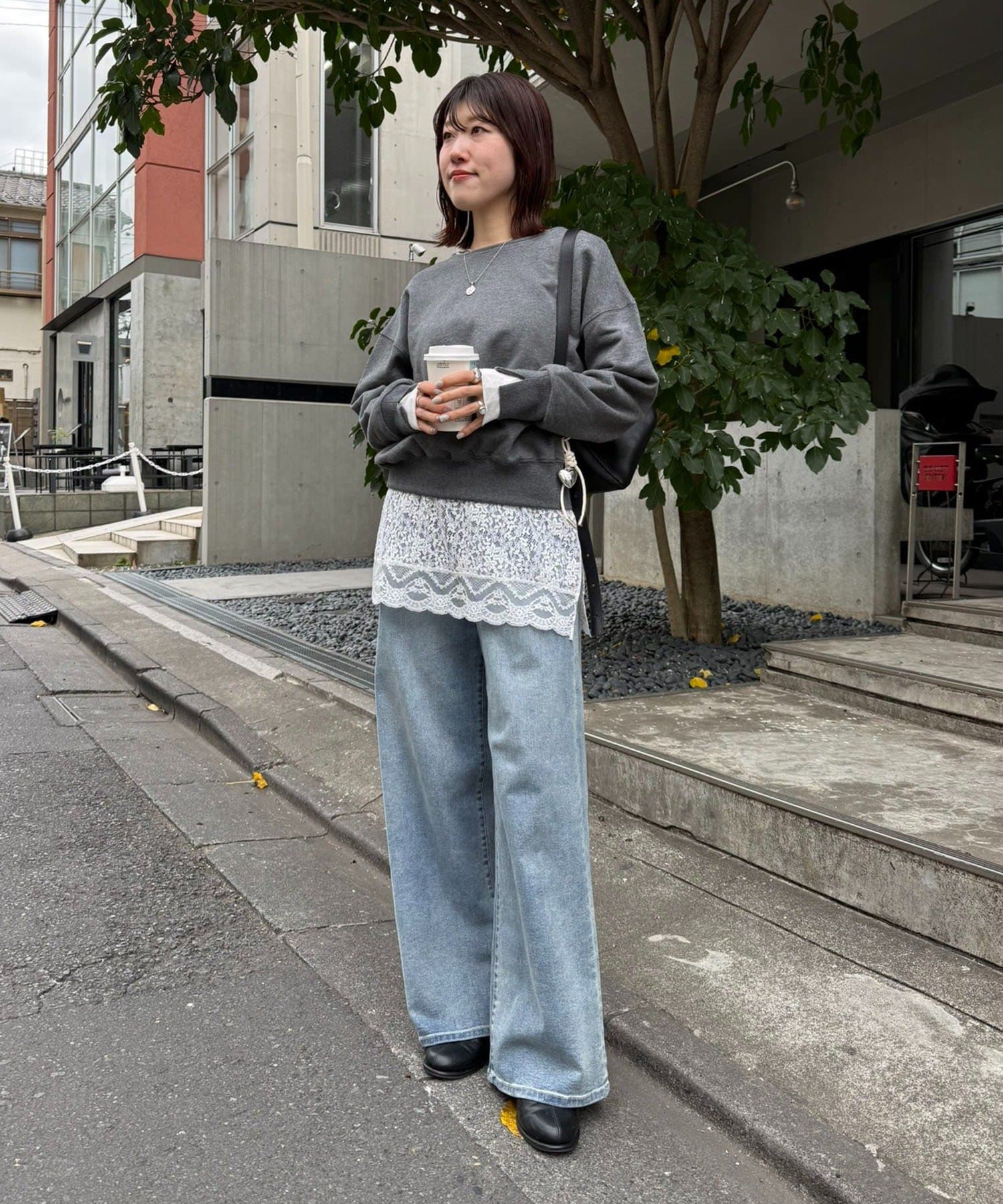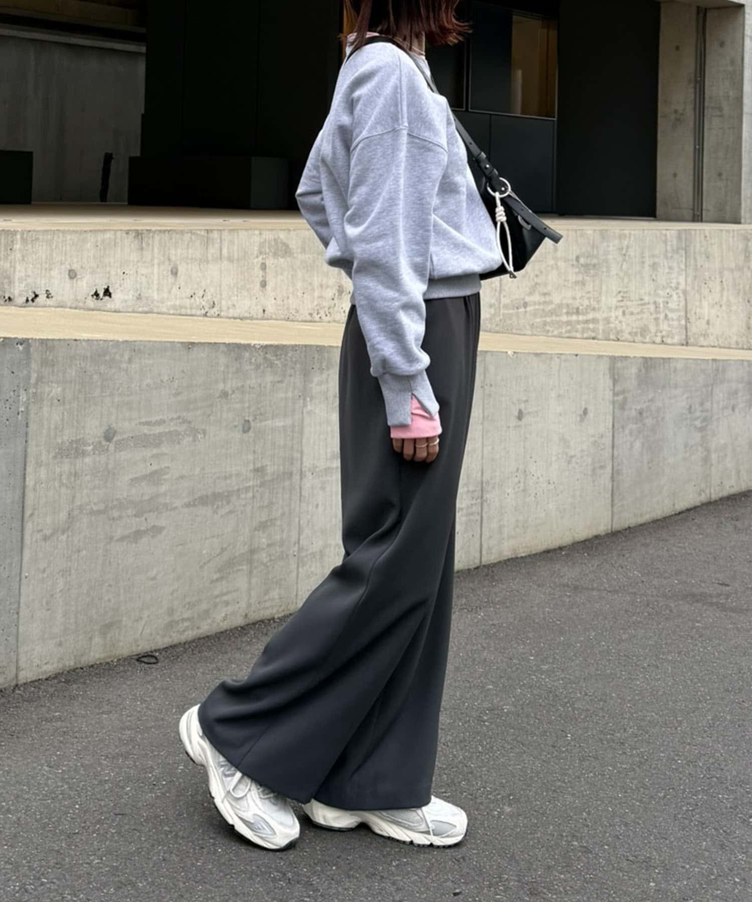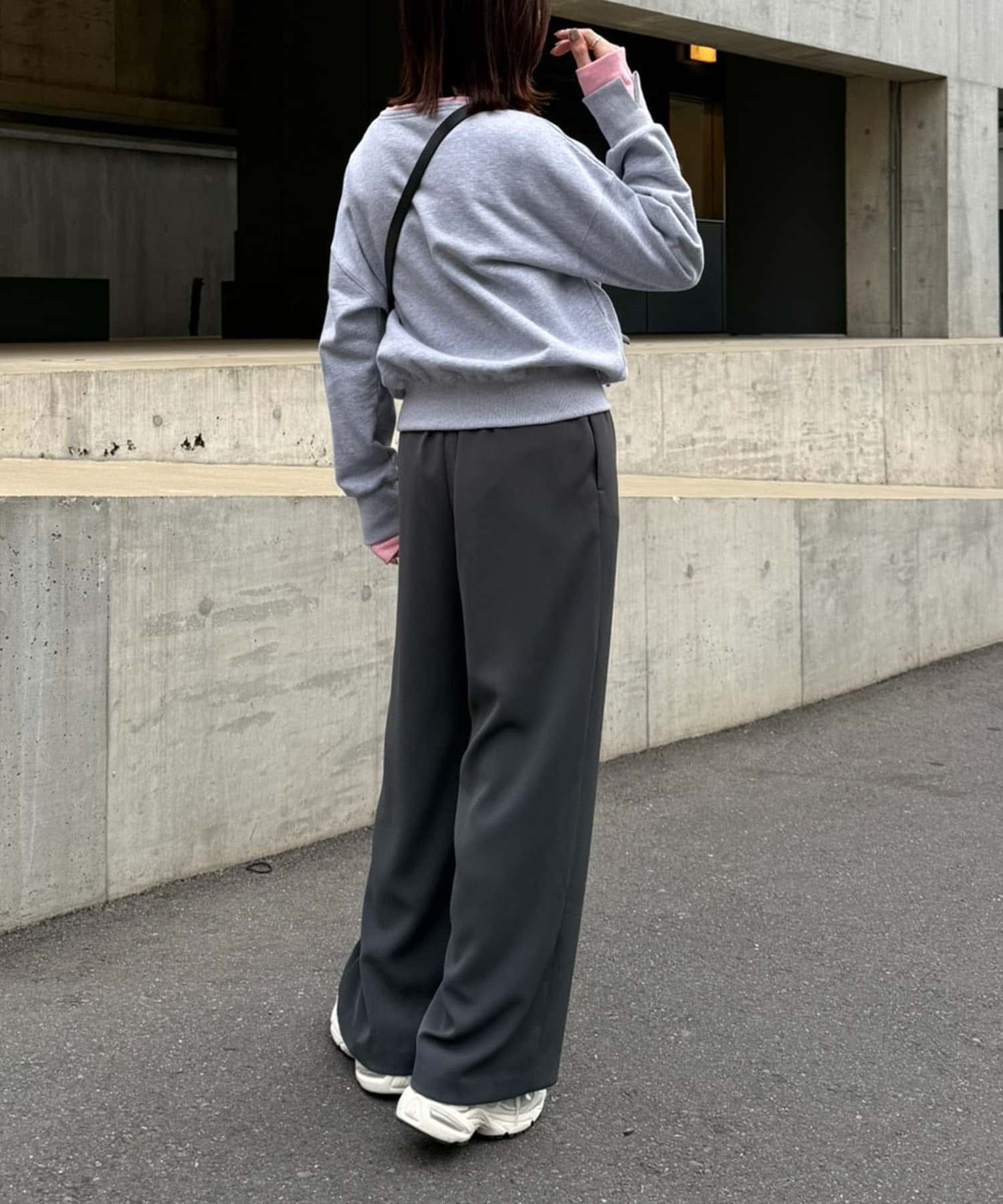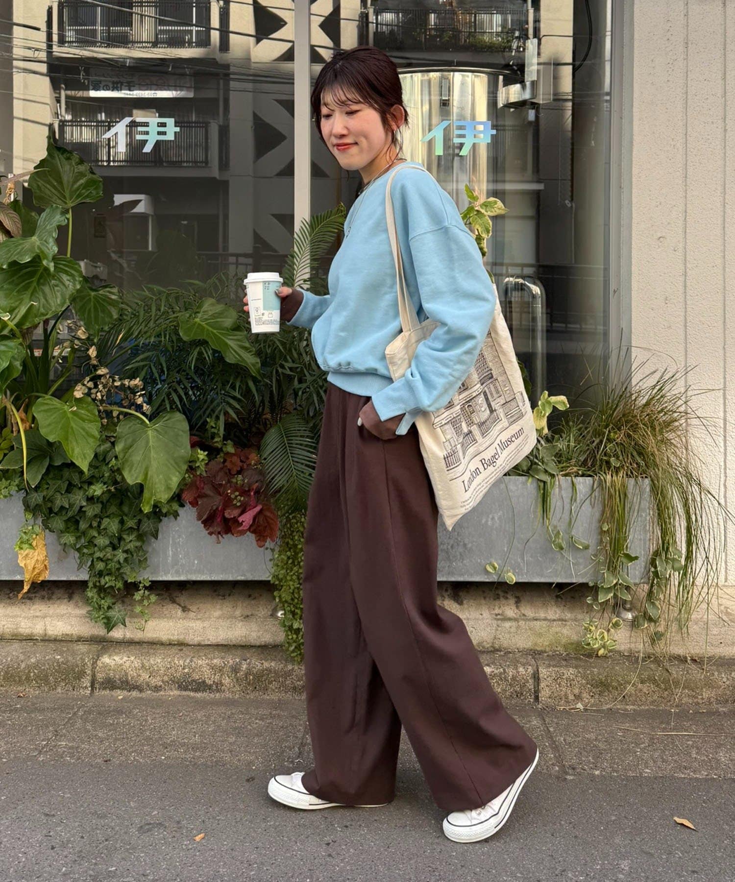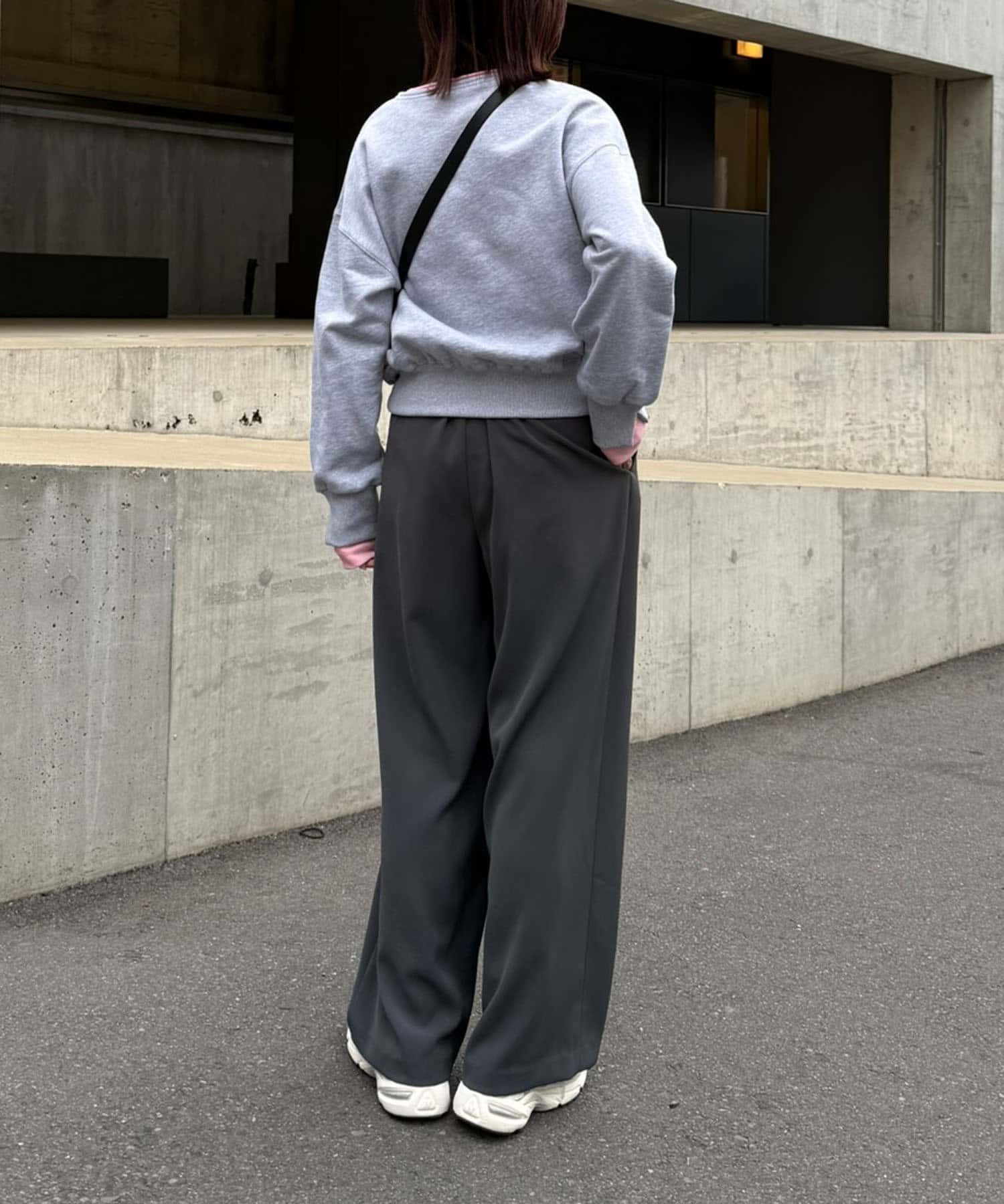 ・ベーシックなスウェット感は残しつつ、首元を少し広めに作って抜け感を出しました◎