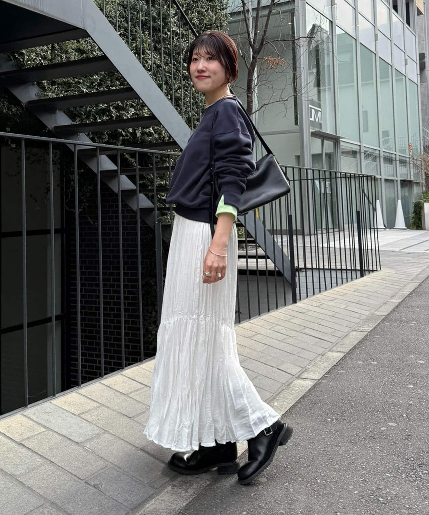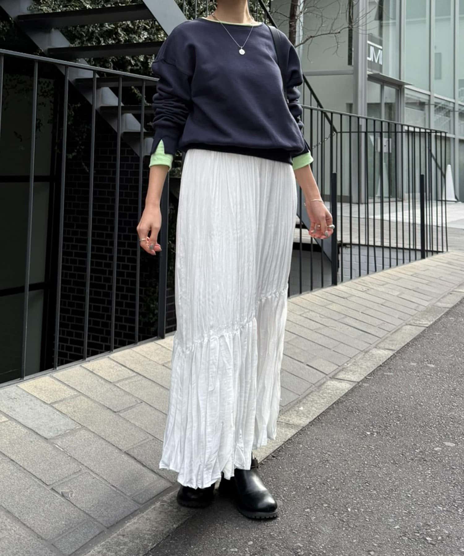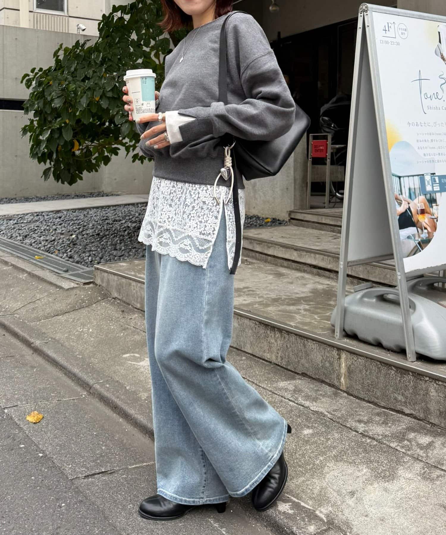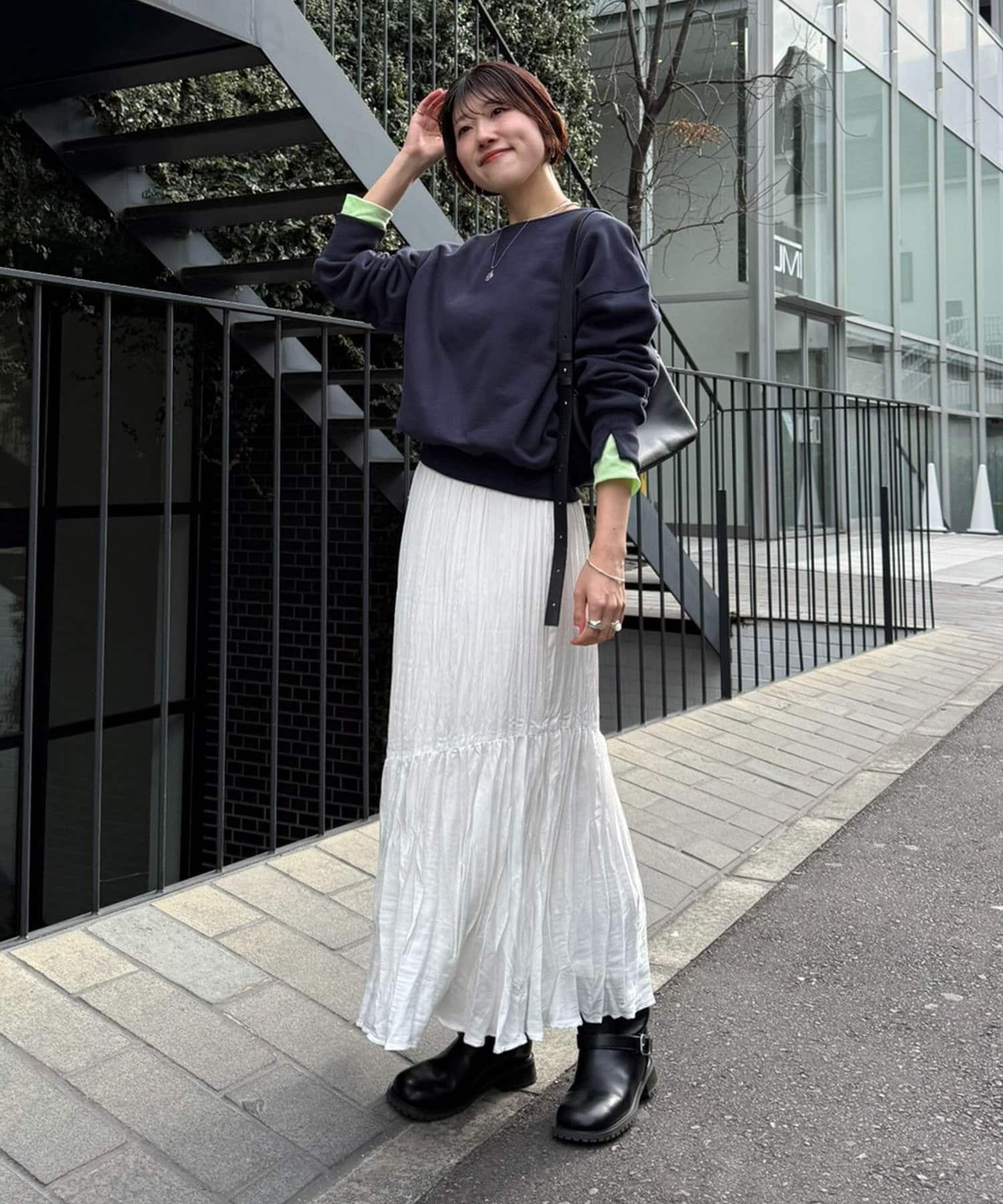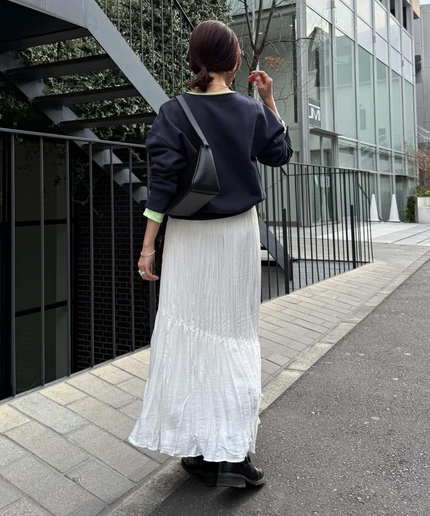 ・ベーシックなスウェット感は残しつつ、首元を少し広めに作って抜け感を出しました◎