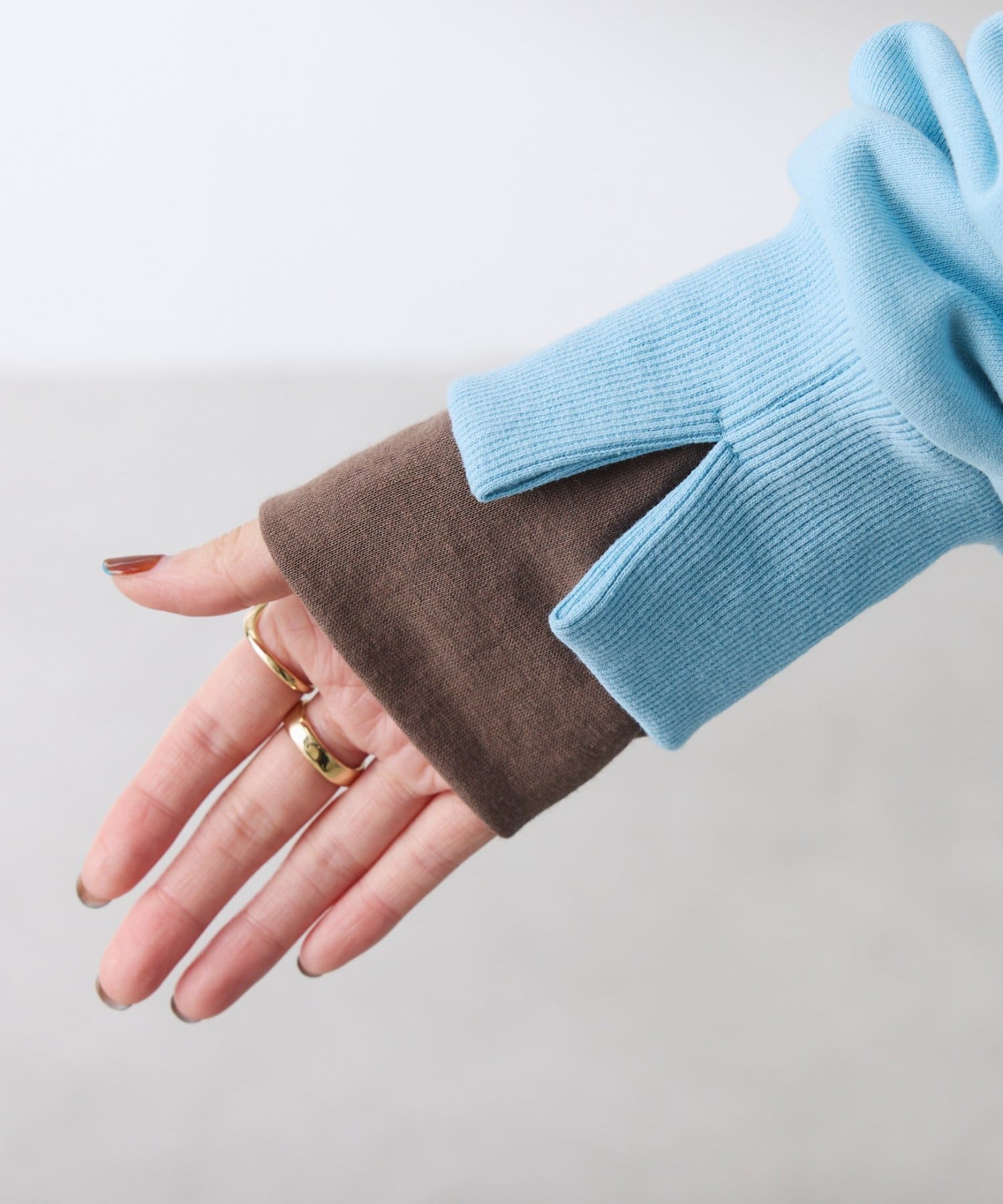 ・コンパクトな着丈と裾のリブ部分をきゅっと細めにすることでインせずにお洒落に、どんなボトムとも合わせやすいバランスにこだわりました!
