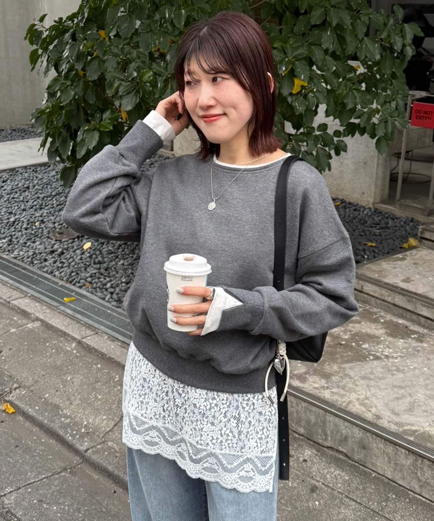 TOP > COLLAGE GALLARDAGALANTE > レディース > トップス > スウェット/ポンチ > 【インフルエンサー@asamin企画】《2月12日販売開始》レイヤード風スウェット