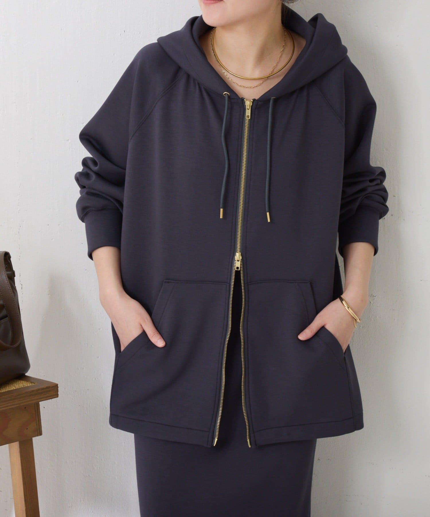 【丈を変えられる/きれいめ】ポンチダブルジップパーカー/セットアップ